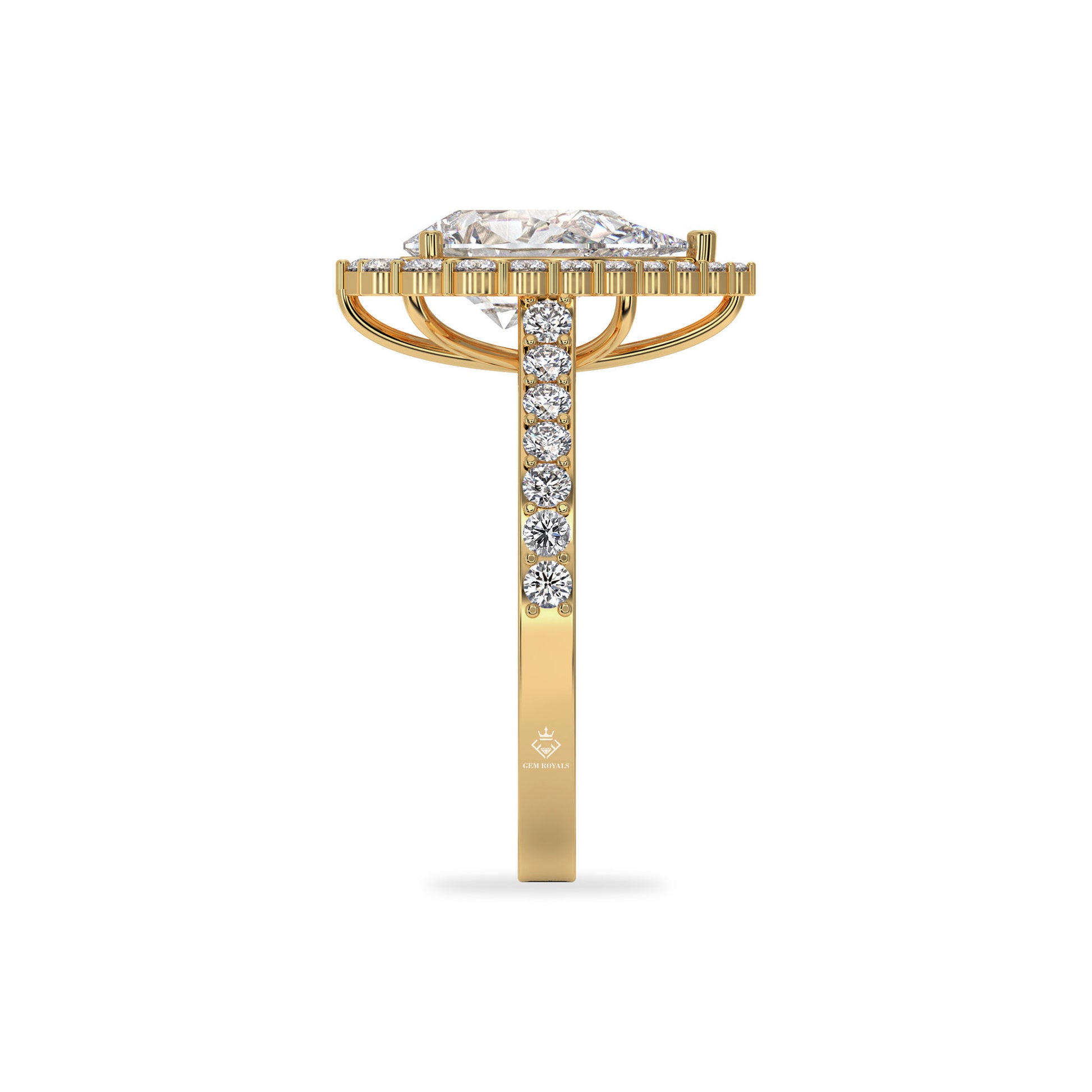 2.68 Carat Pear Shaped Diamond Halo 14K Gold Engagement Ring For Women
