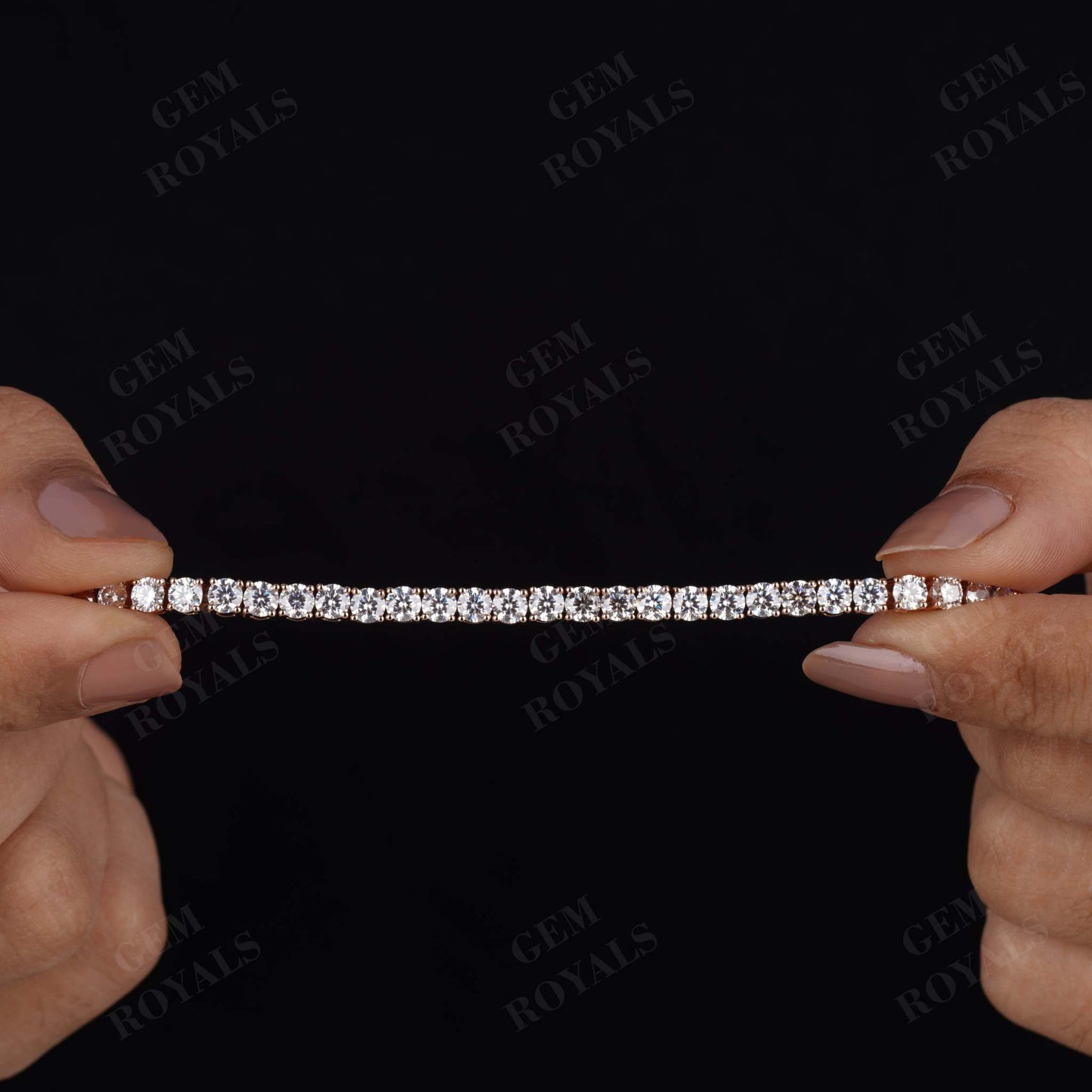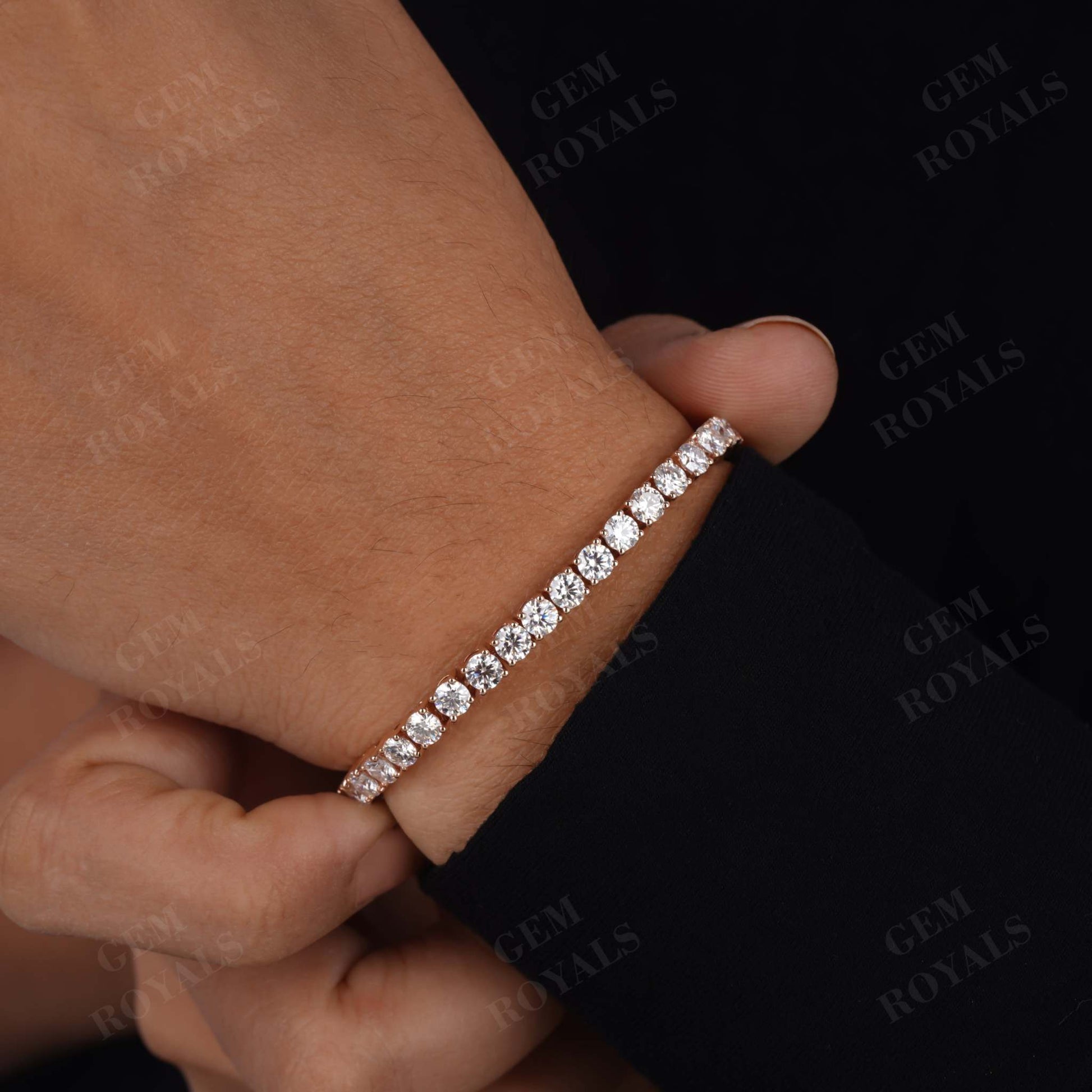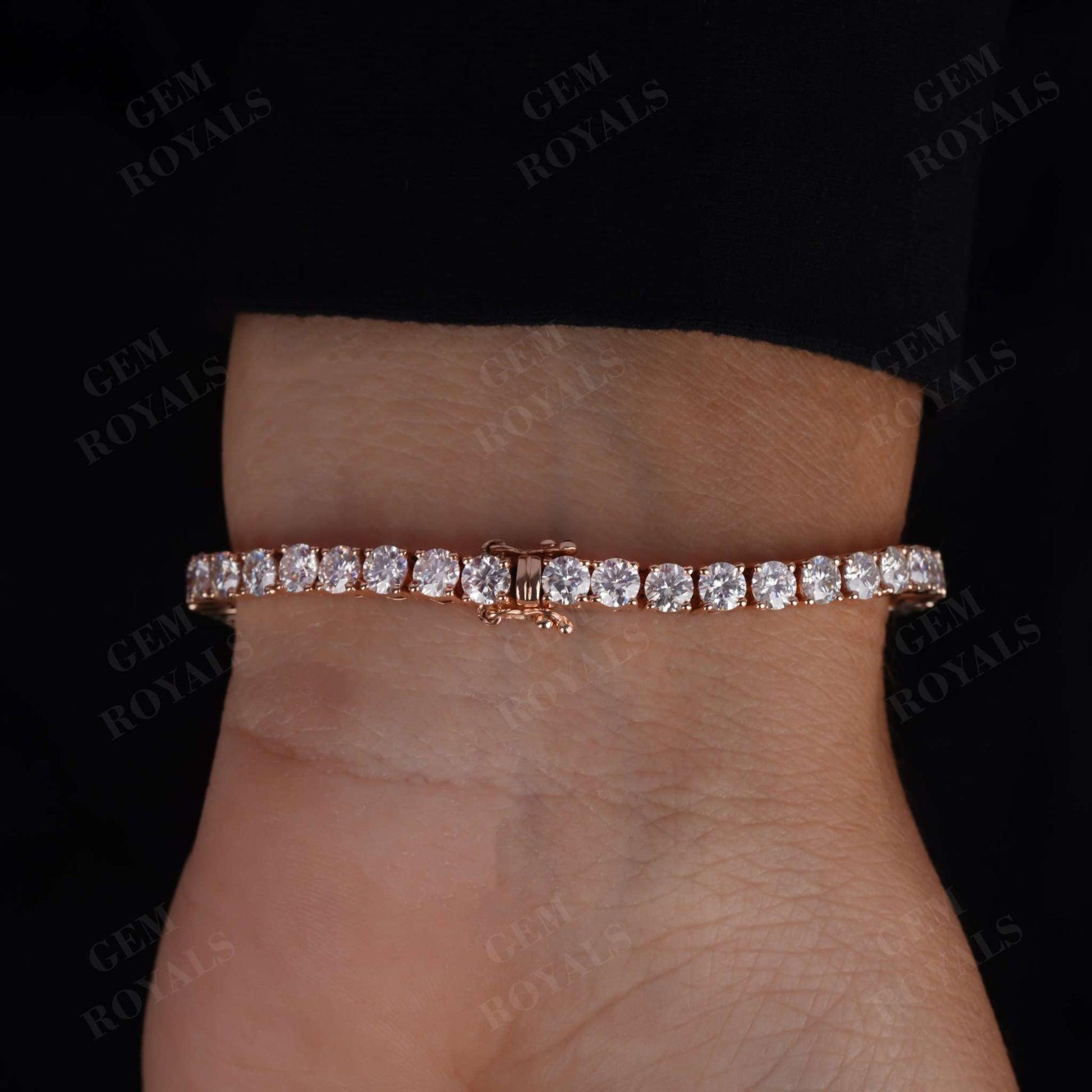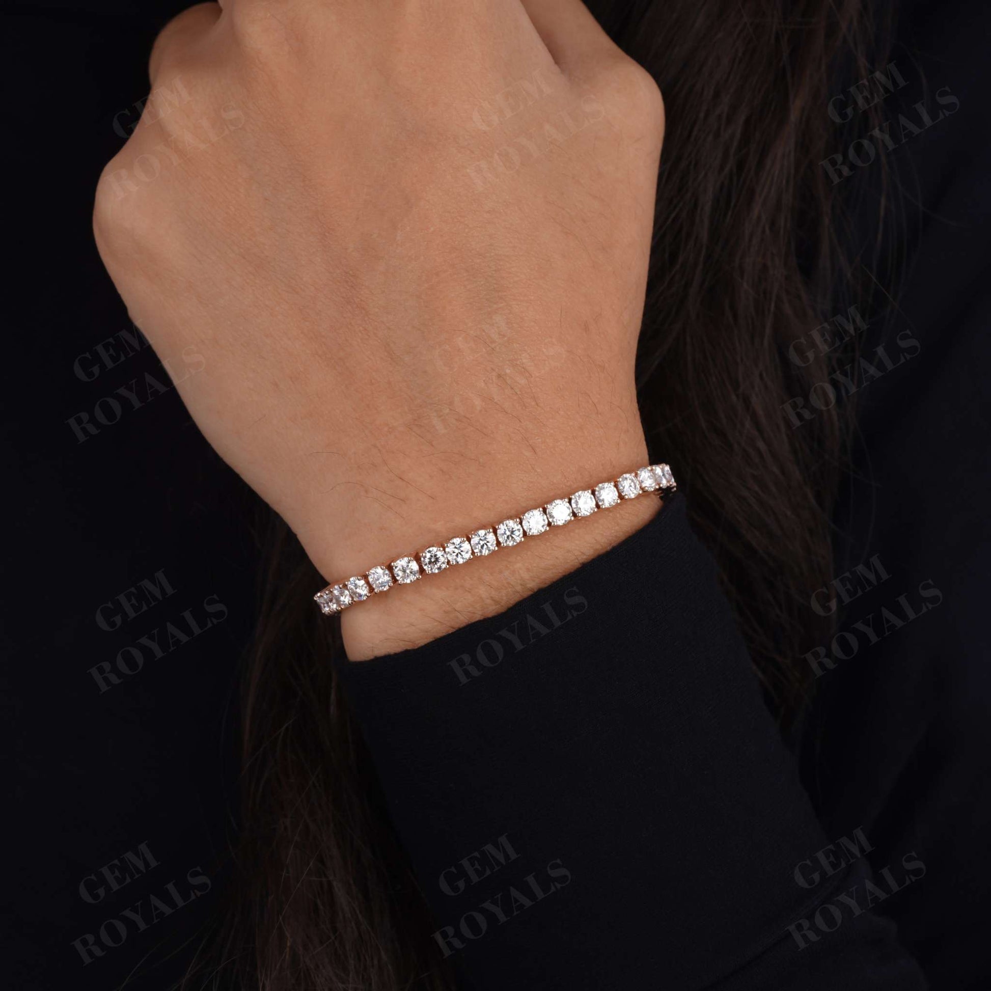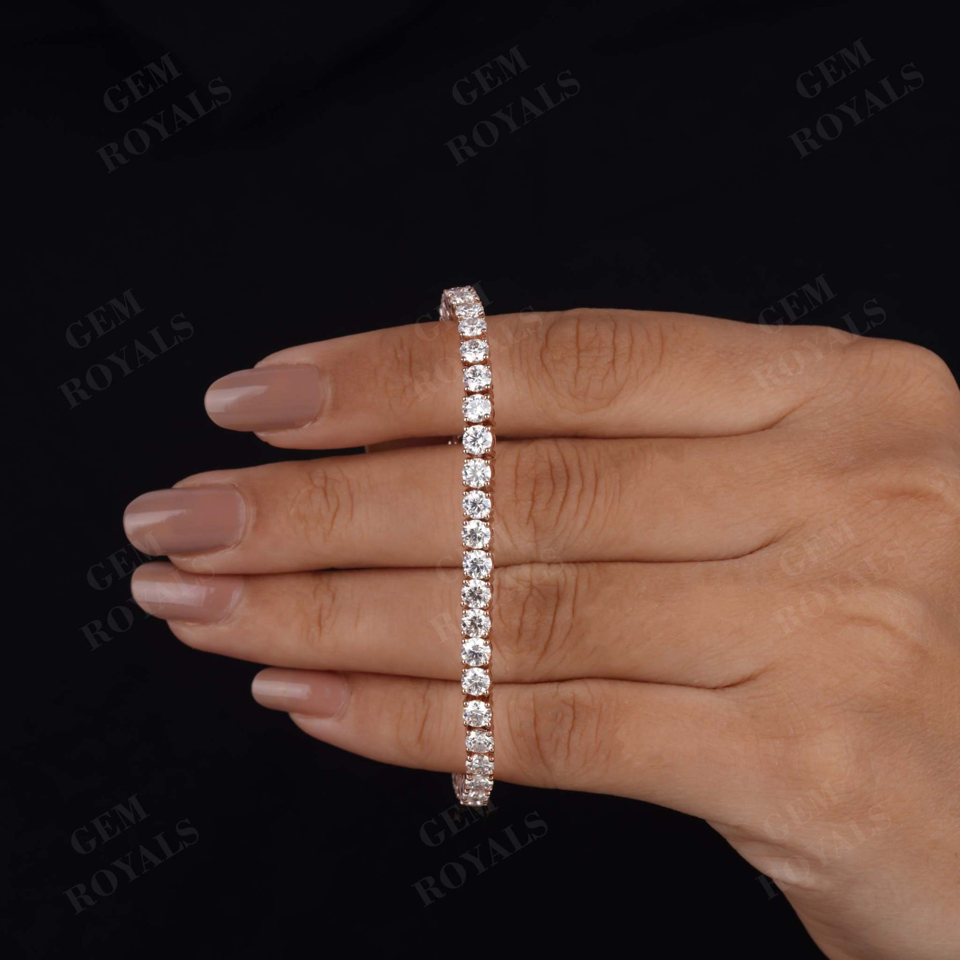 Handcrafted with precision, our 14K Gold Diamond Tennis Bracelet boasts 4.00MM Round cut Moissanite stones, exuding elegance and charm. Each stone is delicately set in a 4-prong setting, ensuring durability and brilliance. This minimalist yet dazzling bracelet, available in lengths from 4.5 inches to 7 inches, makes for a perfect bridesmaid gift or bridal accessory. Whether in 10K, 14K, or 18K White/Yellow/Rose Gold, this dainty piece is designed for daily wear, adding a touch of sophistication to any ensemble.
