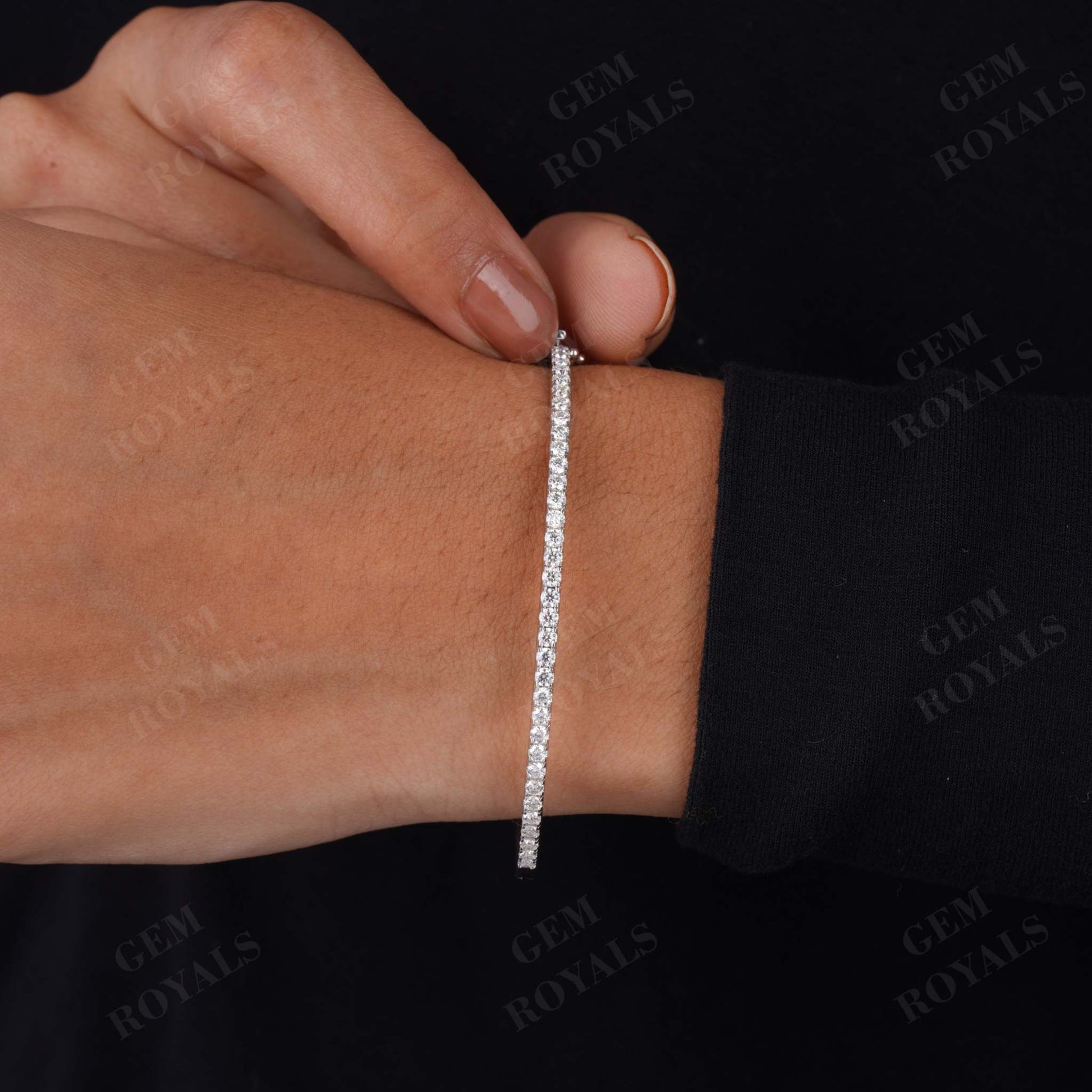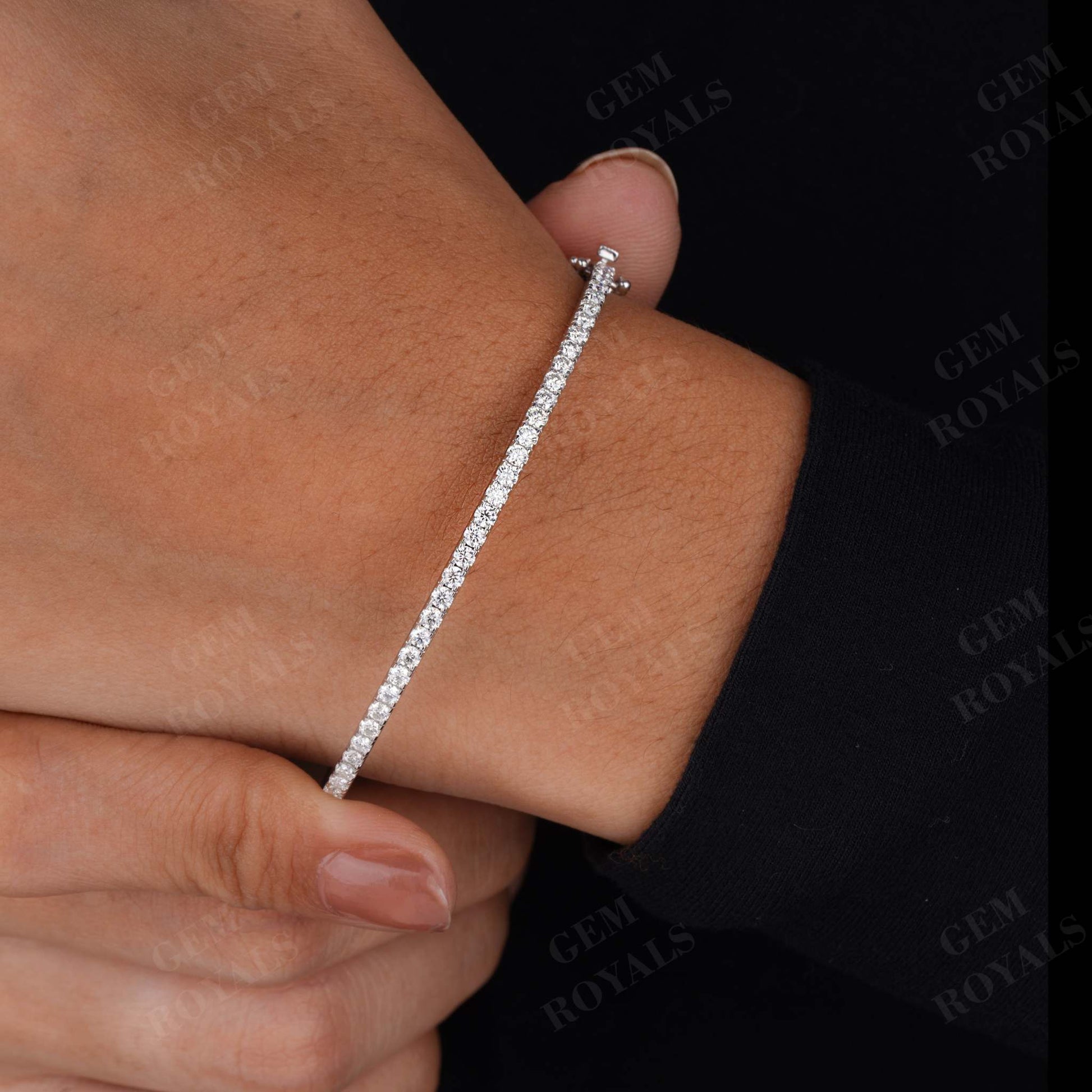 Elevate her elegance with our exquisite Diamond Moissanite Bracelet. Handcrafted in 14K gold, this timeless piece exudes sophistication, perfect for layering or as a standalone statement. A stunning gift for mom or a cherished accessory for any occasion. Available in 10K, 14K, or 18K white, yellow, or rose gold, it's a radiant symbol of love and style.