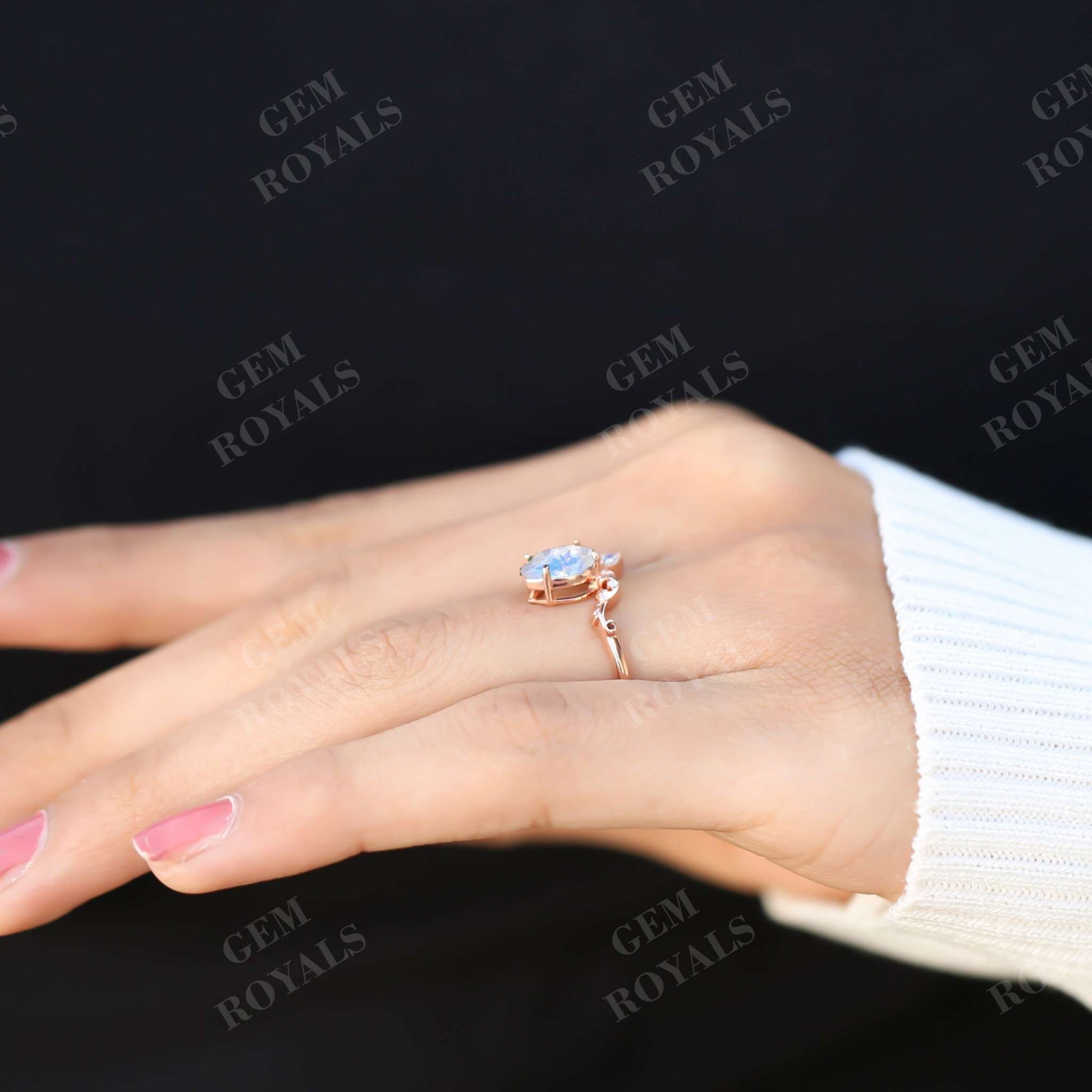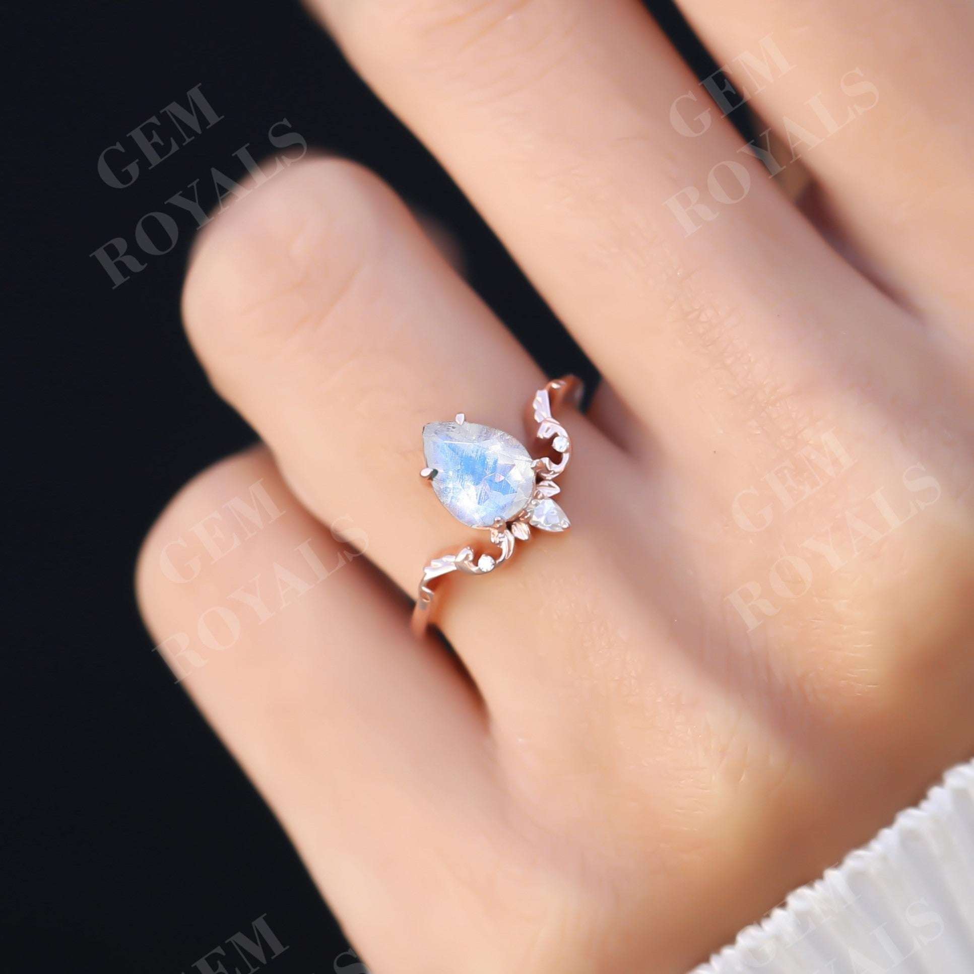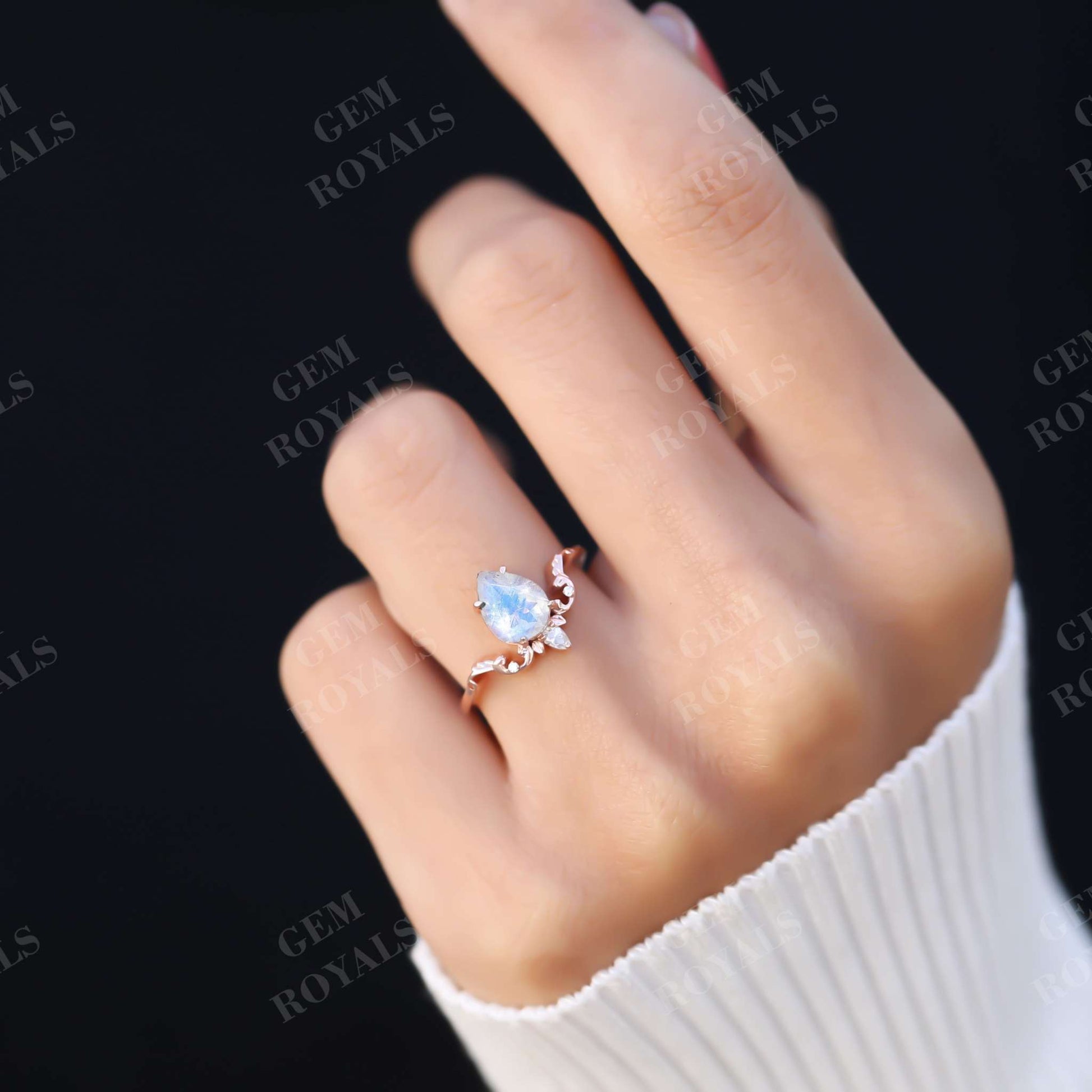 Art Deco Pear Shaped Moonstone Engagement Ring