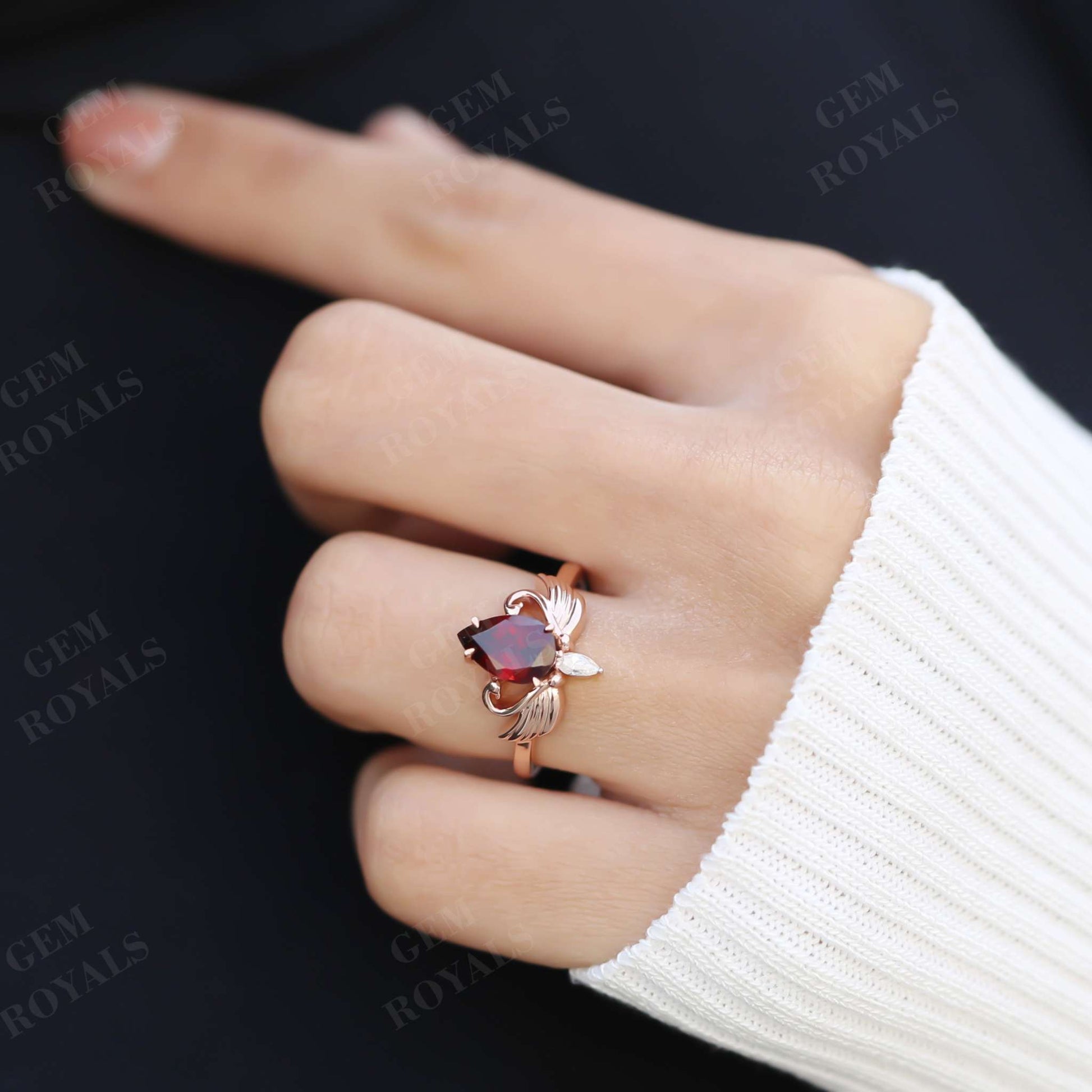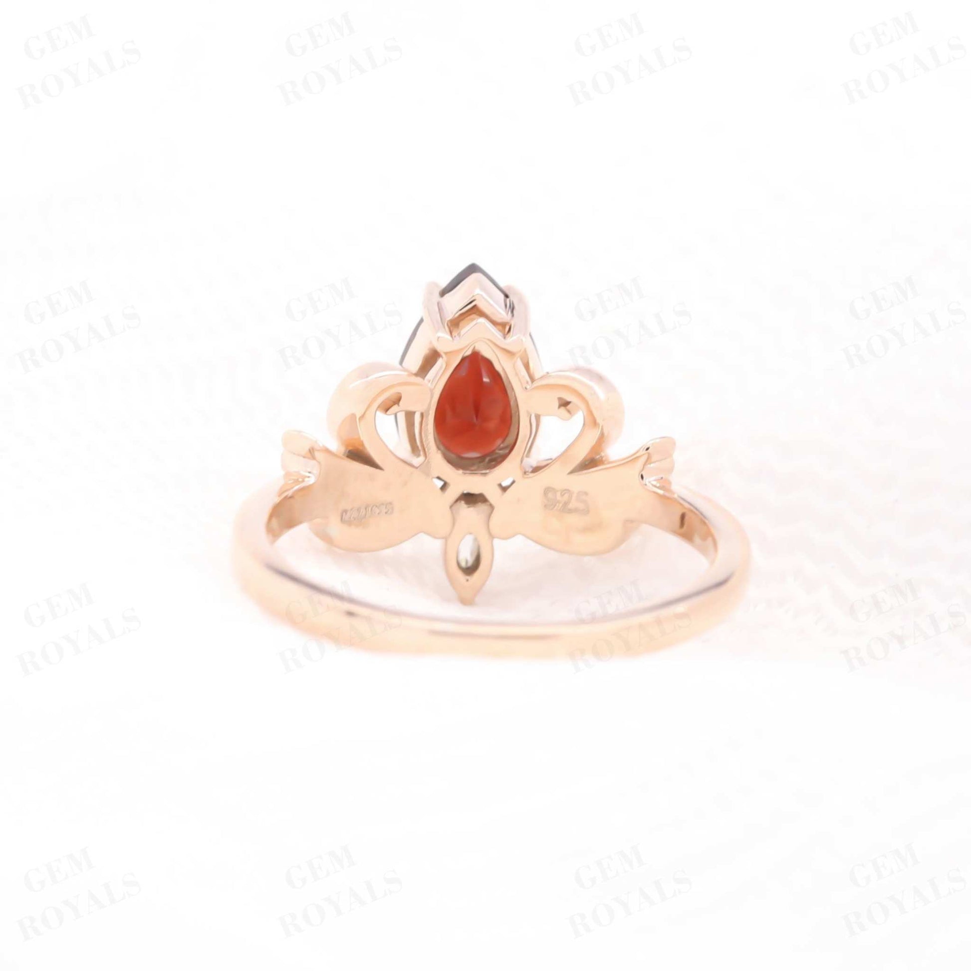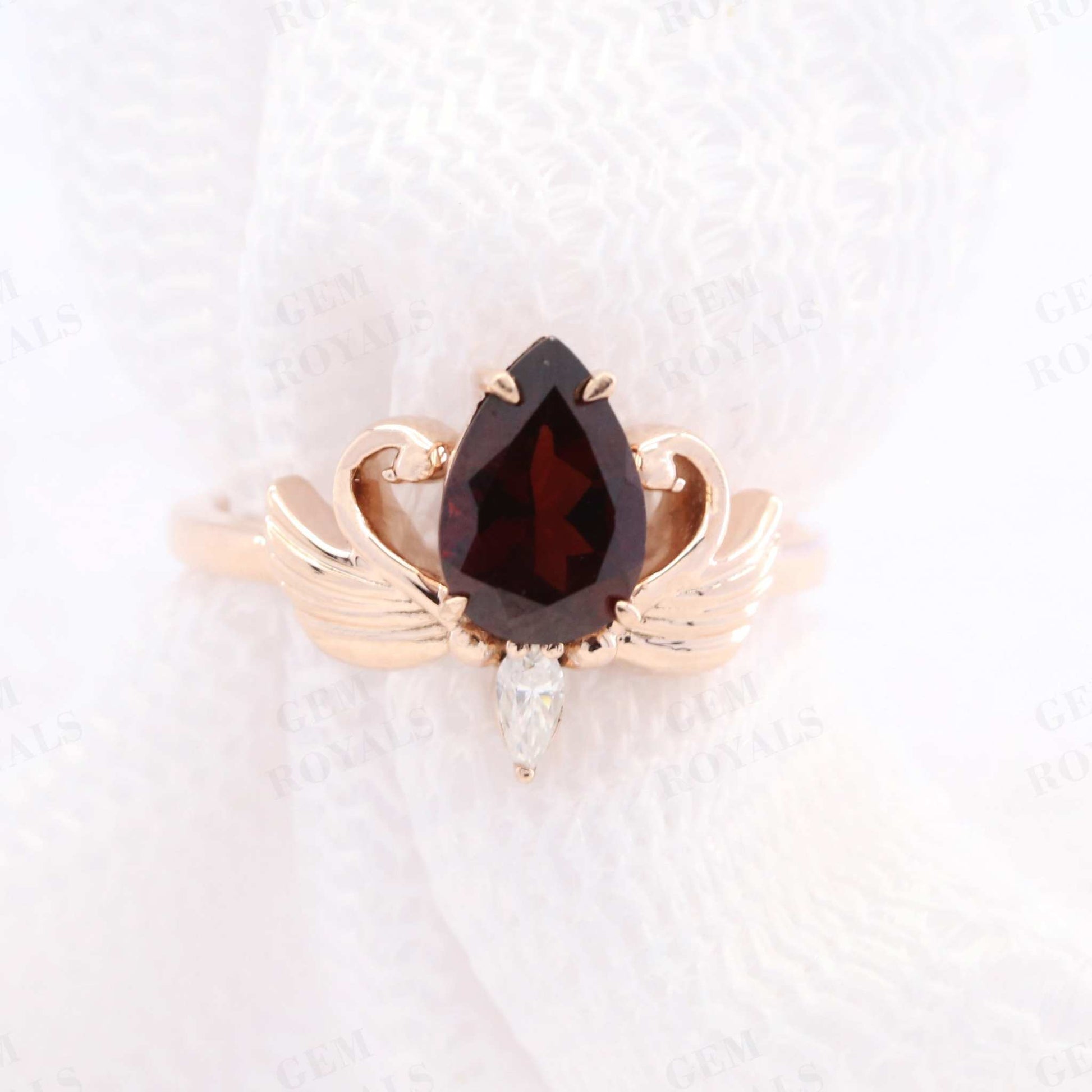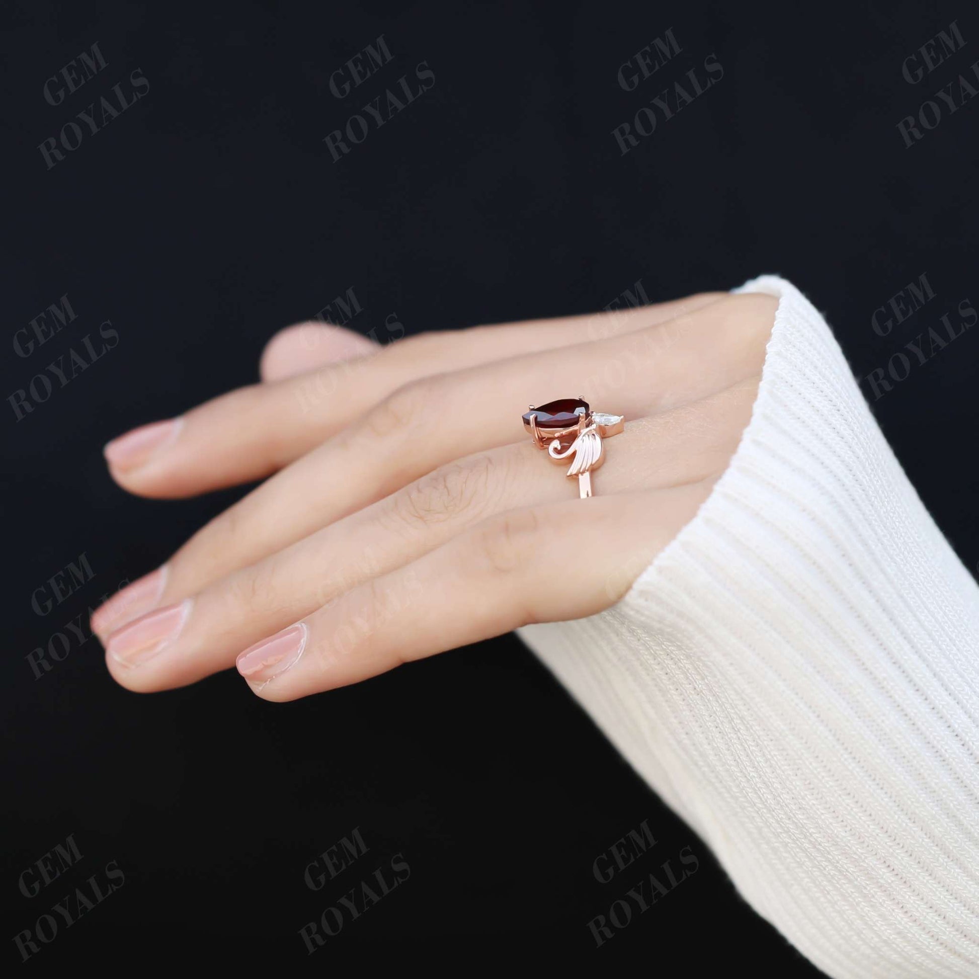 Art Deco Pear Shaped Red Garnet Engagement Ring