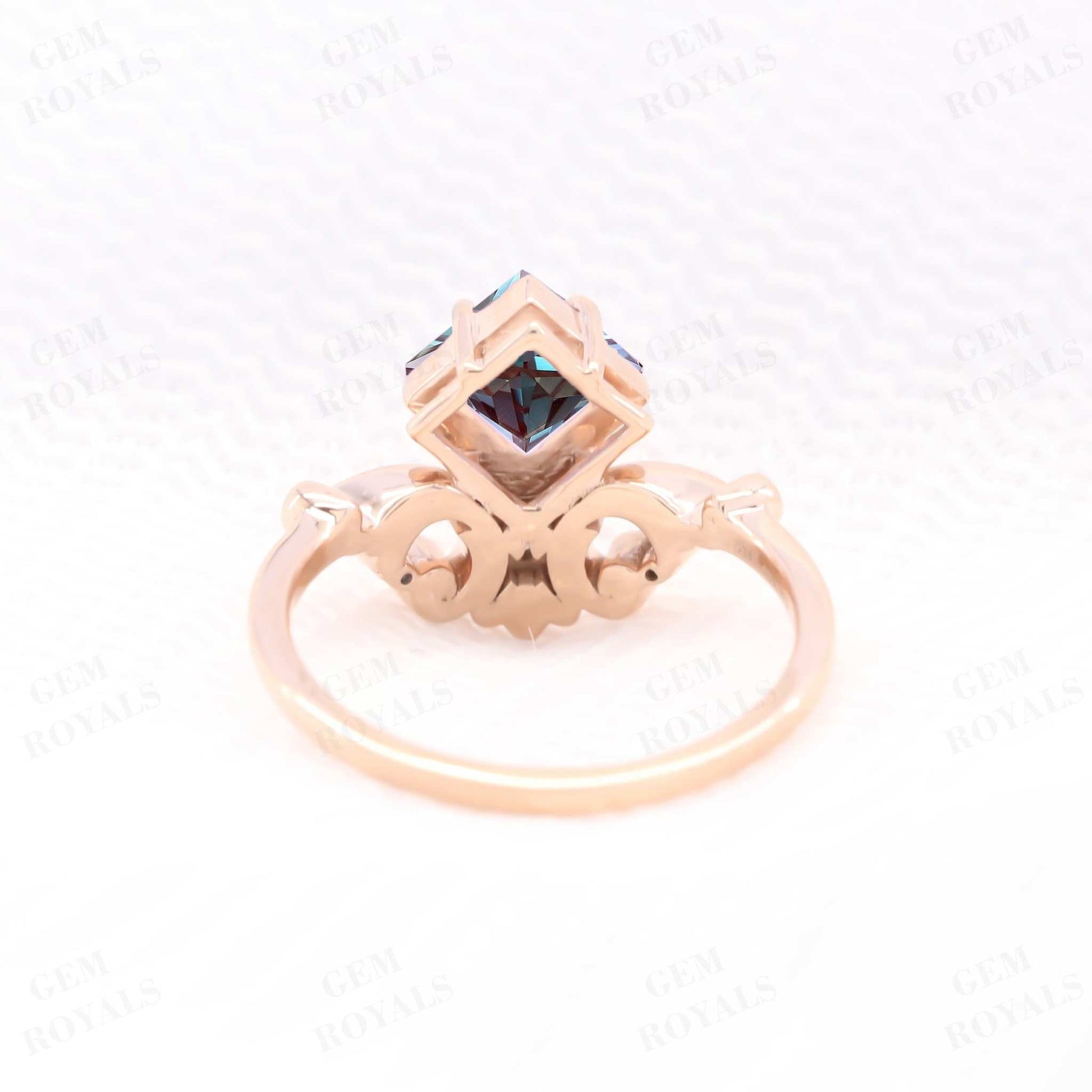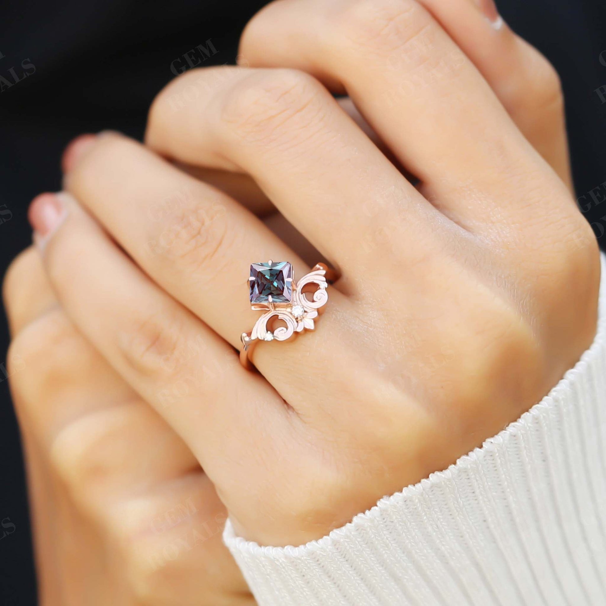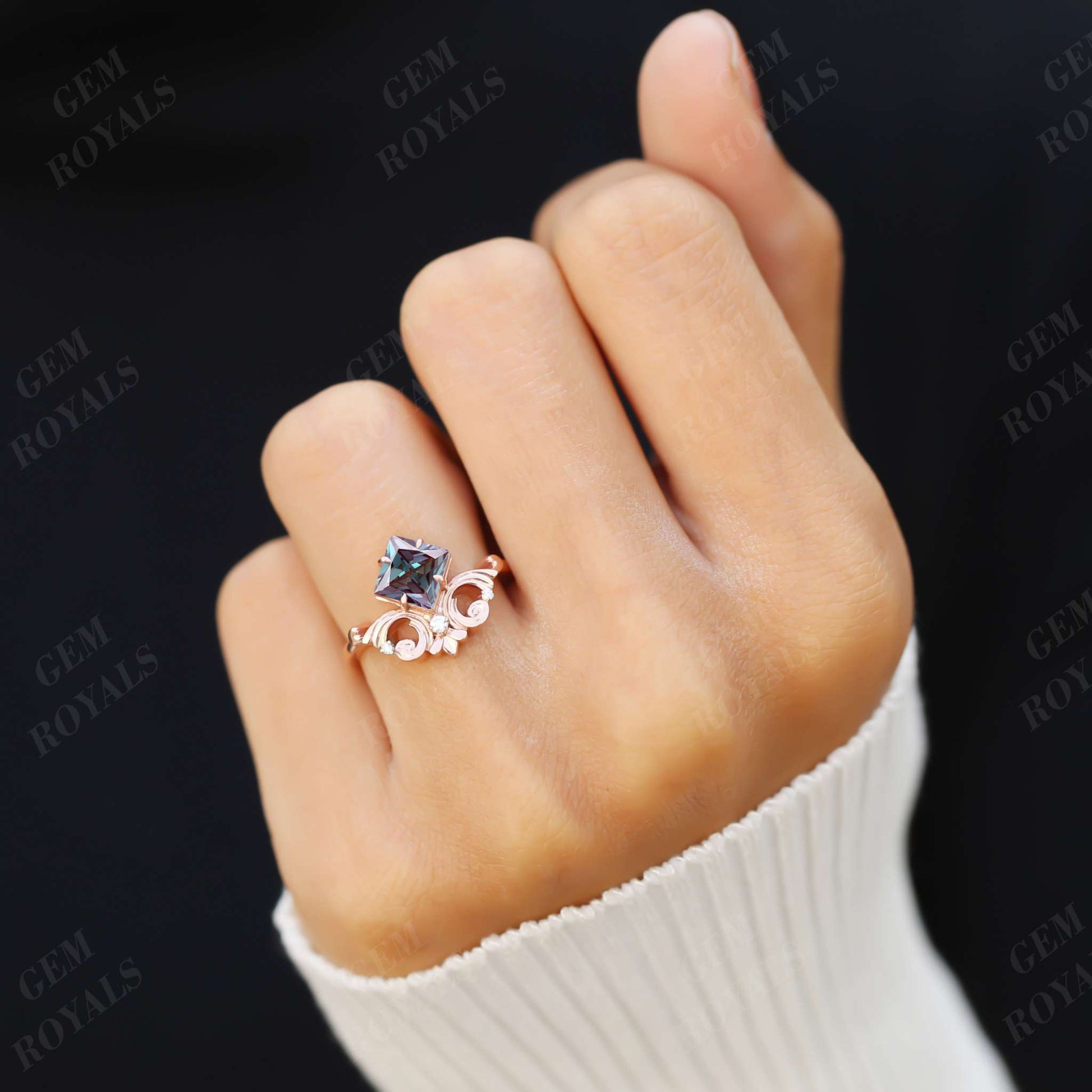 Art Deco Princess Cut Alexandrite Engagement Ring