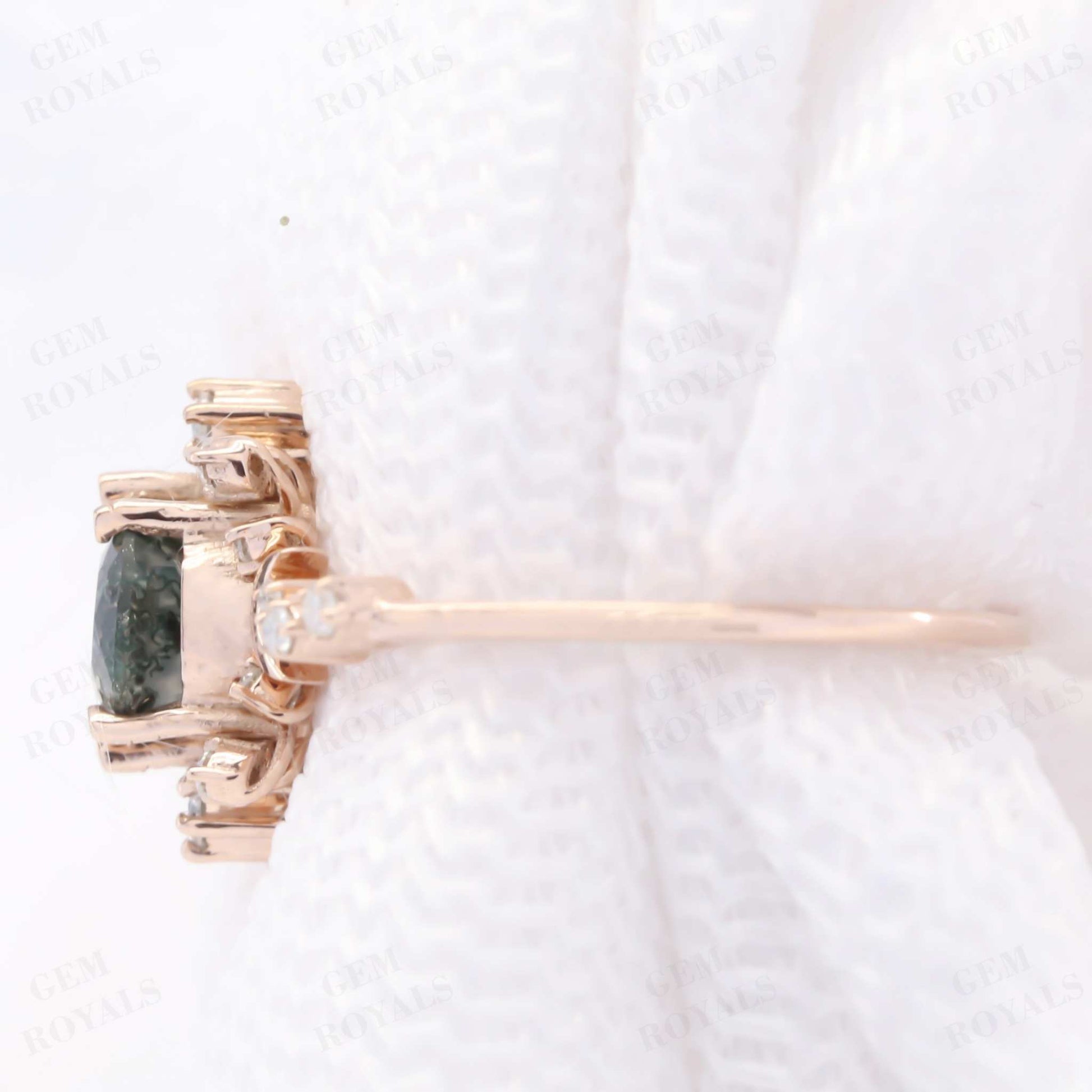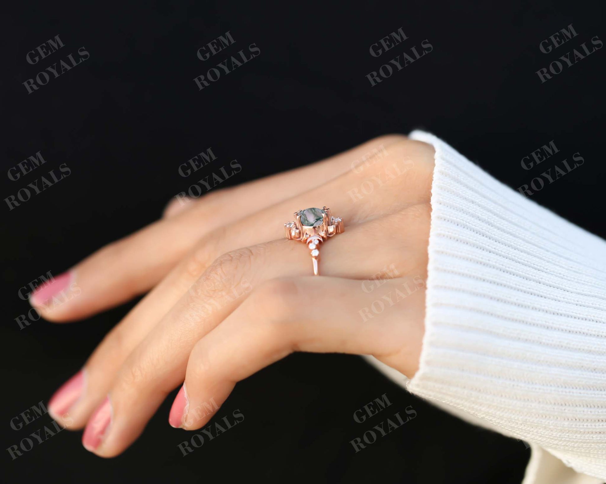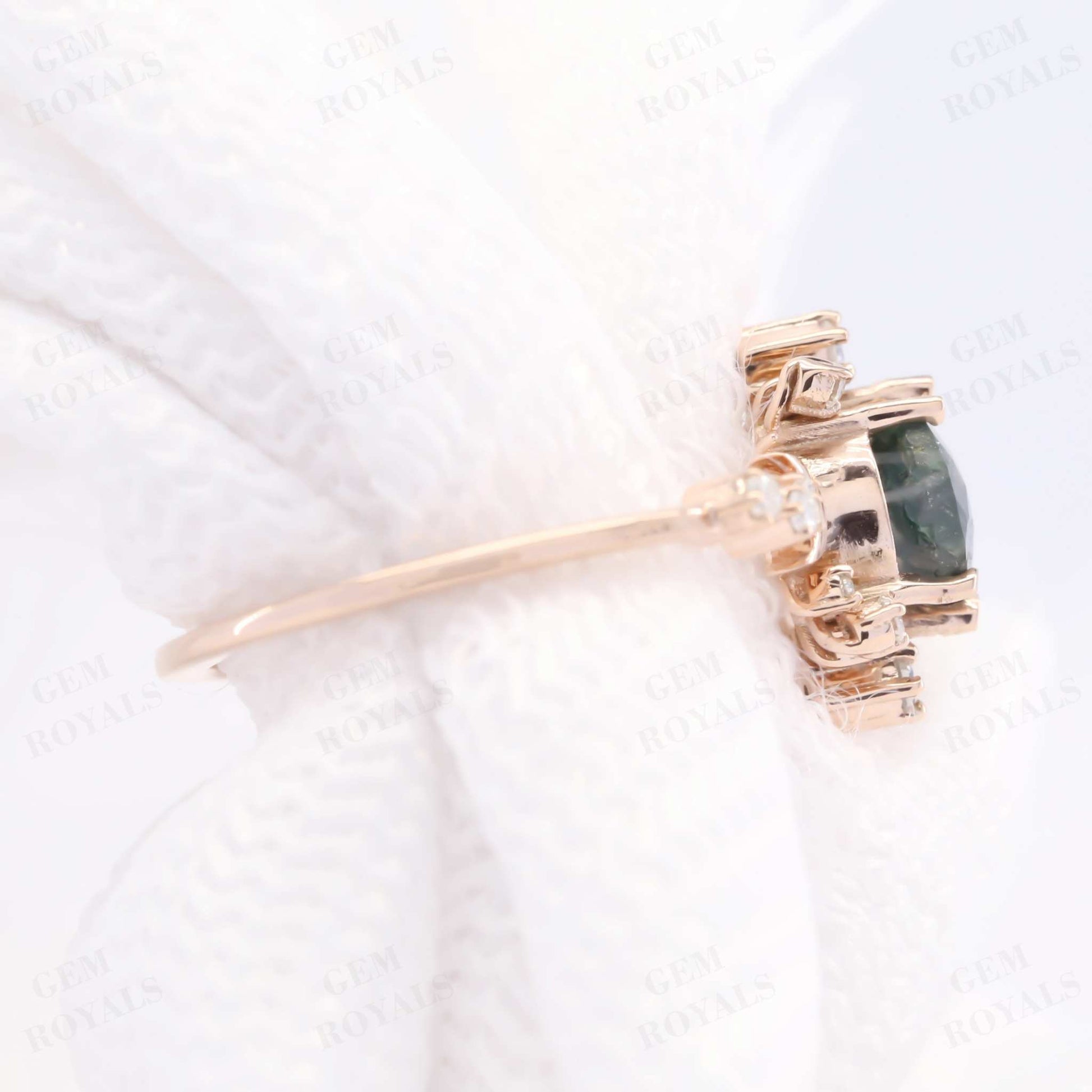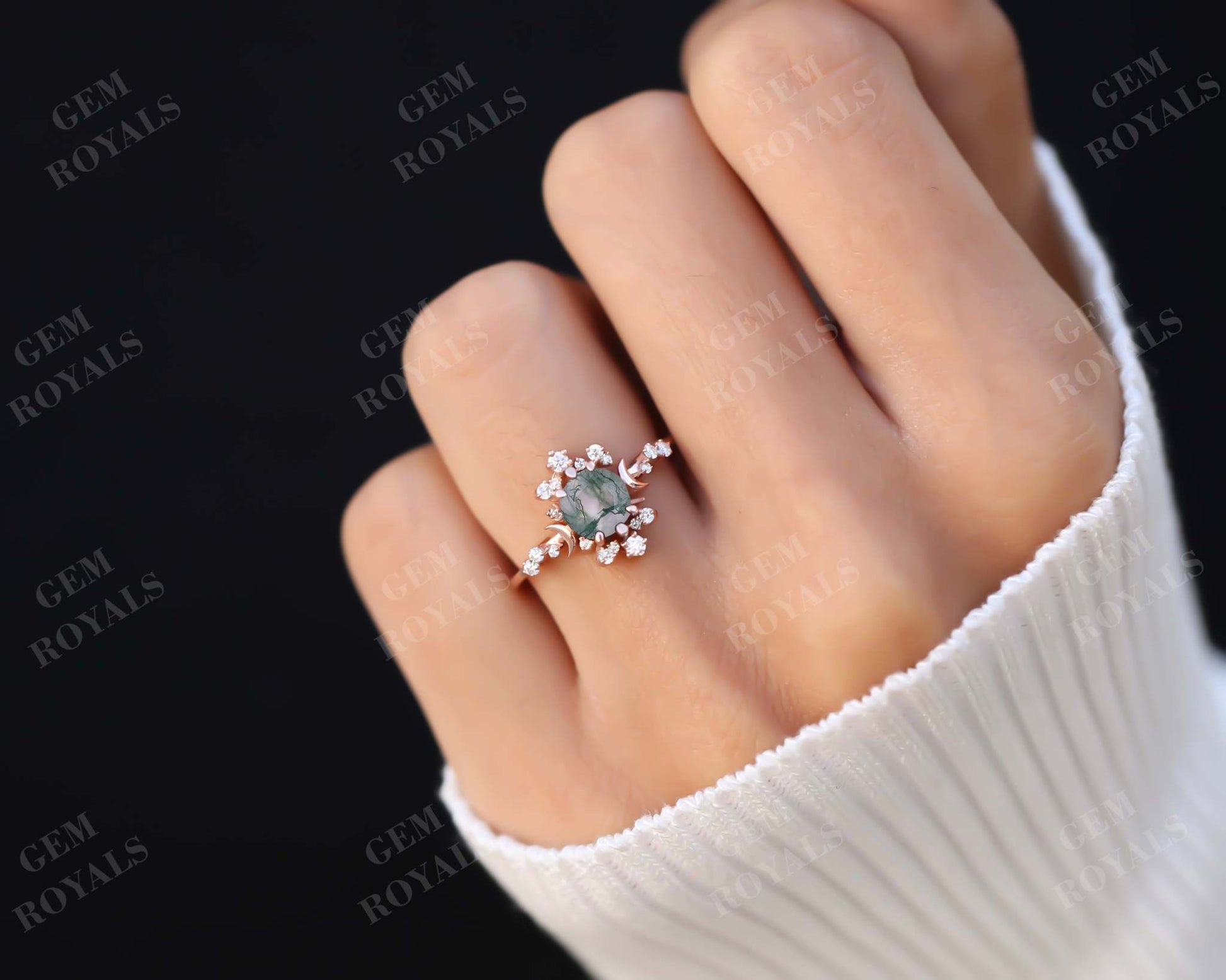 Art Deco Round Natural Green Moss Agate Engagement Ring
