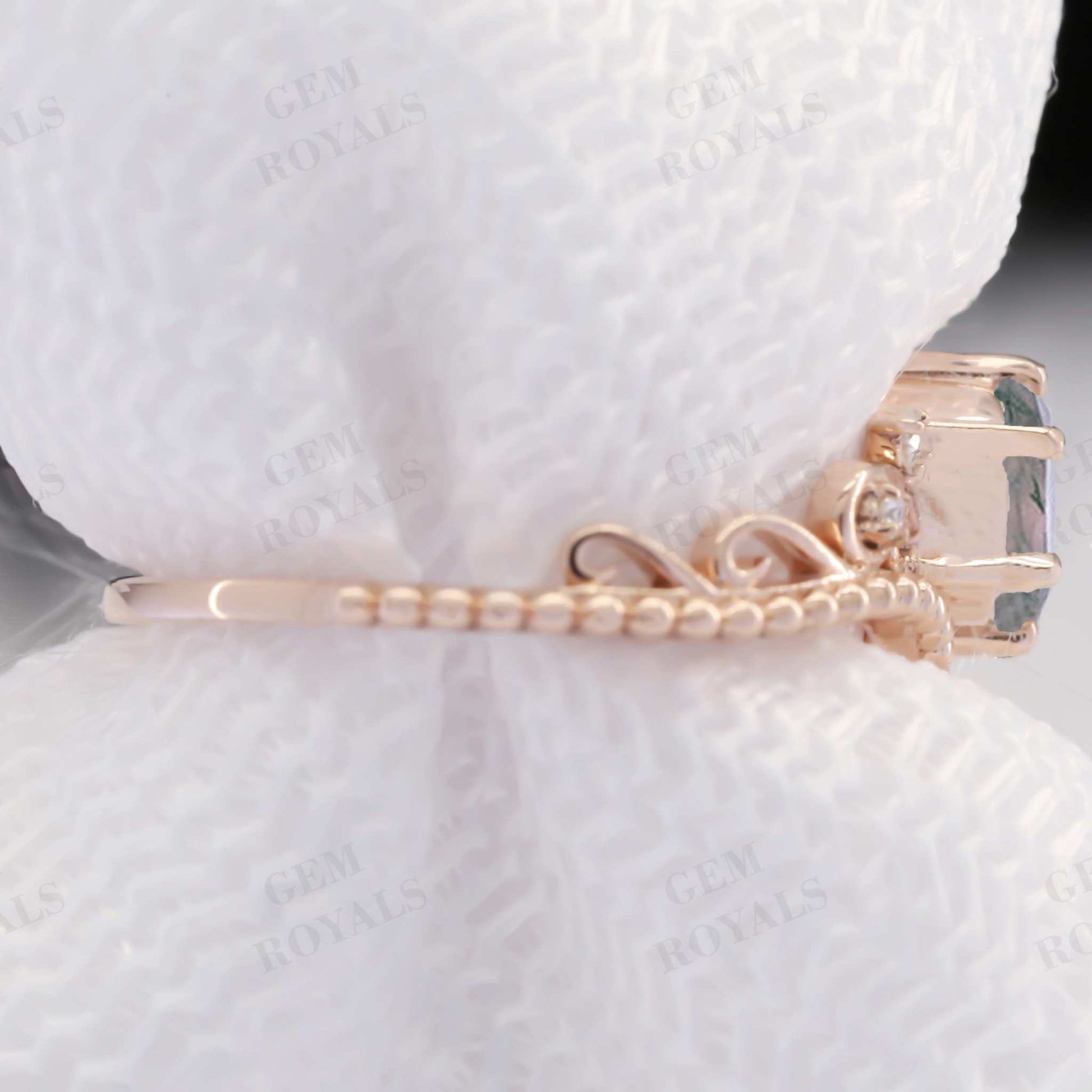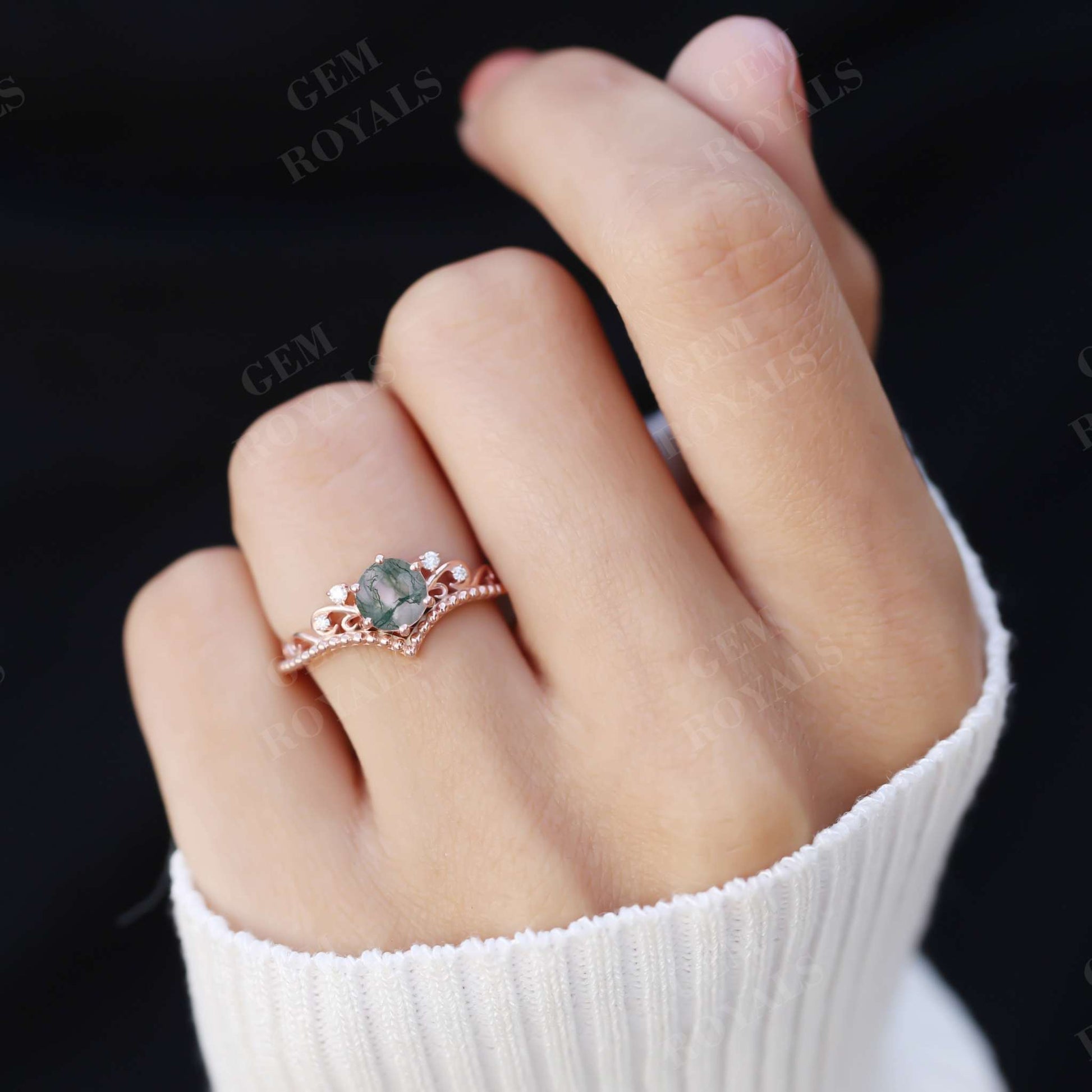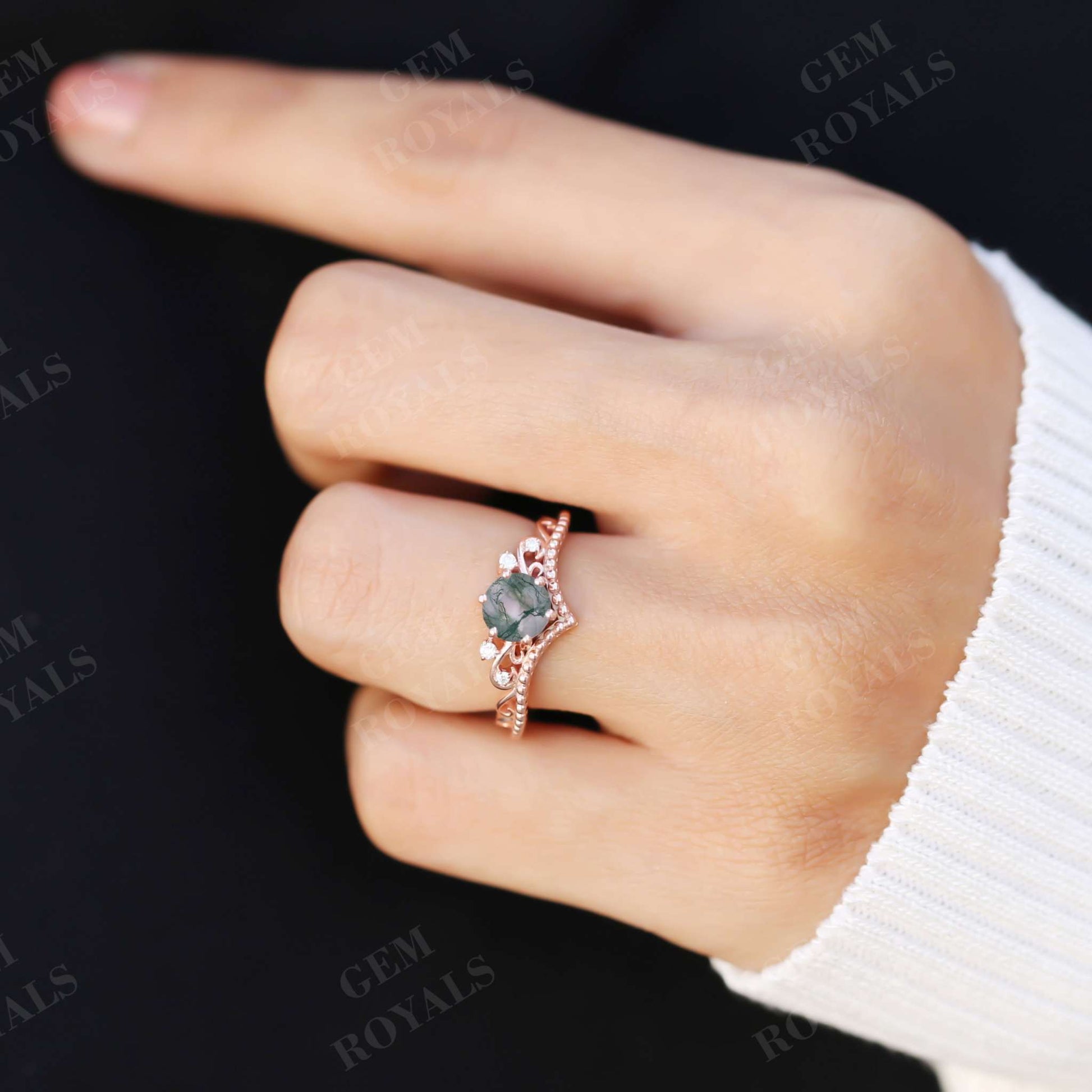Art Deco Round Natural Moss Agate Engagement Ring