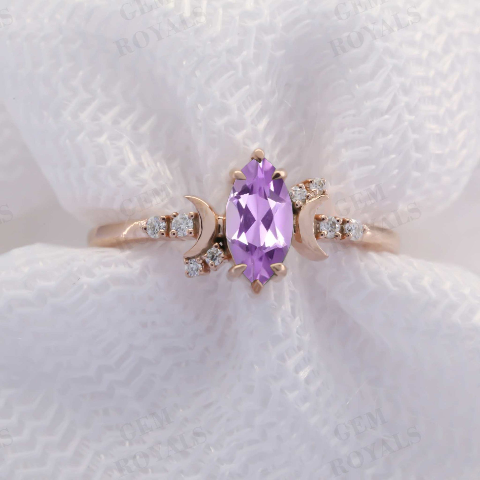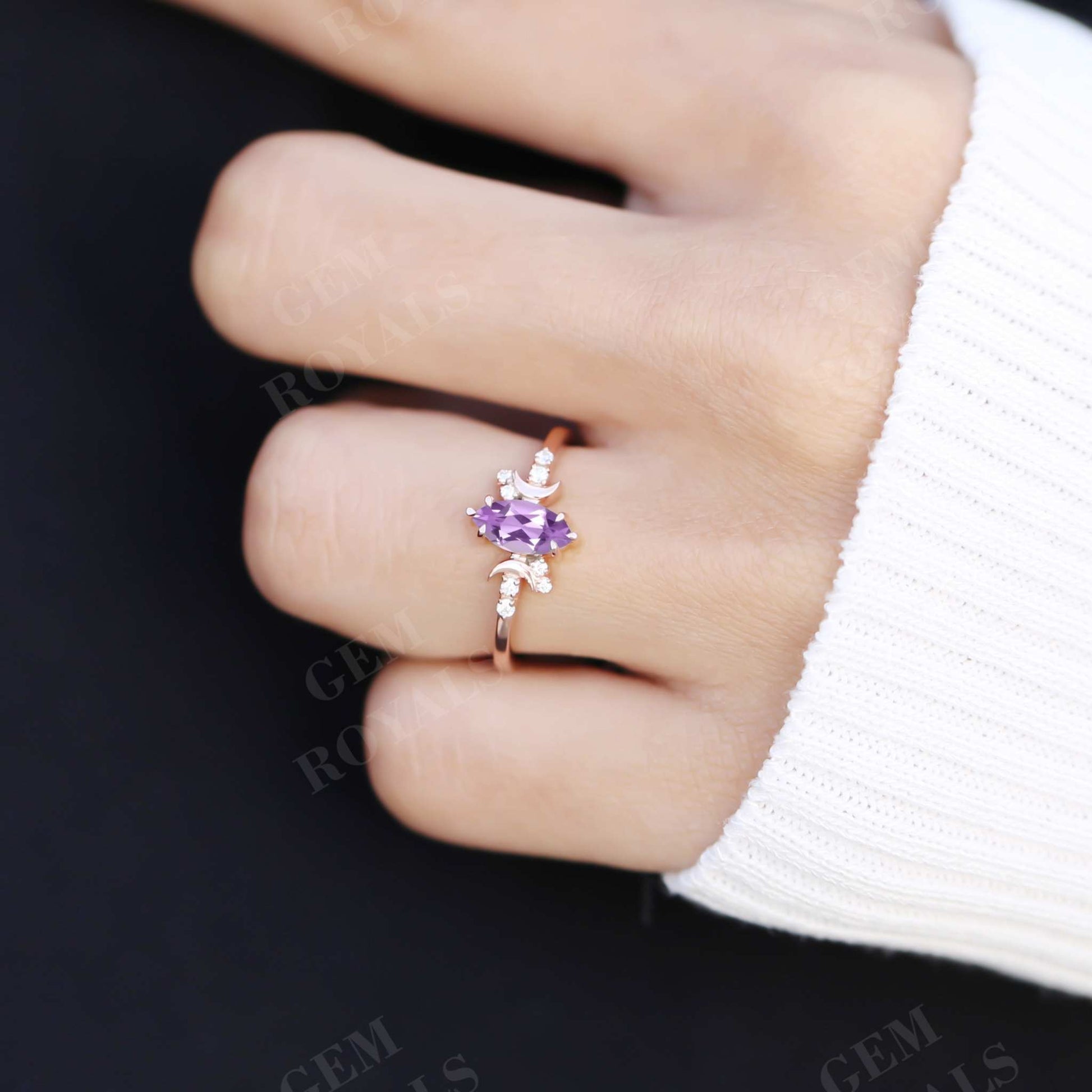 Celestial style Marquise Cut Natural Amethyst Engagement Ring