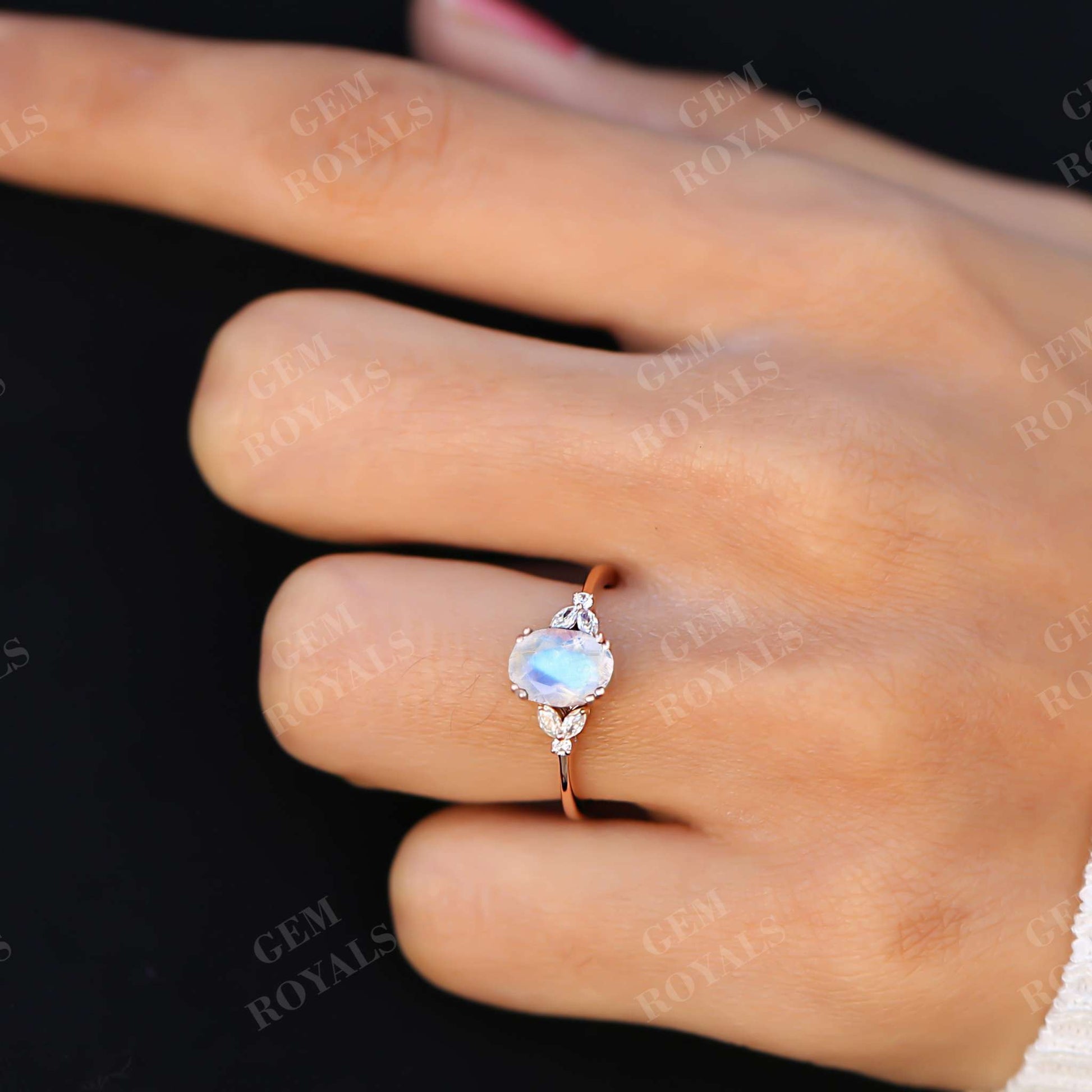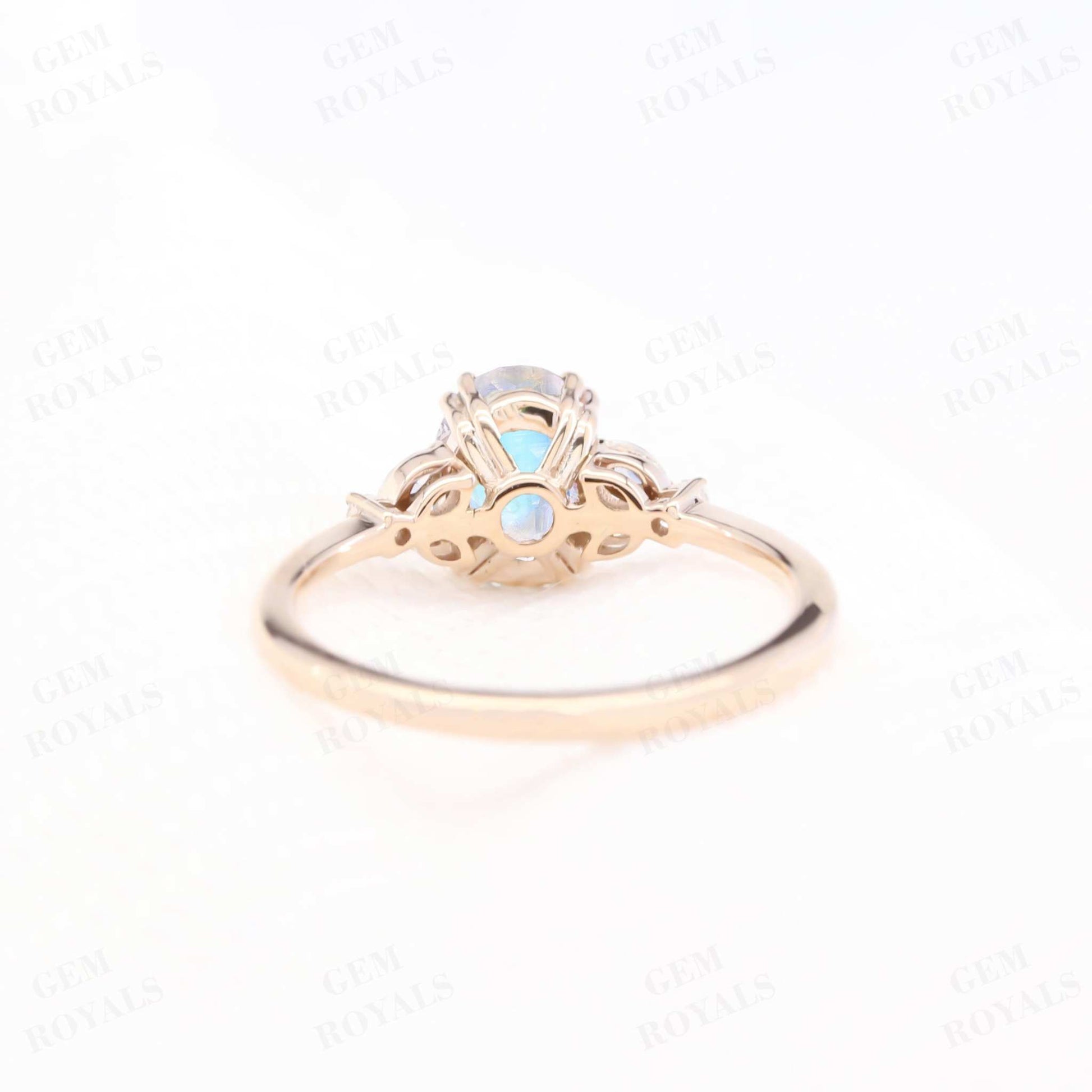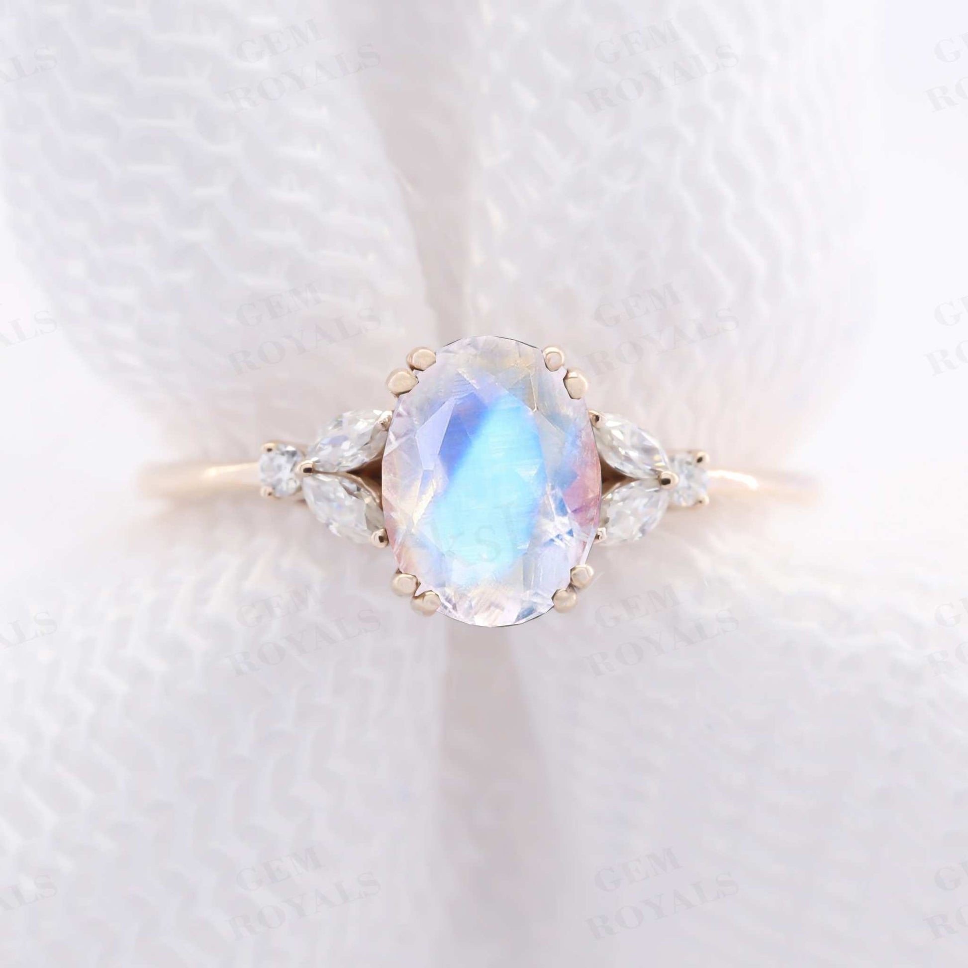 Cluster Oval Cut Rainbow Moonstone Engagement Ring