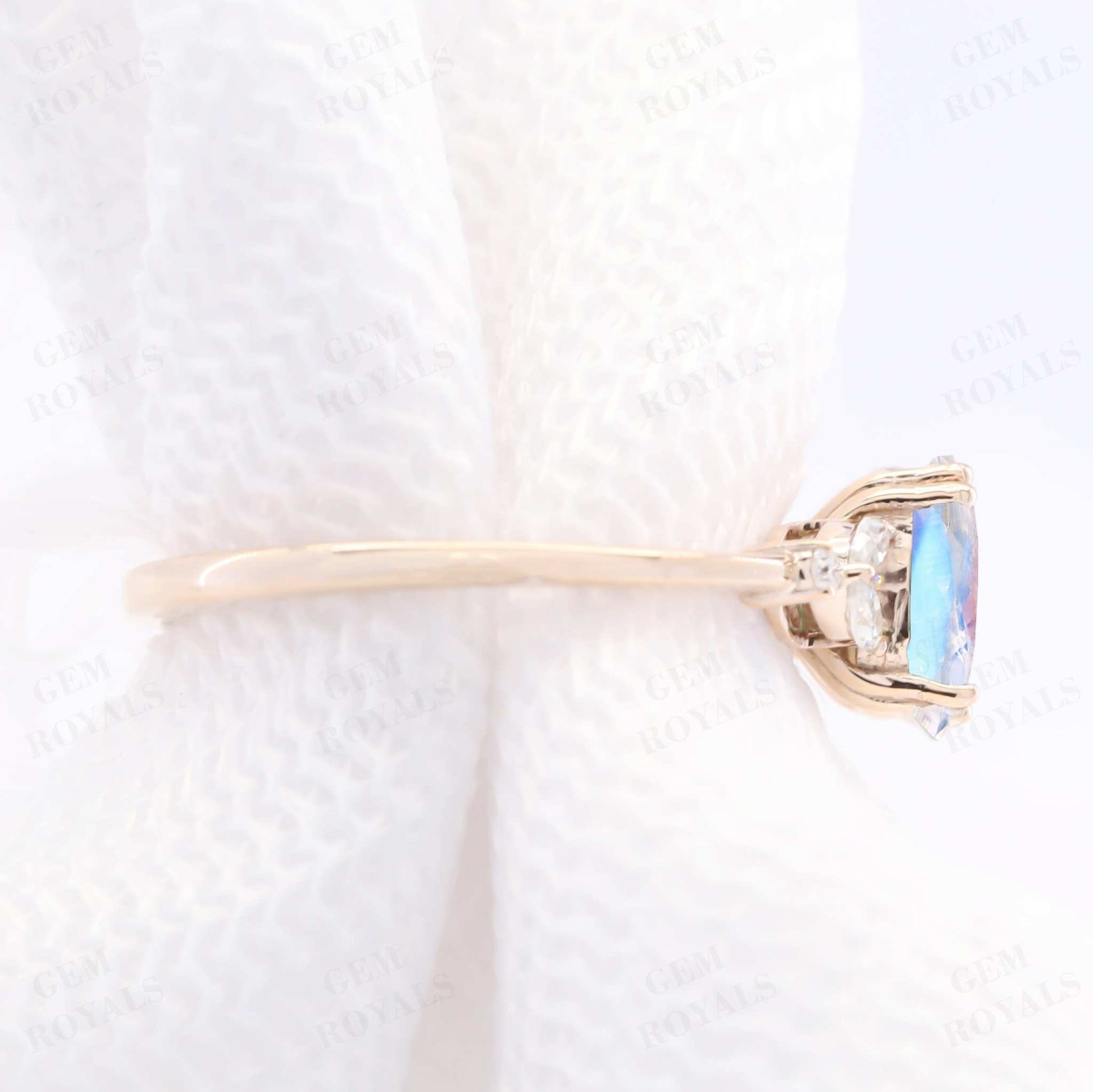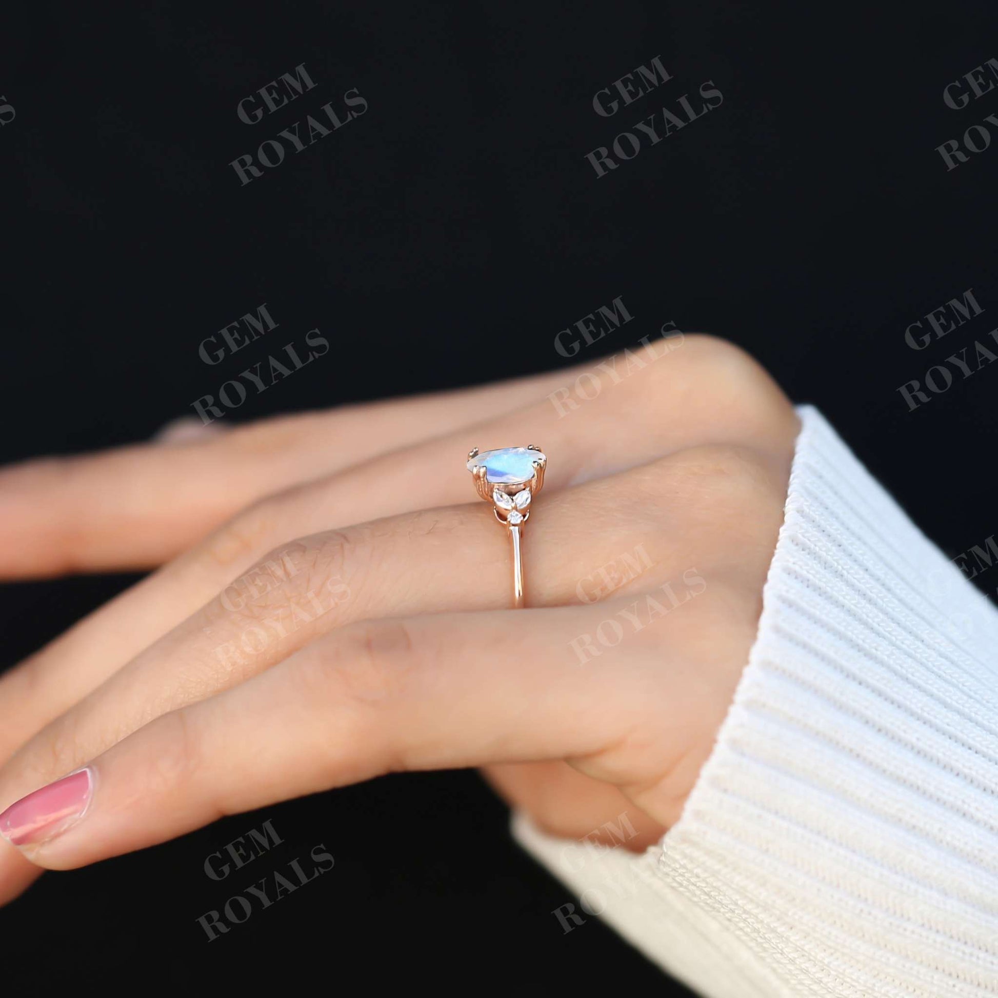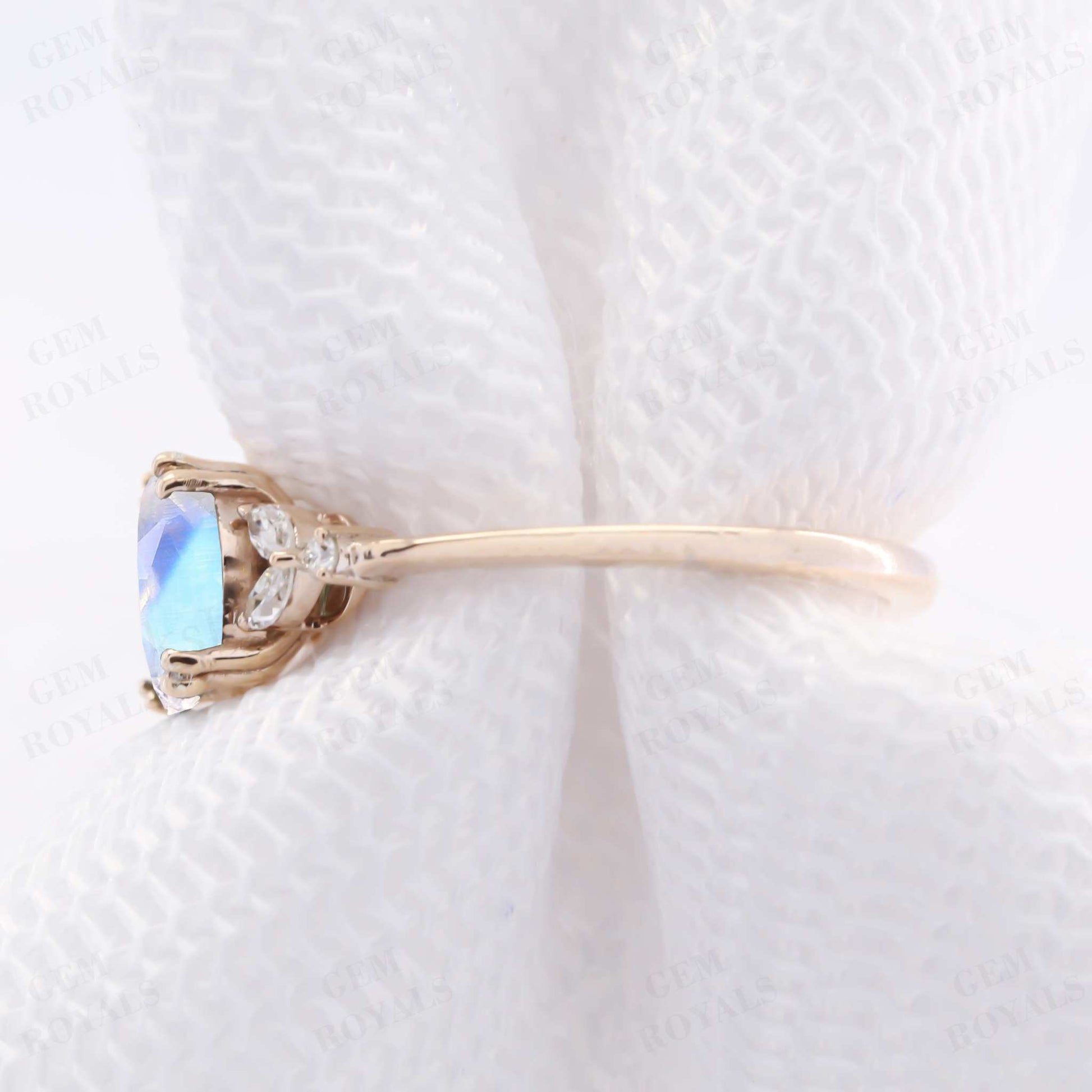 Cluster Oval Cut Rainbow Moonstone Engagement Ring