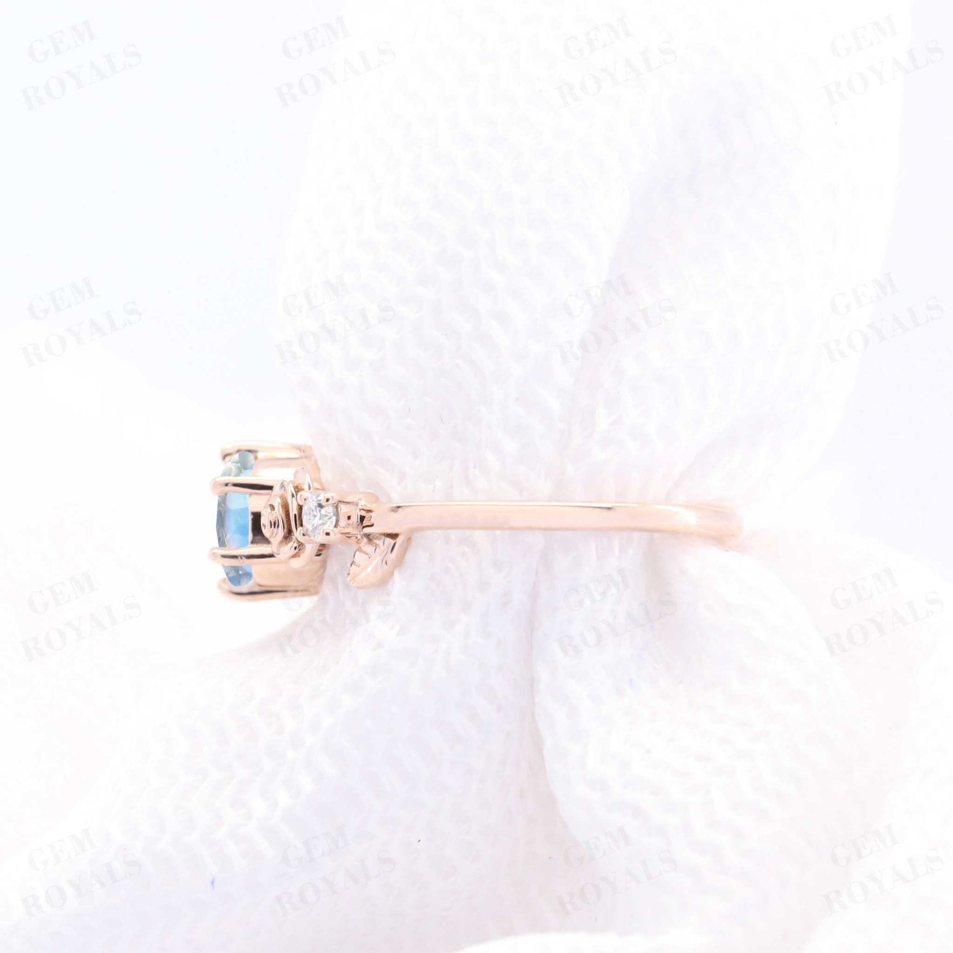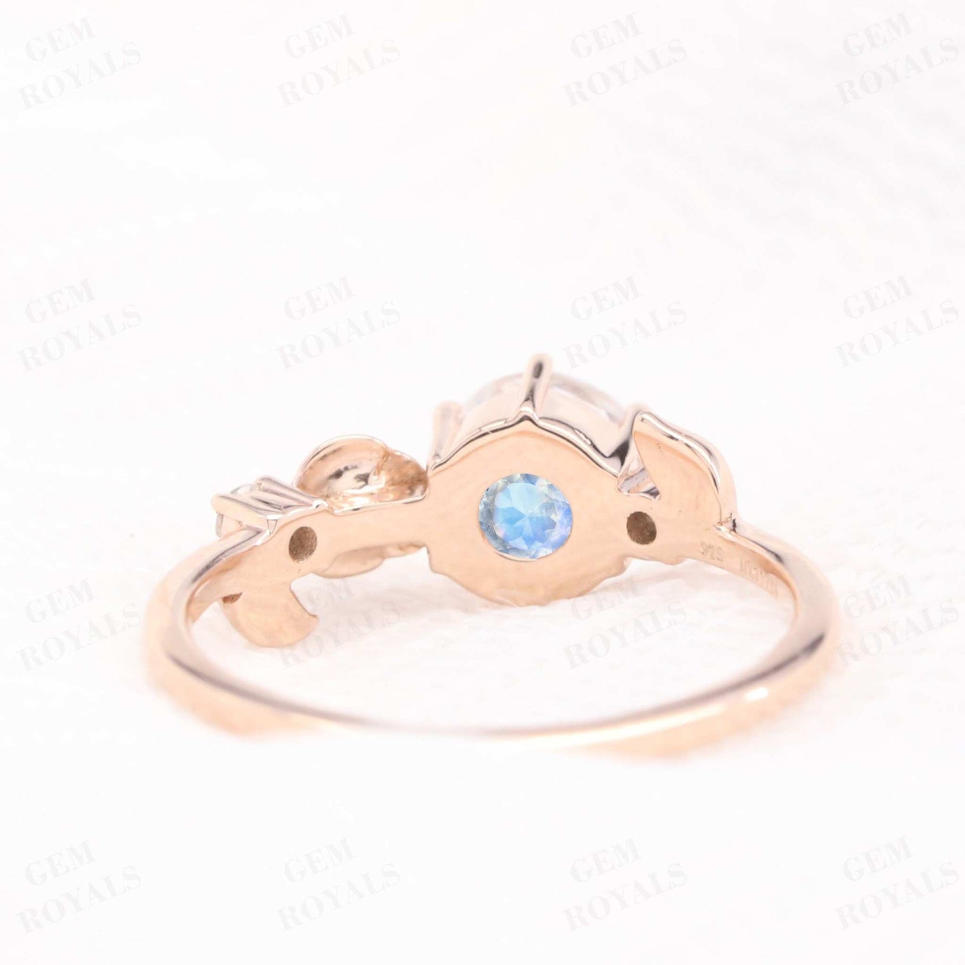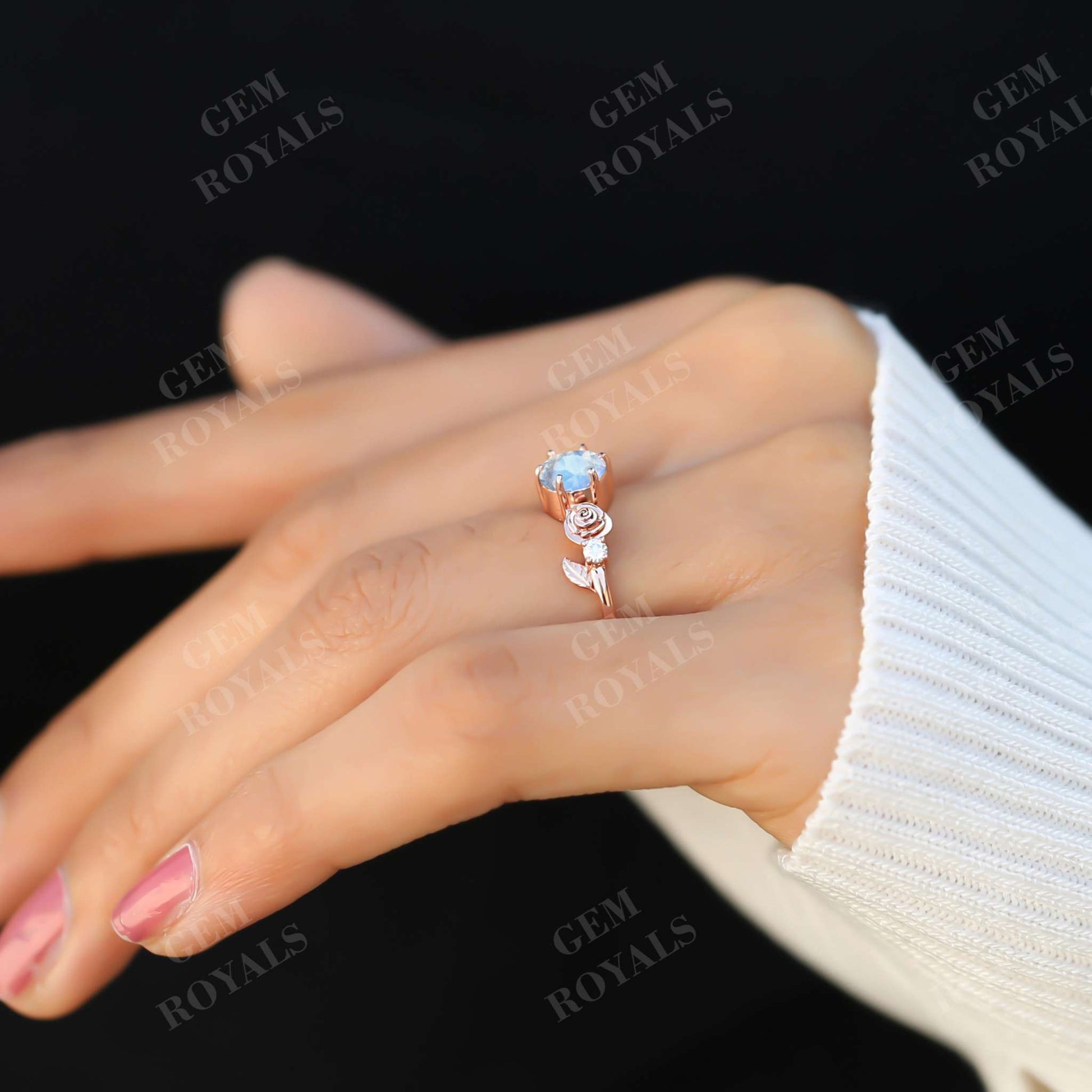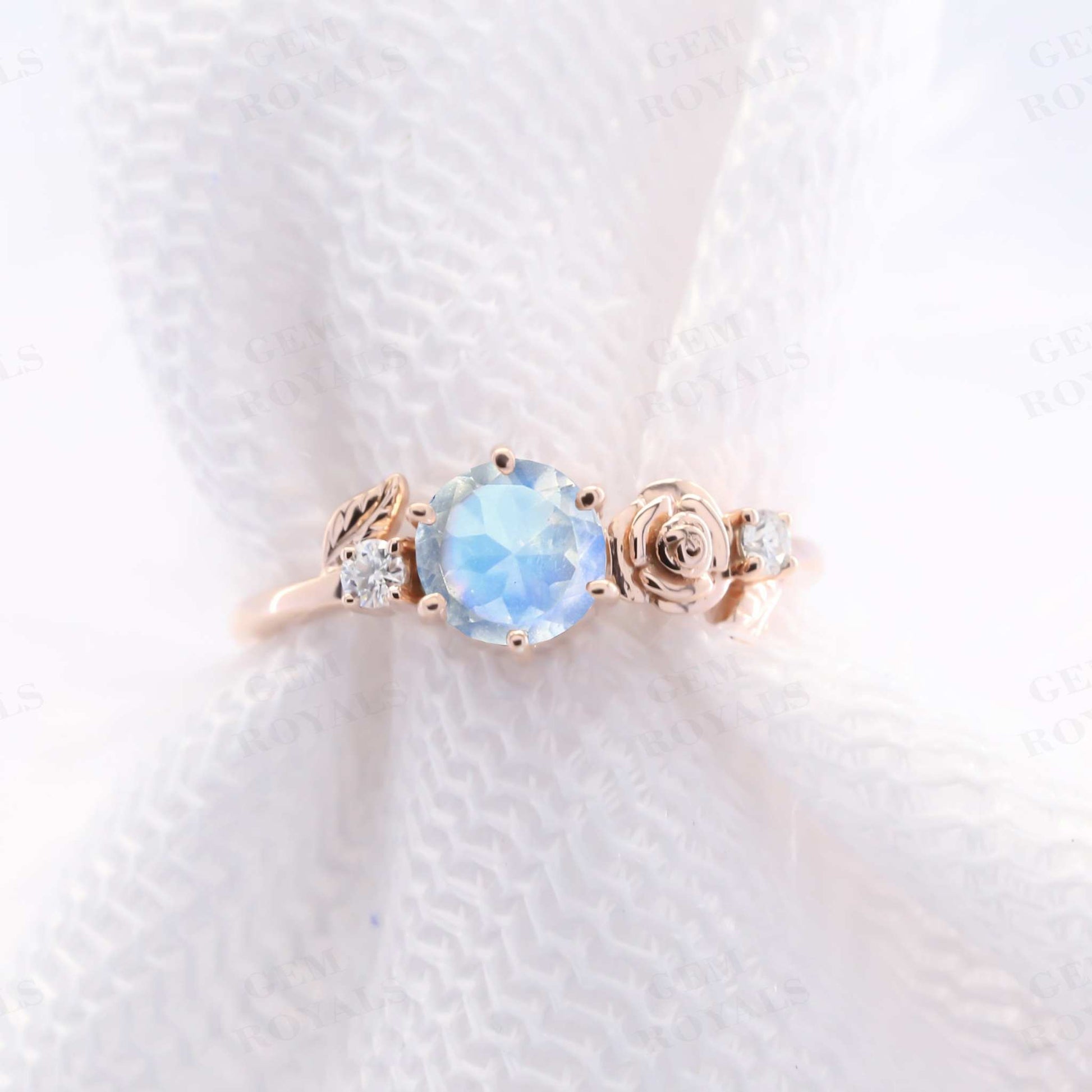 Dainty Flower Round Cut Moonstone Engagement Ring