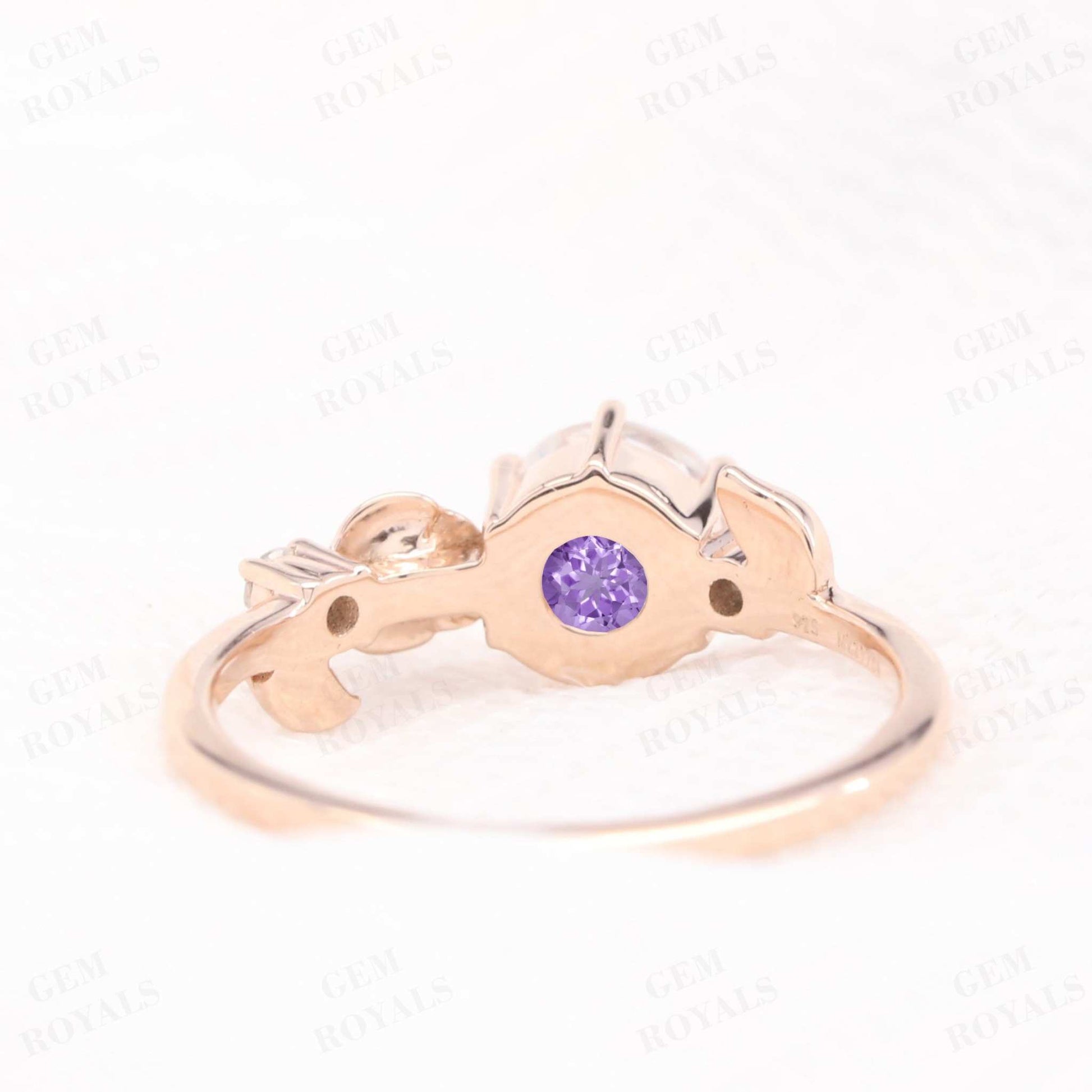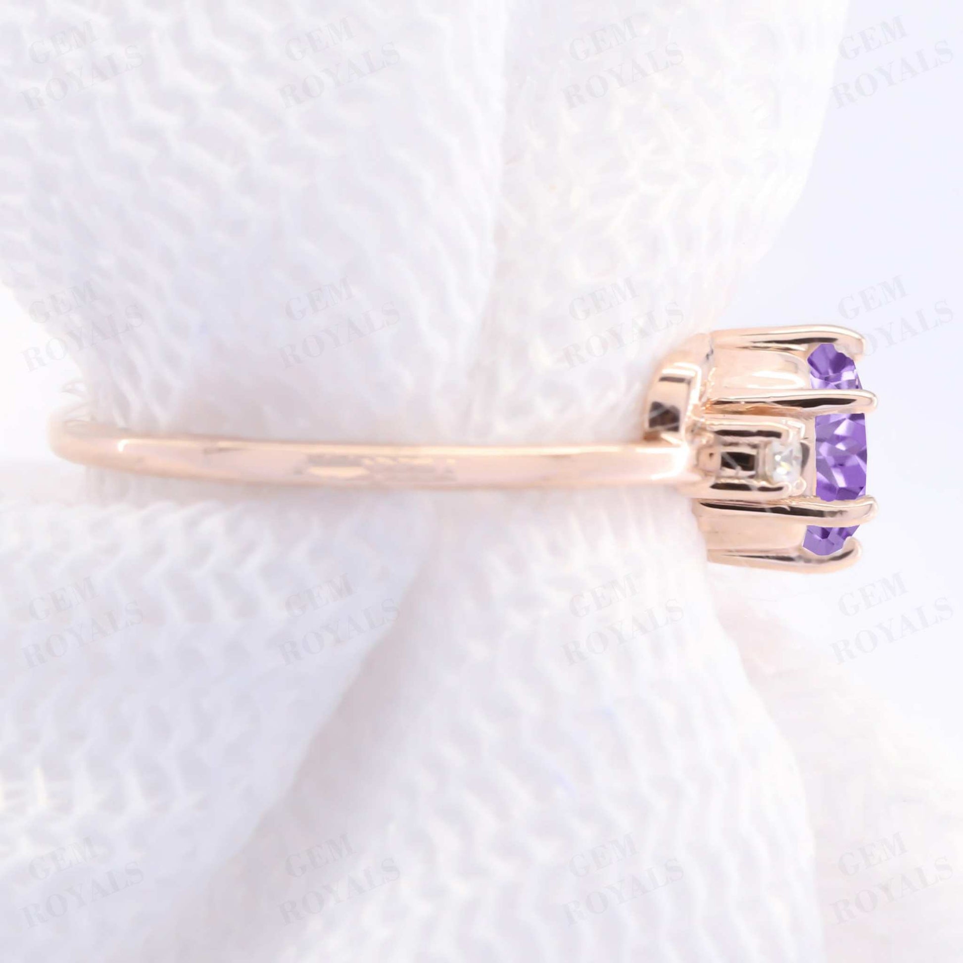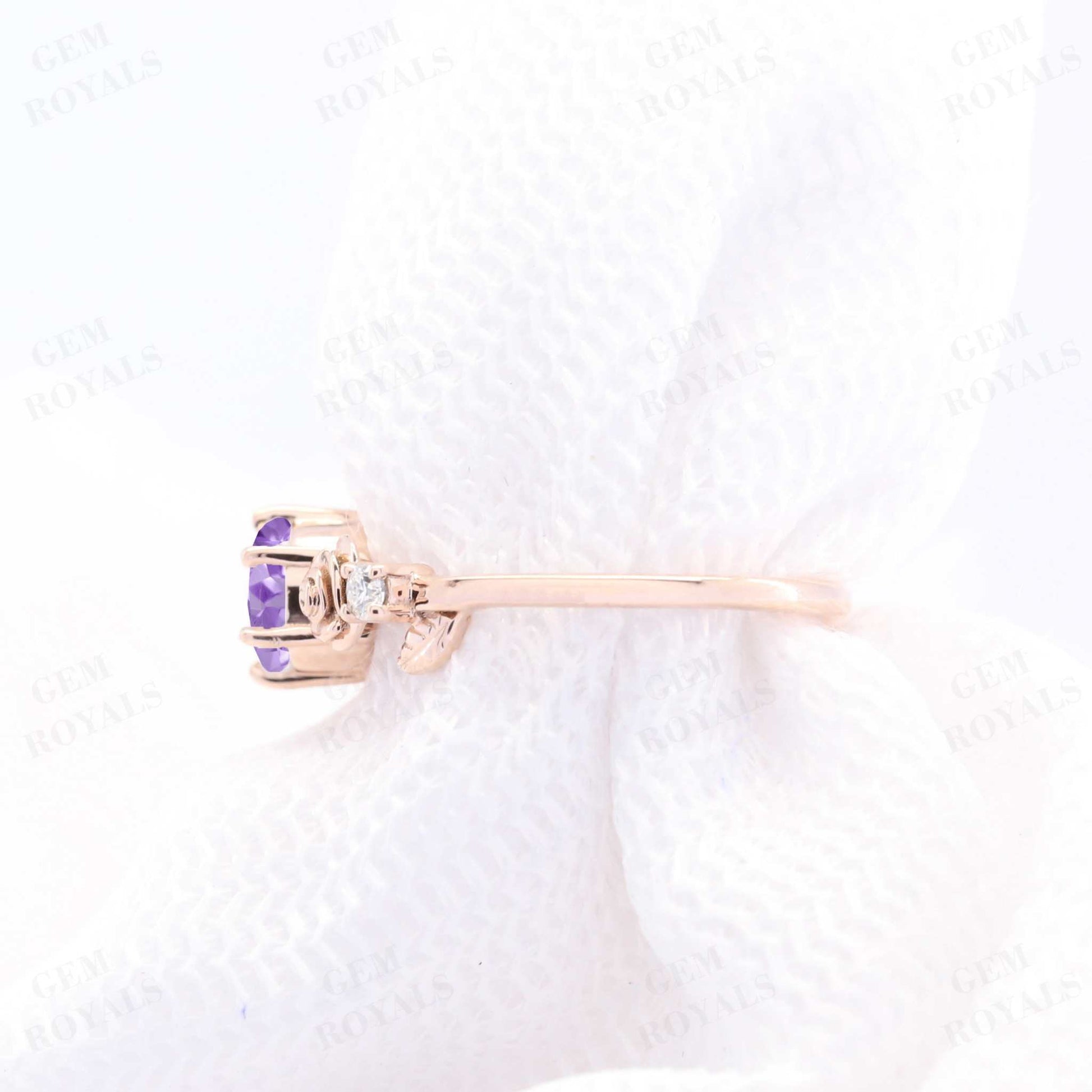 Dainty Flower Round Natural Amethyst Engagement Ring