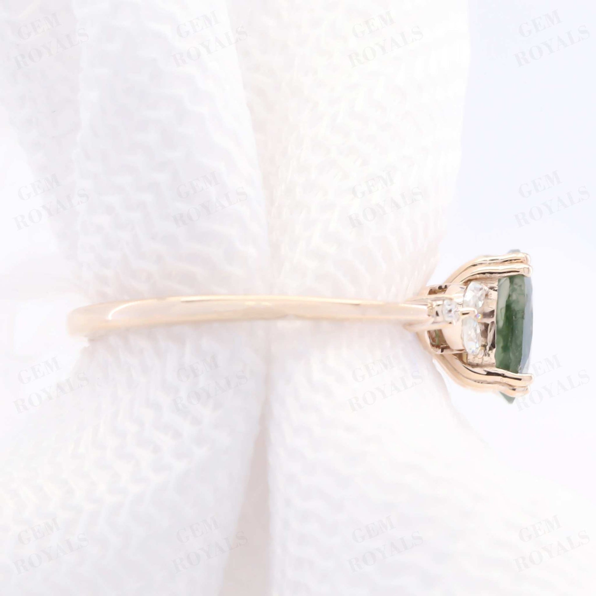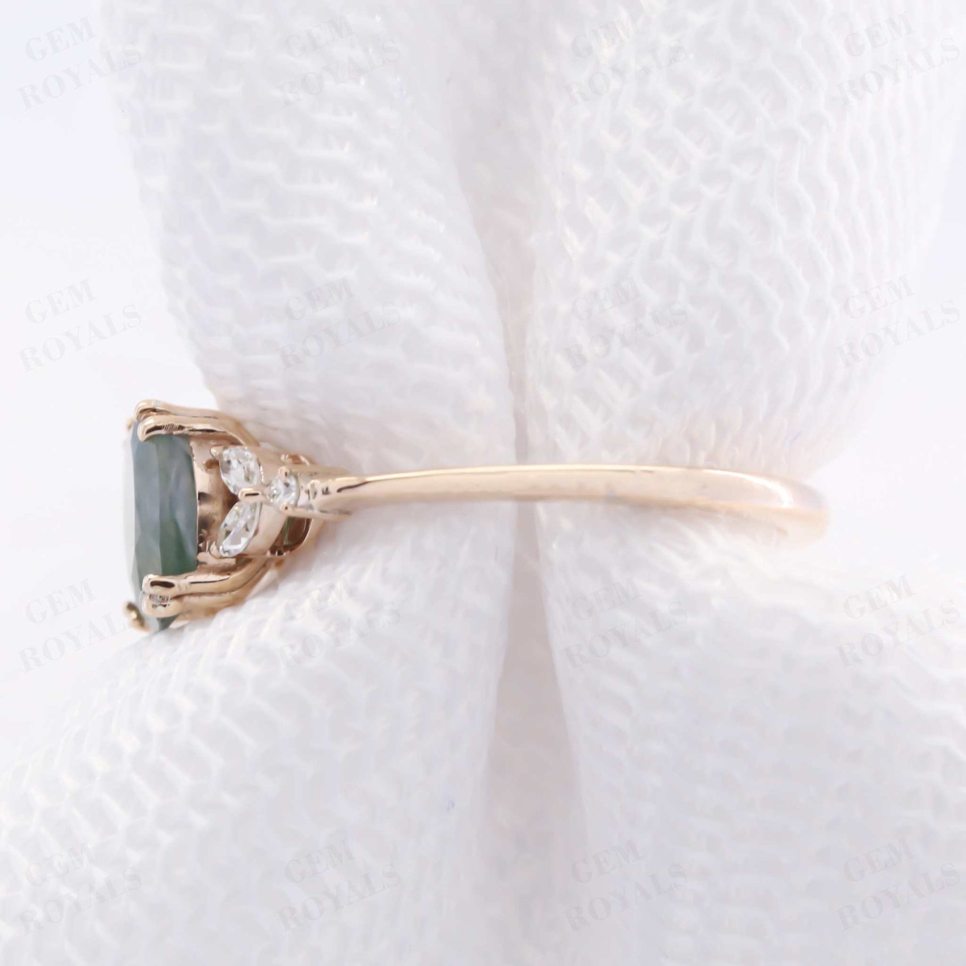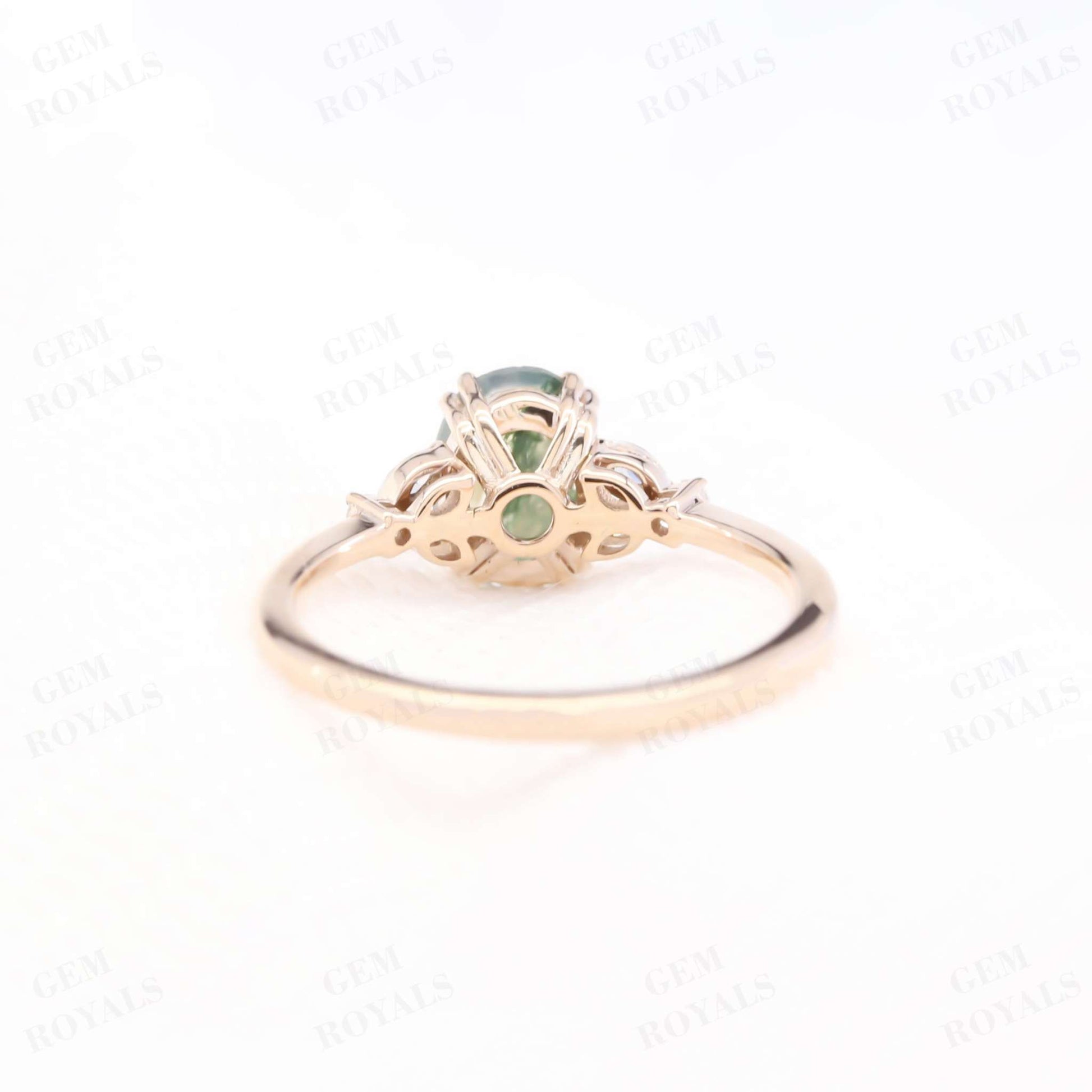 Unique Cluster Oval Green Moss Agate Engagement Ring