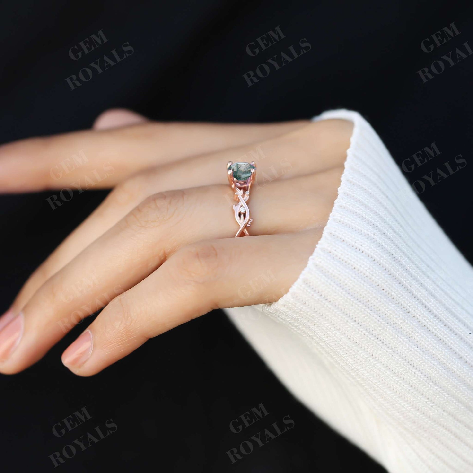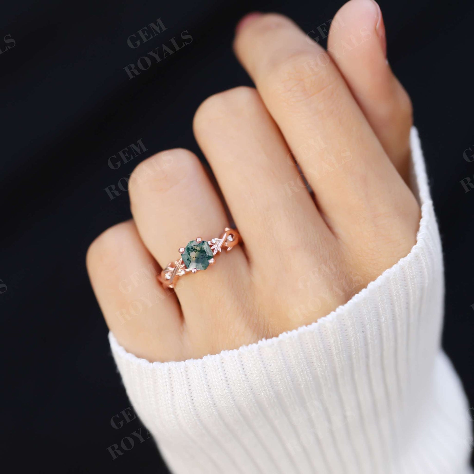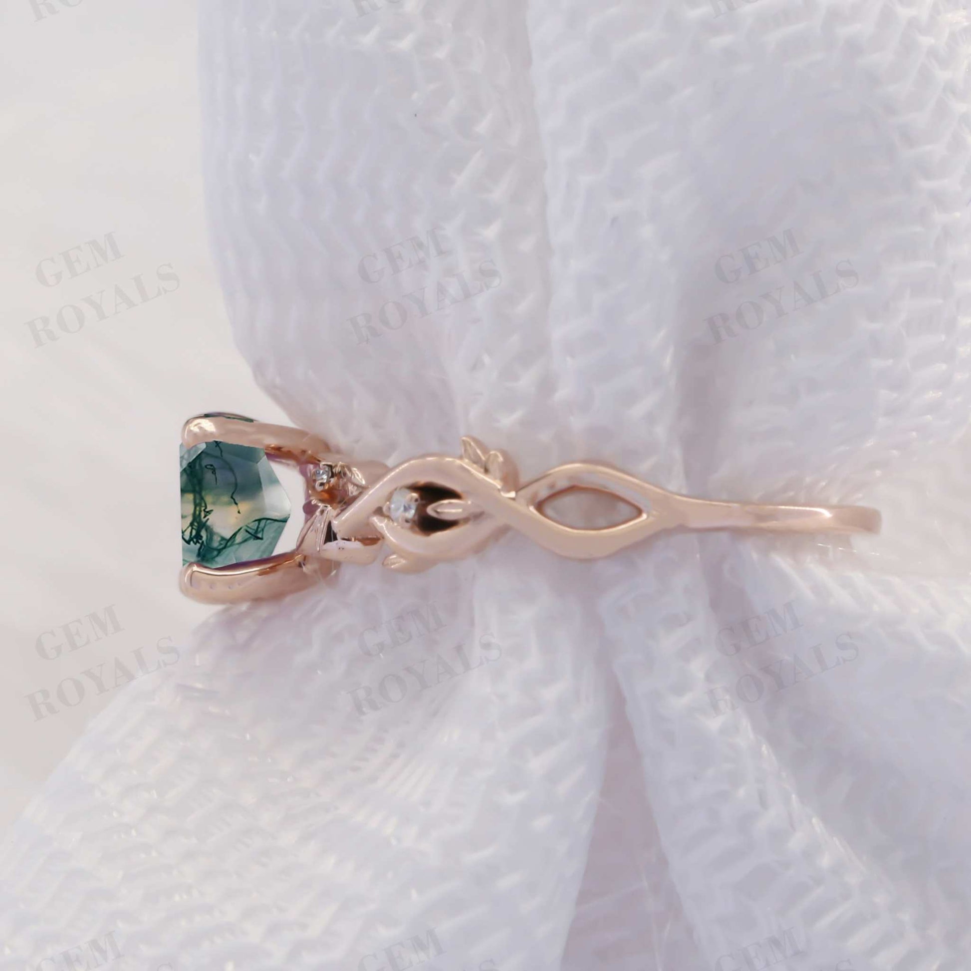 Unique Hexagon Cut Natural Moss Agate Engagement Ring
