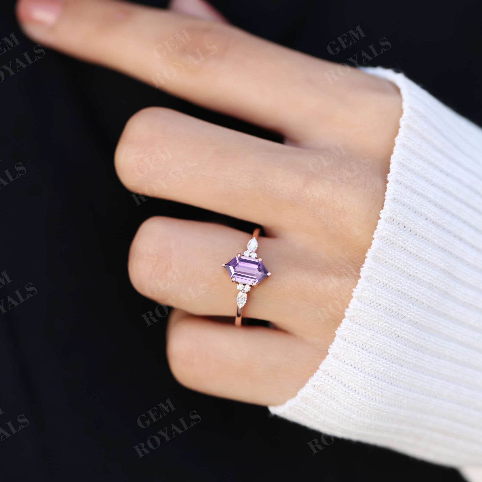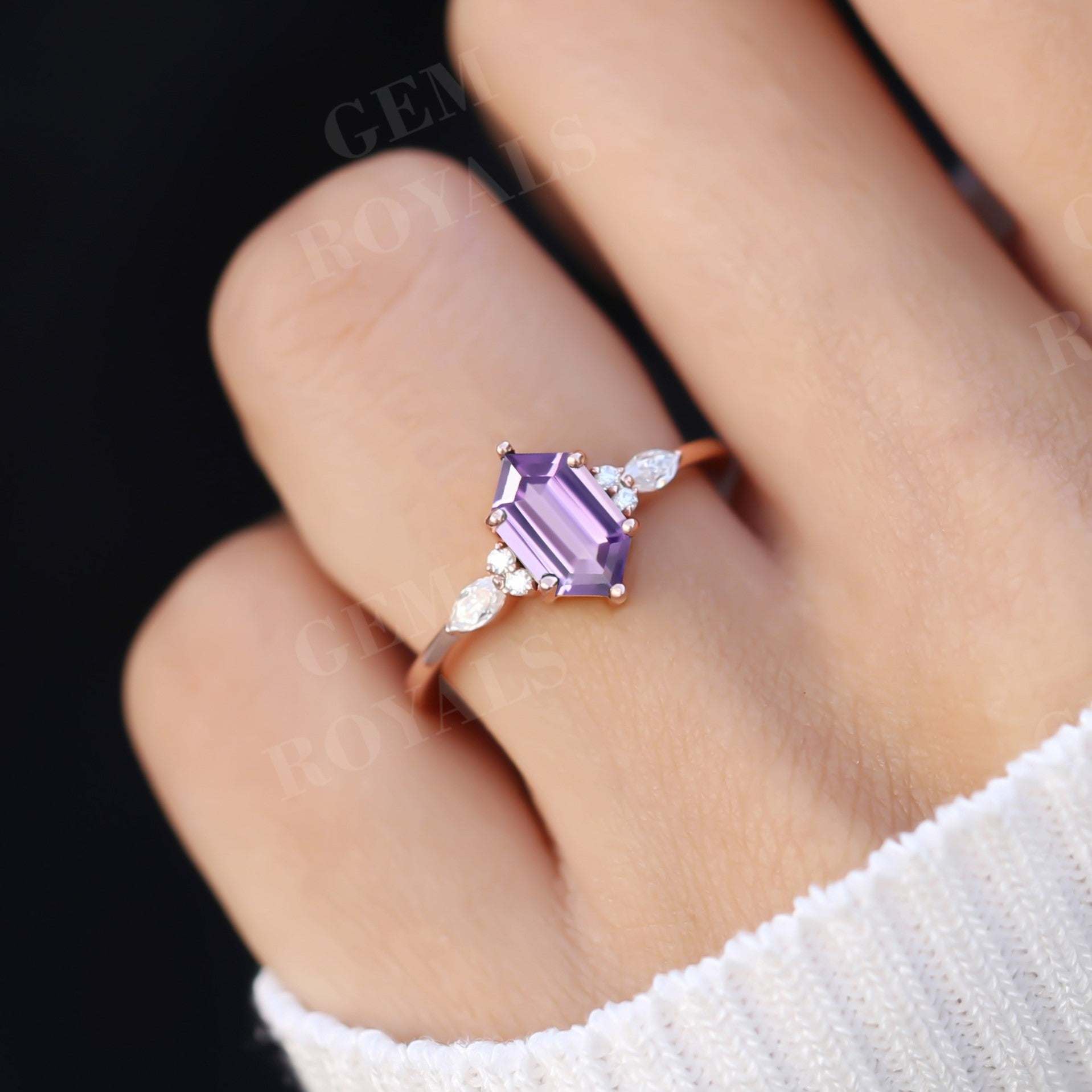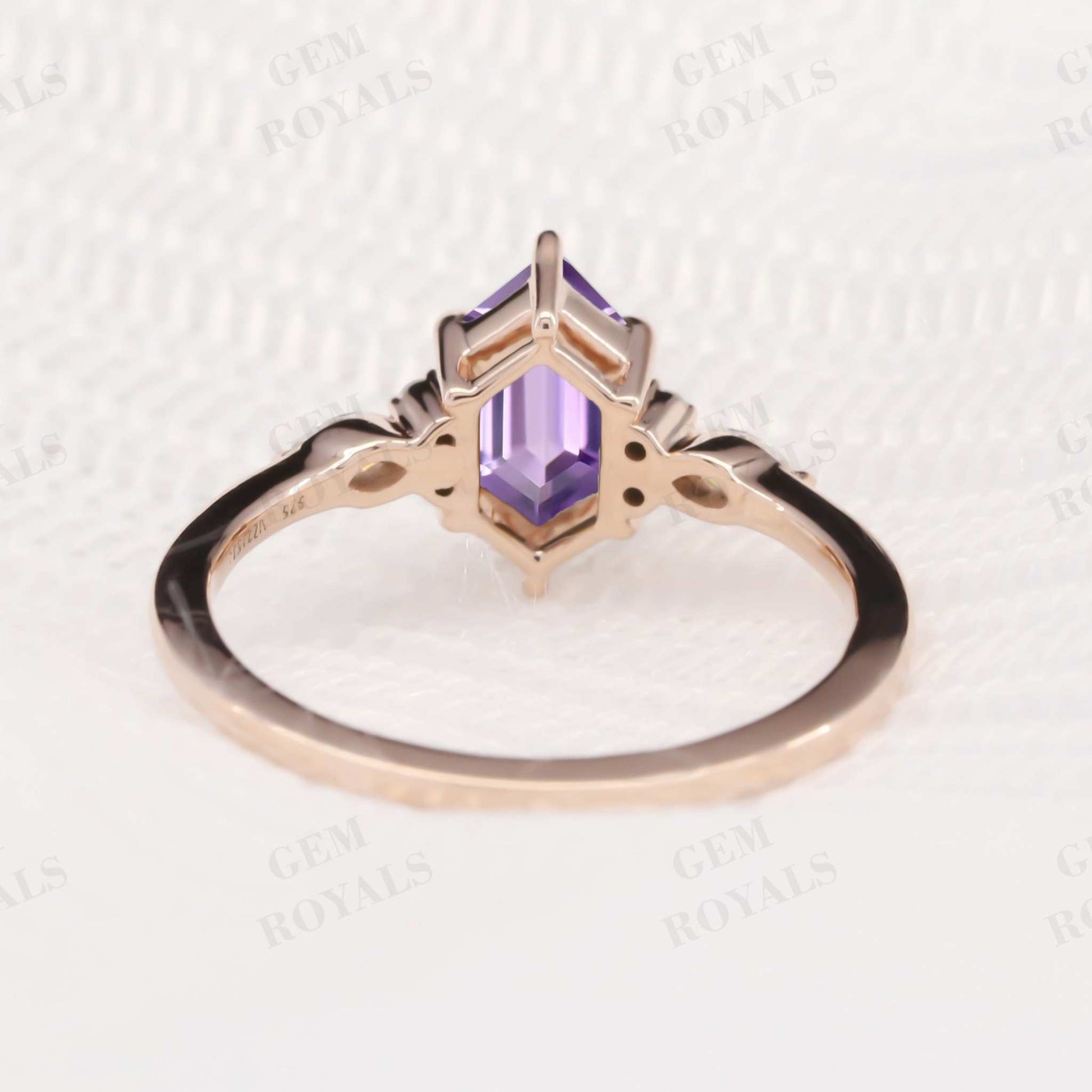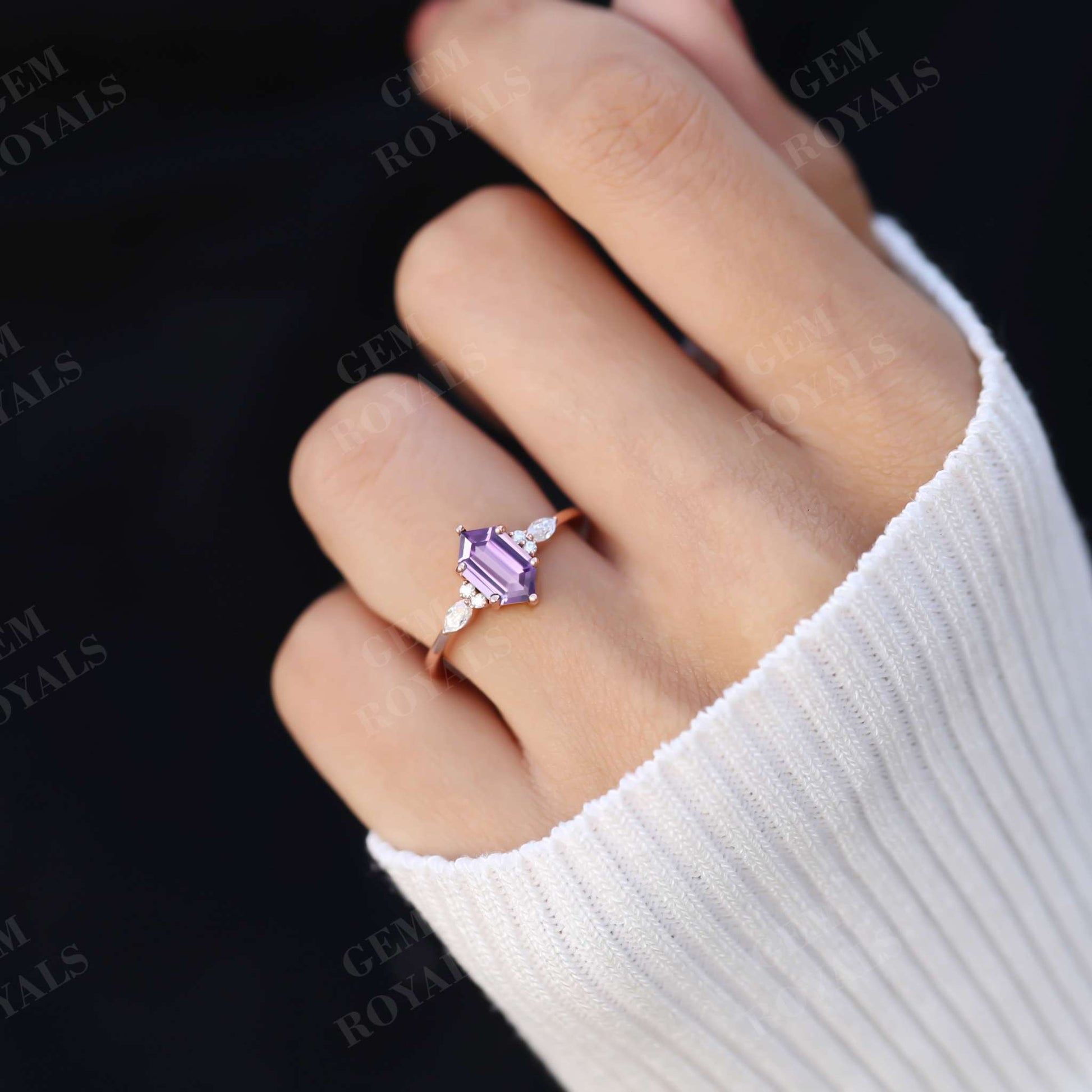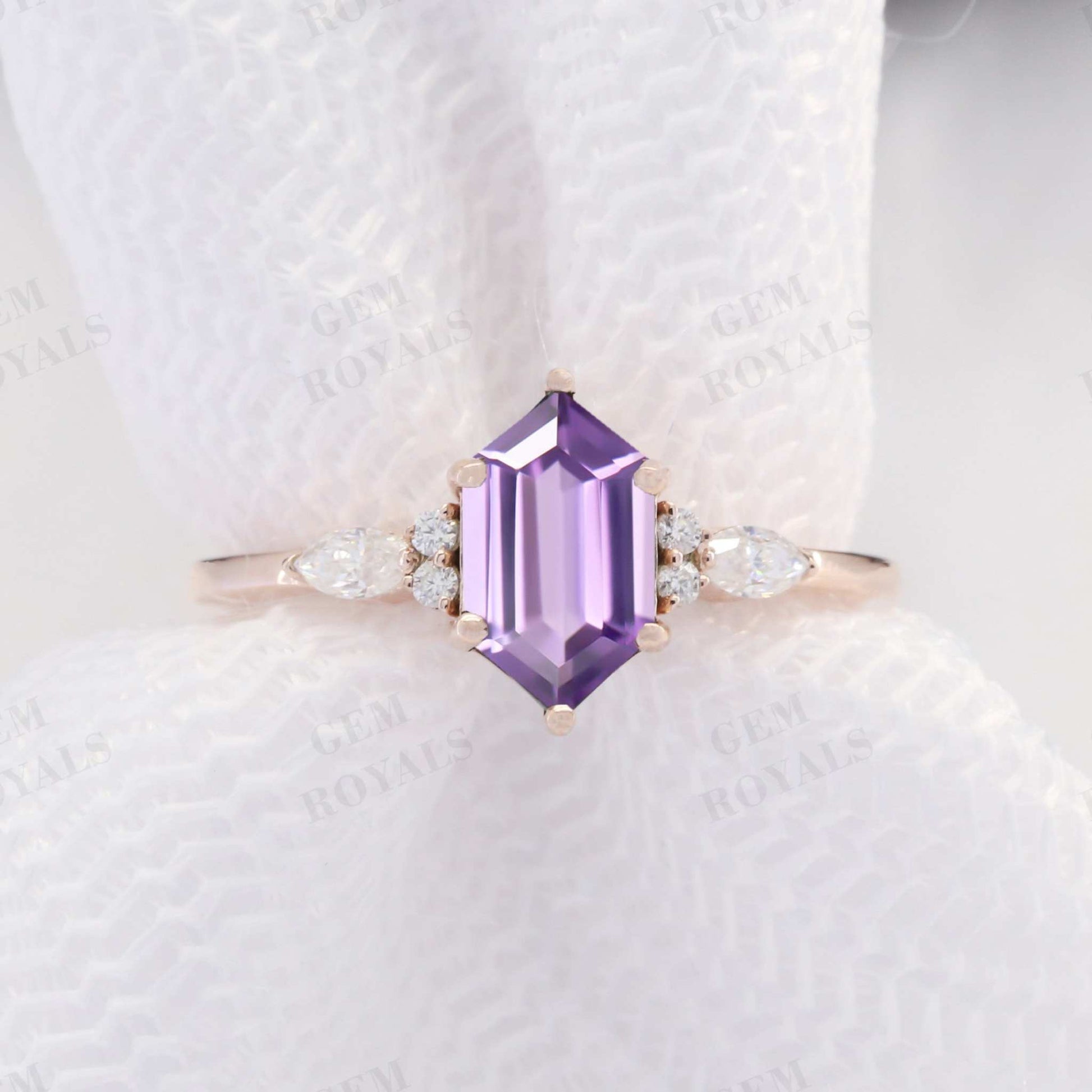 Unique Long Hexagon Purple Amethyst Engagement Ring