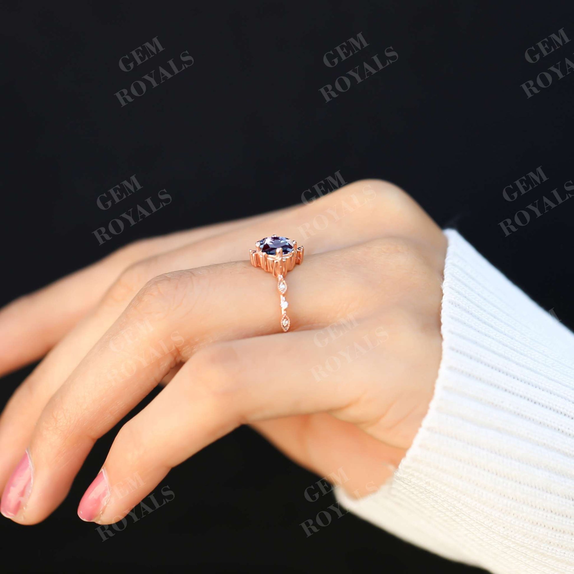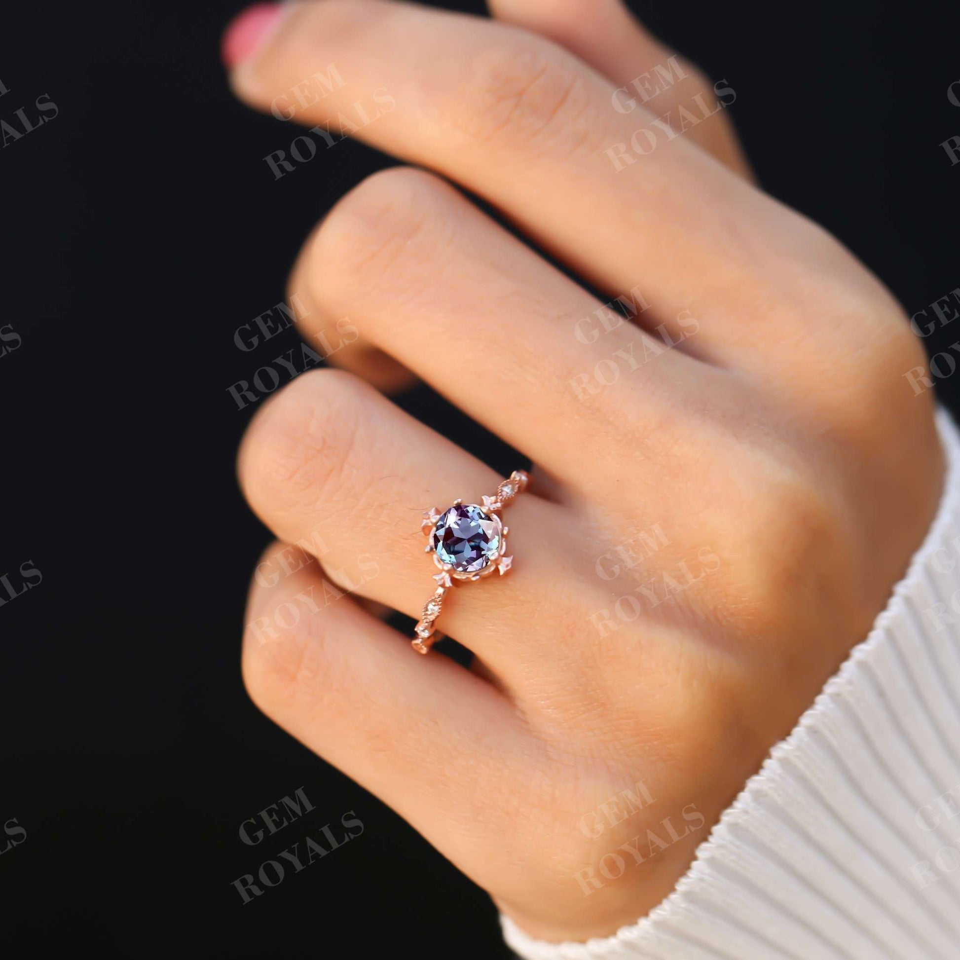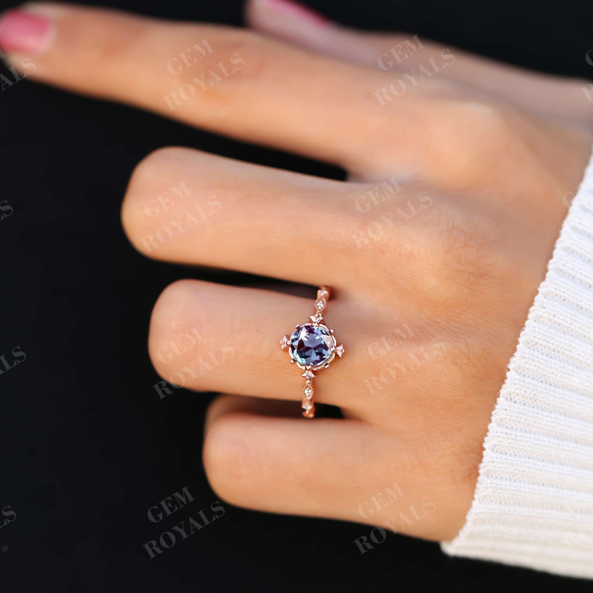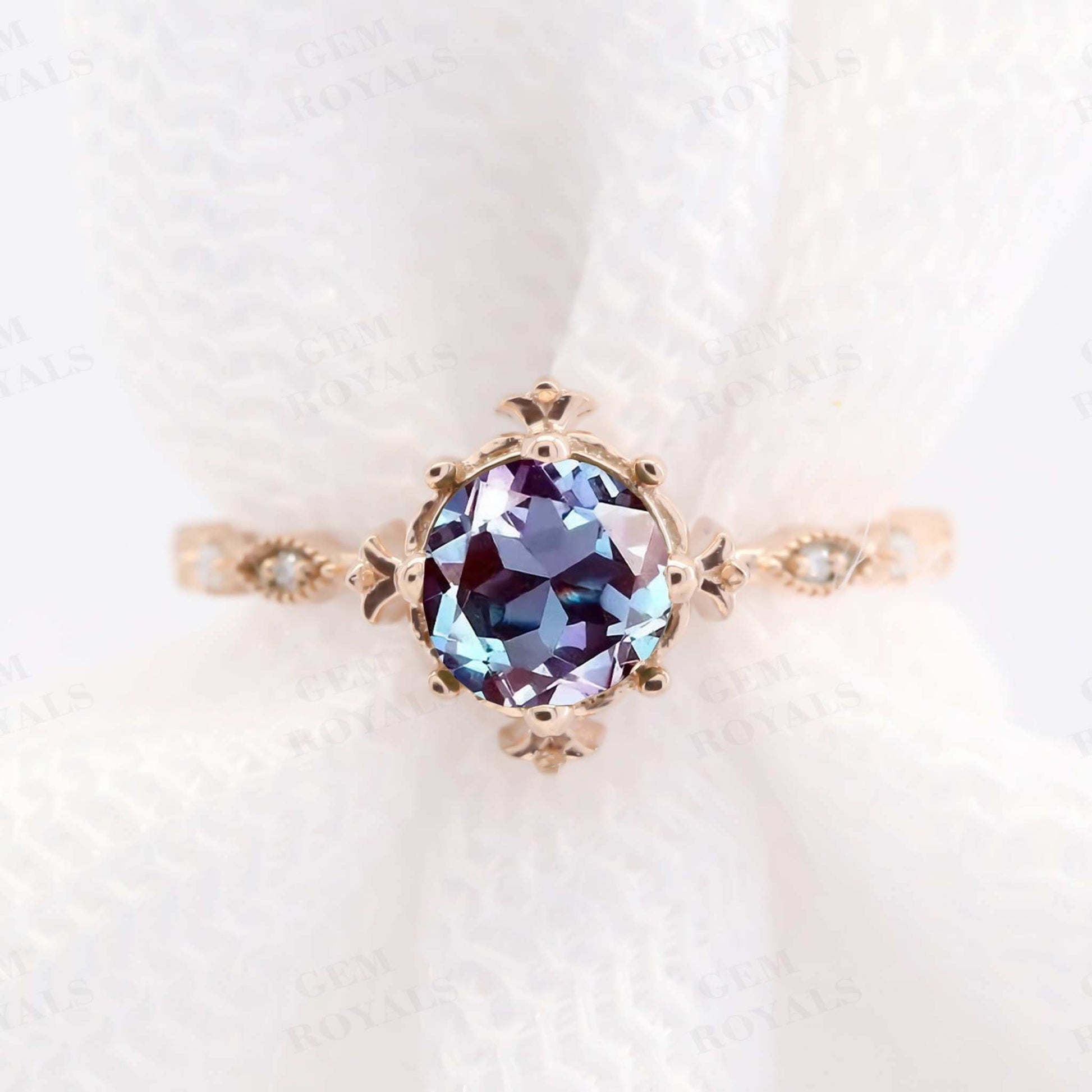 Vintage Art Deco Round Cut Alexandrite Engagement Ring