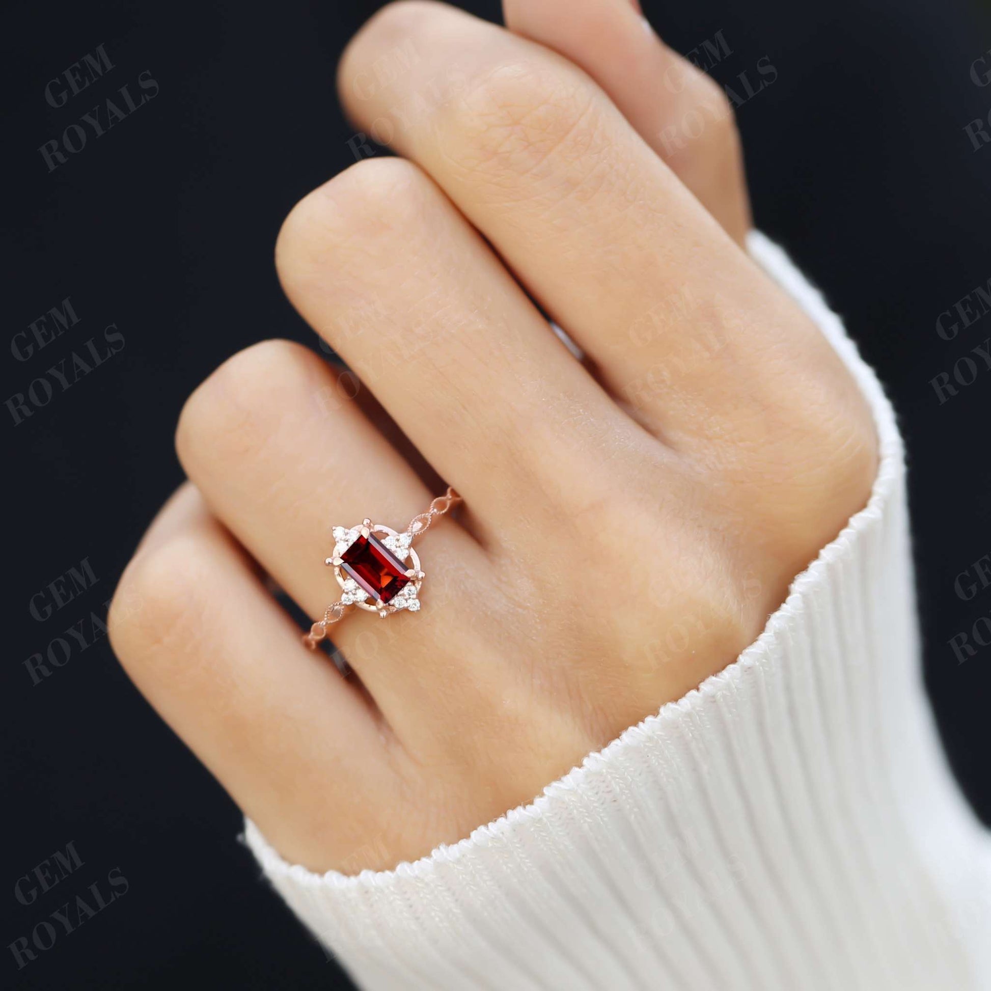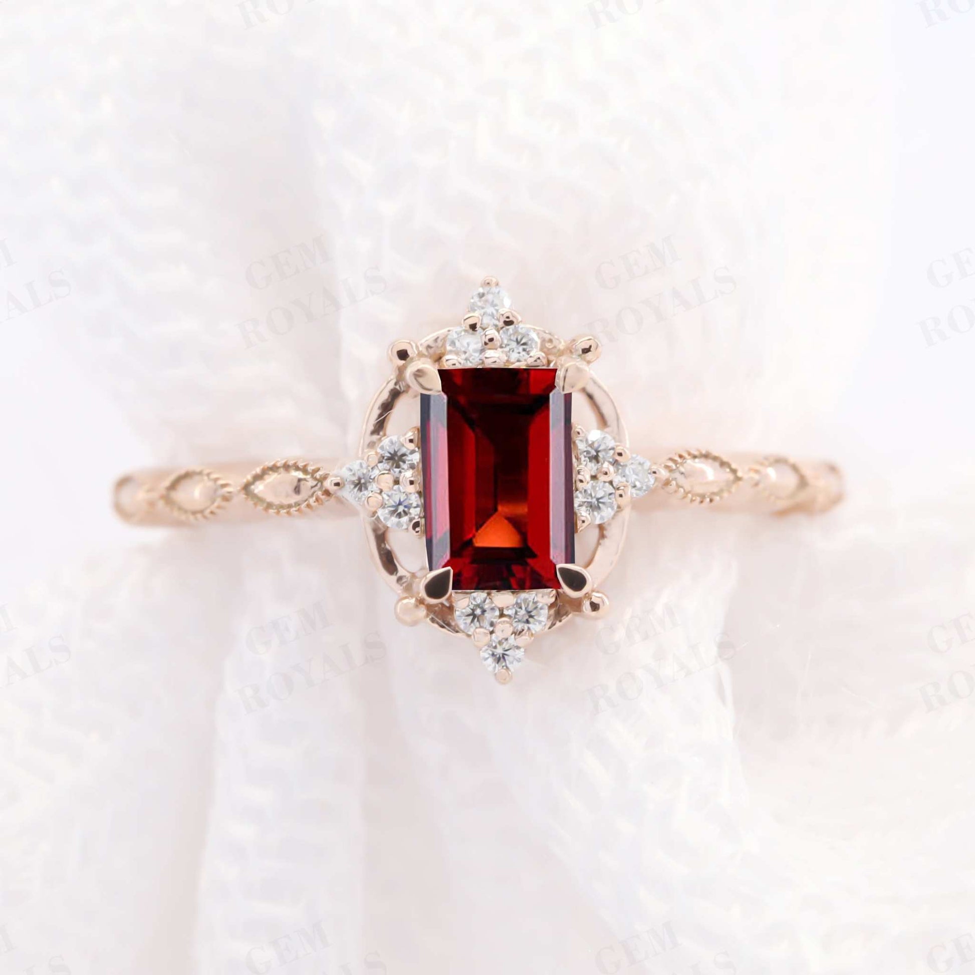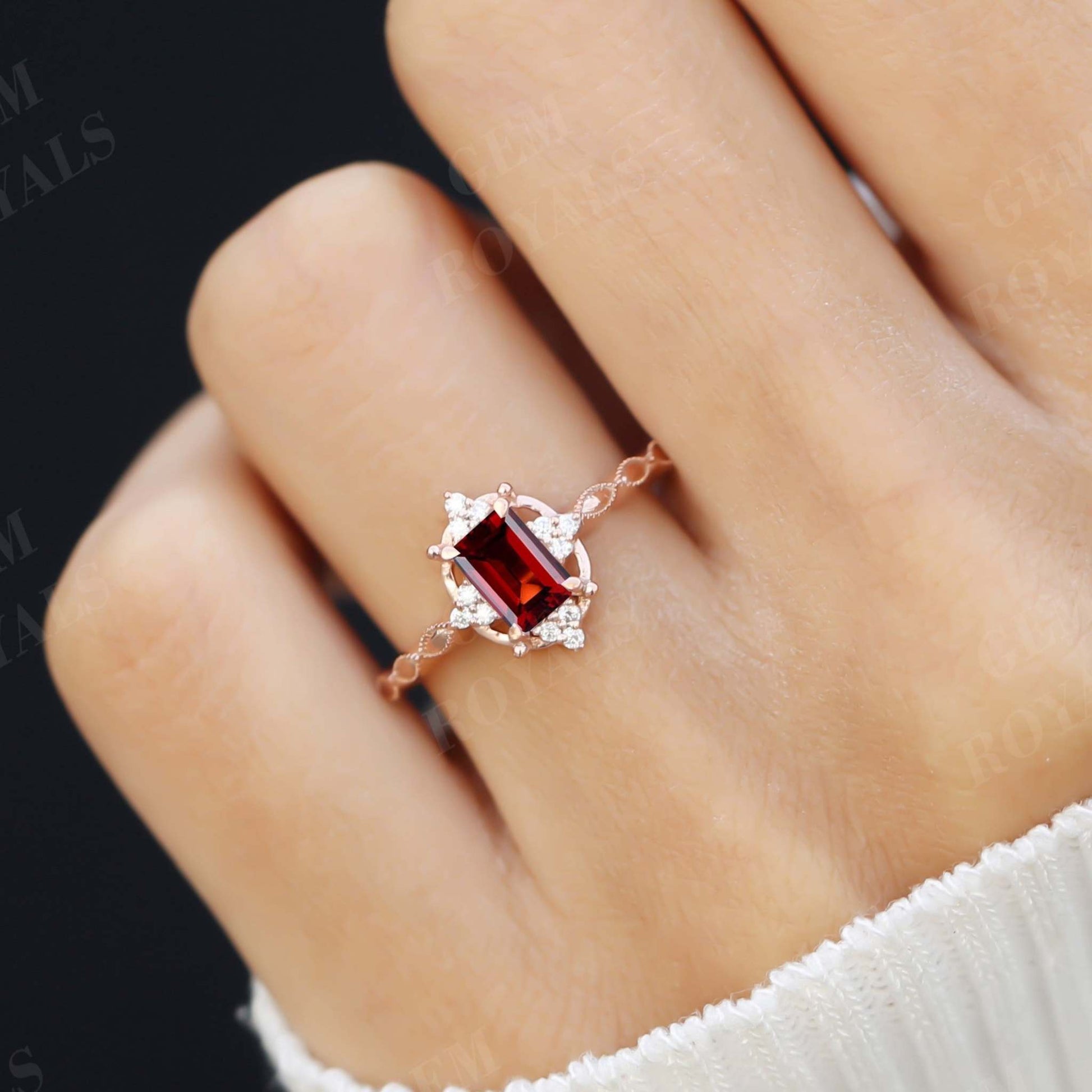Vintage Emerald Cut Natural Red Garnet Engagement Ring