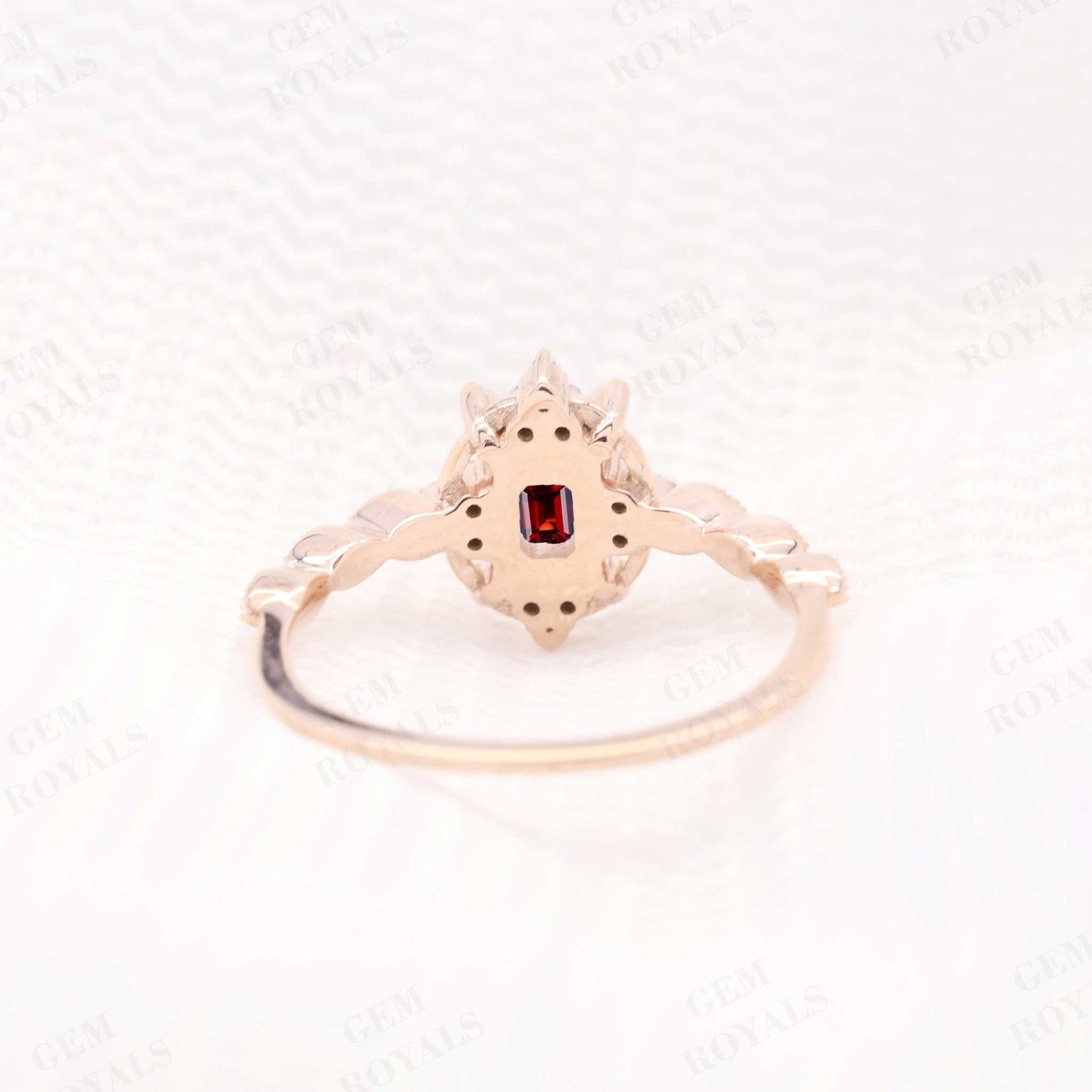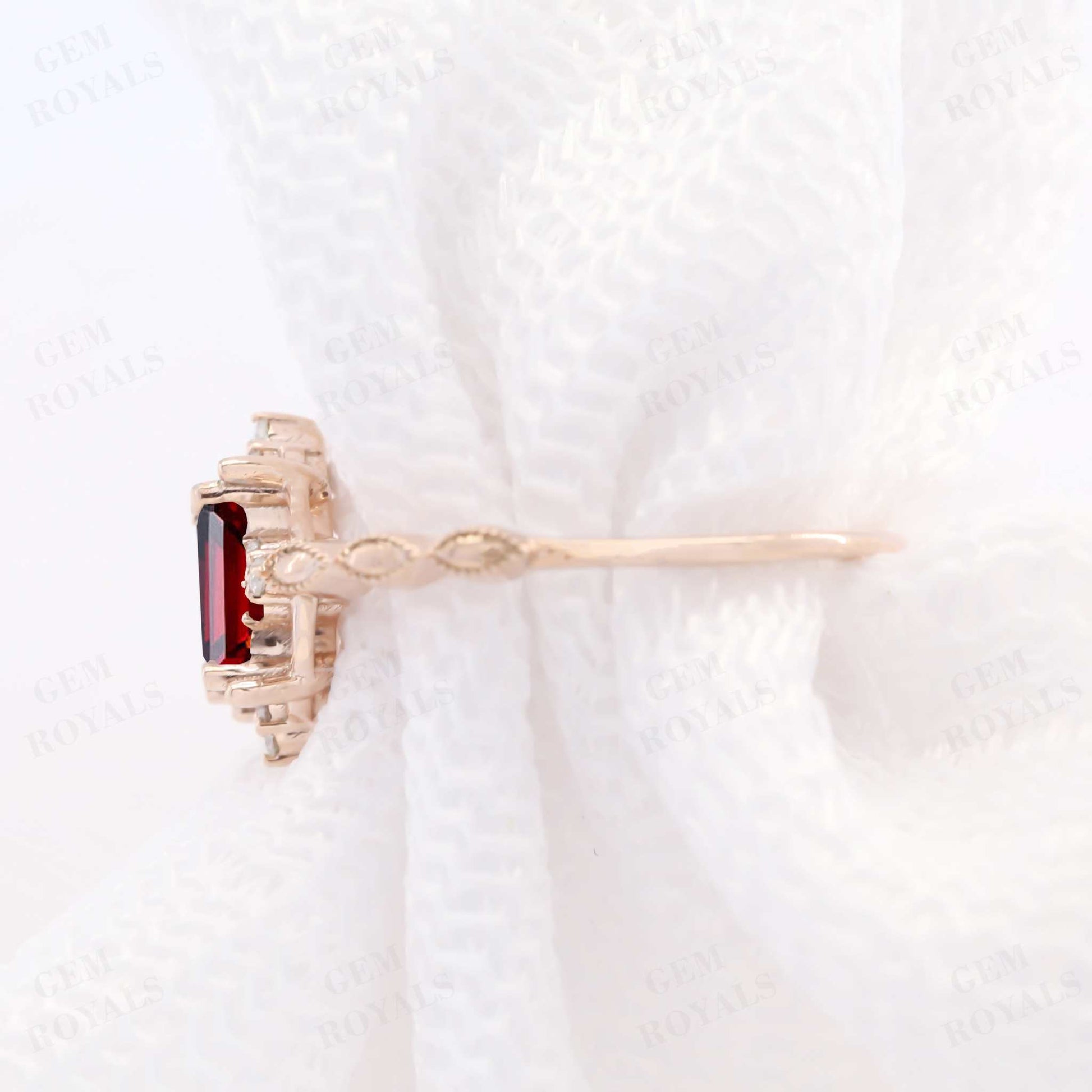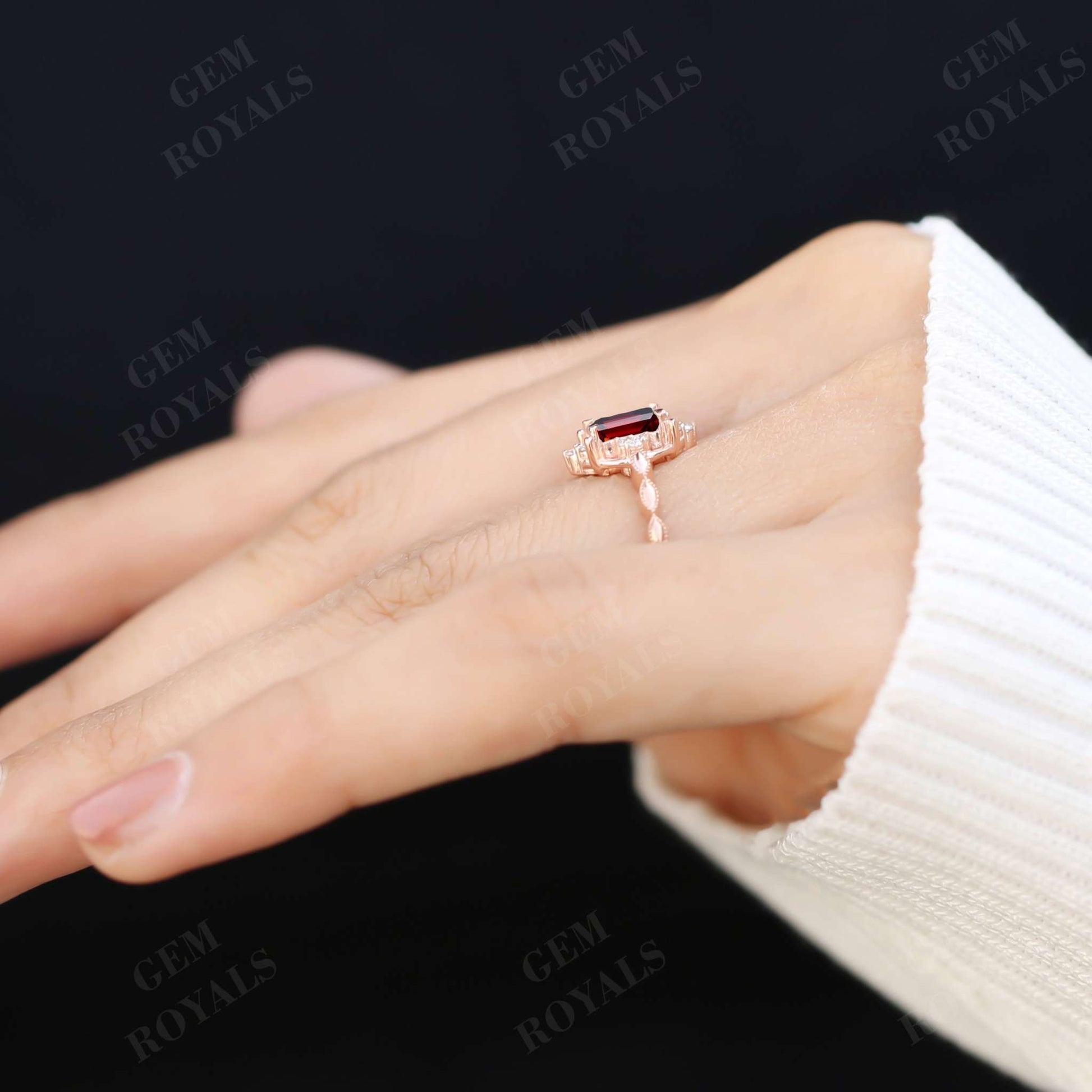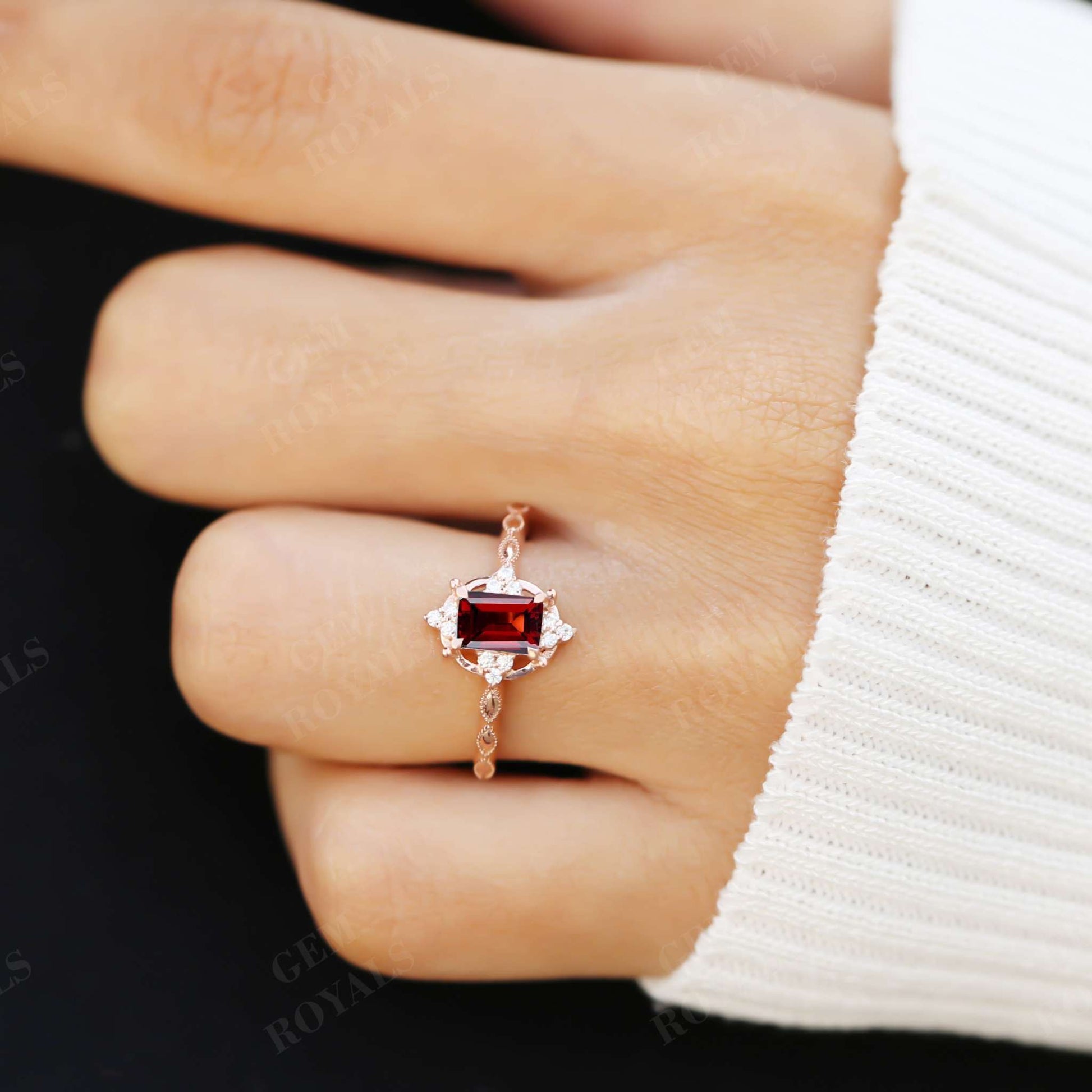 Vintage Emerald Cut Natural Red Garnet Engagement Ring