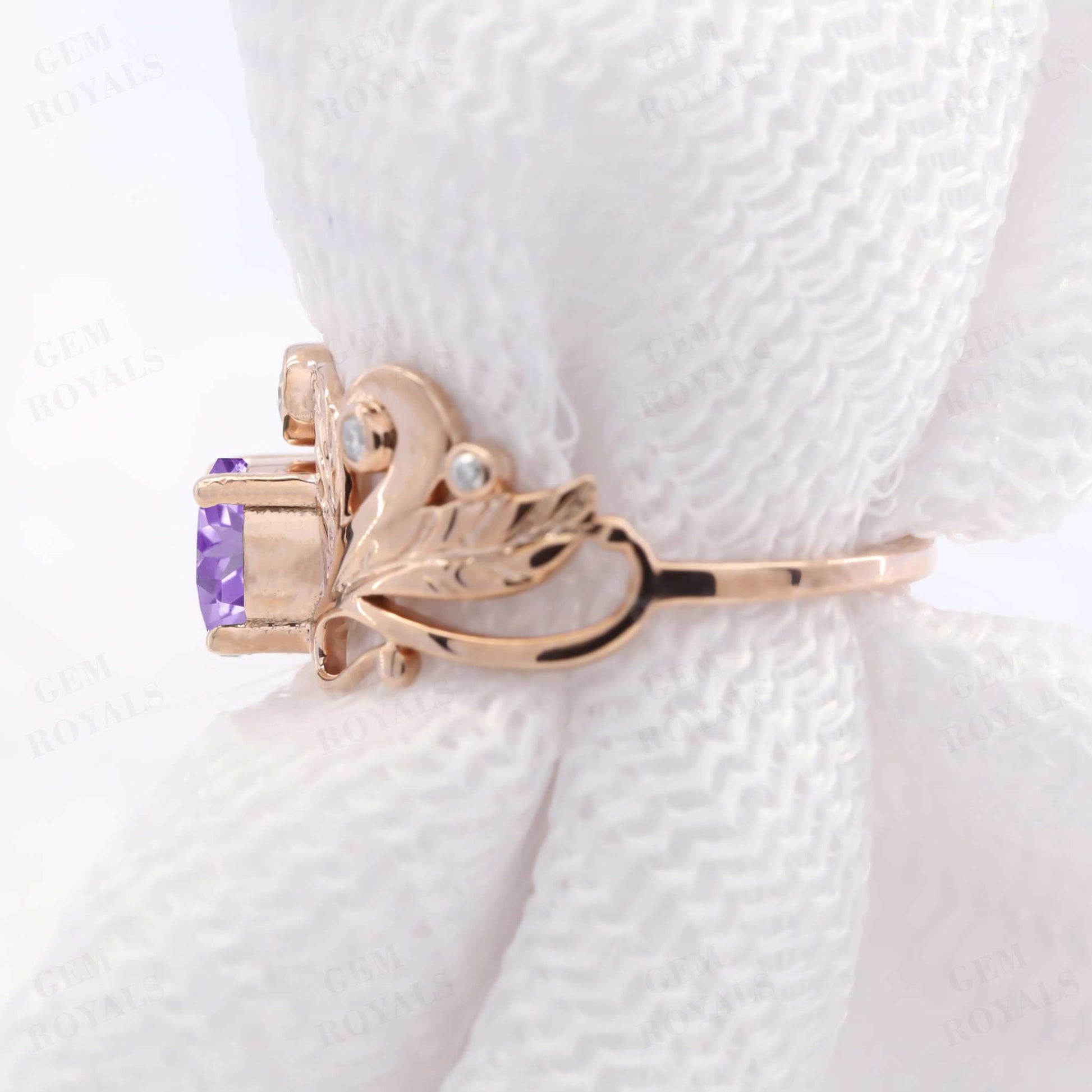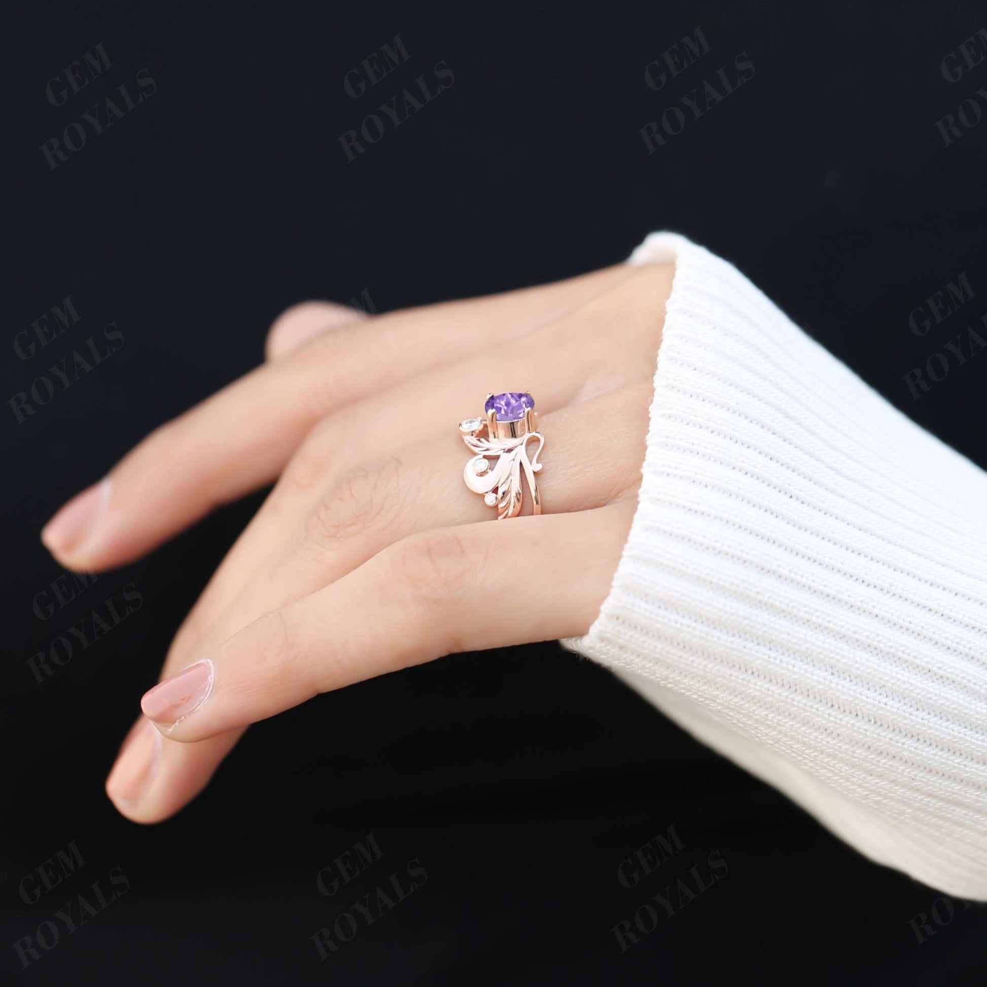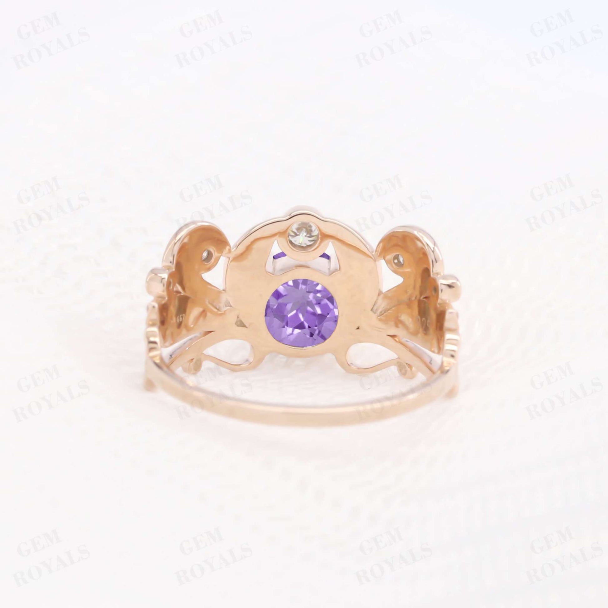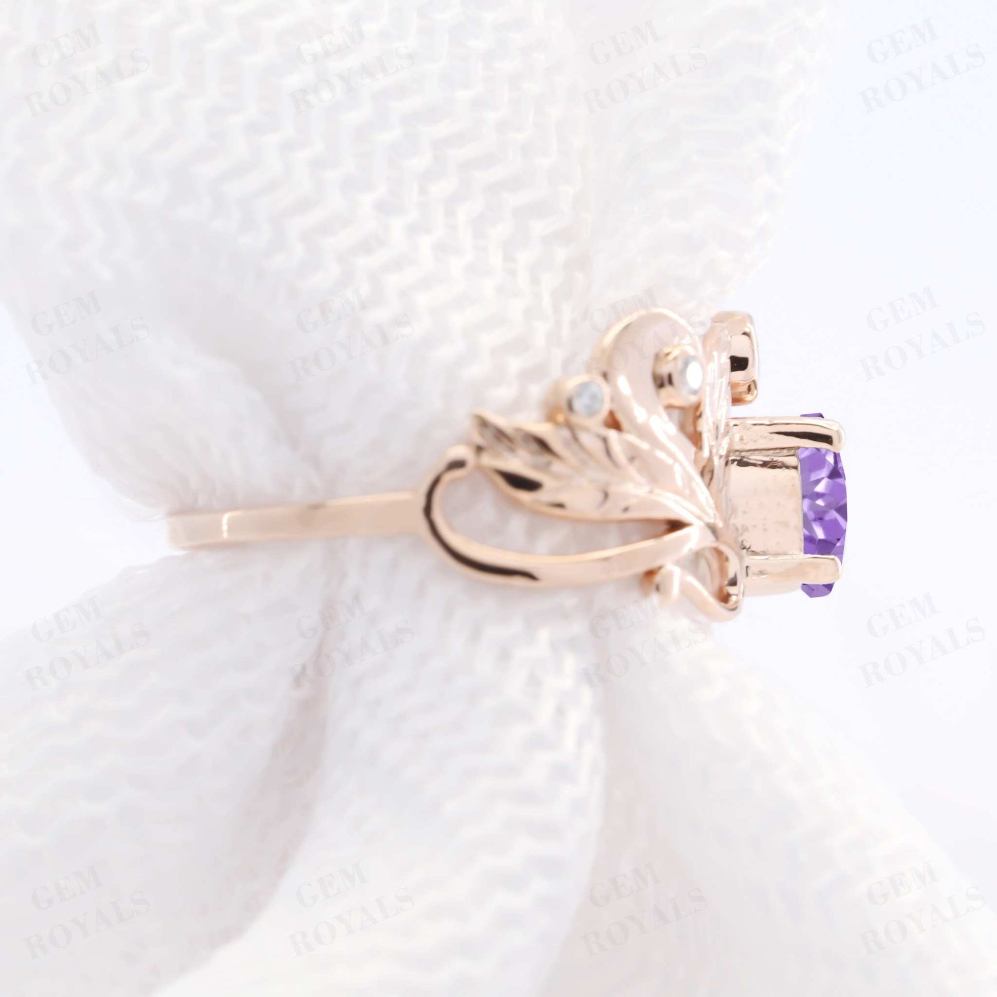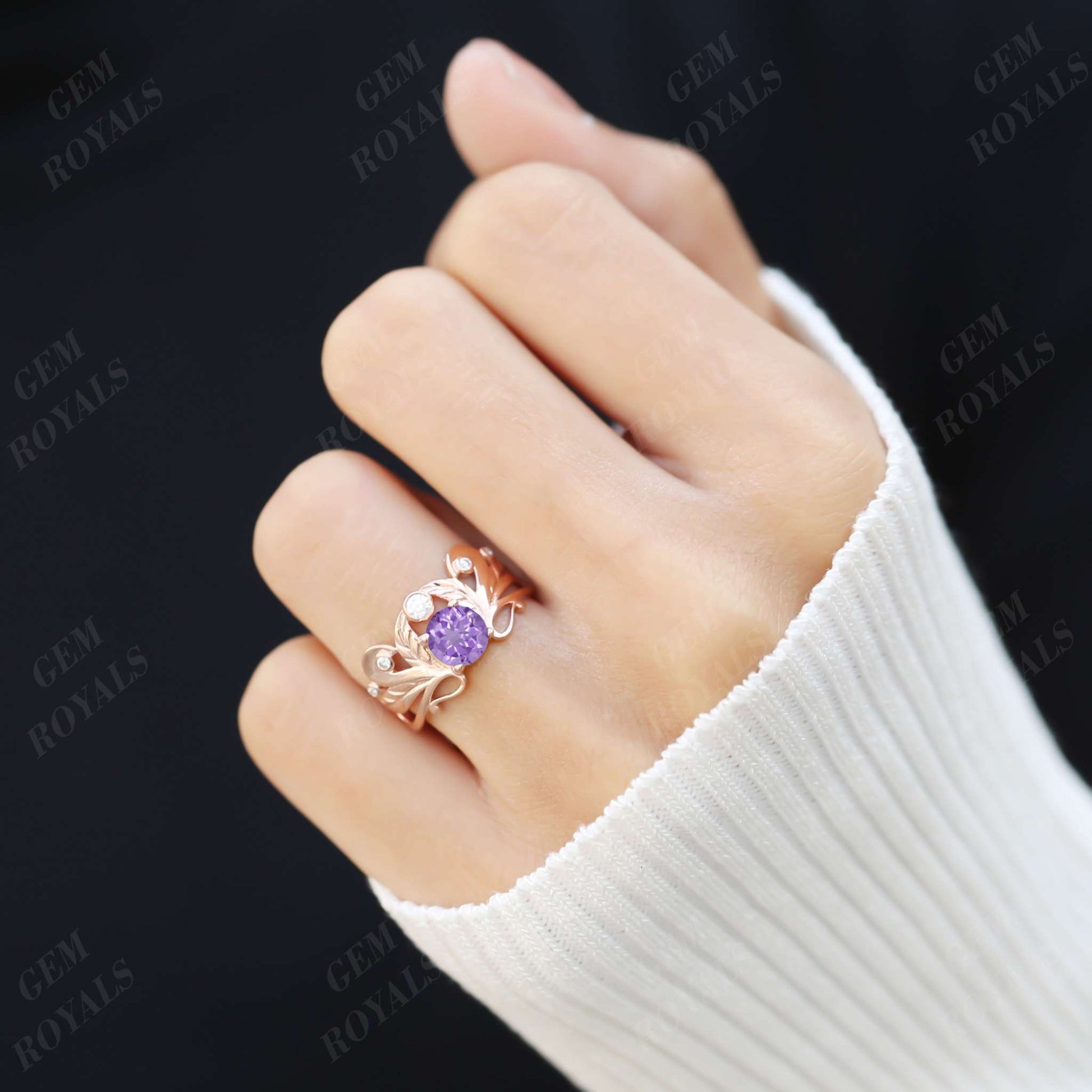 Vintage Style Art Deco Round Purple Amethyst Engagement Ring