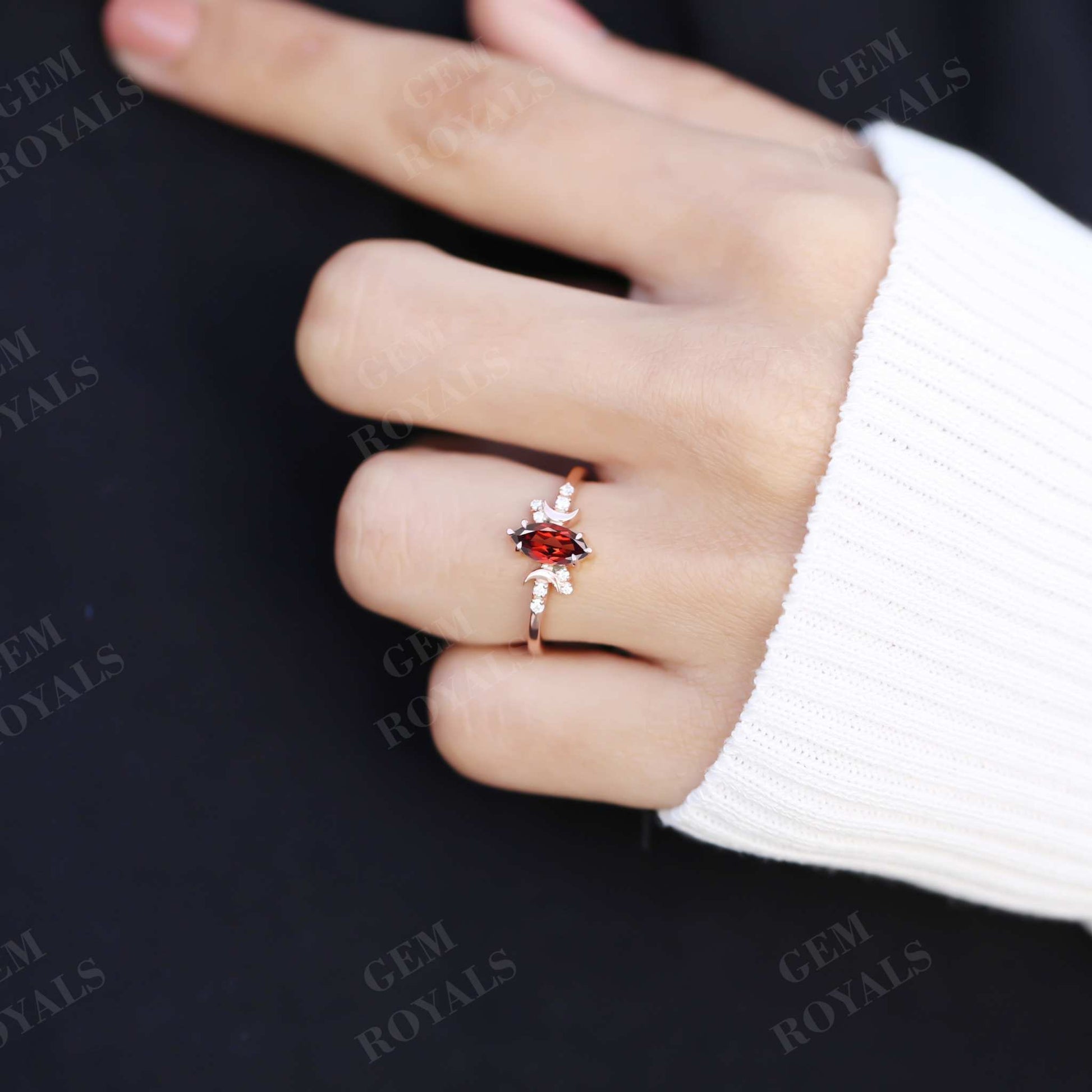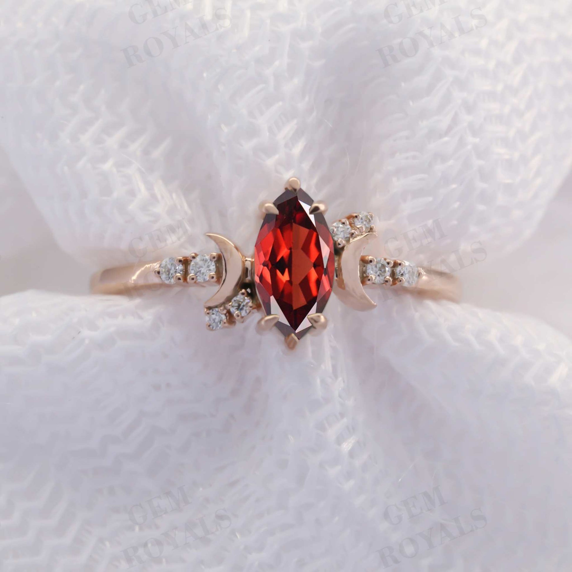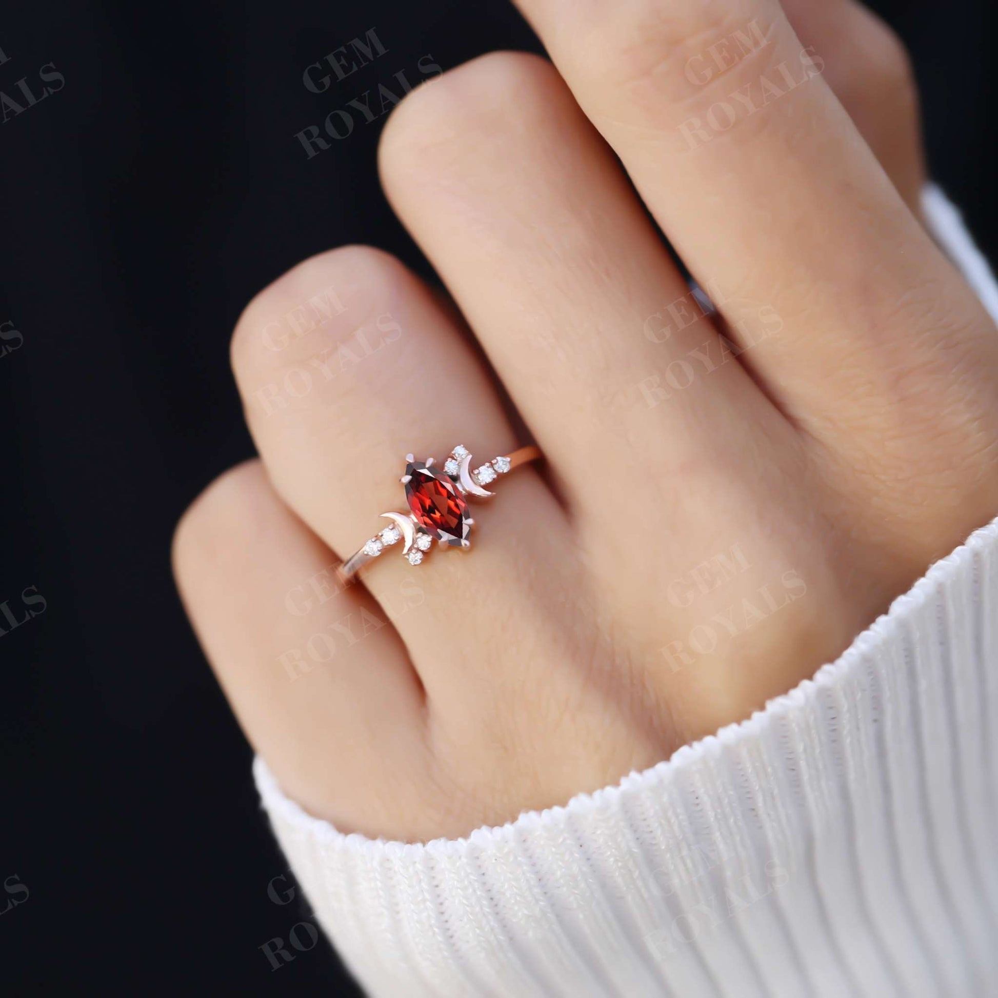 Vintage Style Celestial Marquise Red Garnet engagement Ring