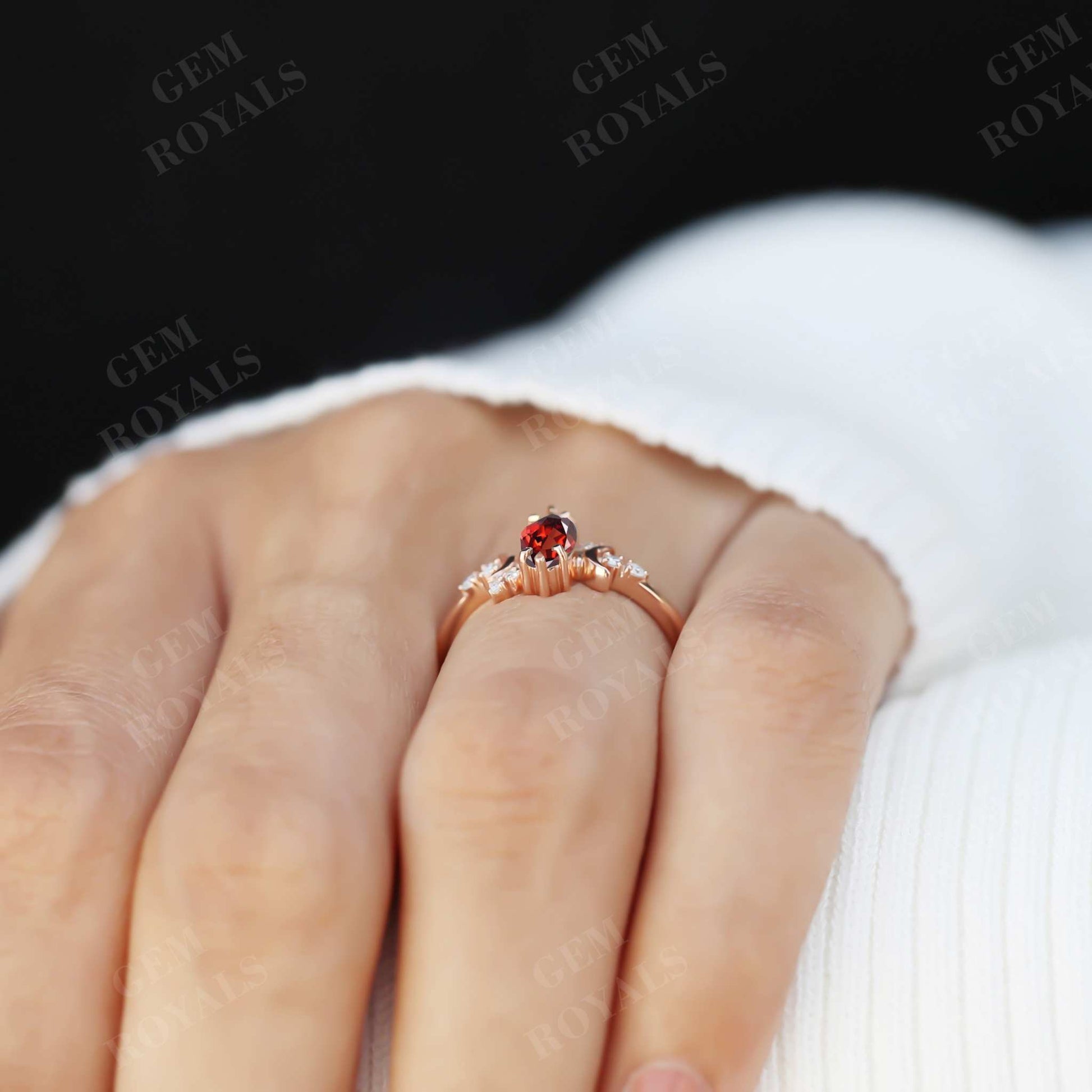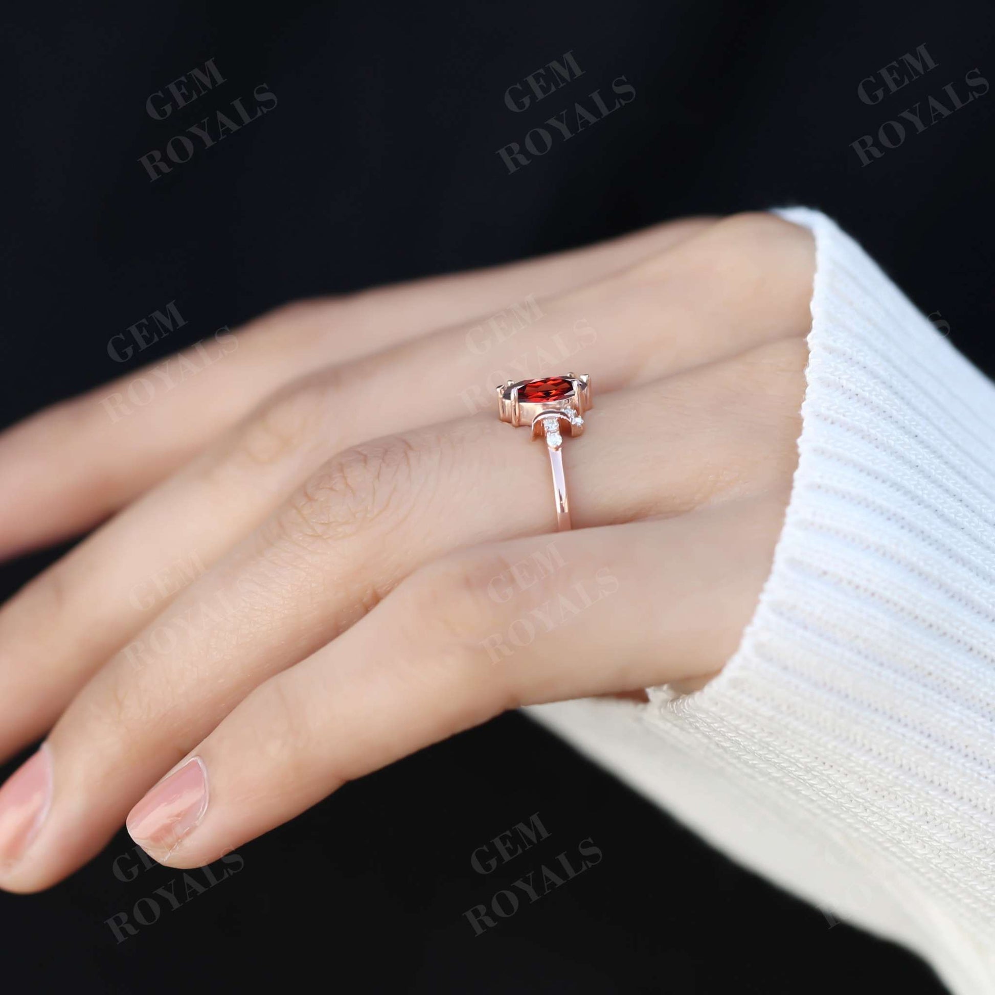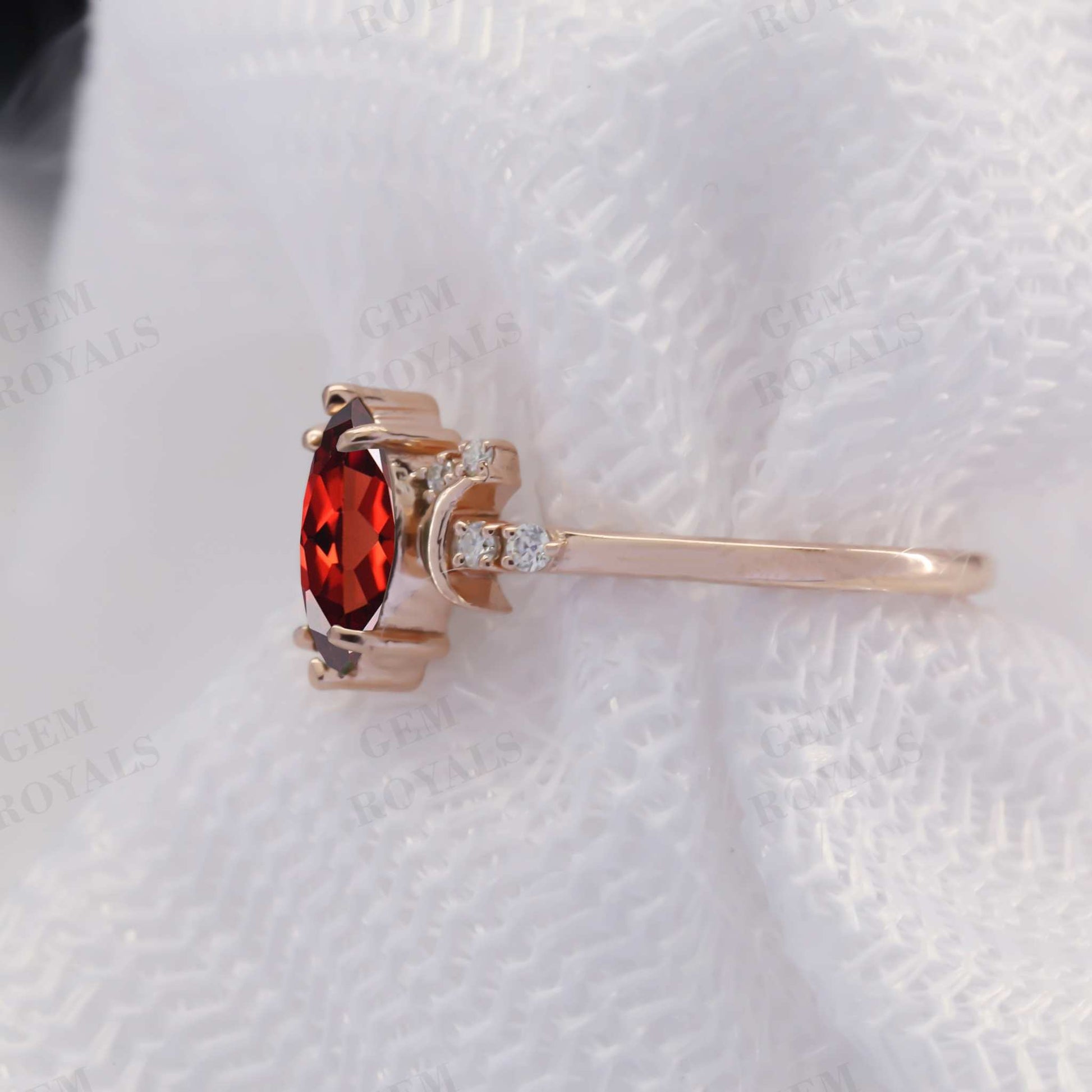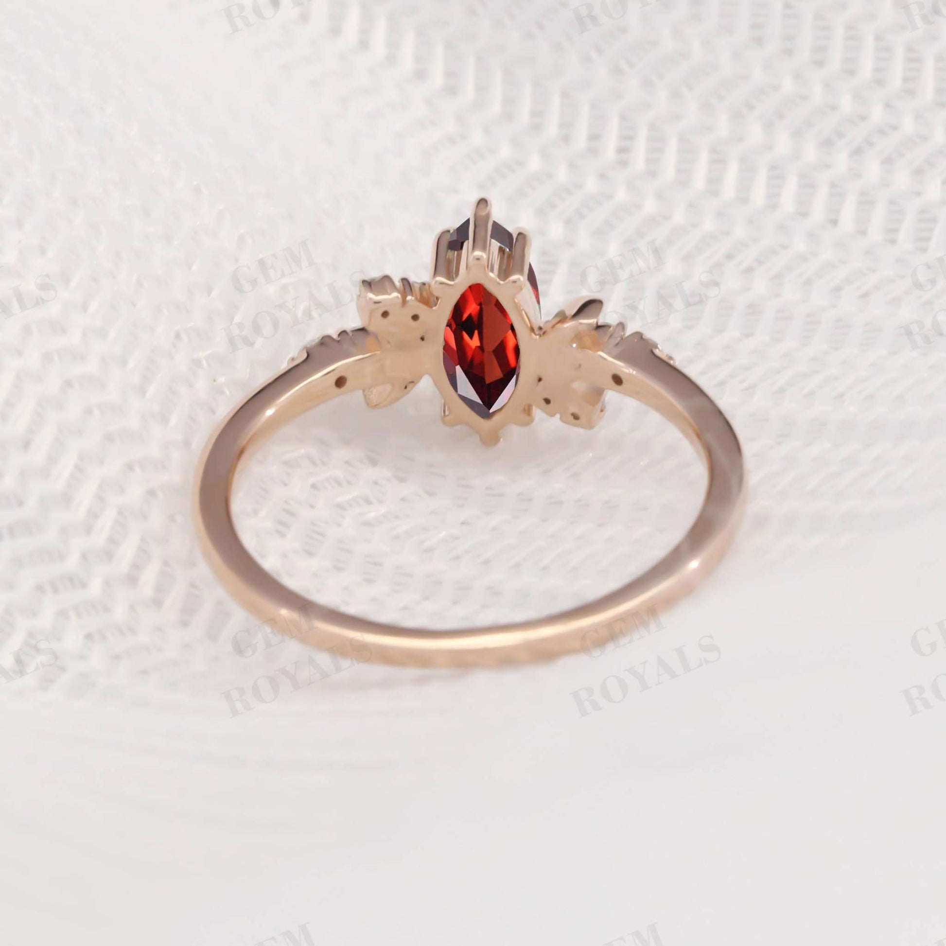 Vintage Style Celestial Marquise Red Garnet engagement Ring