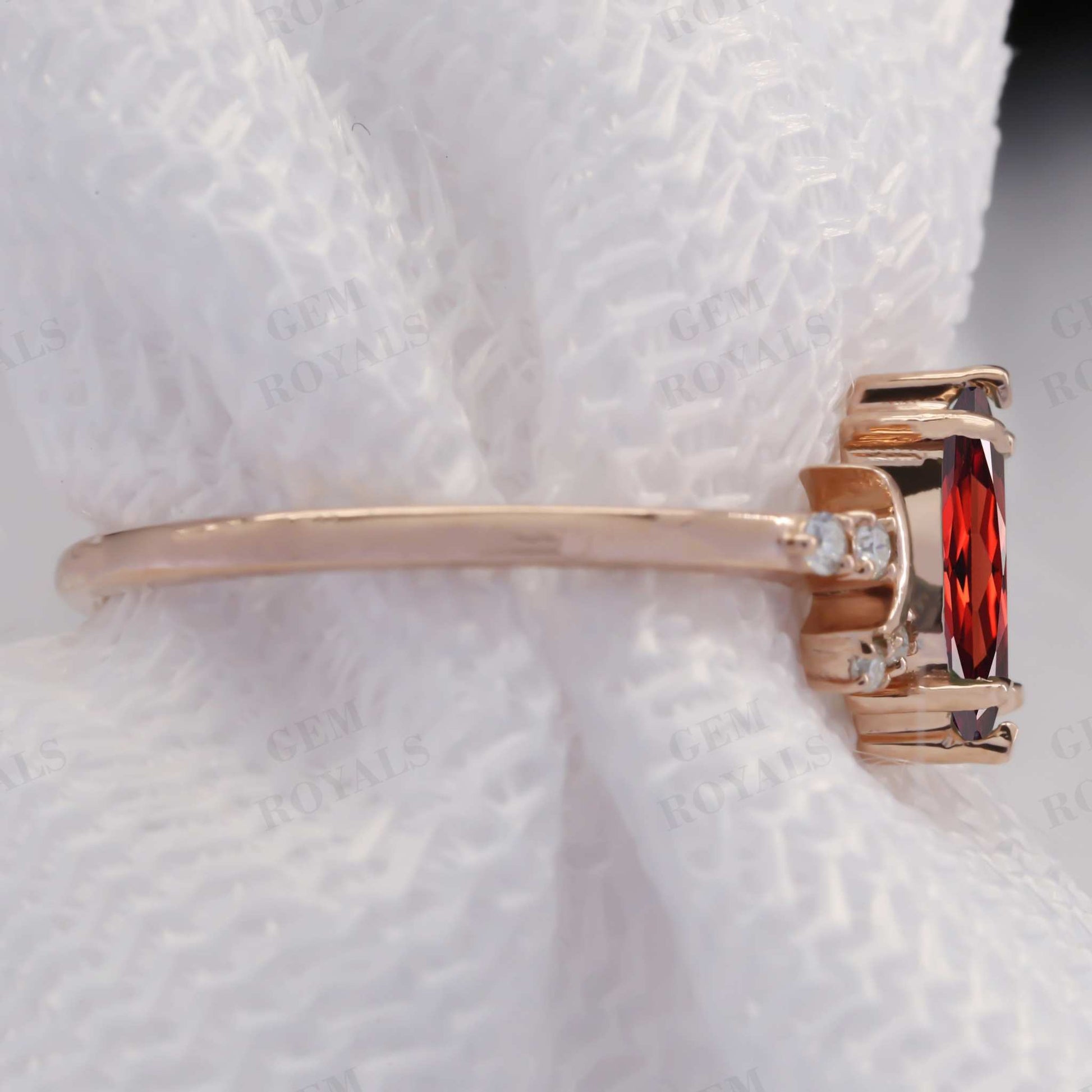 Capture timeless elegance with our Marquise Red Garnet engagement ring, crafted in 14K Rose Gold. This antique-inspired piece features a dazzling solitaire Moissanite stone, accentuated by vintage detailing. Perfect as an anniversary or promise ring, it's a cherished gift for her. Available in 10K, 14K, or 18K White/Yellow/Rose Gold, this gemstone wedding ring exudes romance and sophistication.