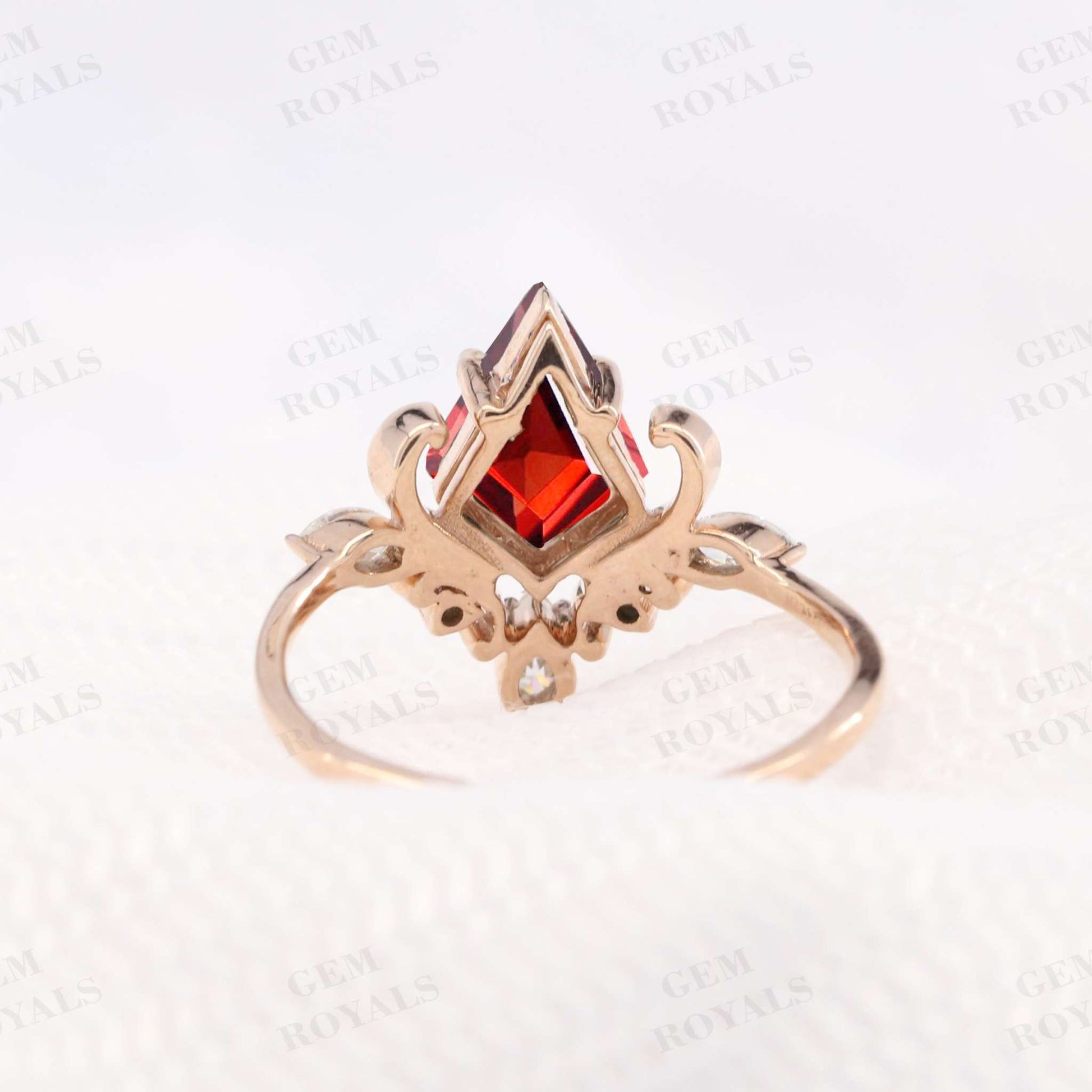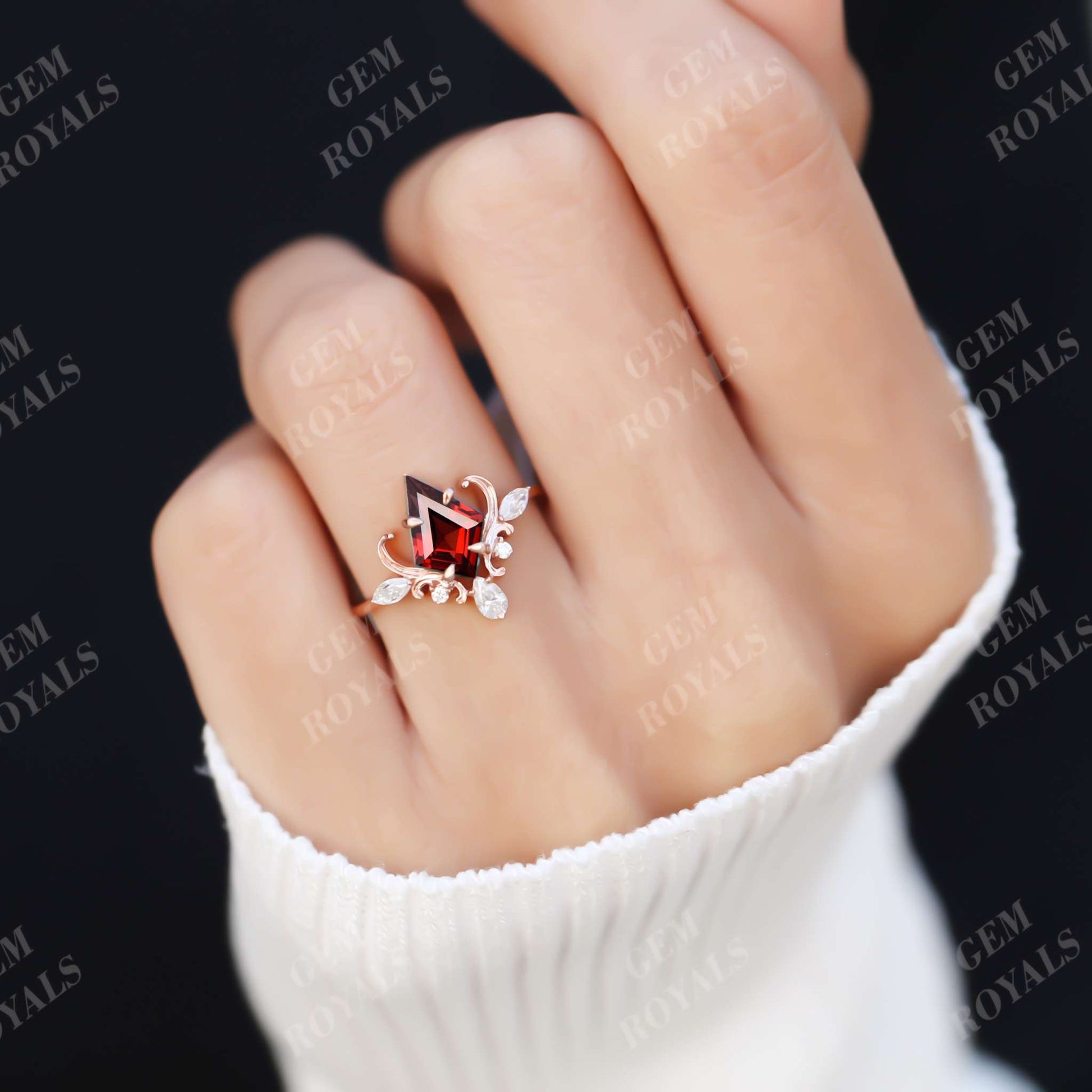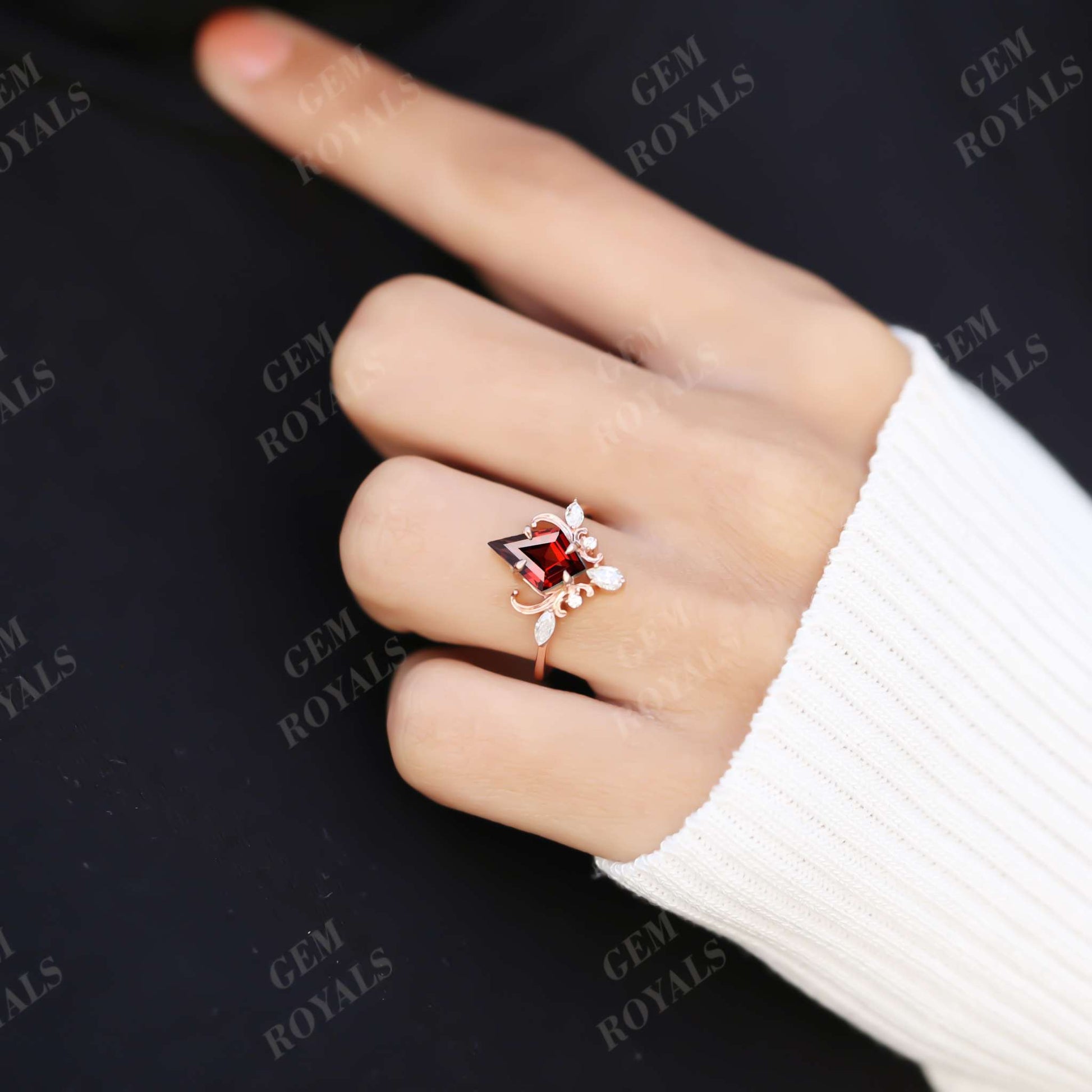 Vintage Style Kite Cut Red Garnet Engagement Ring