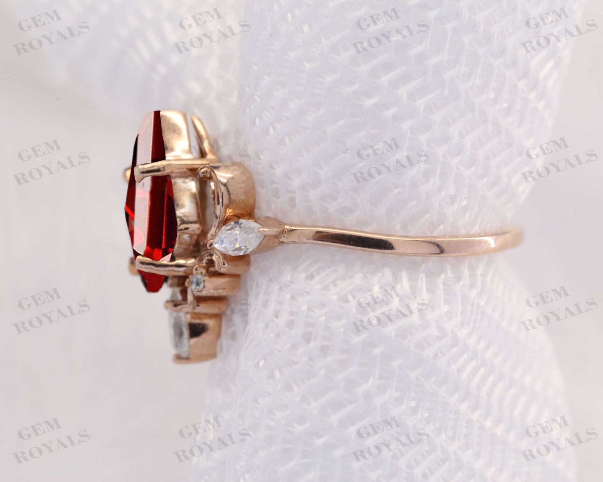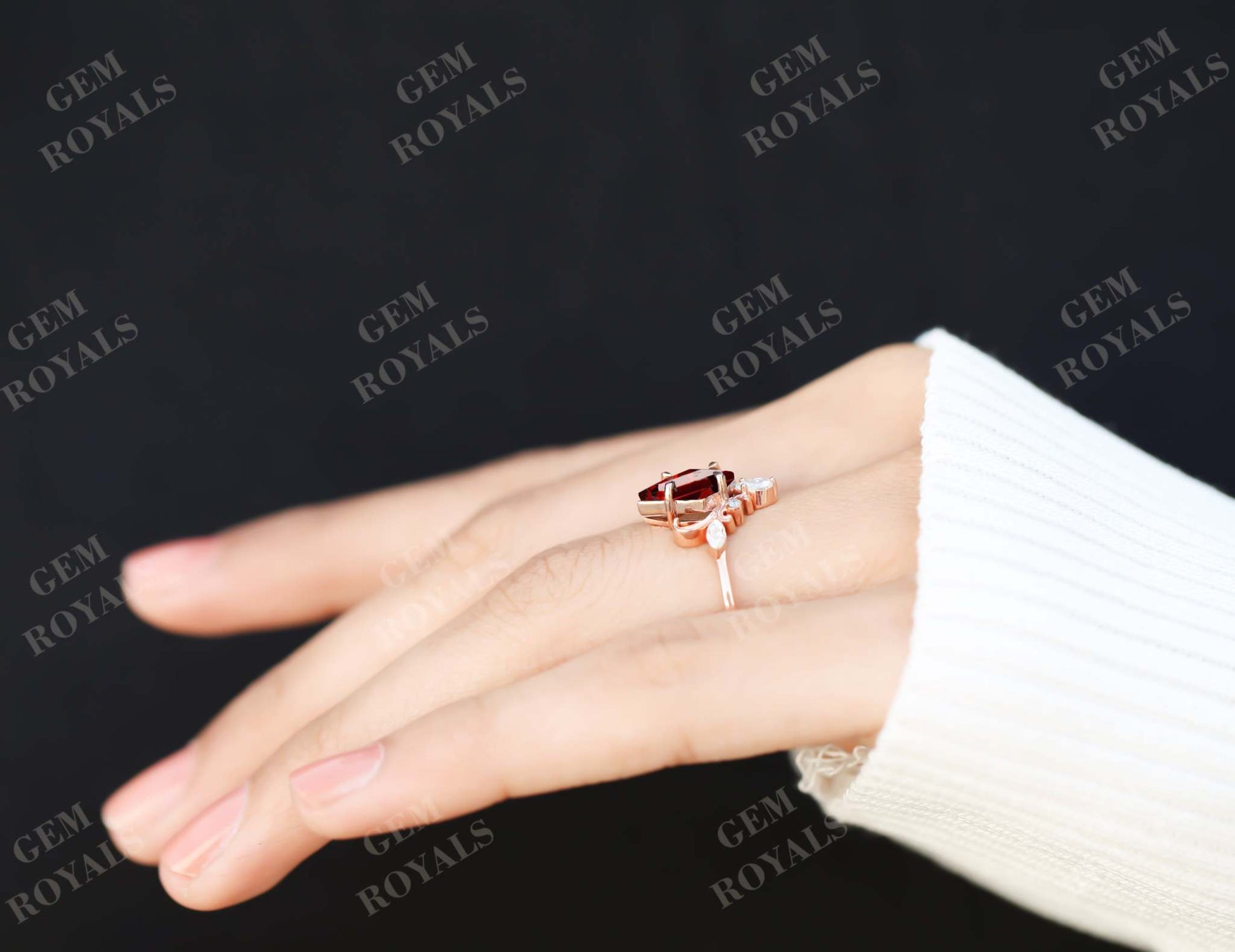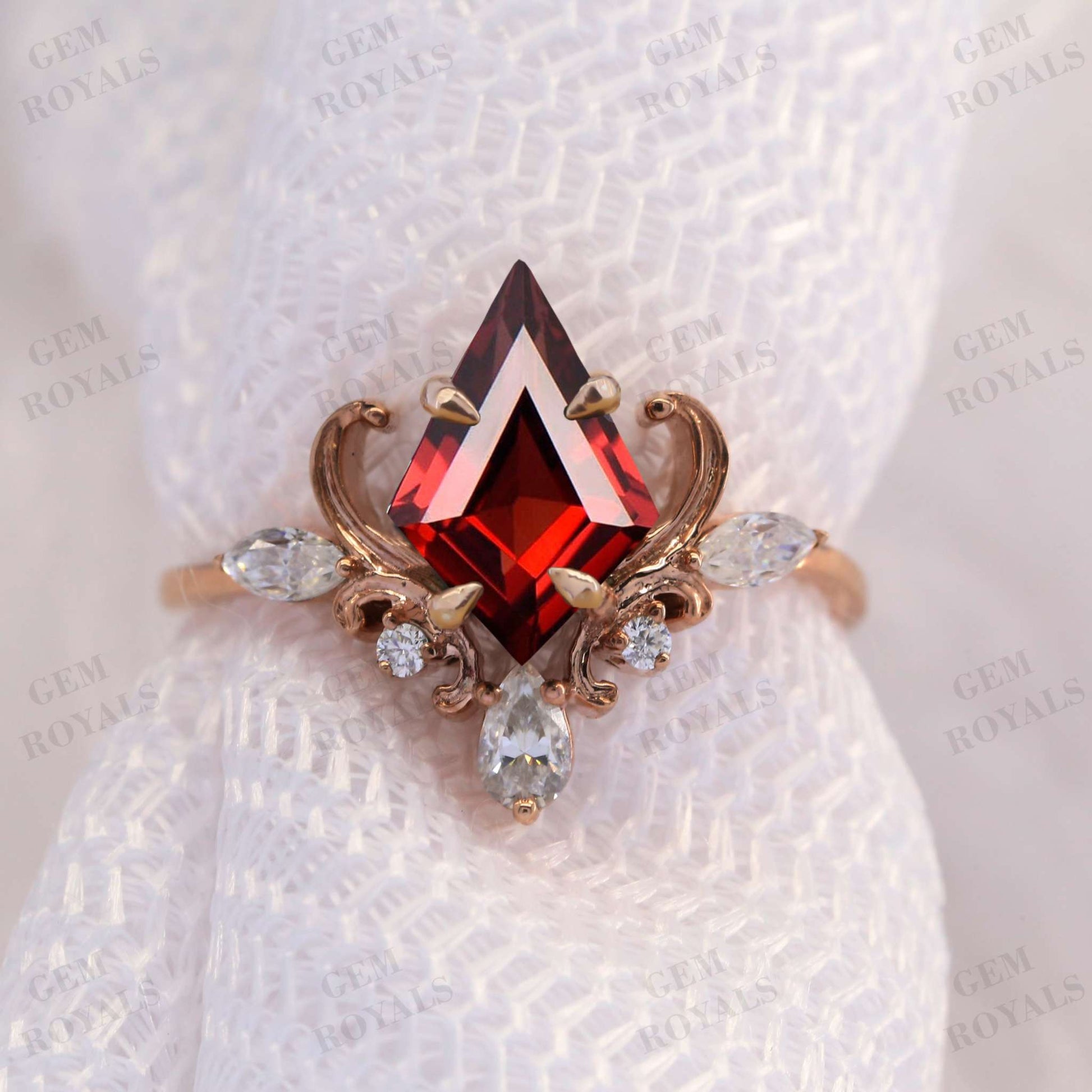 Vintage Style Kite Cut Red Garnet Engagement Ring