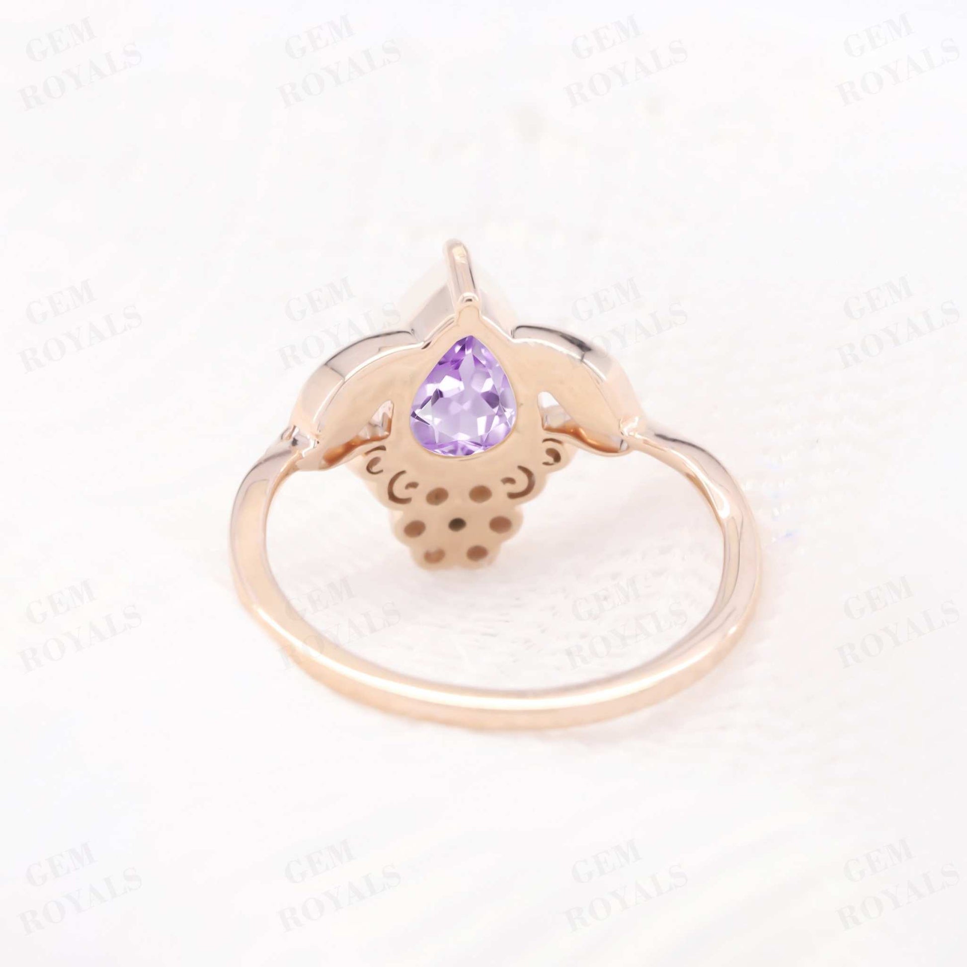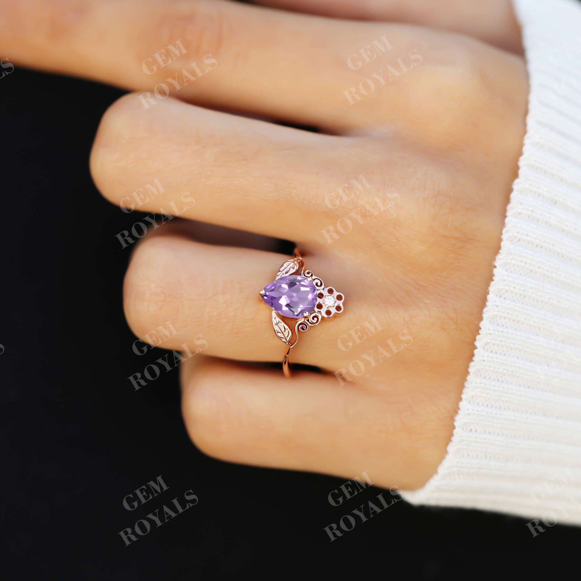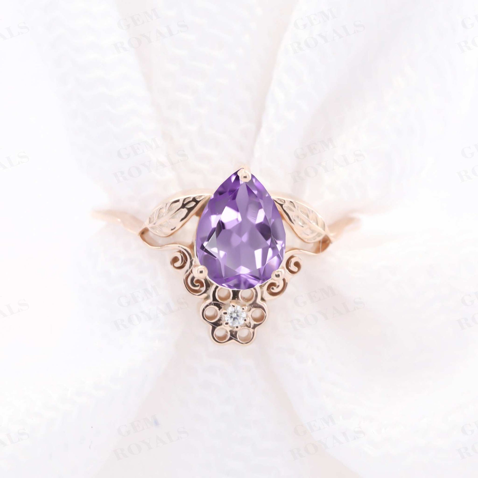 Vintage Style Pear Shaped Natural Amethyst Engagement Ring
