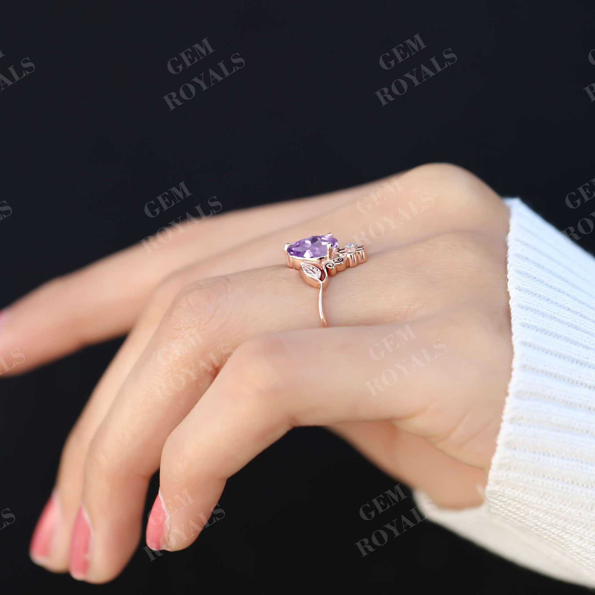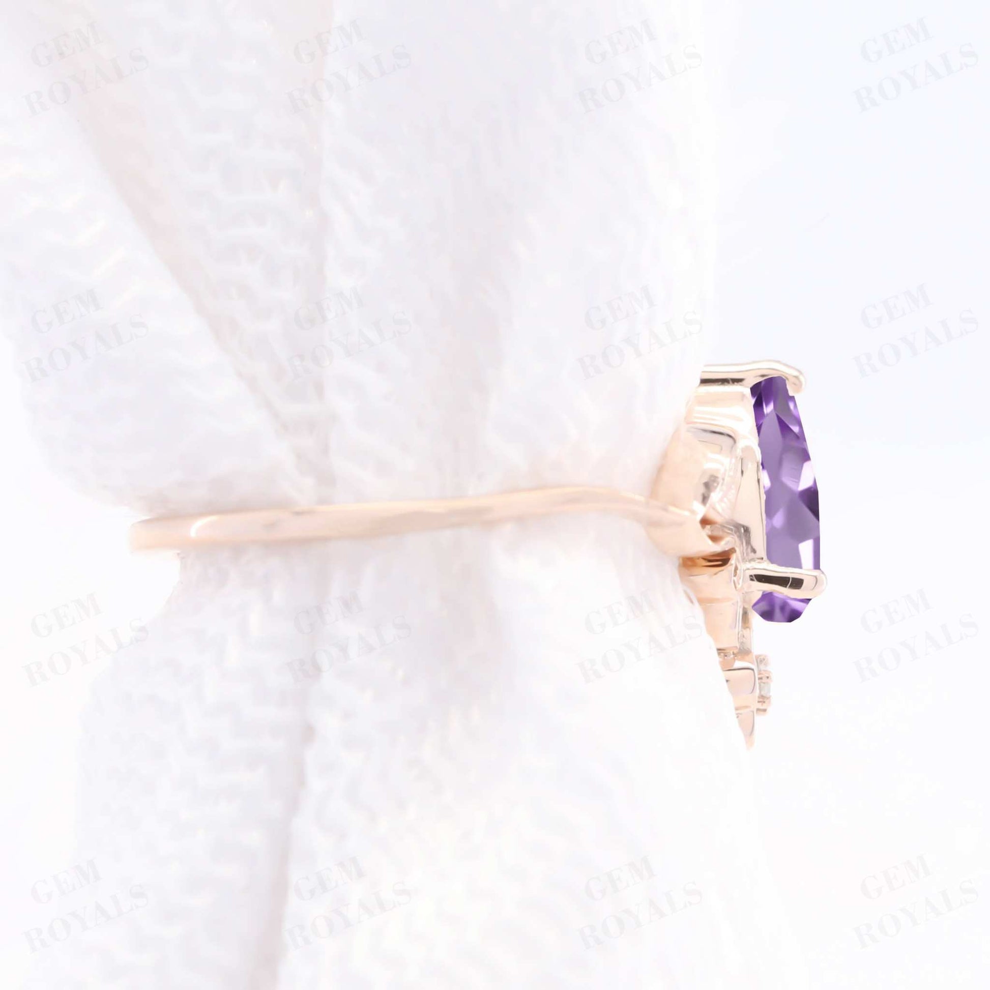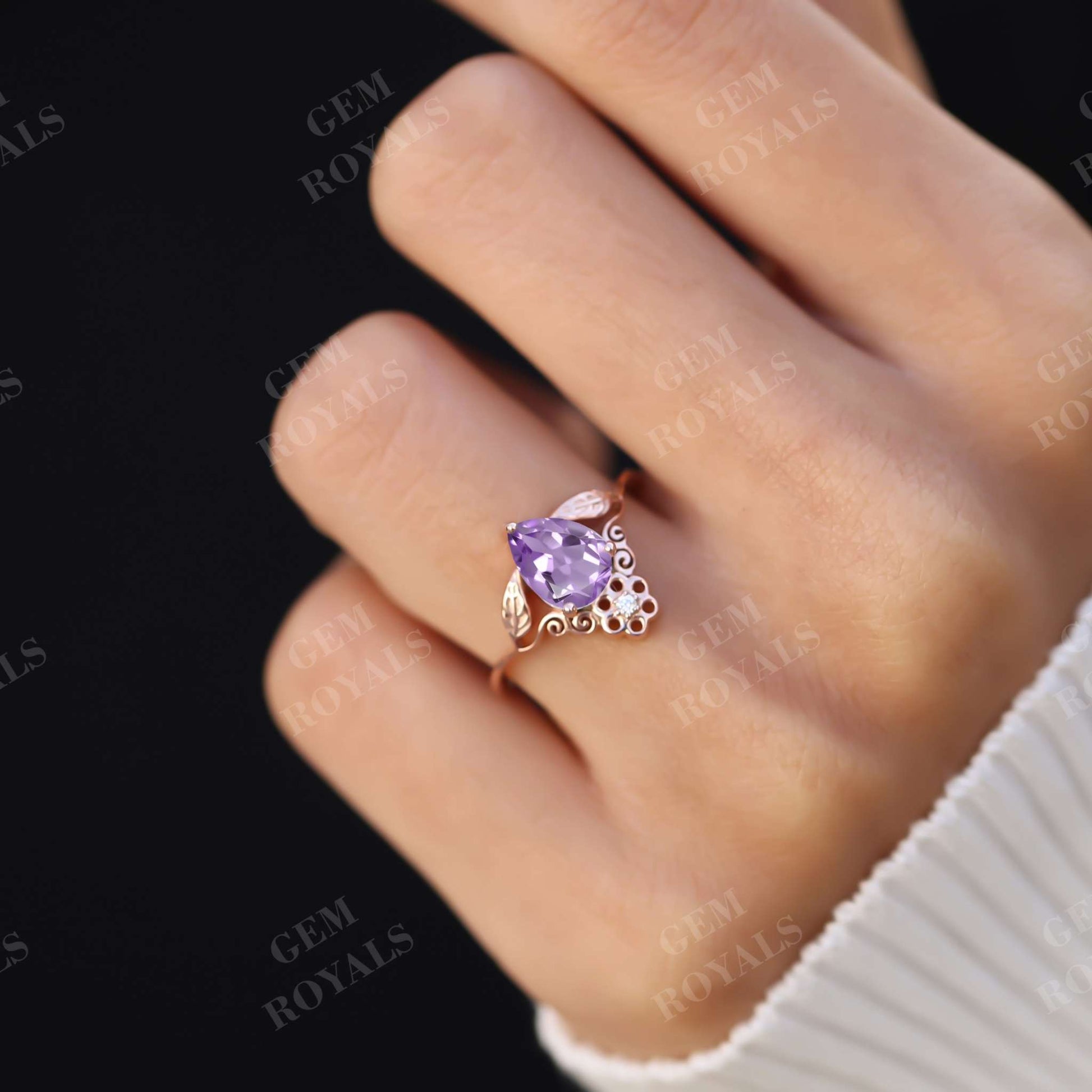 Vintage Style Pear Shaped Natural Amethyst Engagement Ring