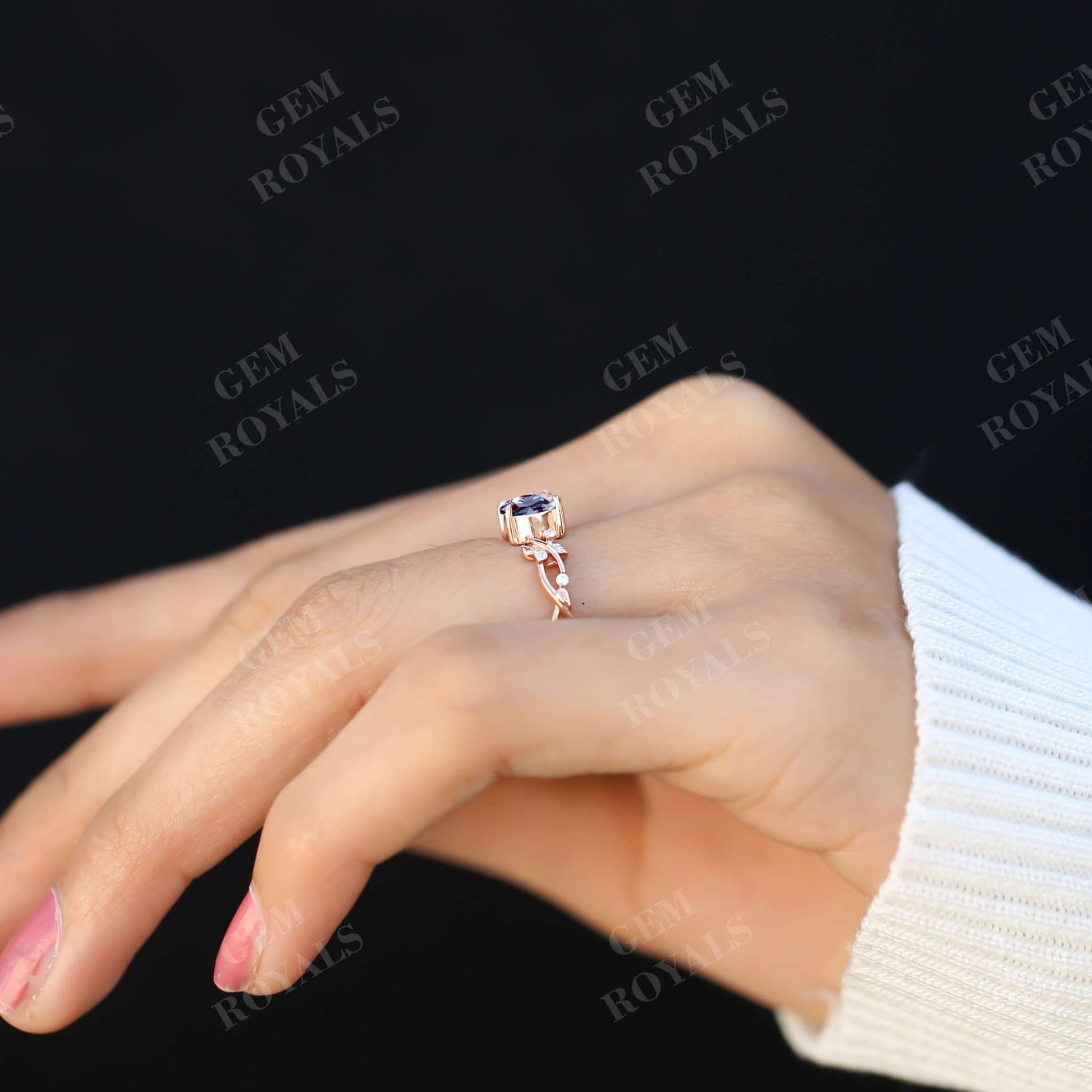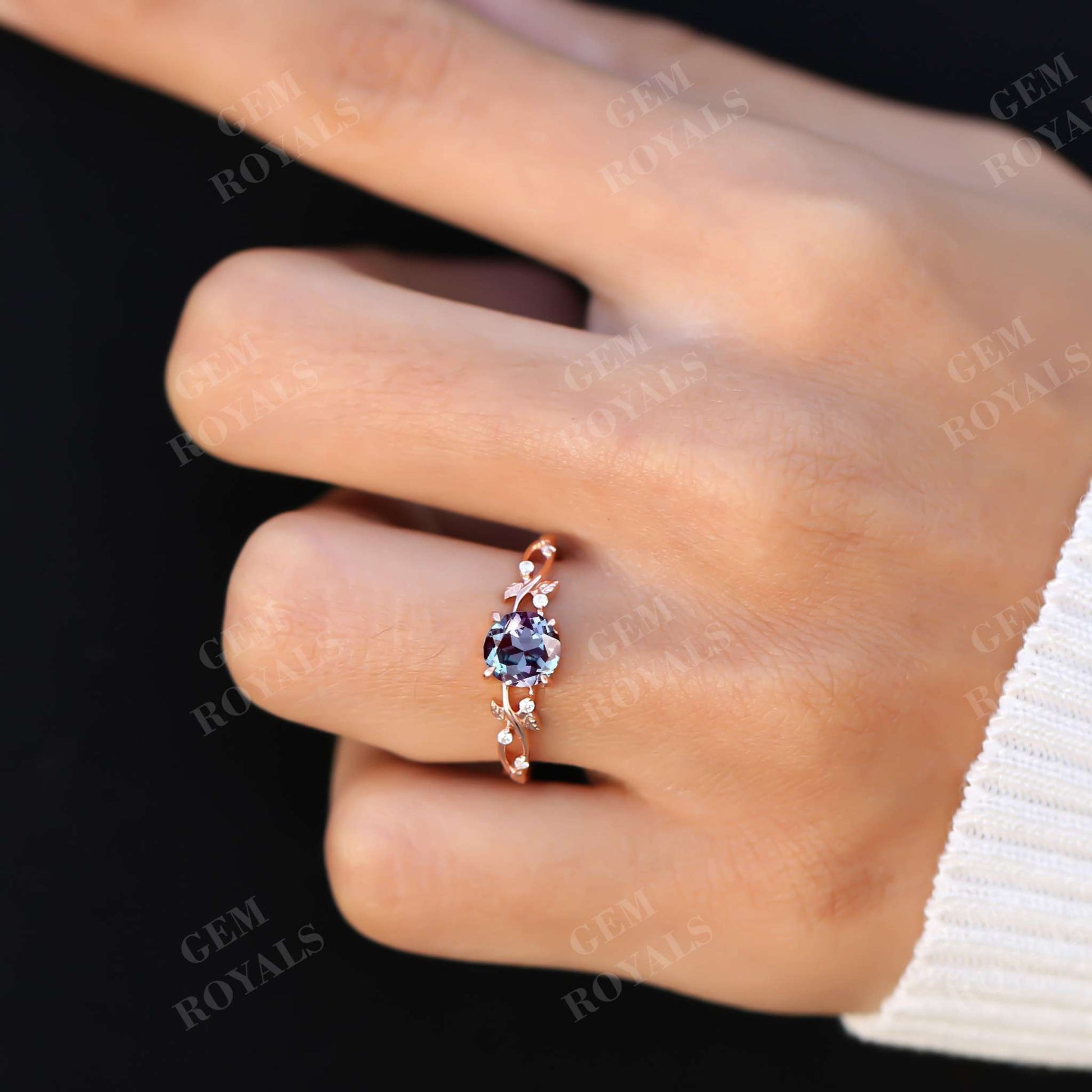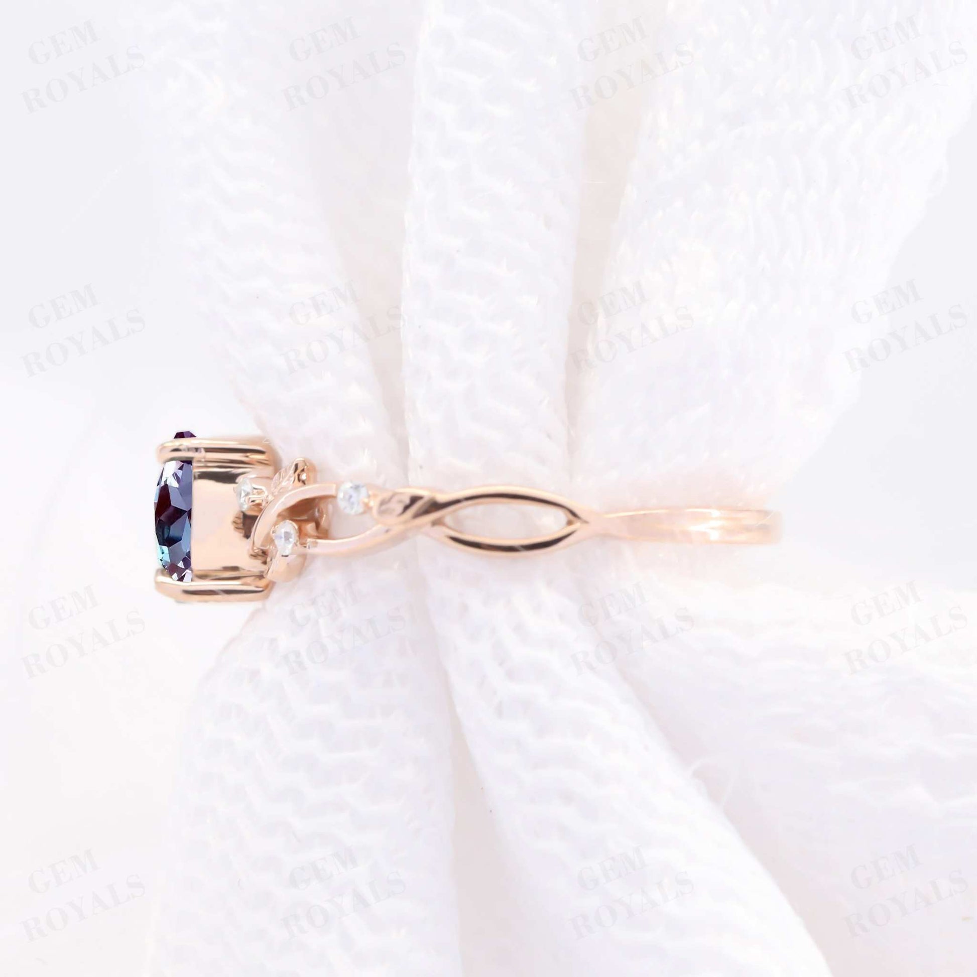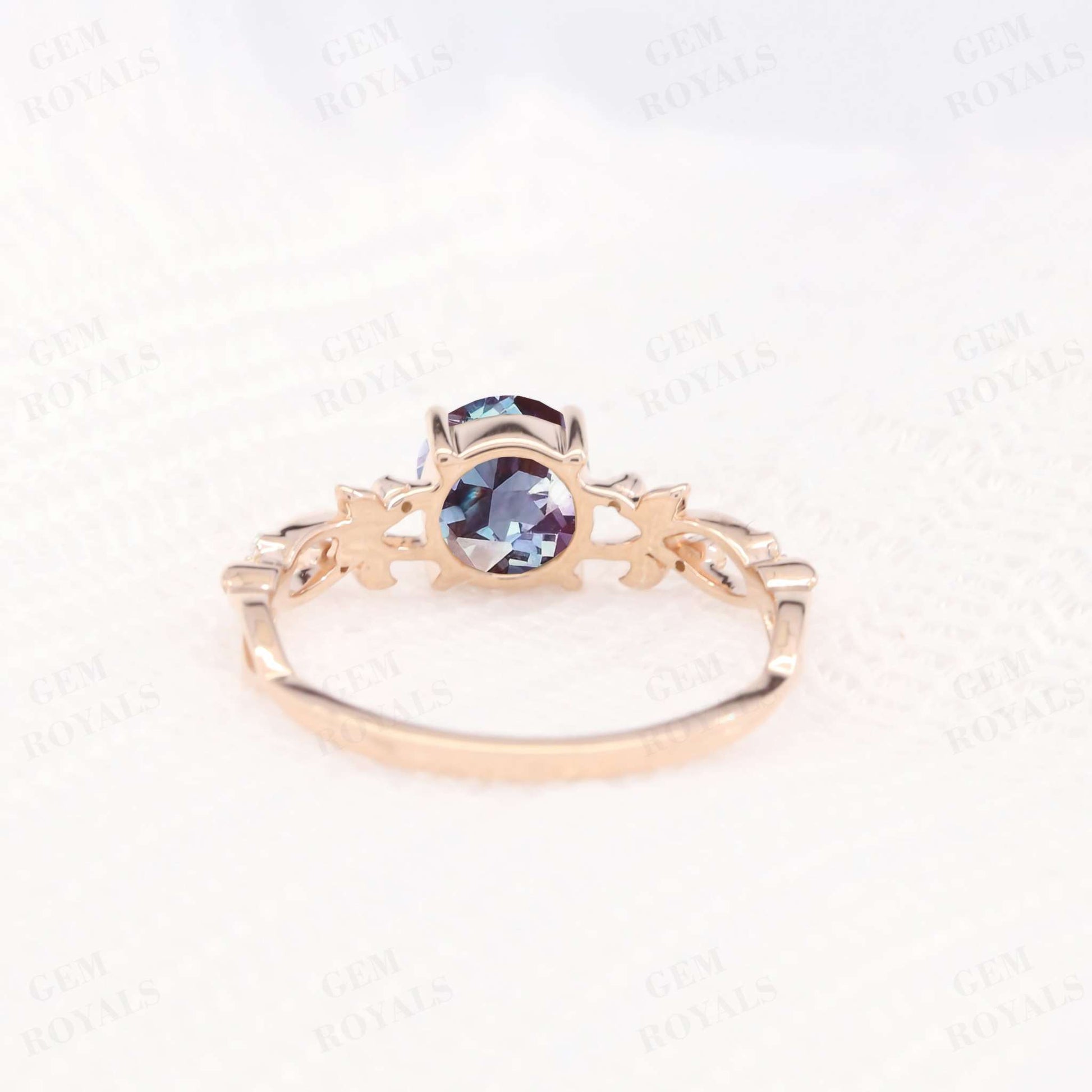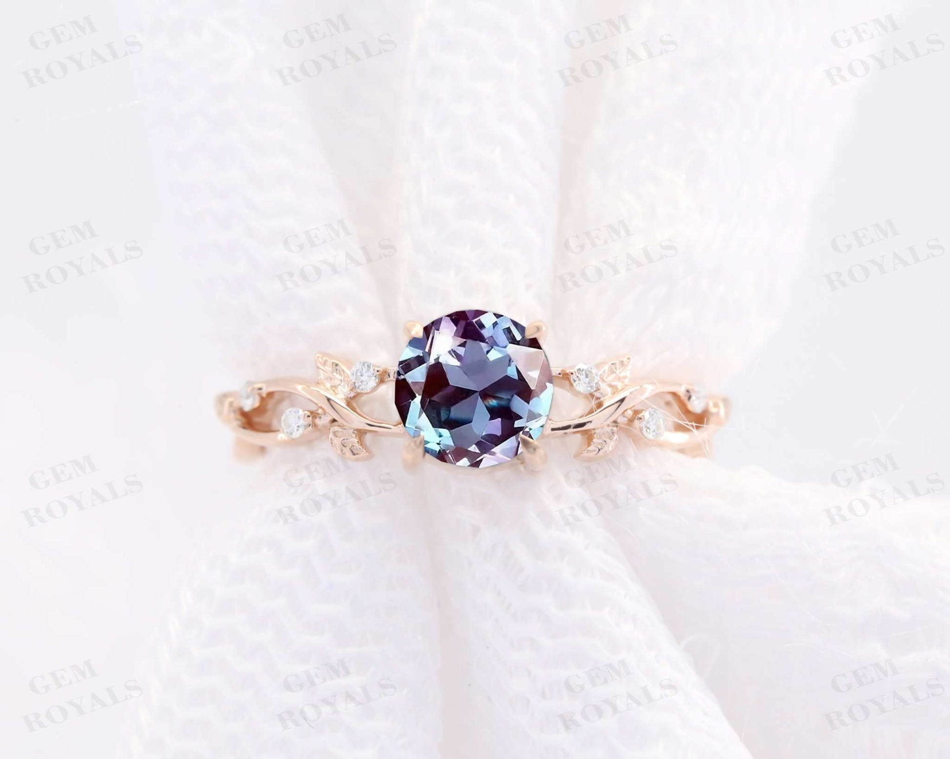 Nature Inspired Round Cut Alexandrite Engagement Ring