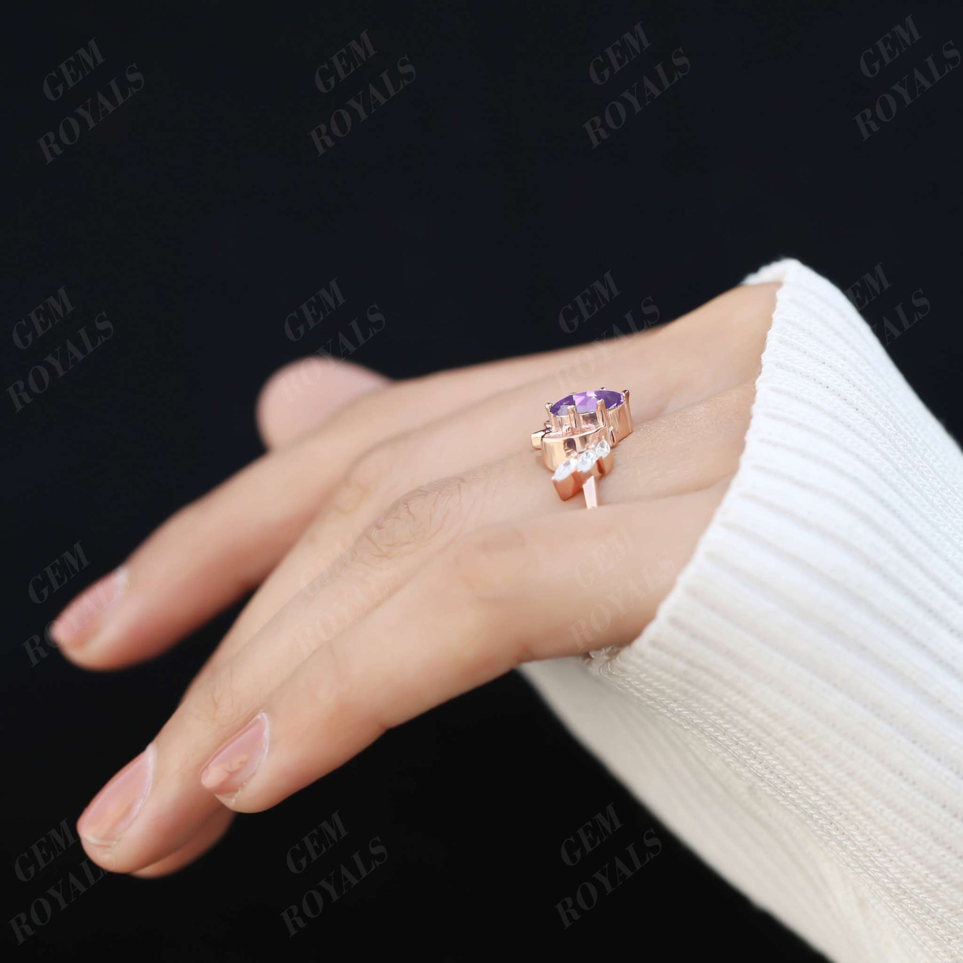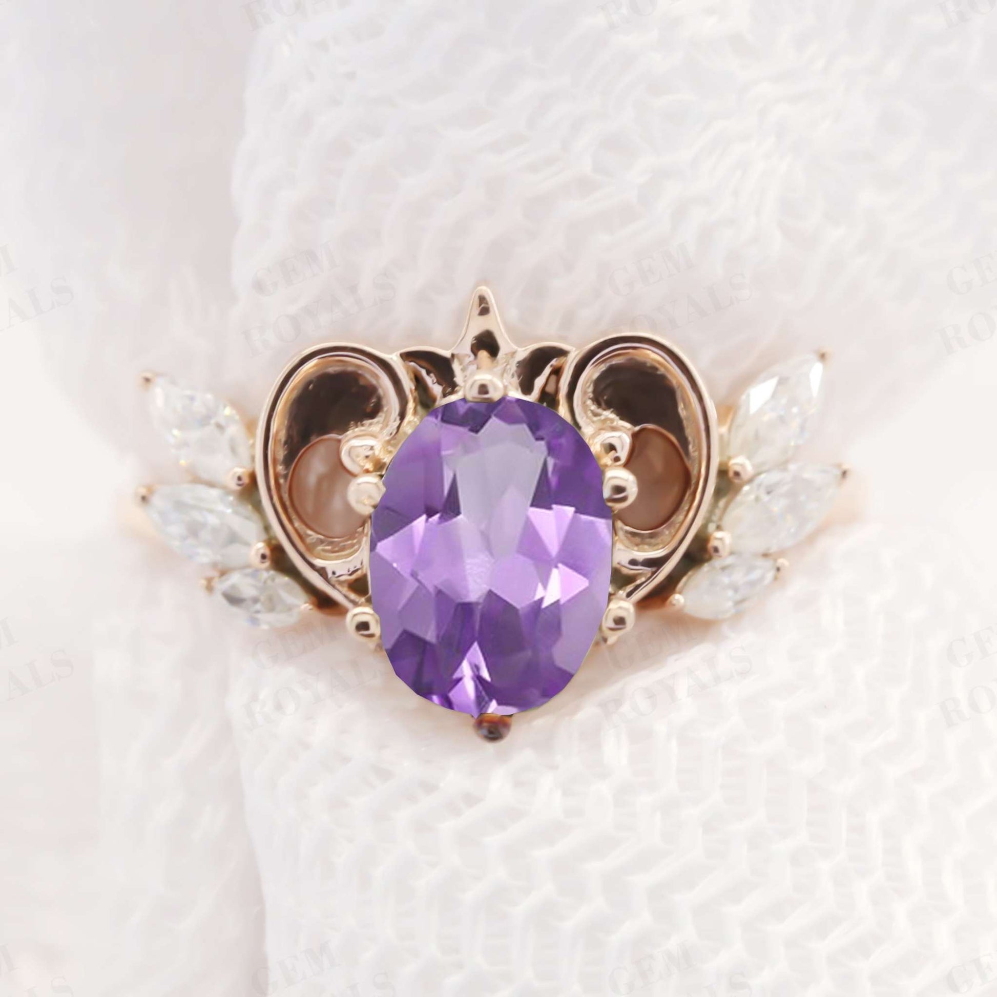 Vintage Style Oval and Marquise Amethyst Engagement Ring