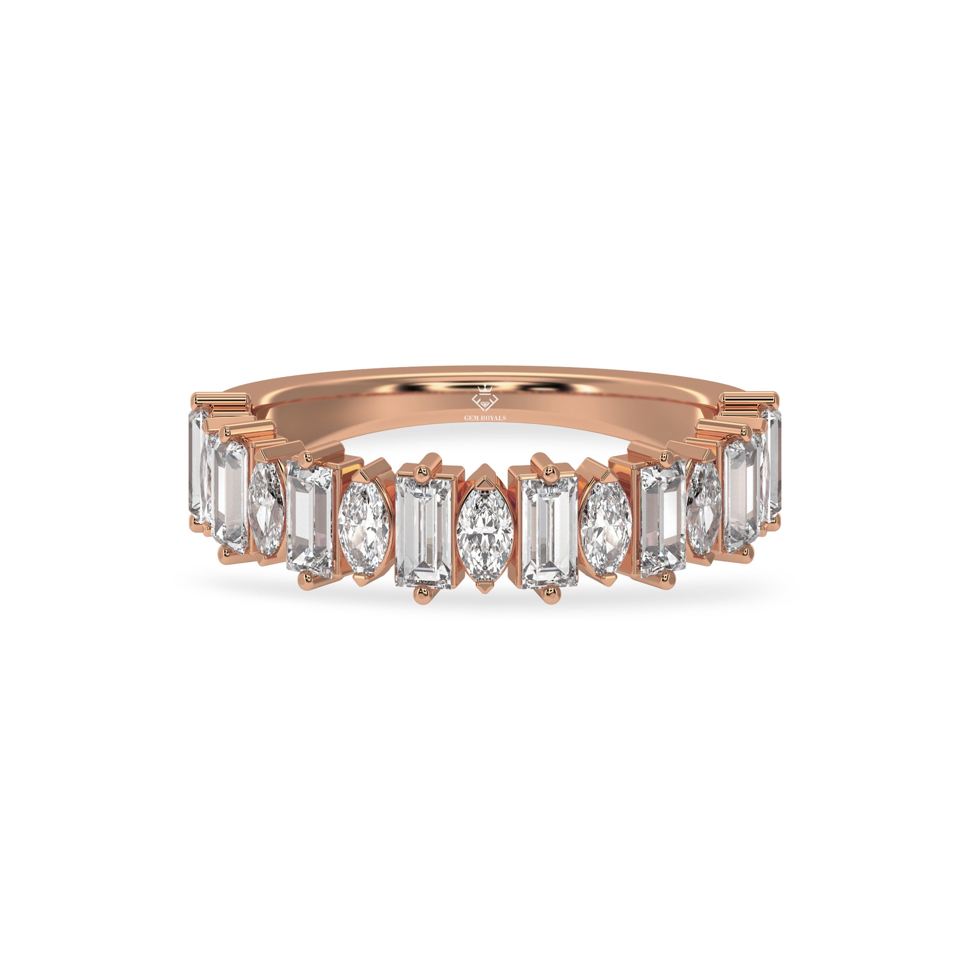 1.60 Carat Baguette And Marquise Diamond Half Eternity 14K Gold Wedding Band For Women