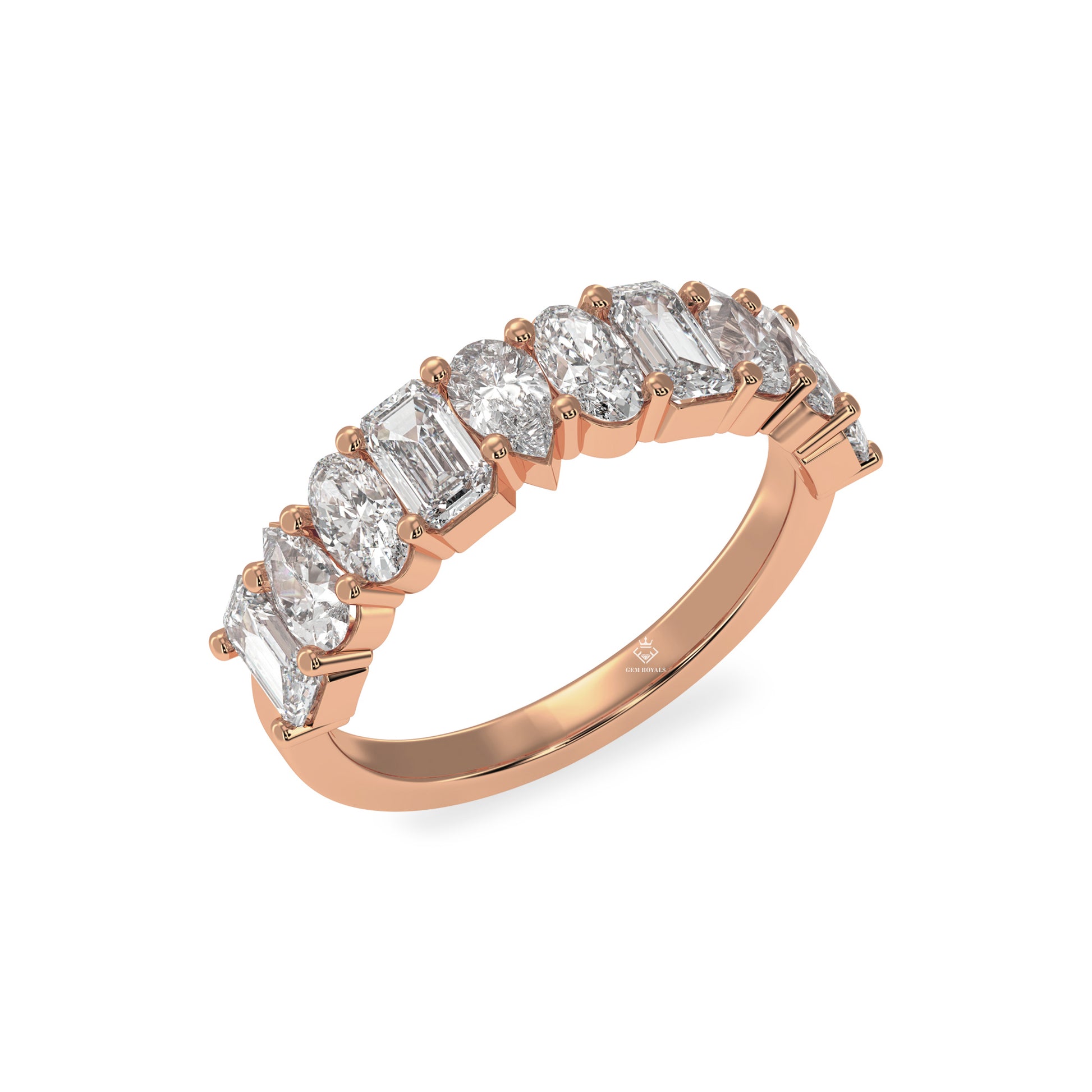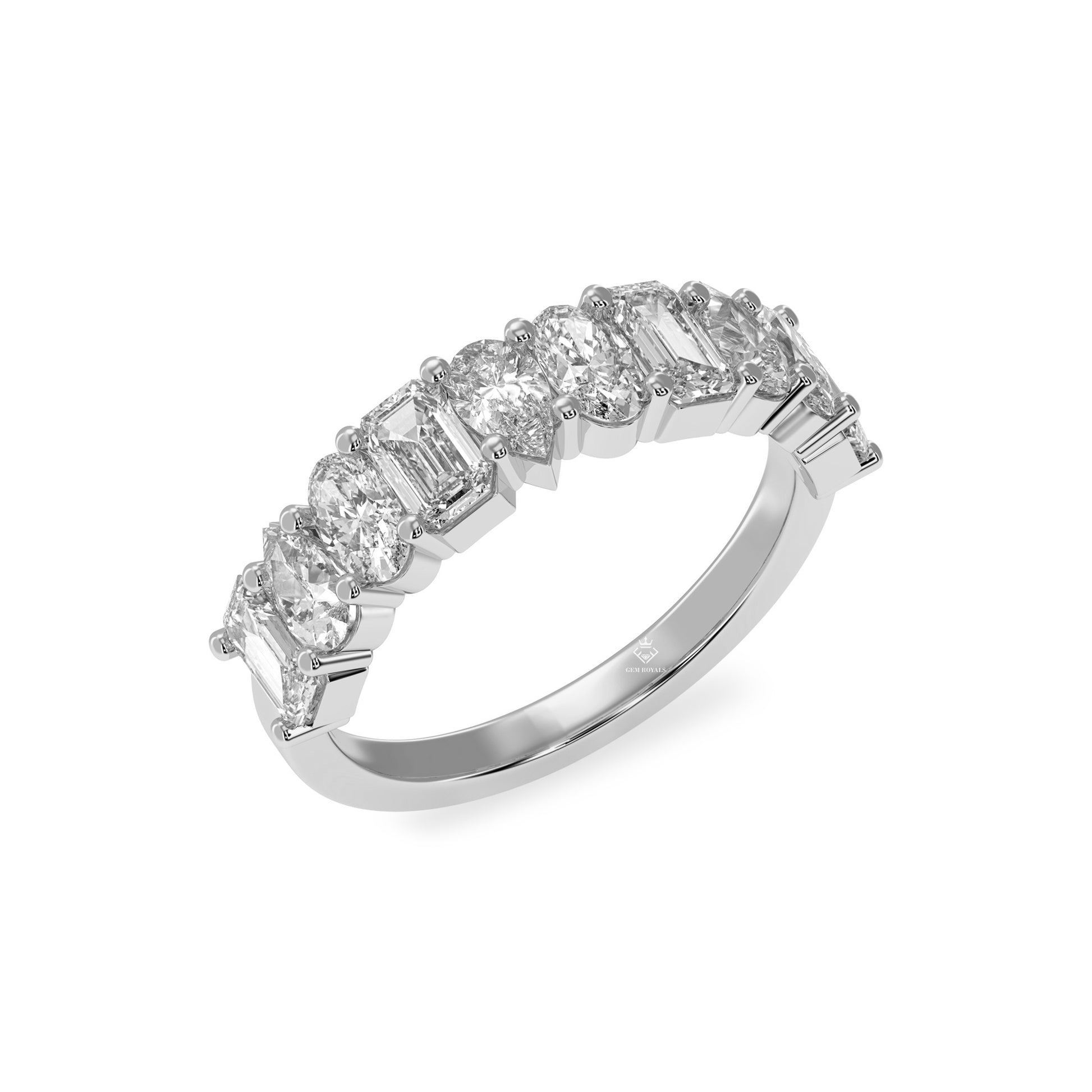 2.72 Carat Emerald, Pear And Oval Diamond Half Eternity 18K Gold Wedding Band For Women