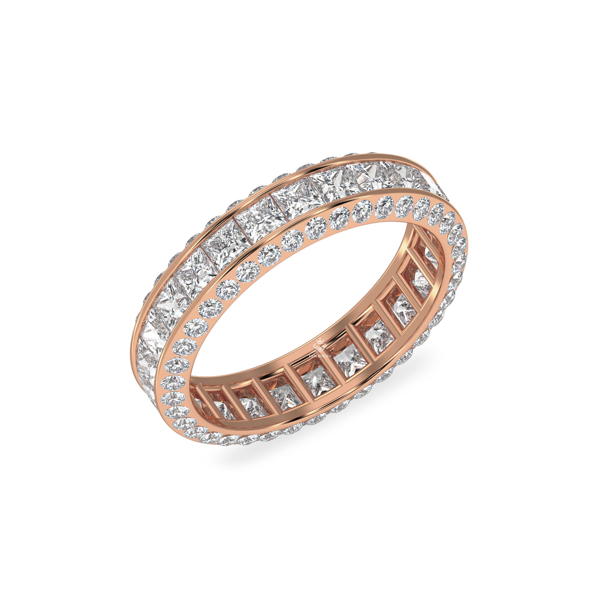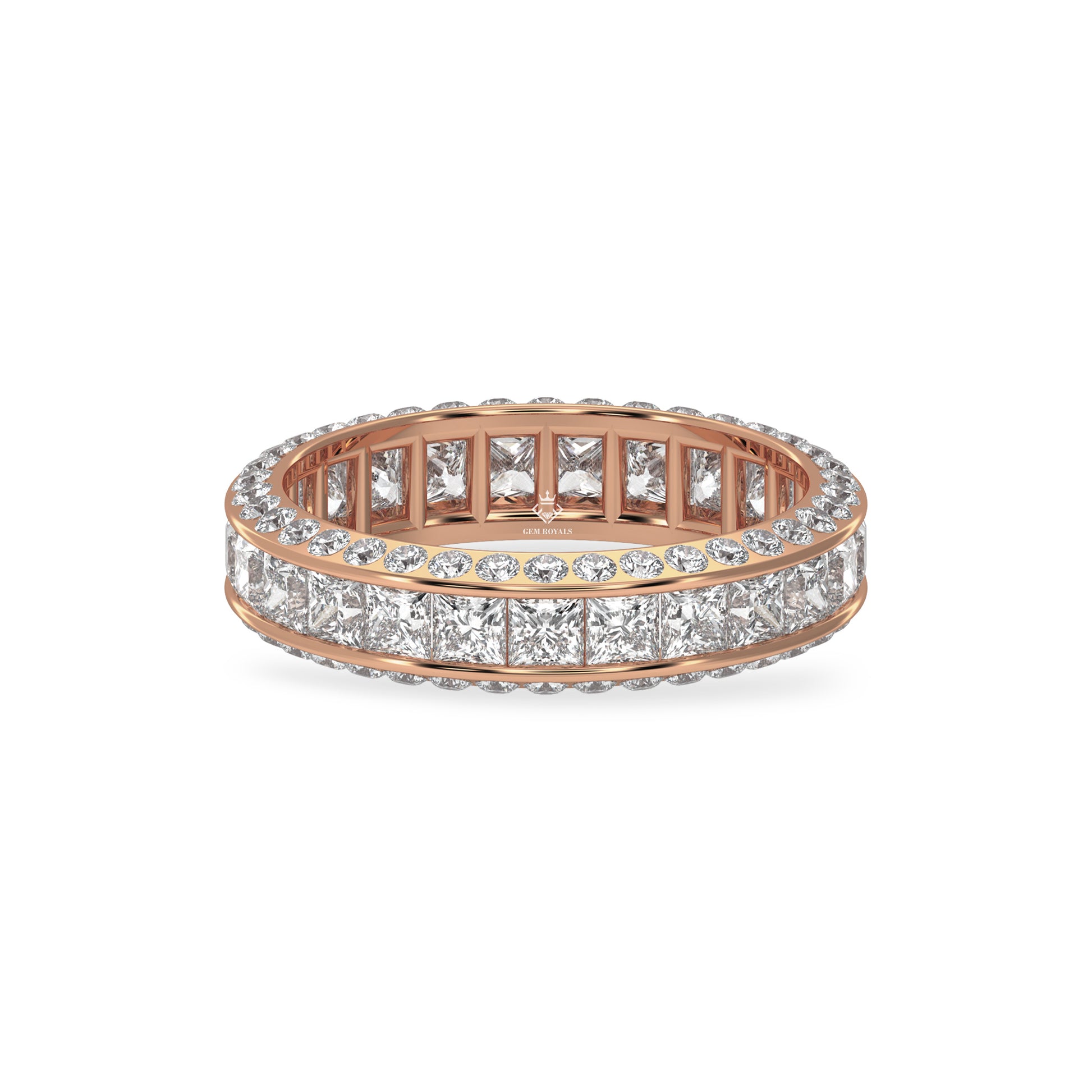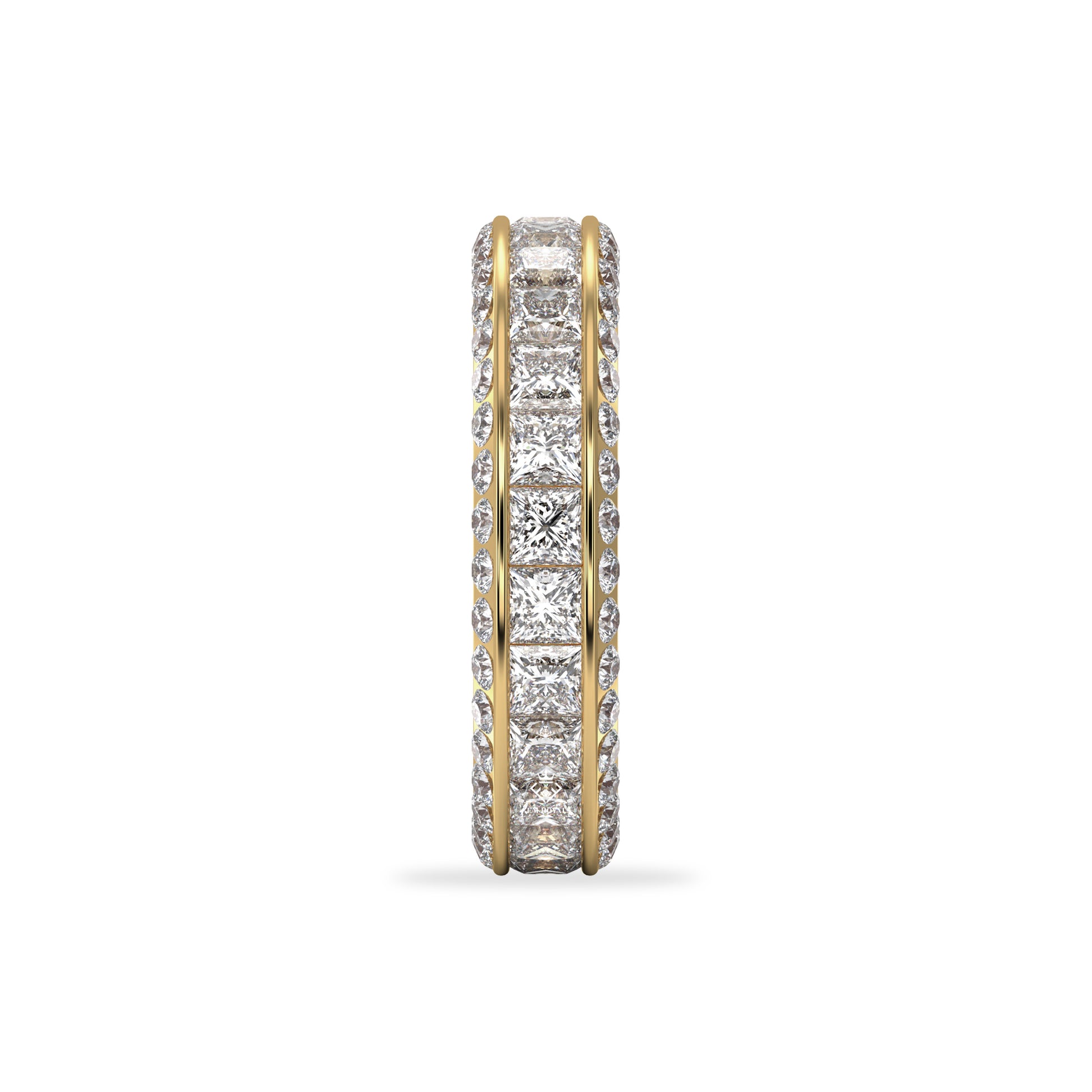 3.67 Carat Princess and Round Diamond Eternity 14K Gold Wedding Band For Men