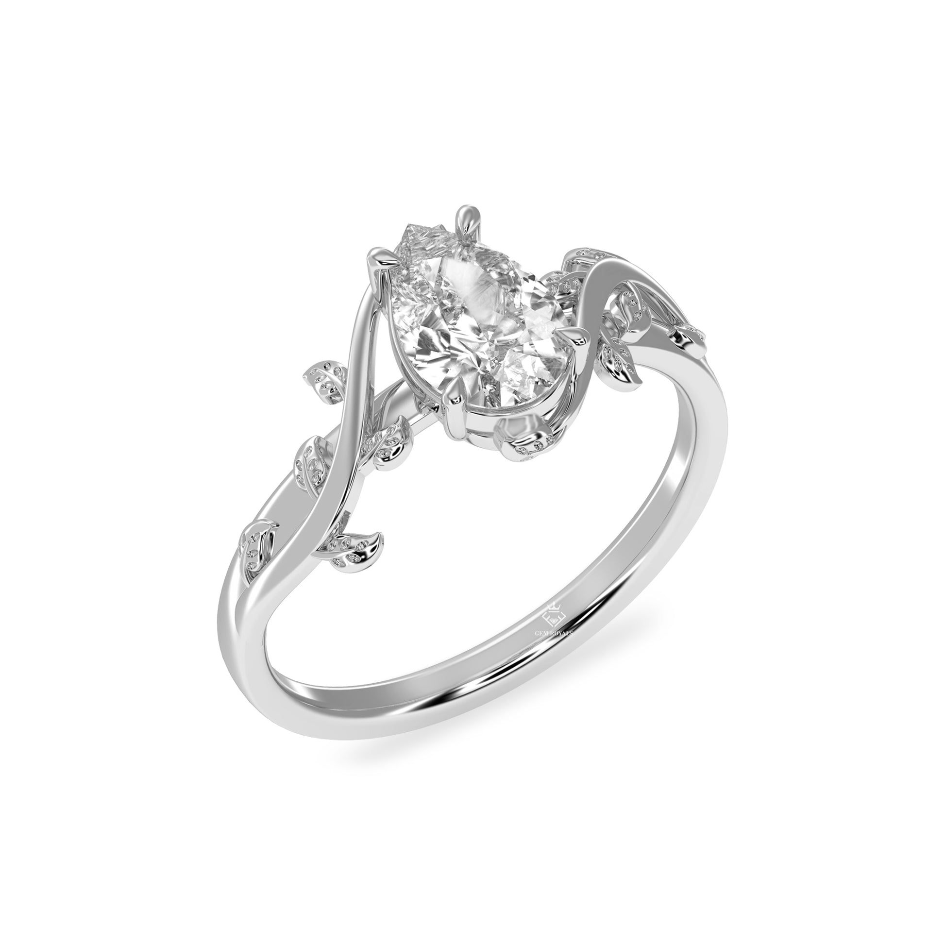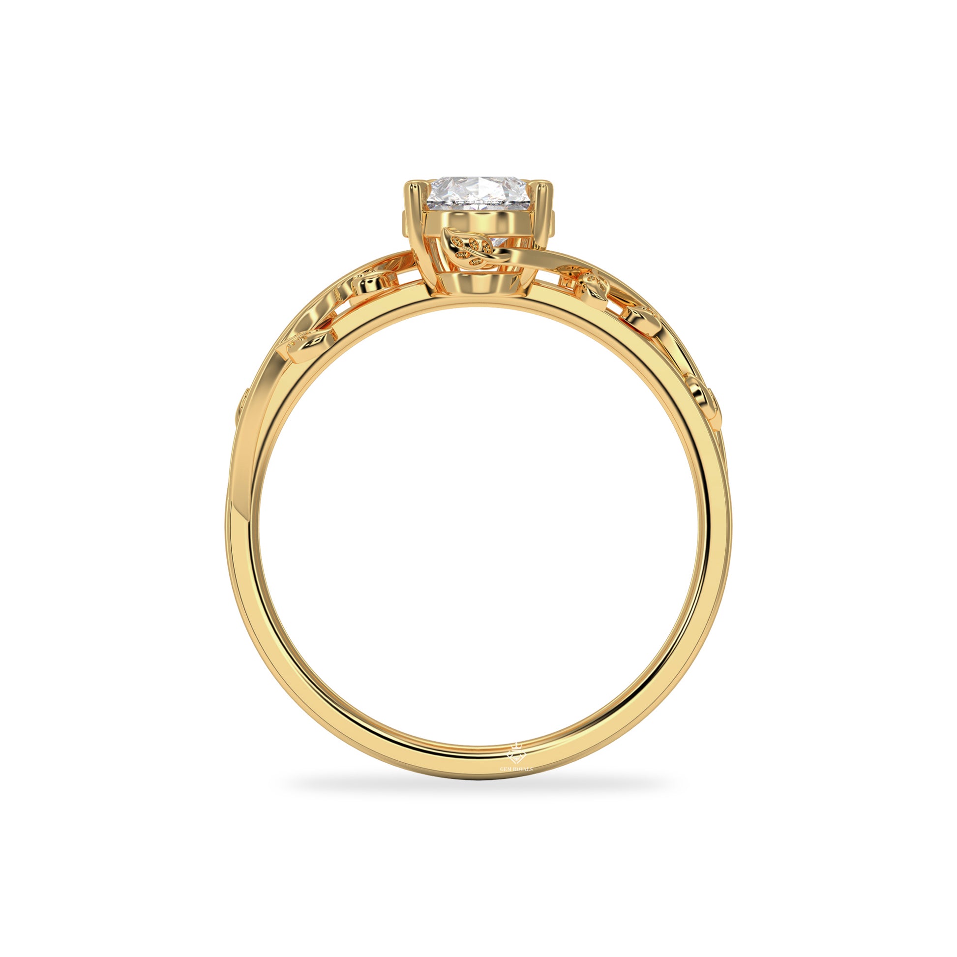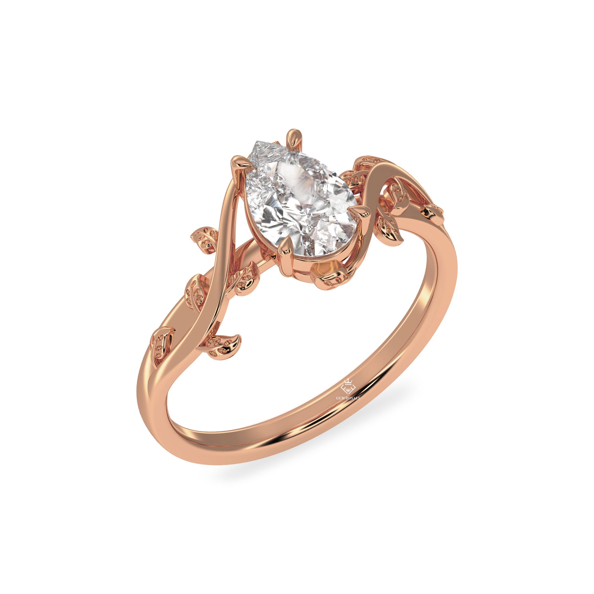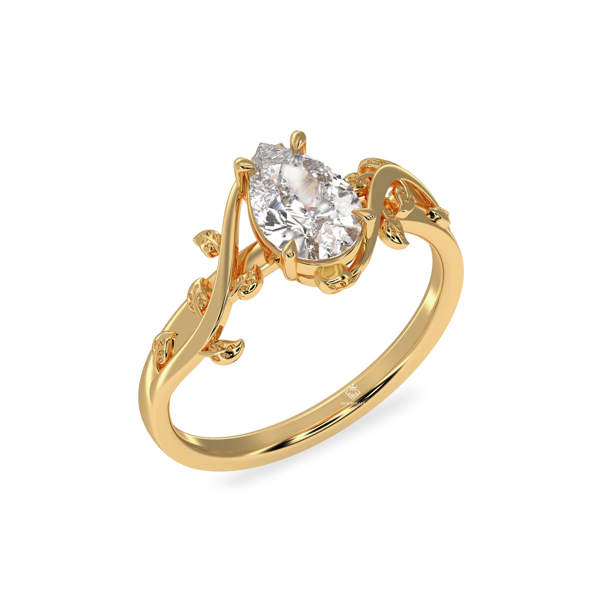 1 Carat Pear Shaped Diamond Nature Inspired Solitaire Vintage 14K Gold Promise Ring For Her
