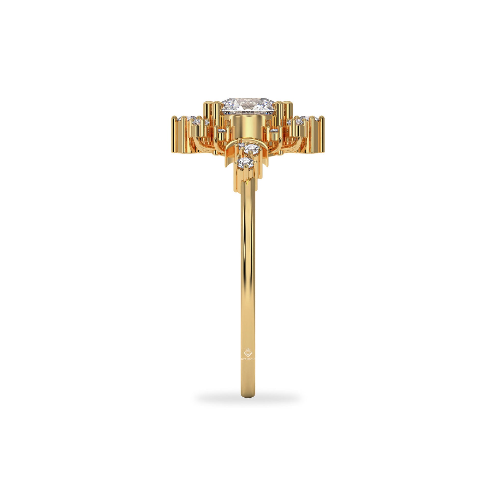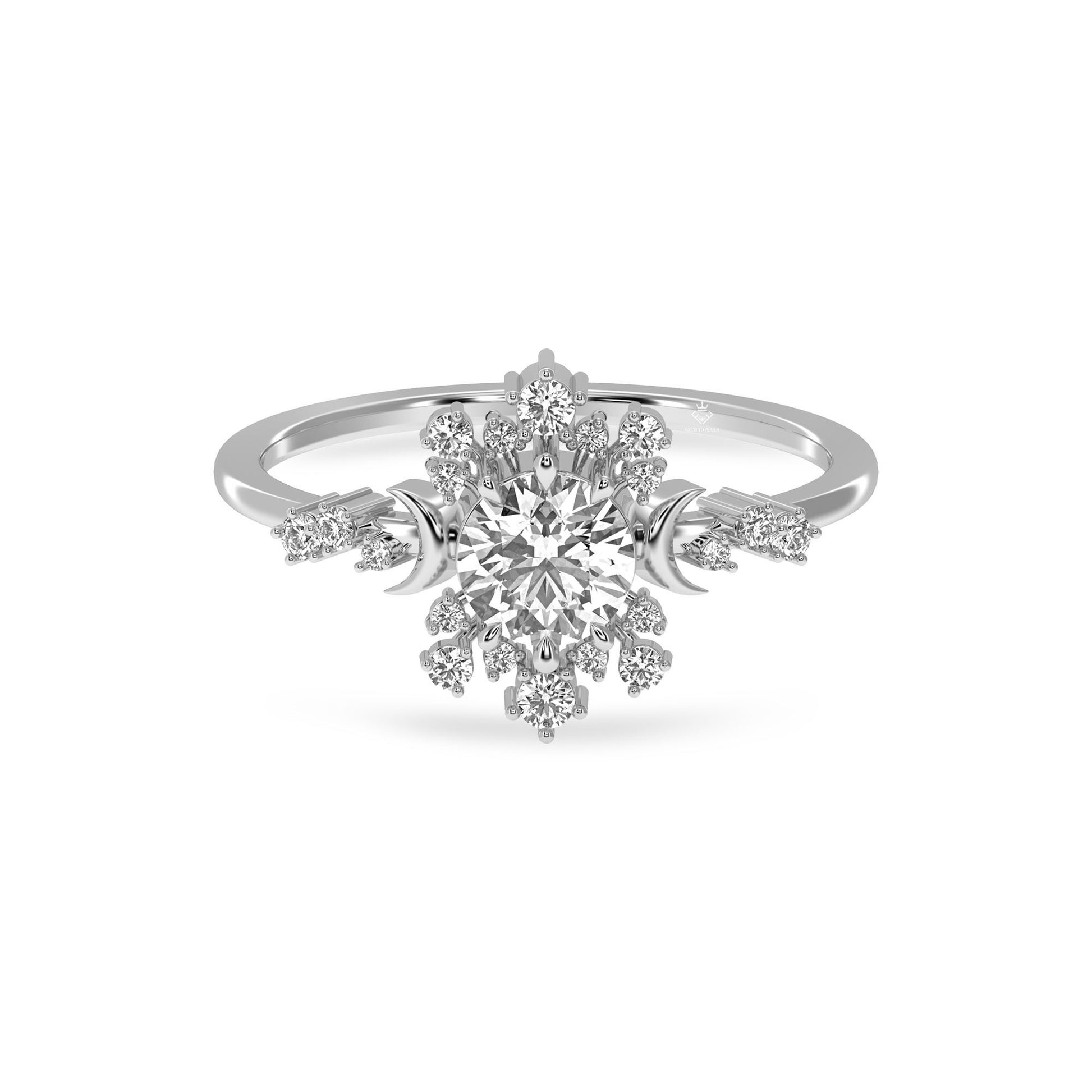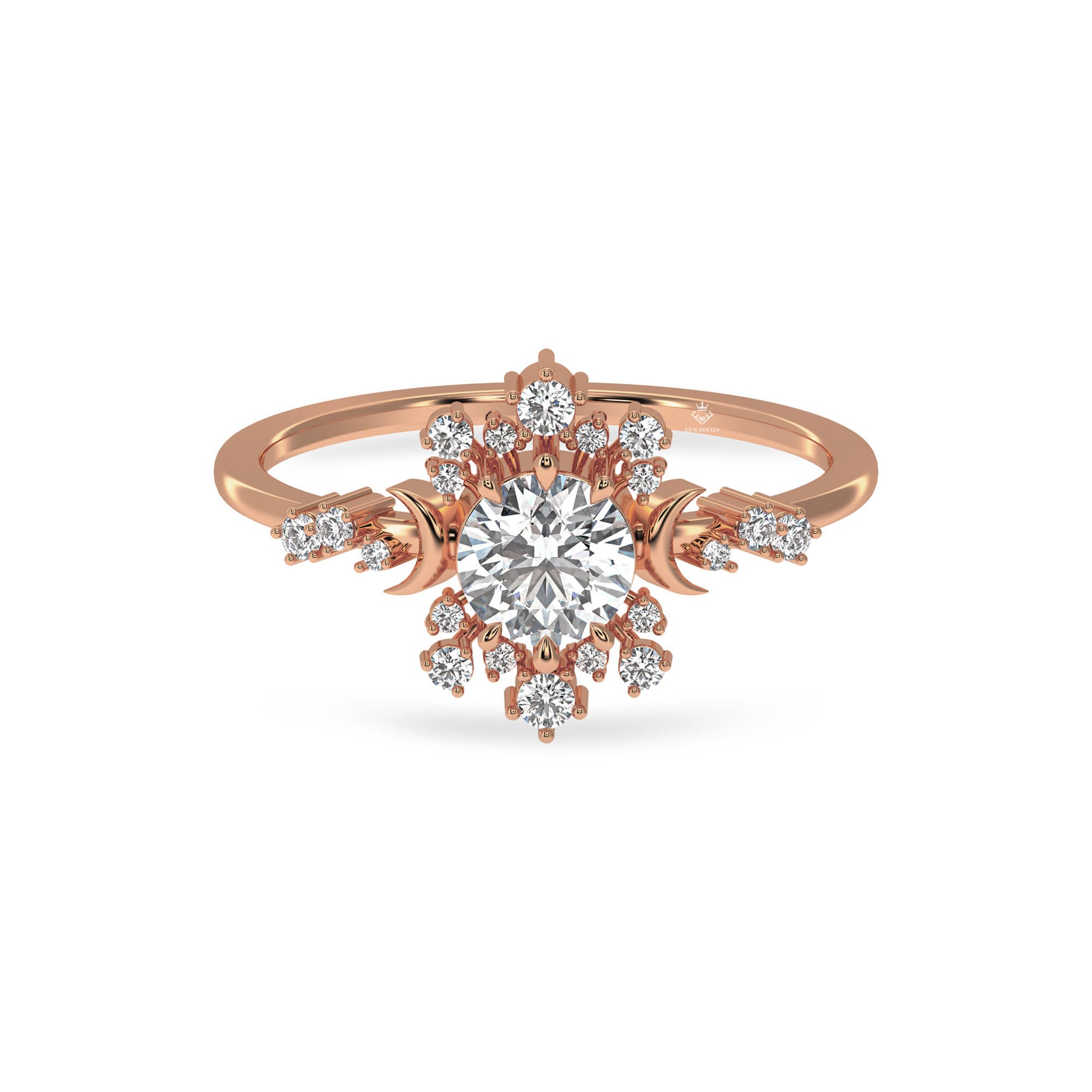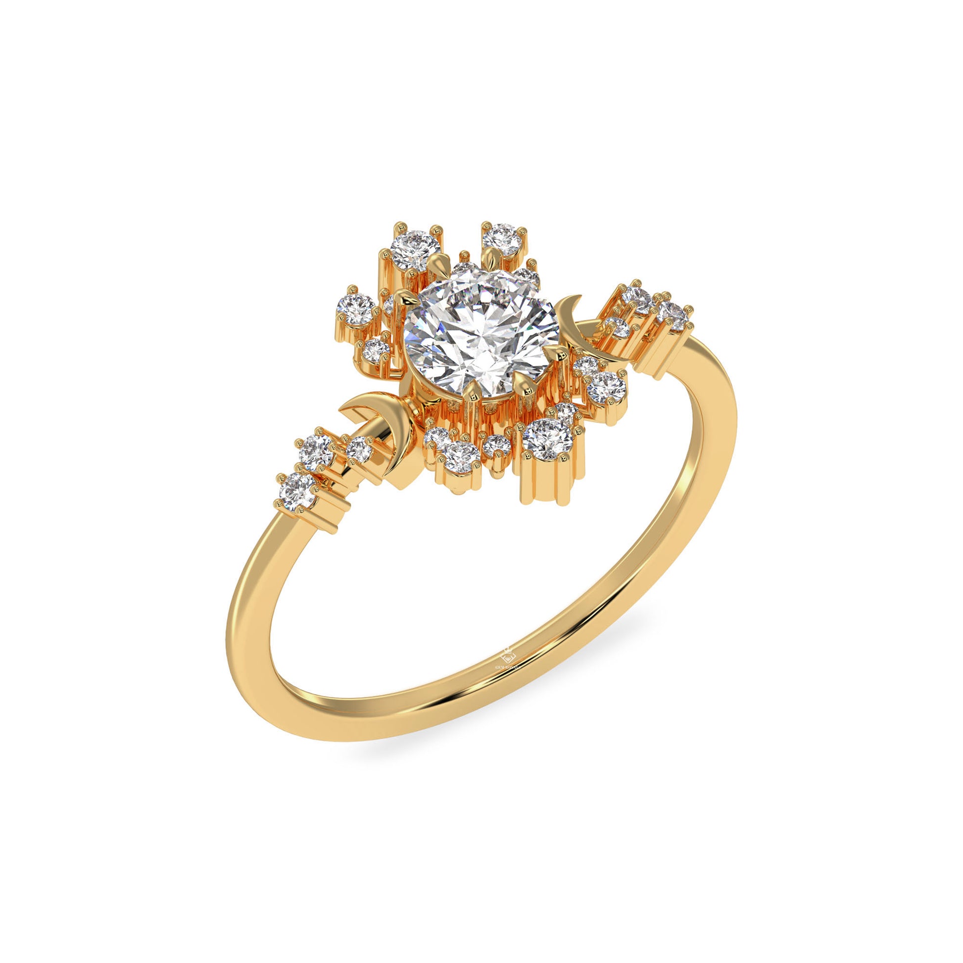0.96 Carat Round Diamond Celestial Vintage 14K Gold Engagement Ring For Her