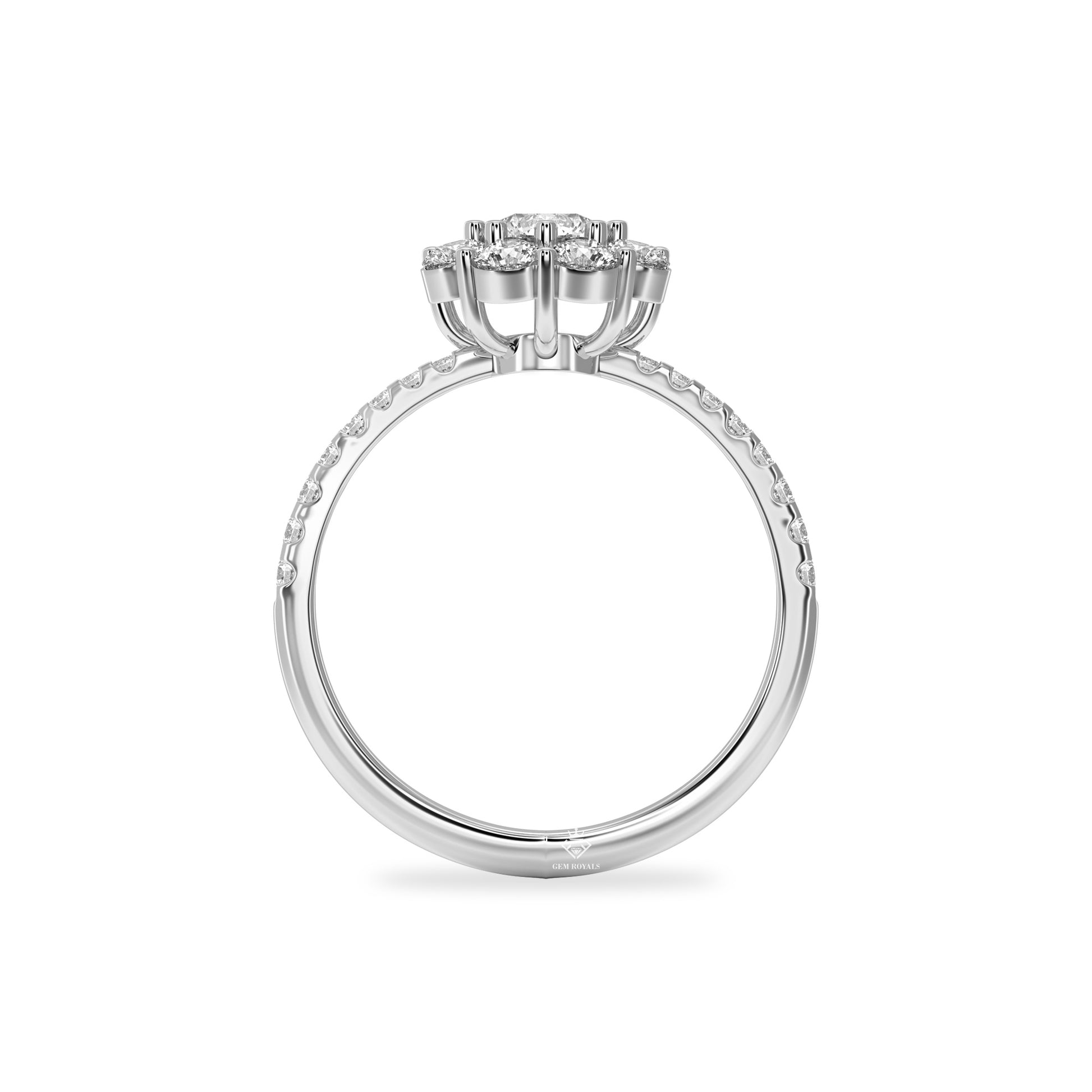 1.70 Carat Round Diamond Vintage Floral Halo 14K White Gold Promise Ring For Women