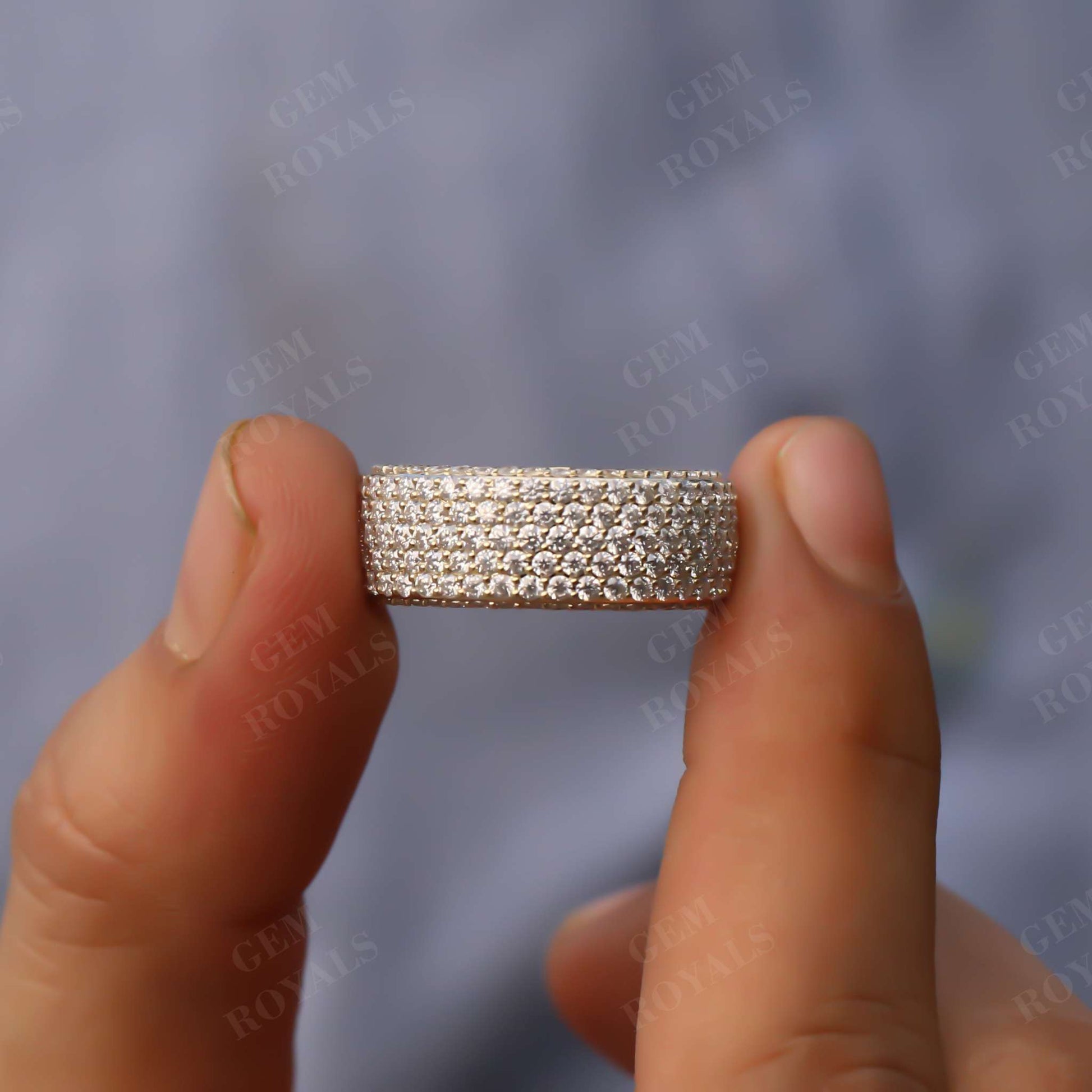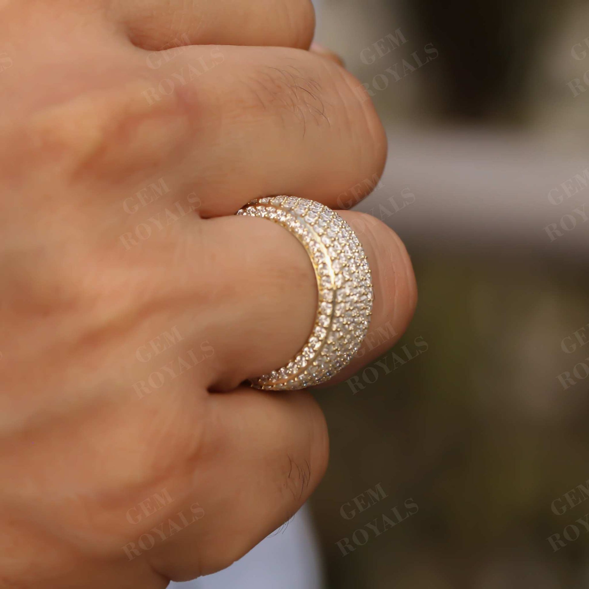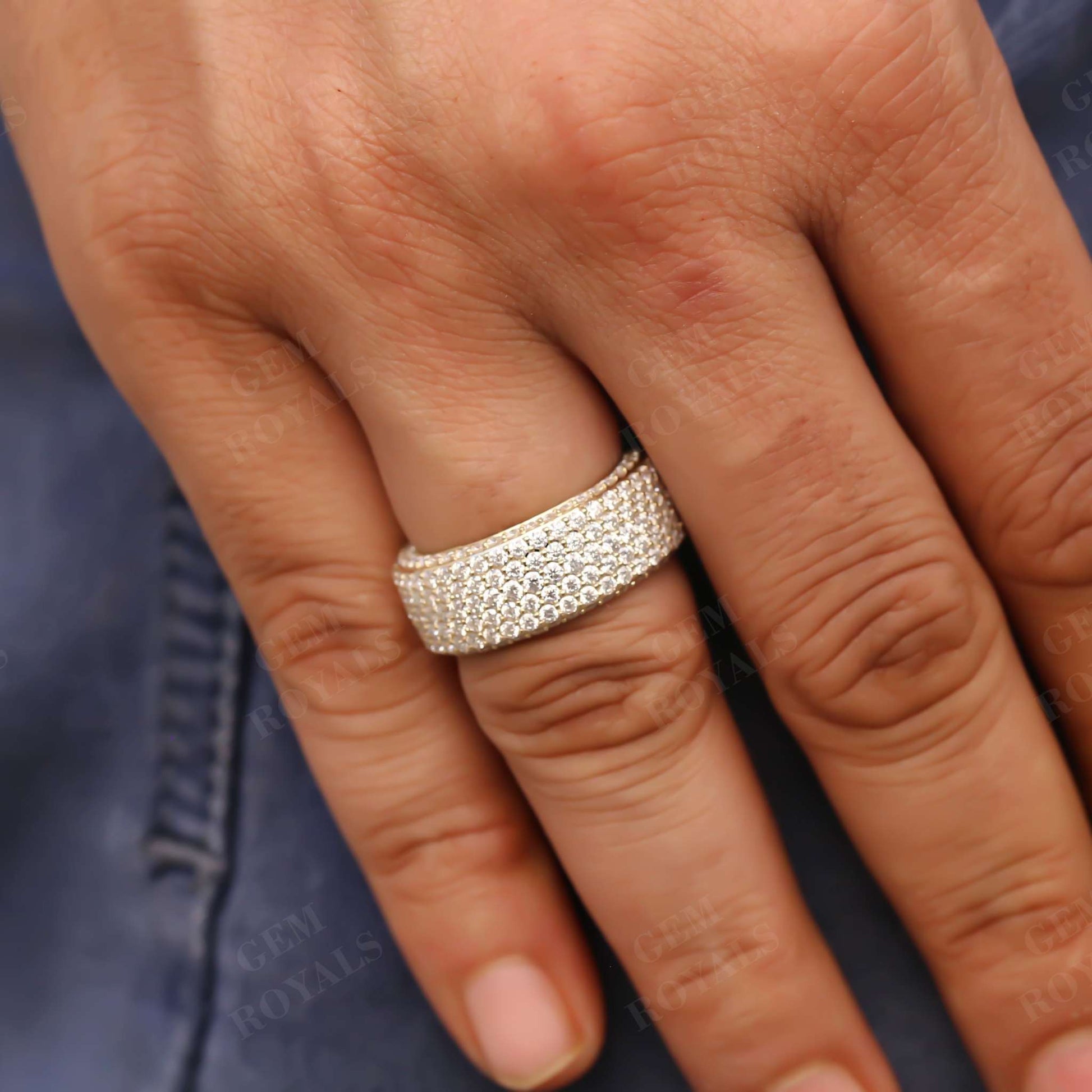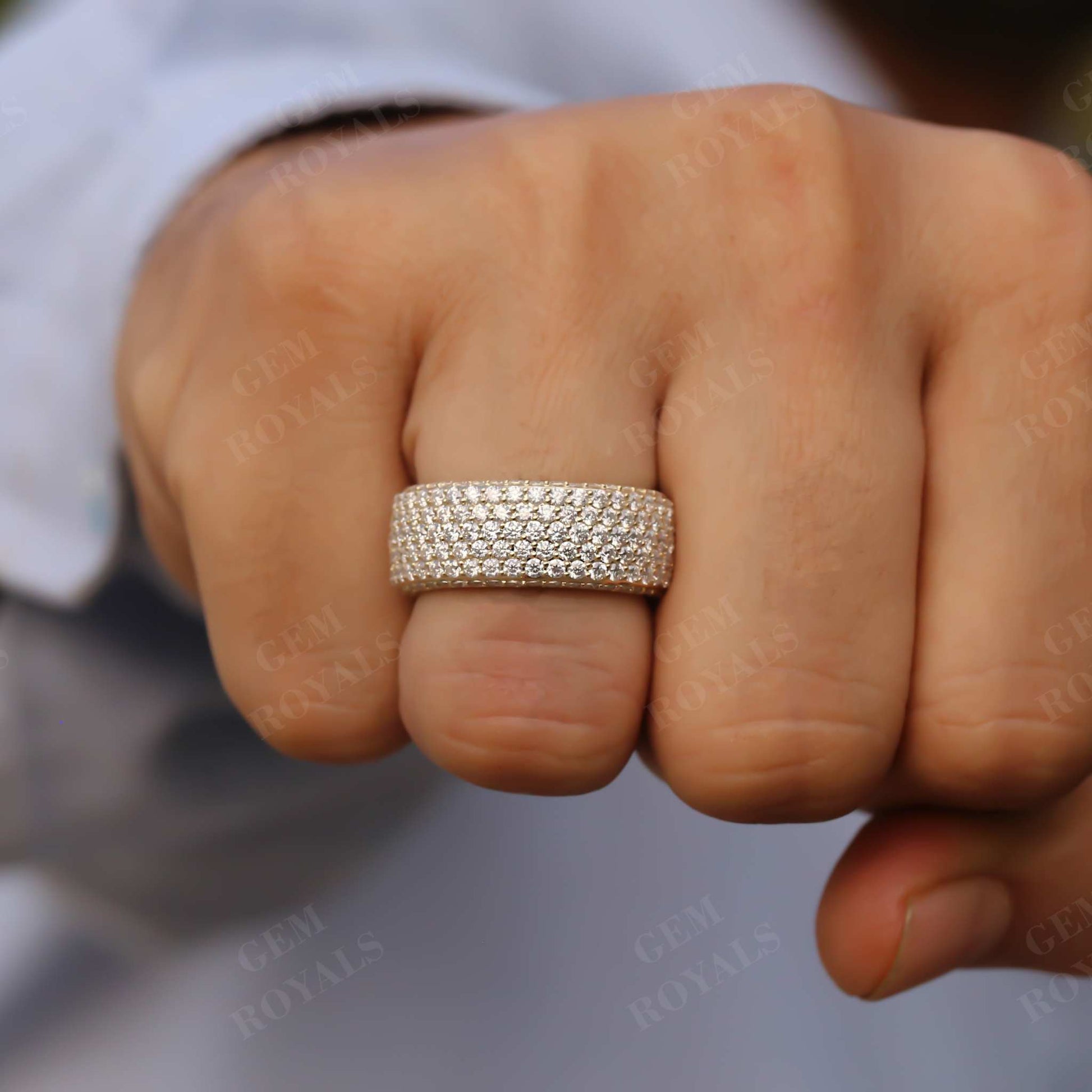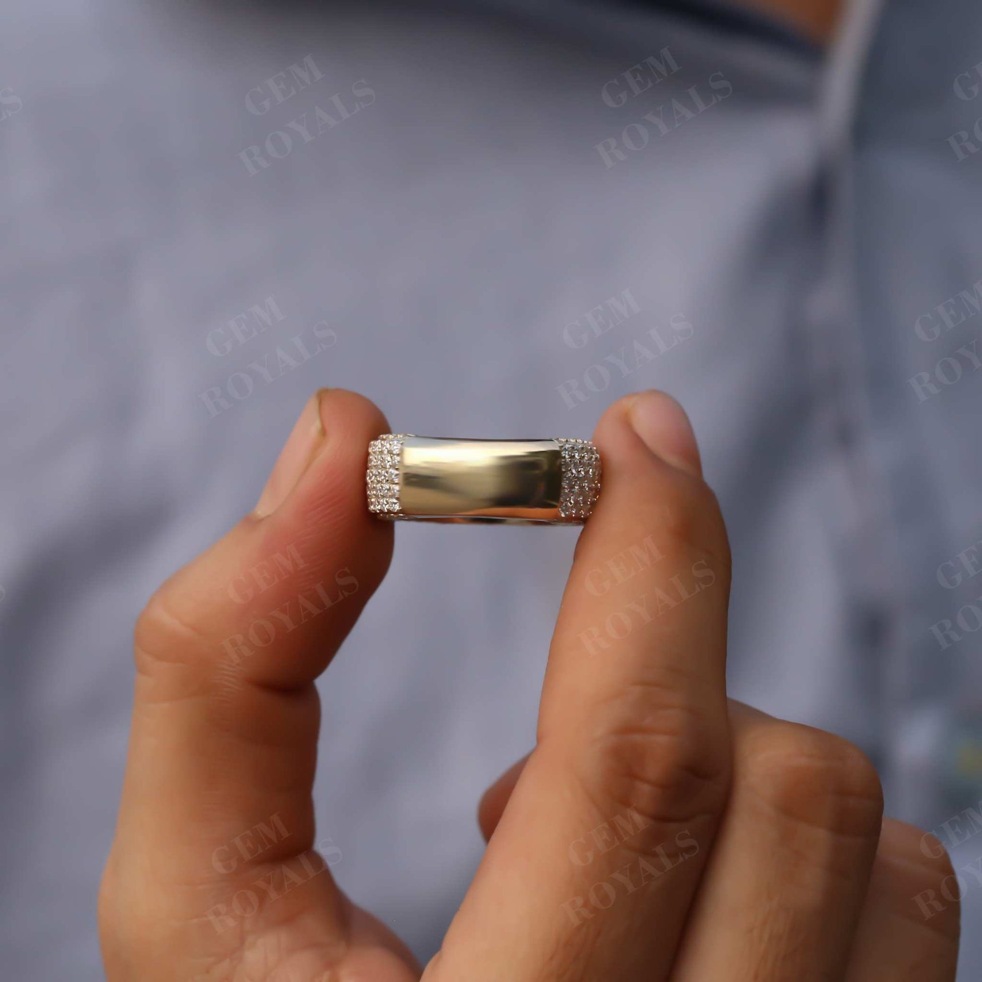 Elevate his style with a Round Cut Moissanite Men's Engagement Ring in a sleek Pave Setting. This wide 9.00mm band crafted in 14k Solid Gold exudes elegance and sophistication. Perfect as an Anniversary or Promise Ring, available in 10K, 14K, or 18K White/Yellow/Rose Gold.
