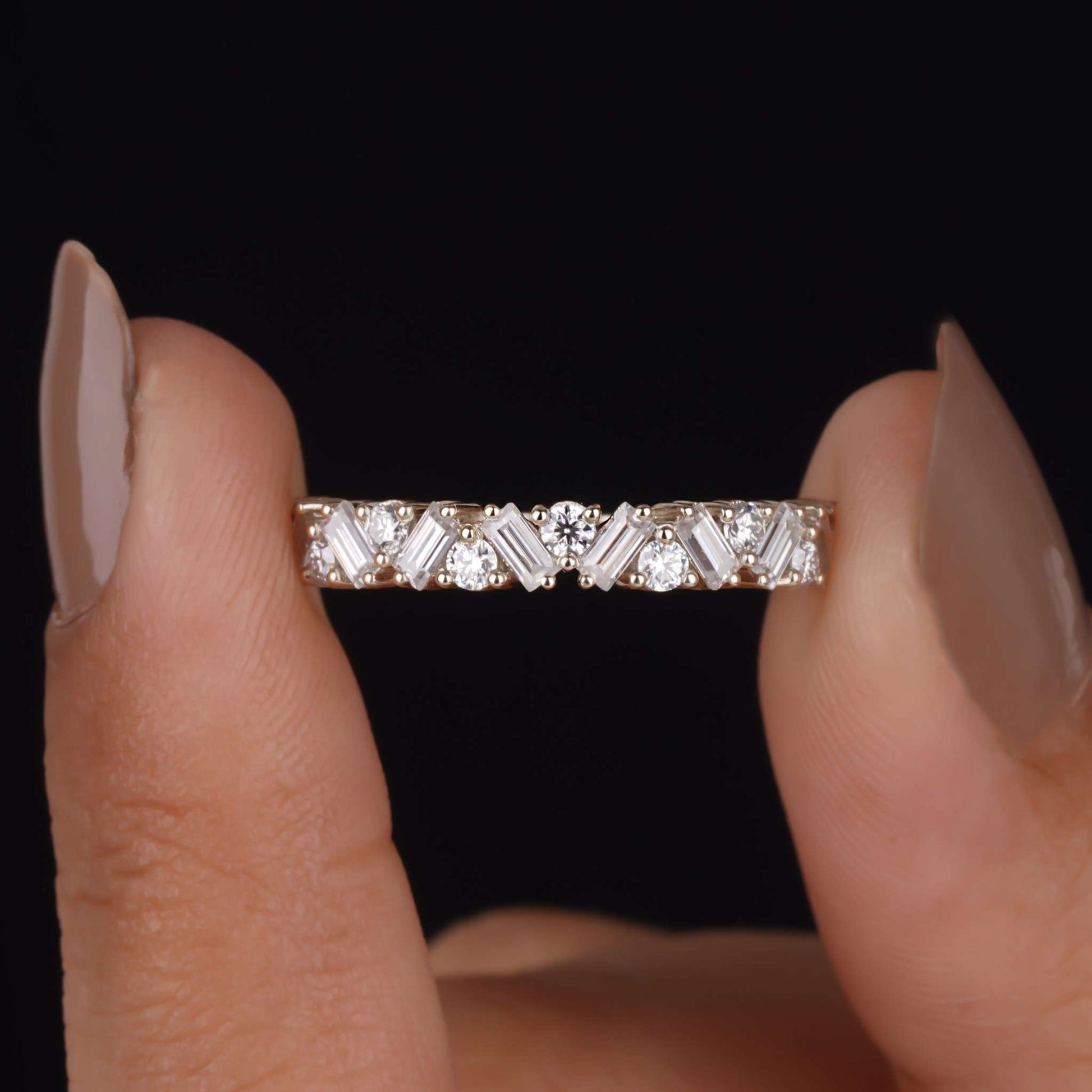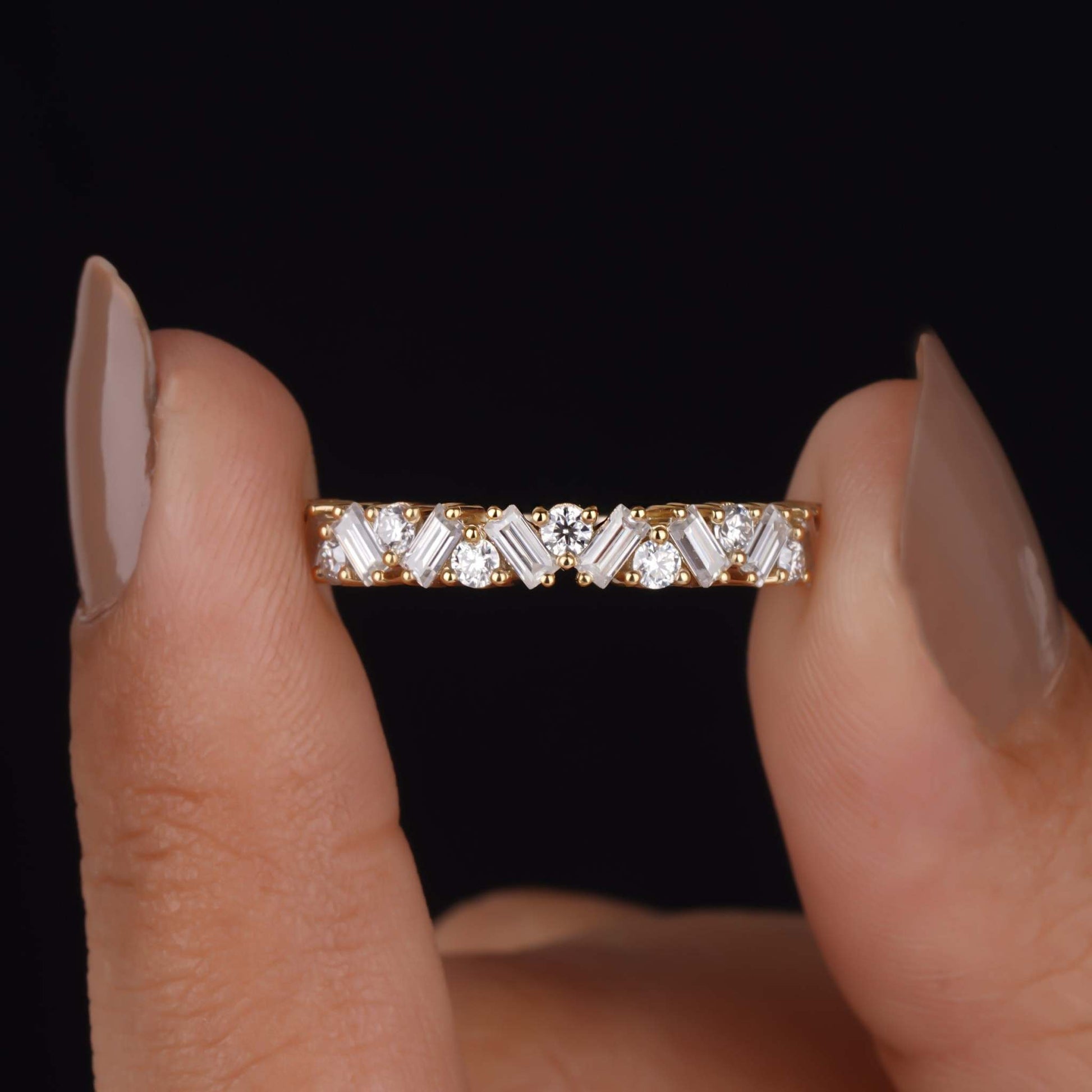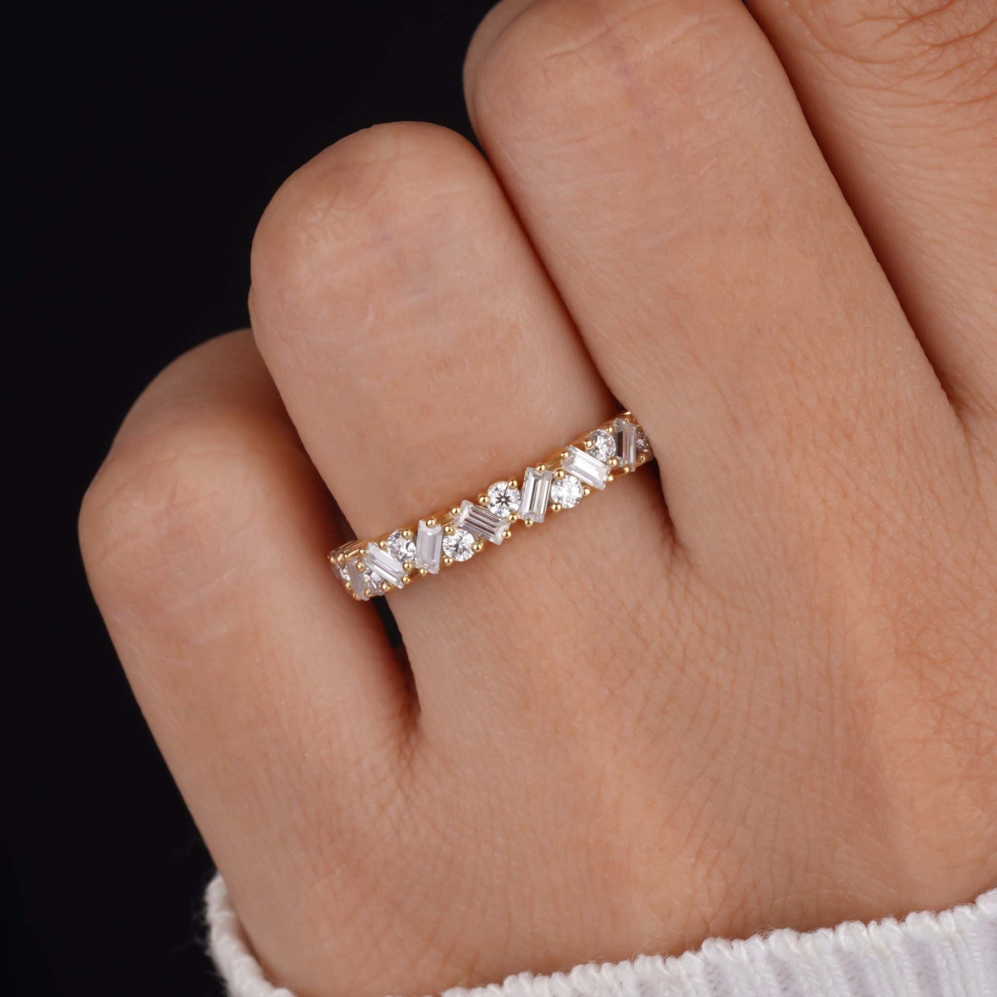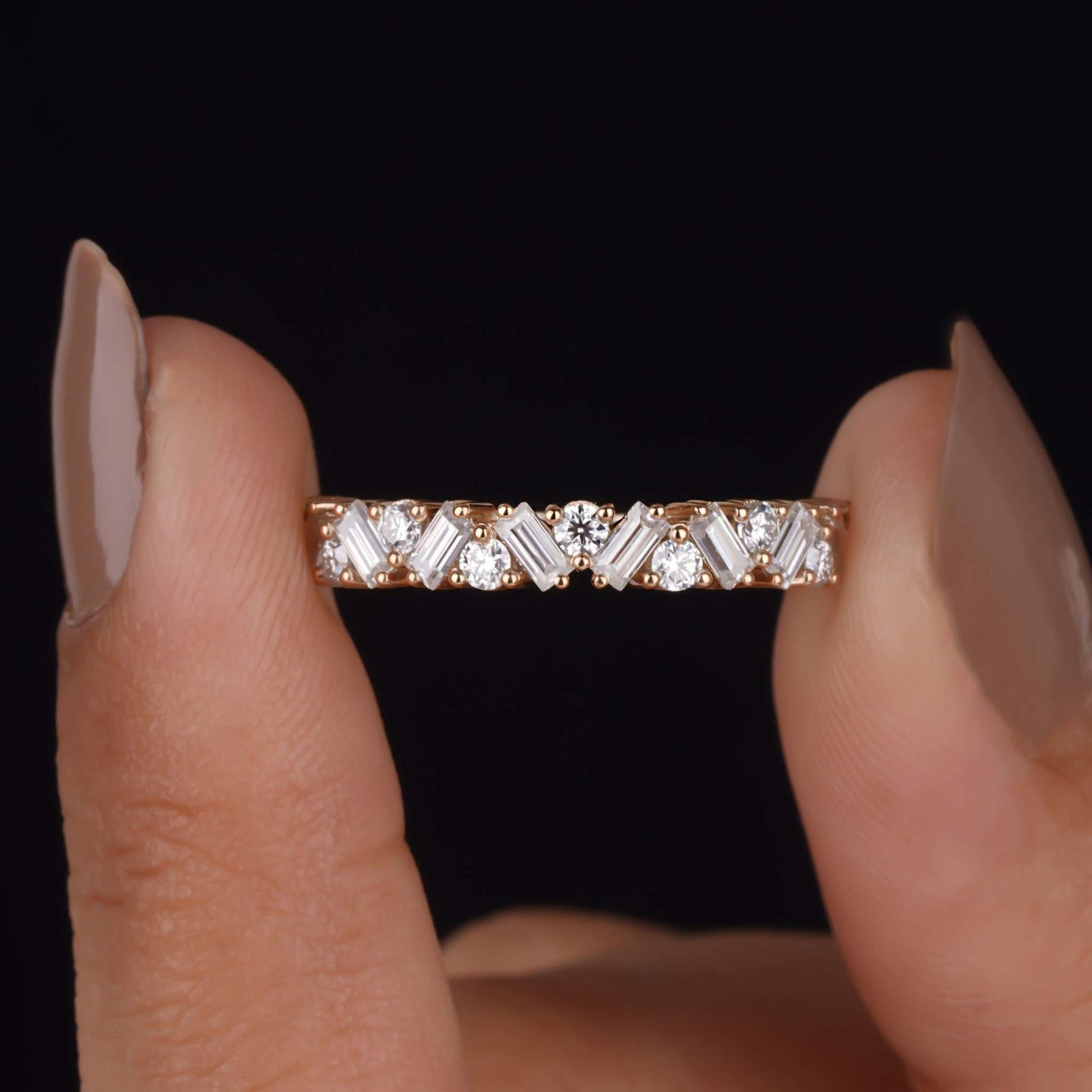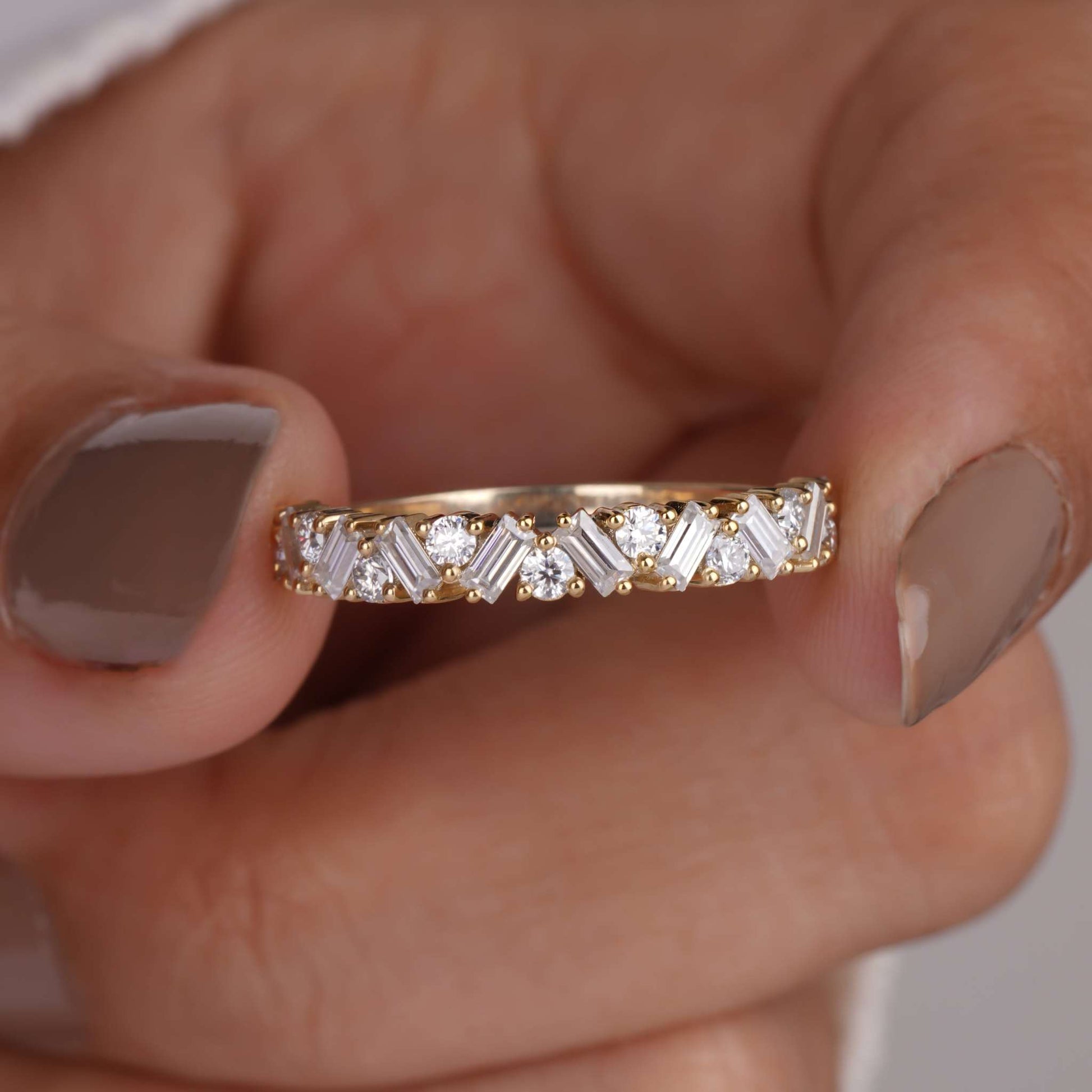 Alternating Baguette and Round Lab Diamond Wedding Band