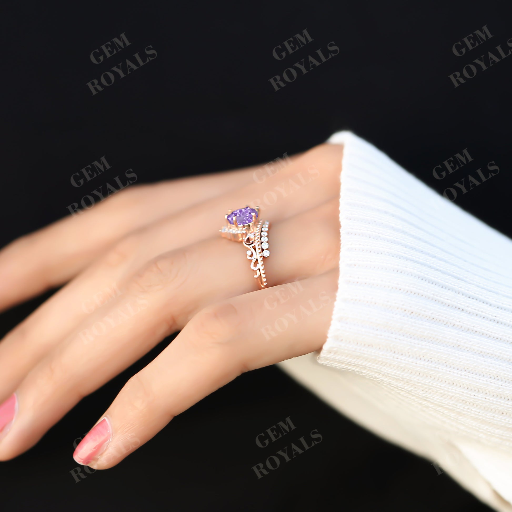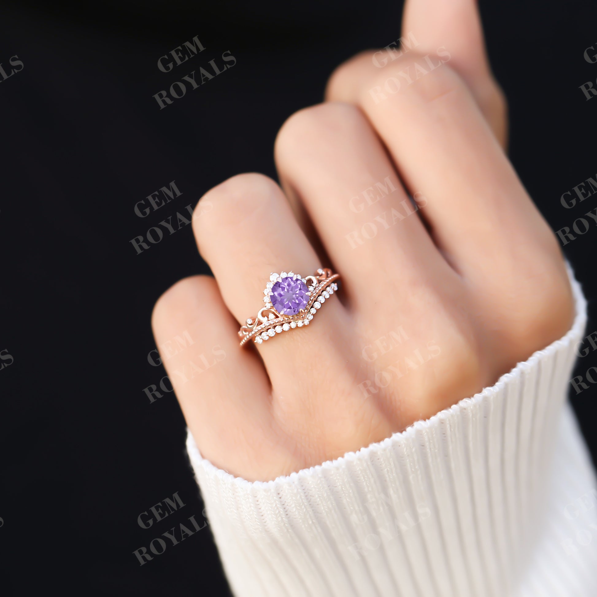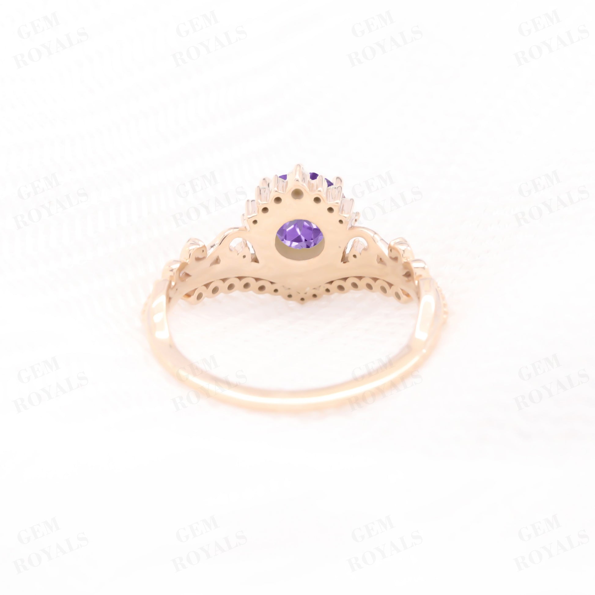 Art Deco Chevron style Round Amethyst Engagement Ring