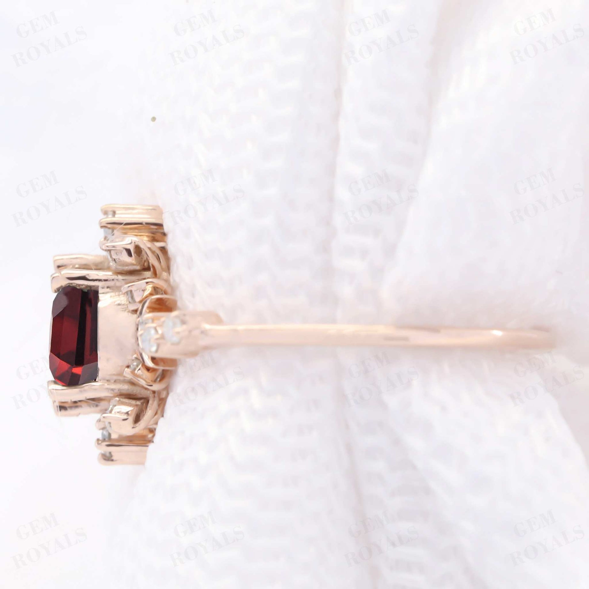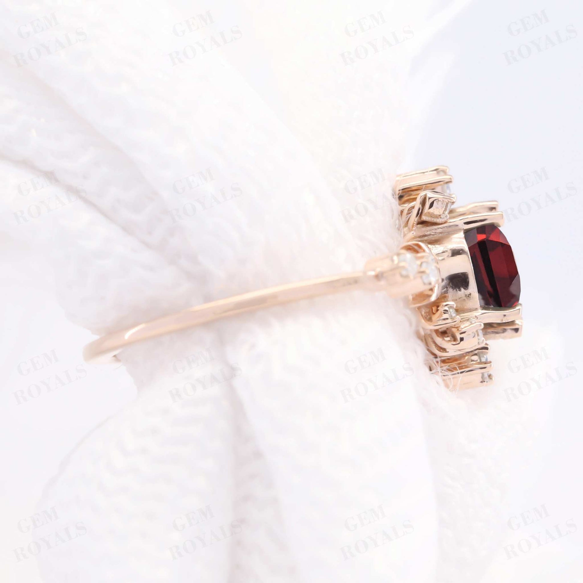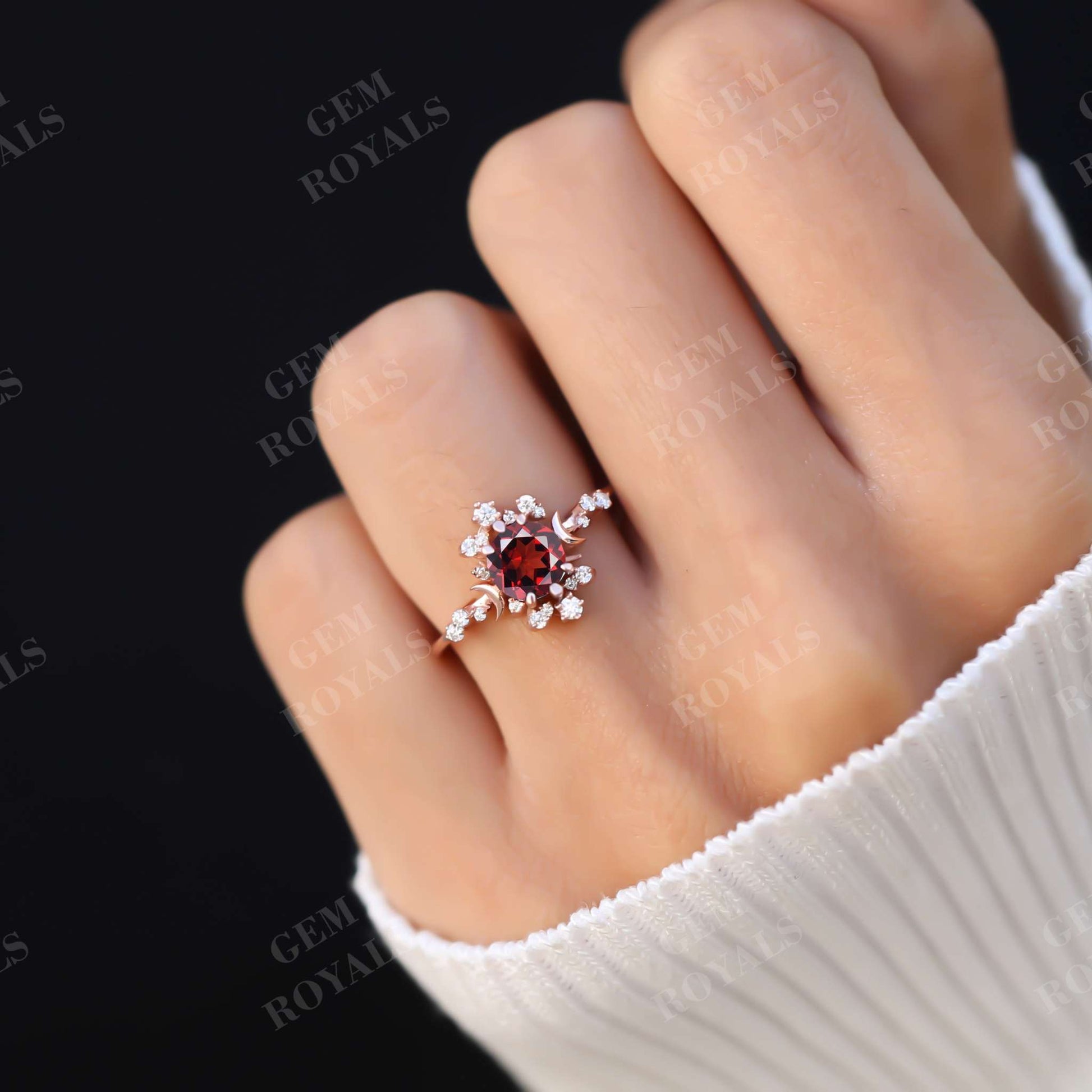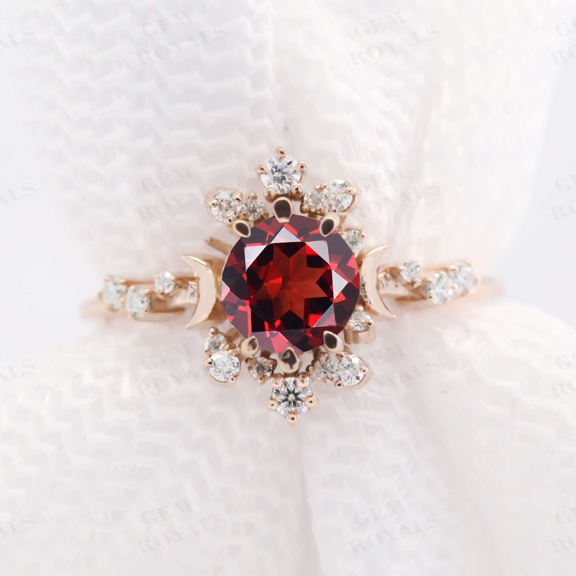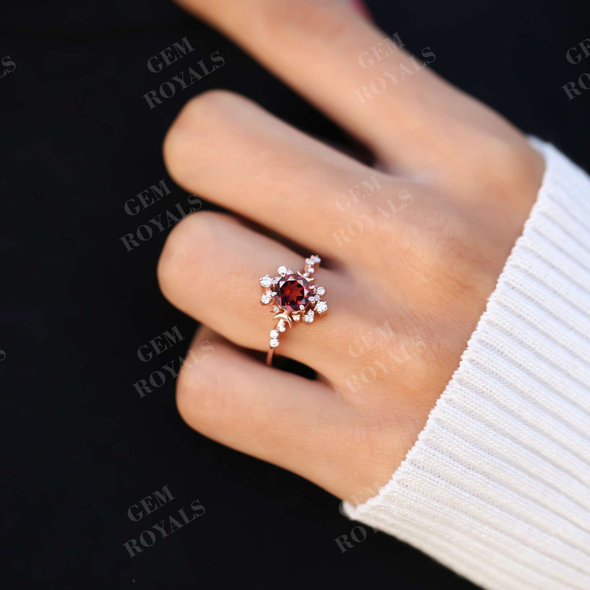 Art Deco Cluster Round Natural Red Garnet Engagement Ring