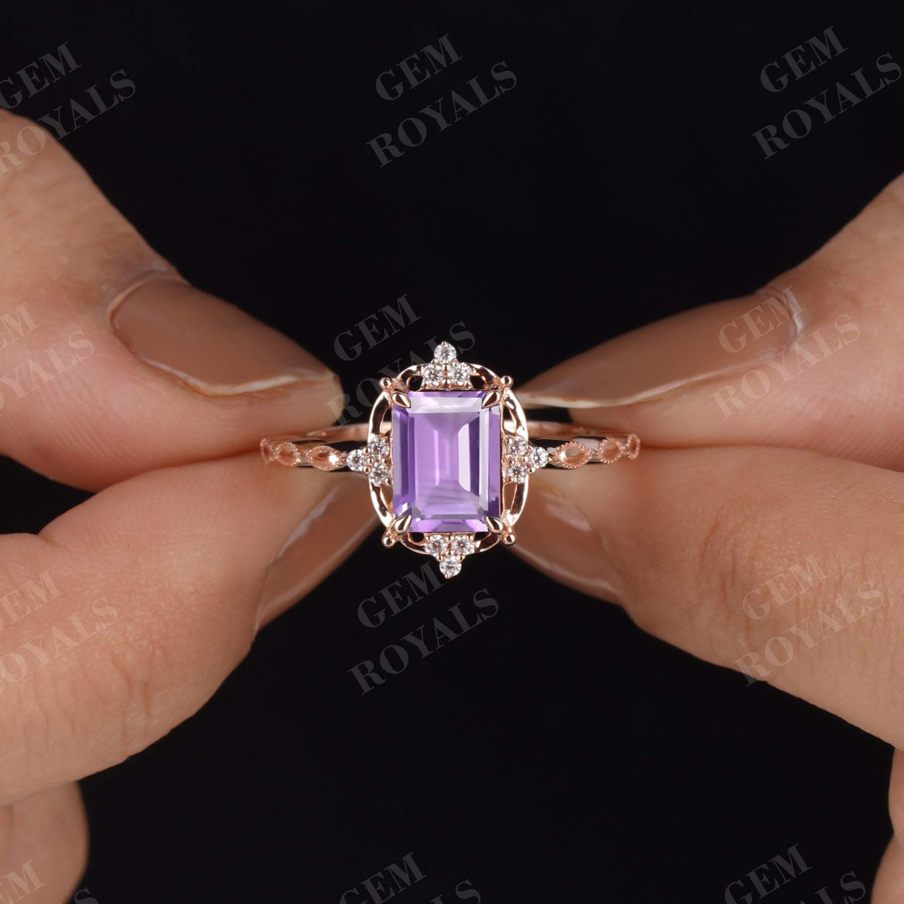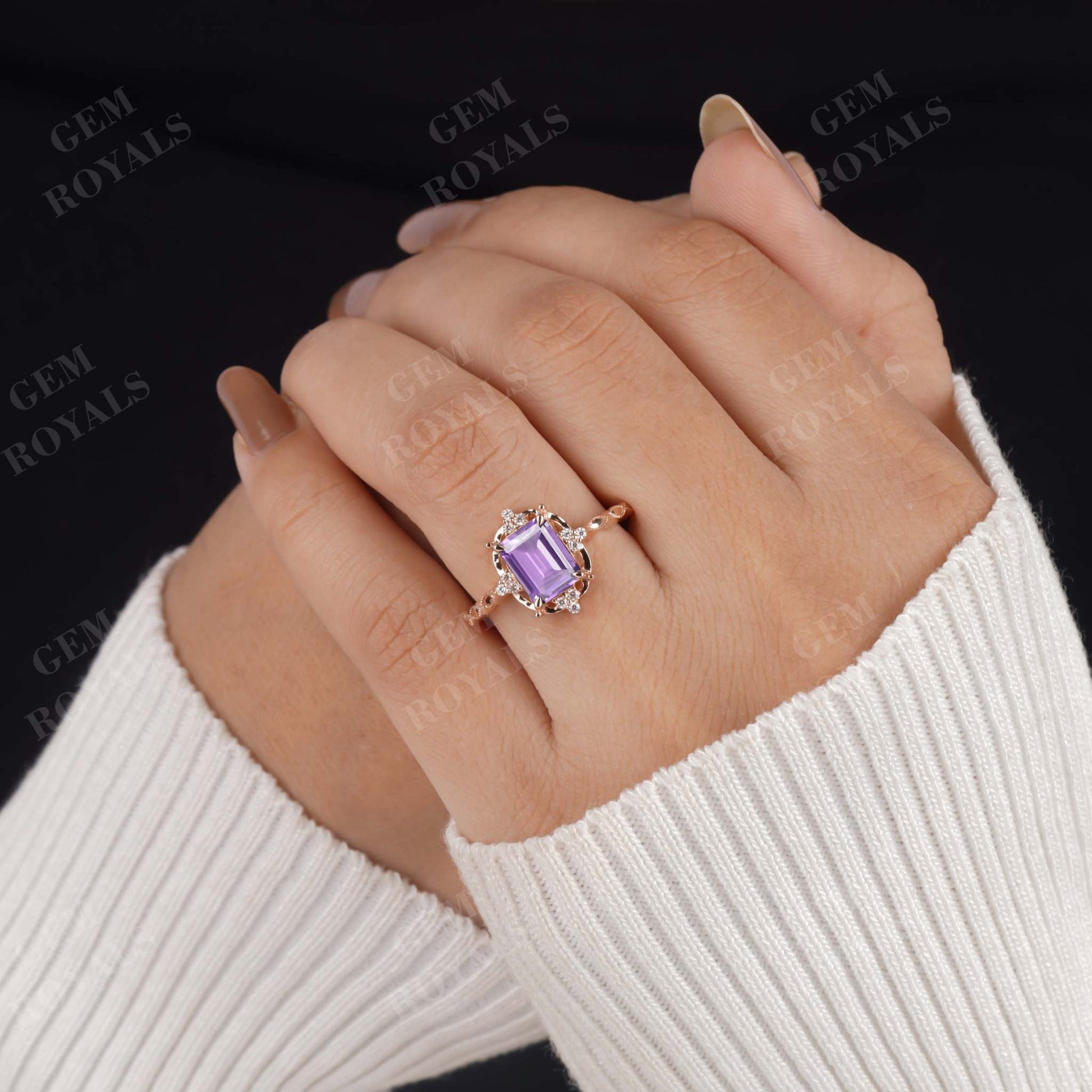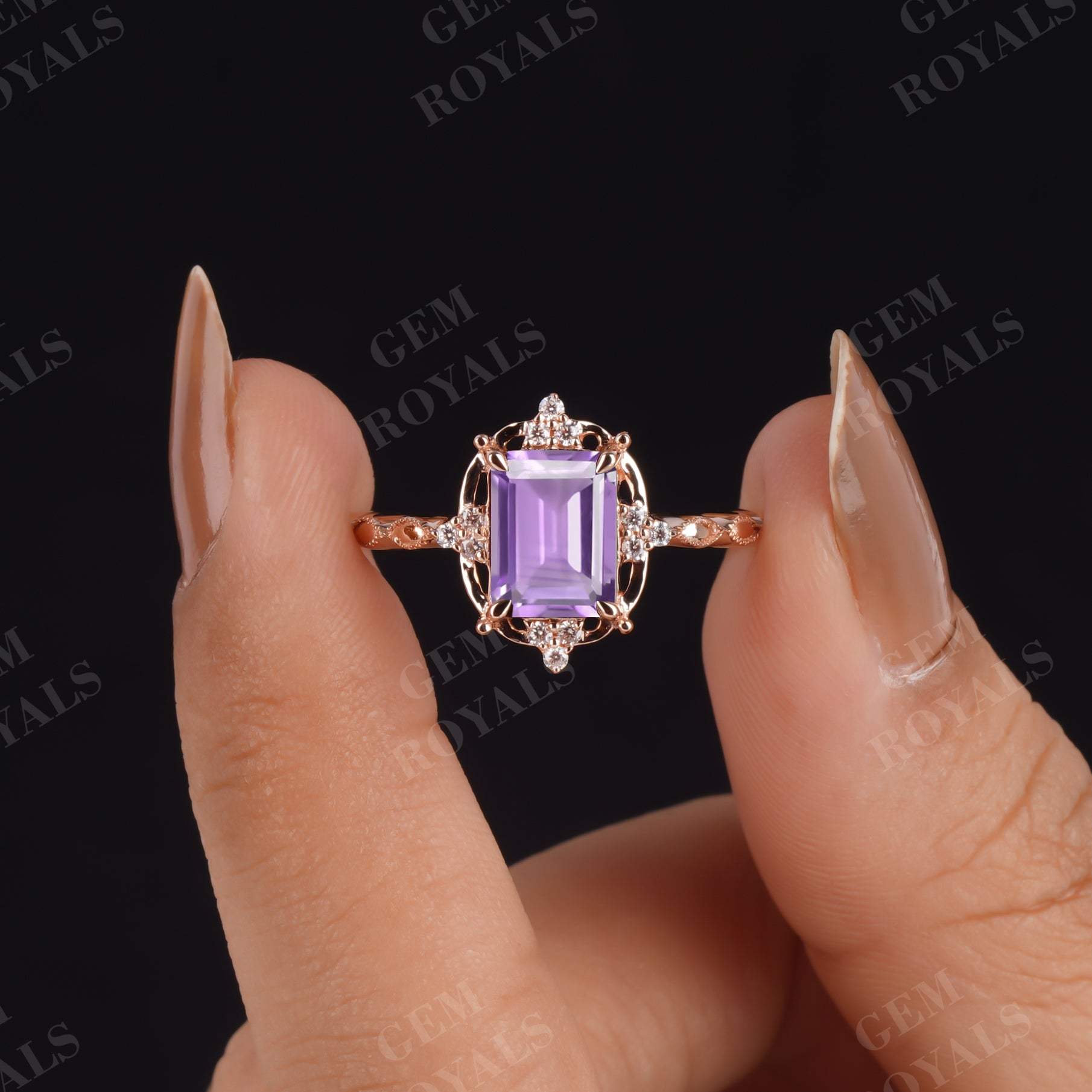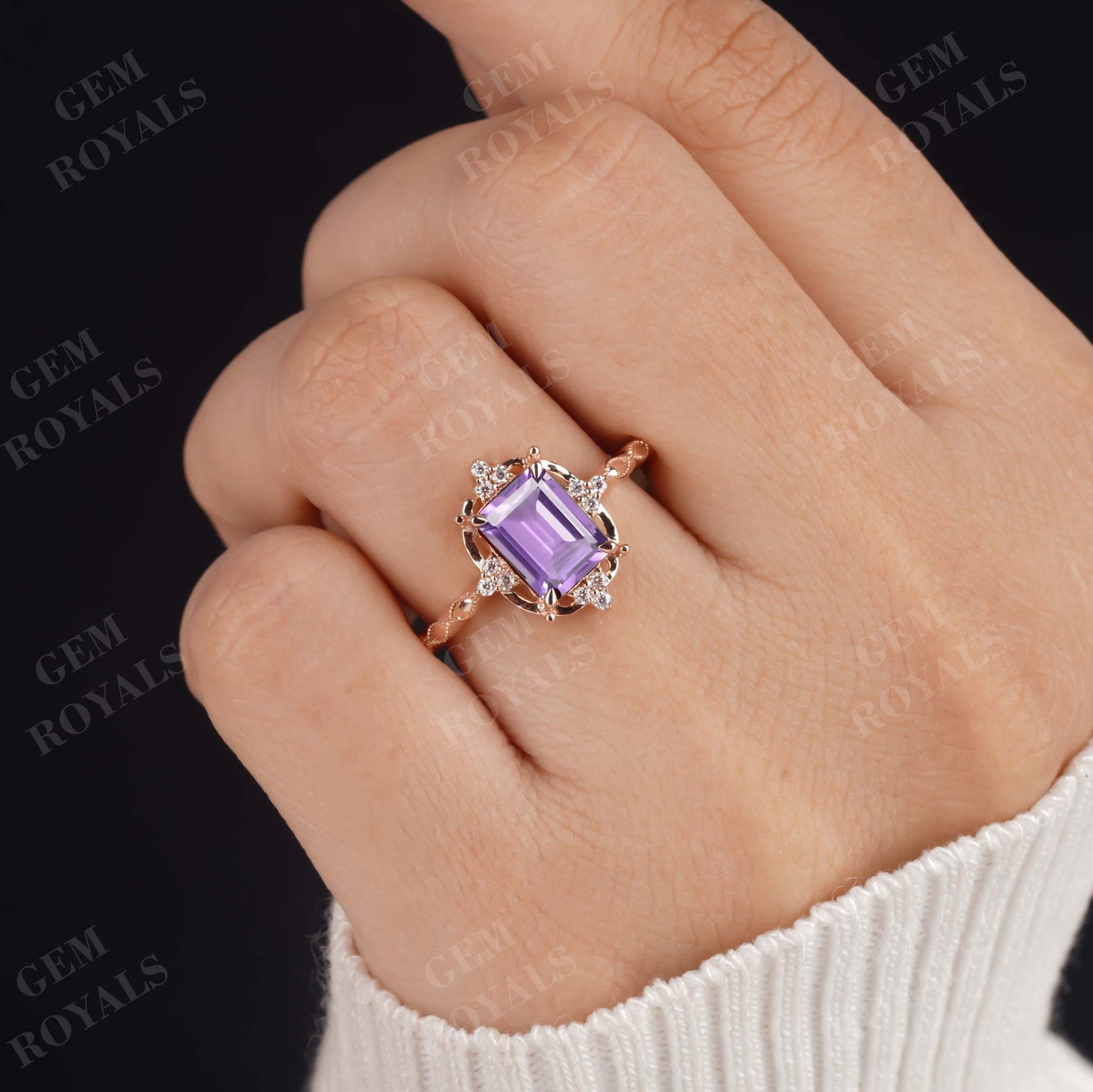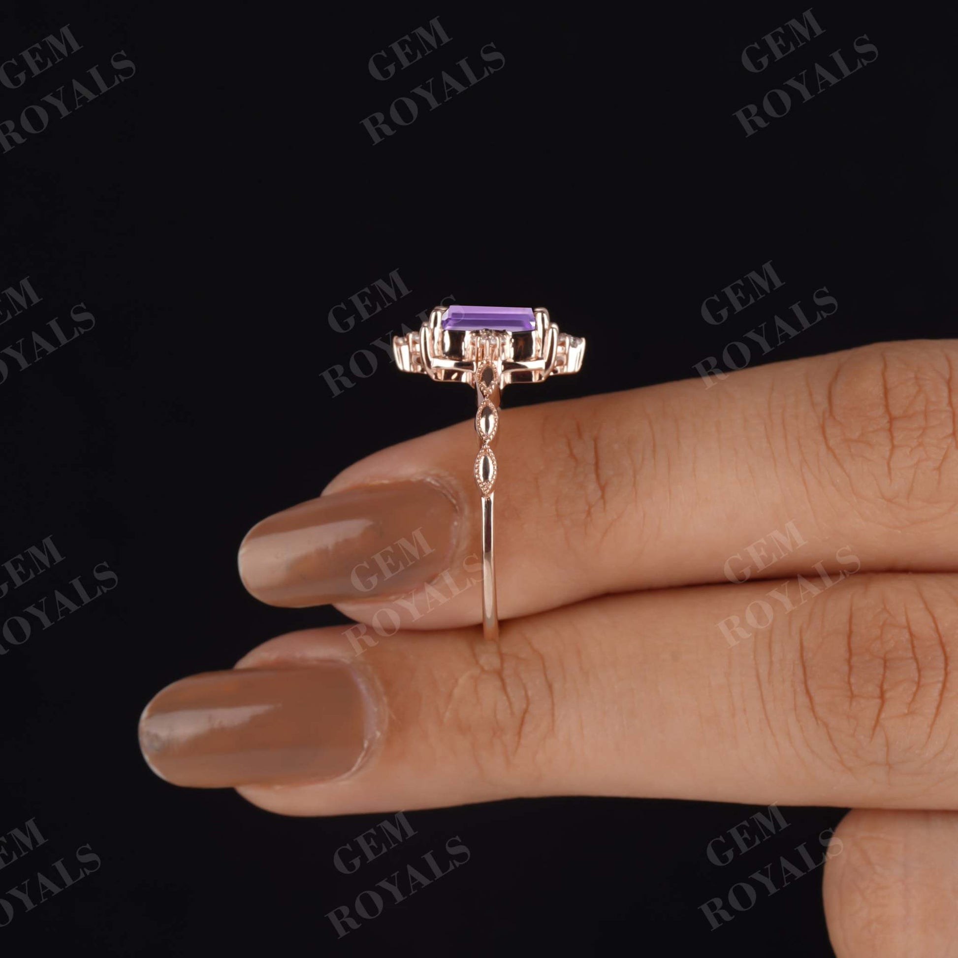 Art Deco Emerald Cut Amethyst Engagement Ring