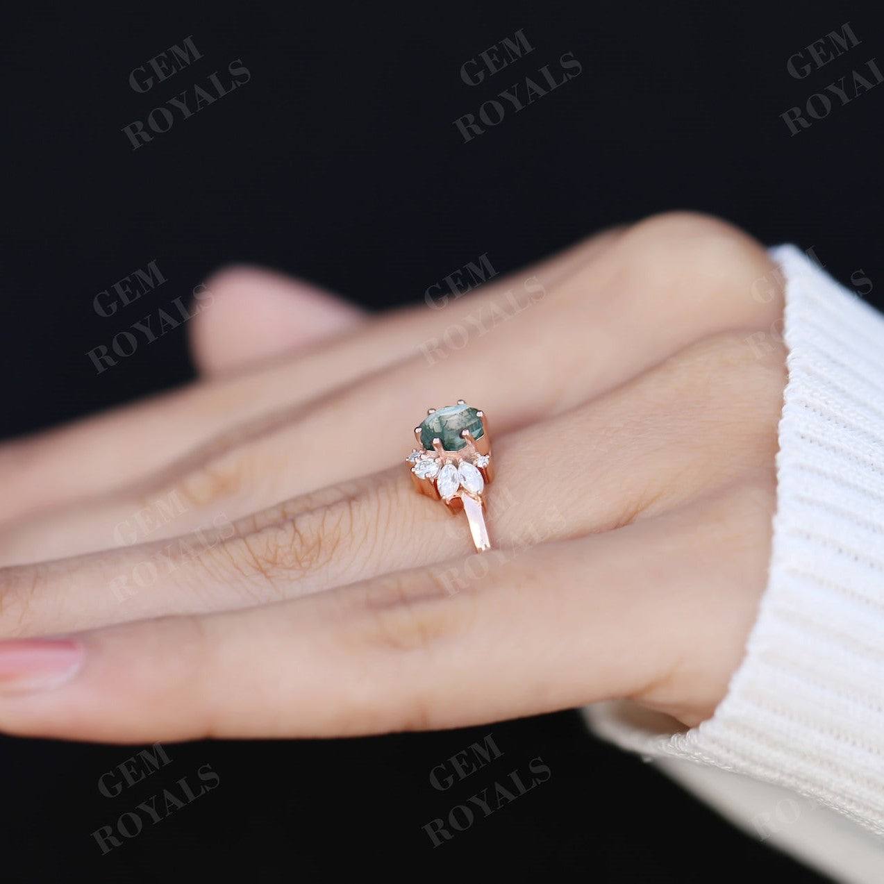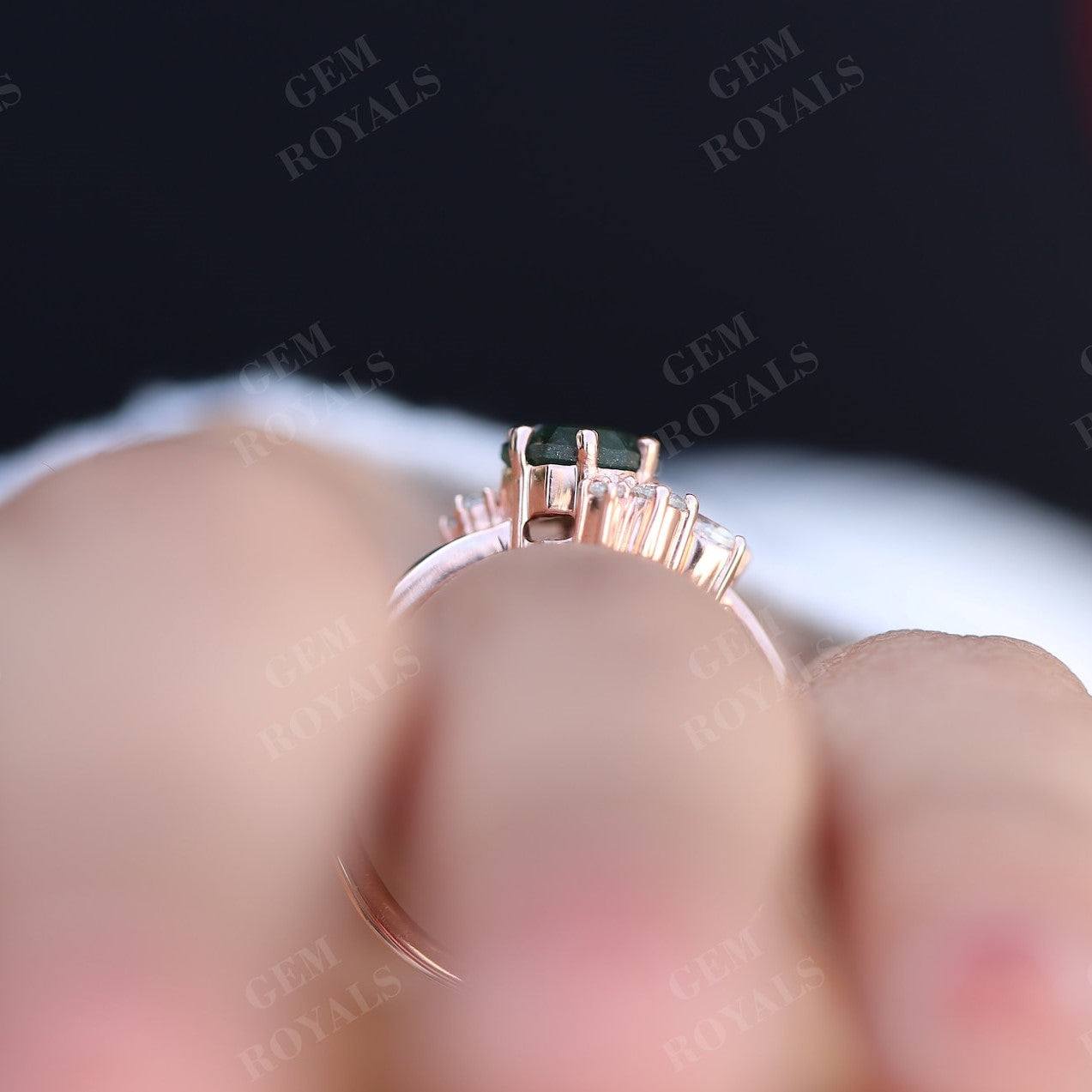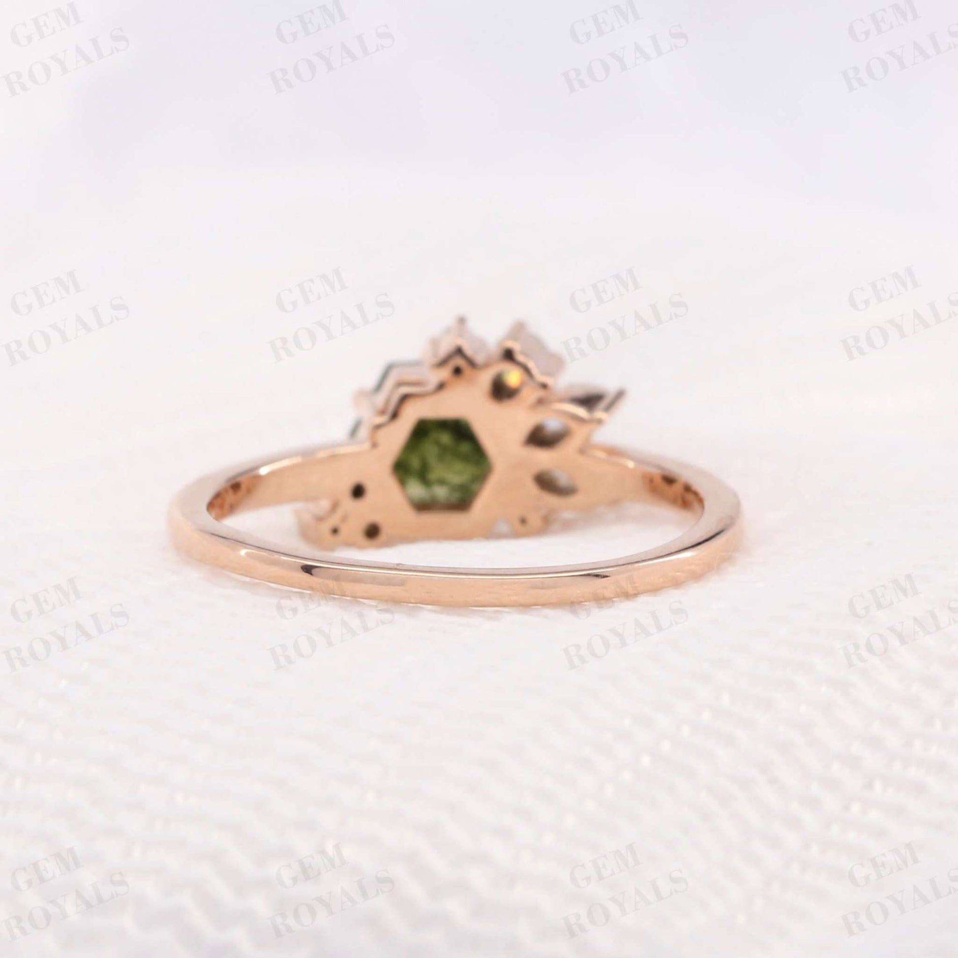 Art Deco Hexagon Cut Natural Moss Agate Engagement Ring