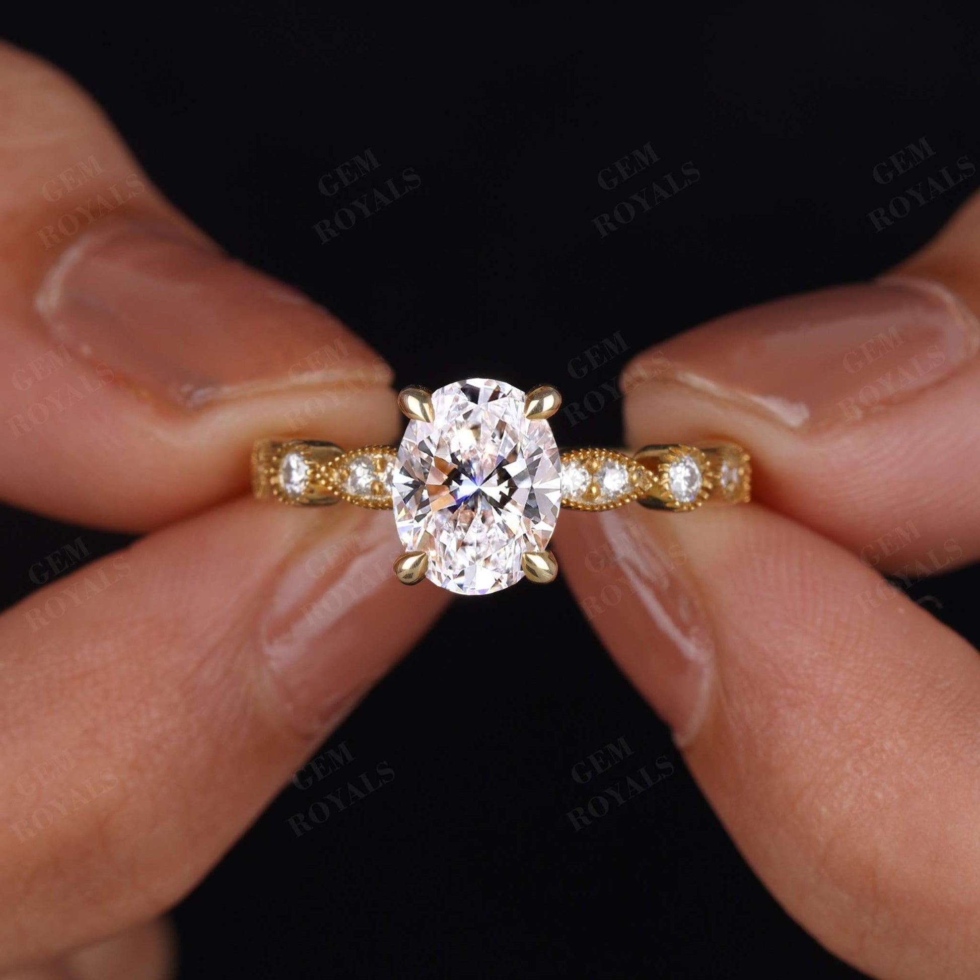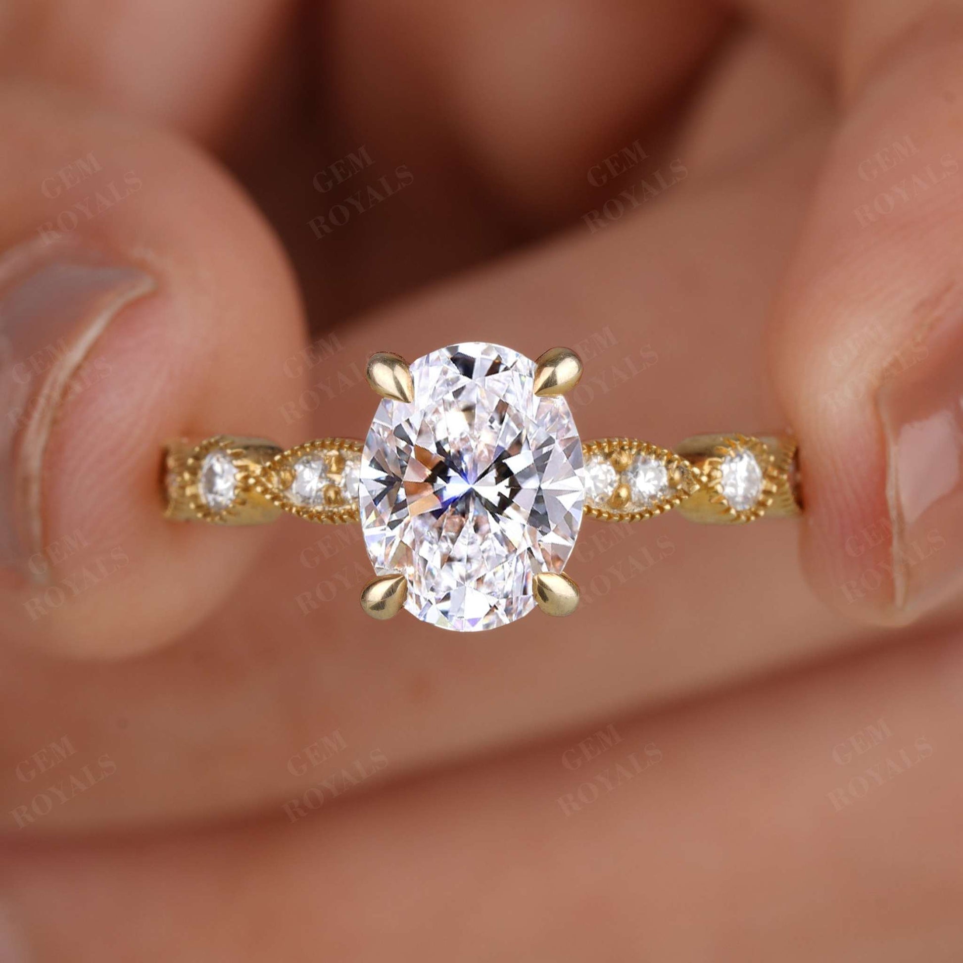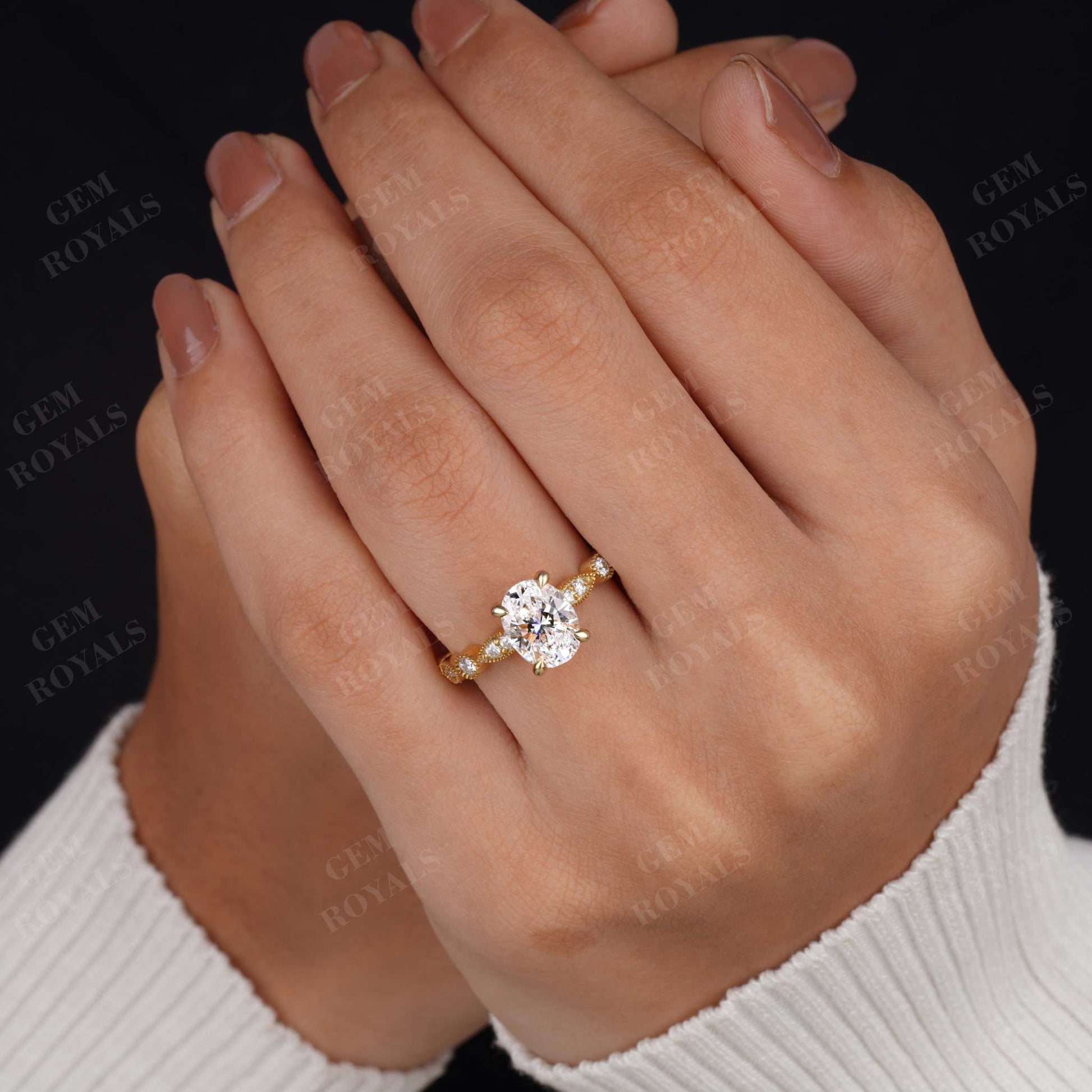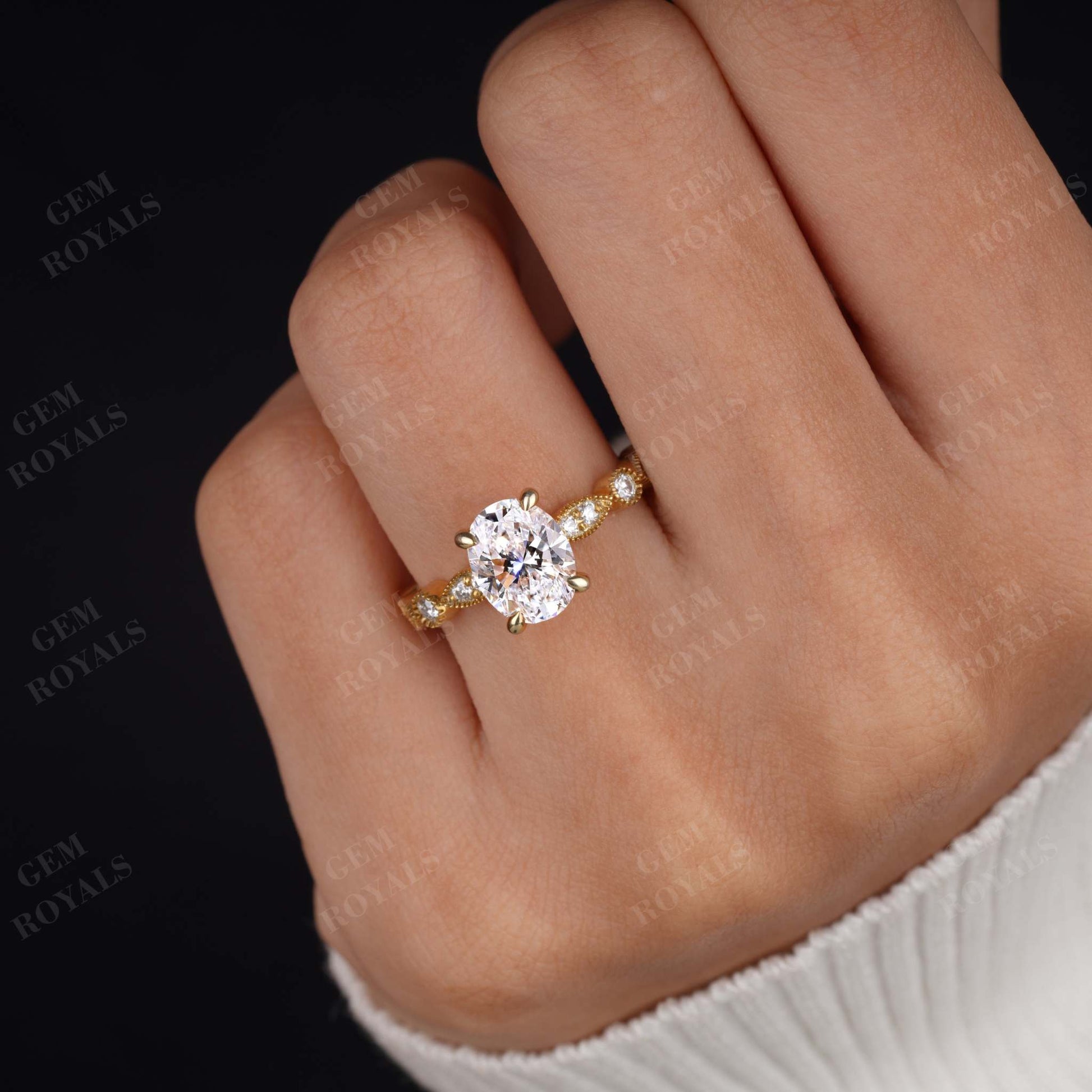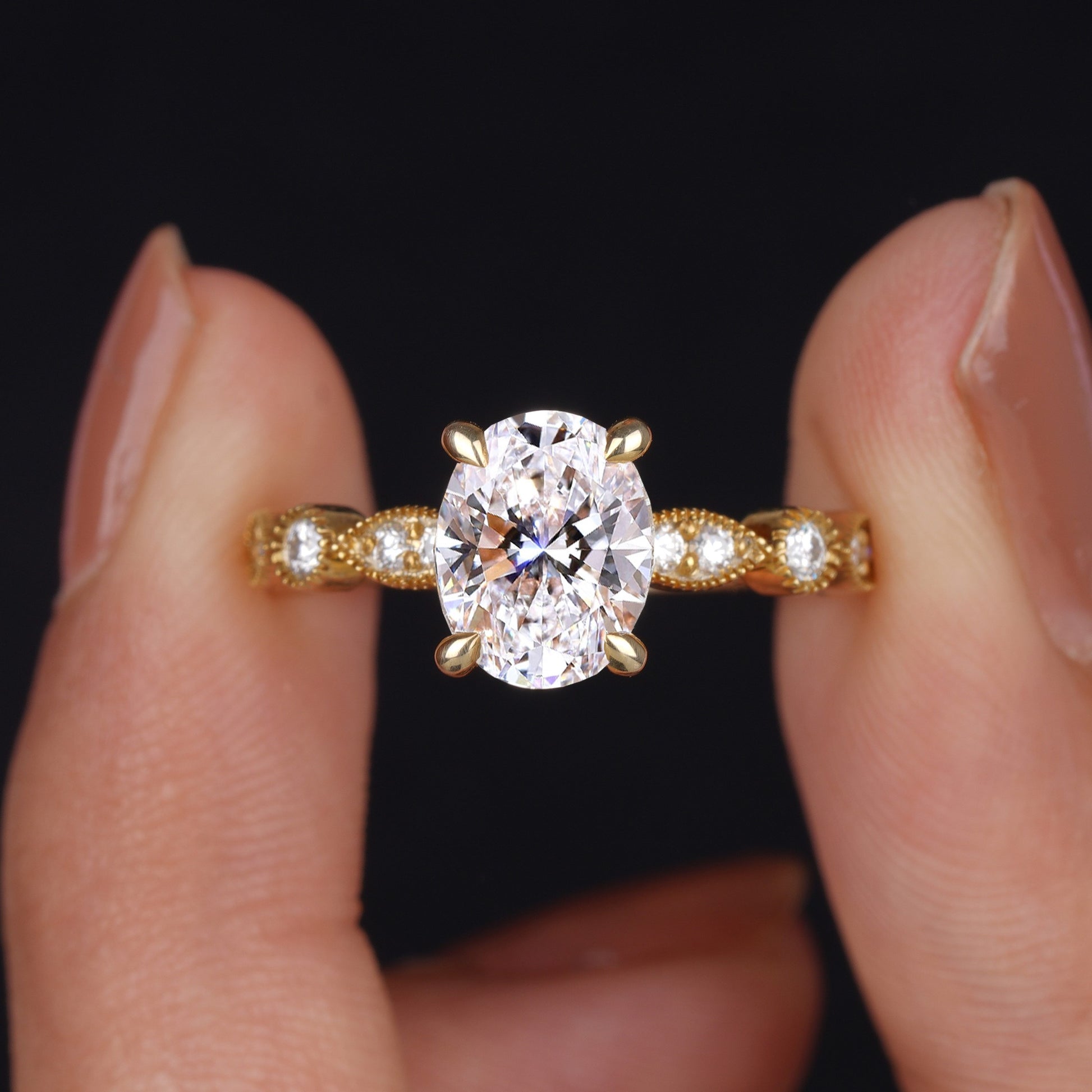 Art Deco Oval Cut Lab Grown Diamond Engagement Ring