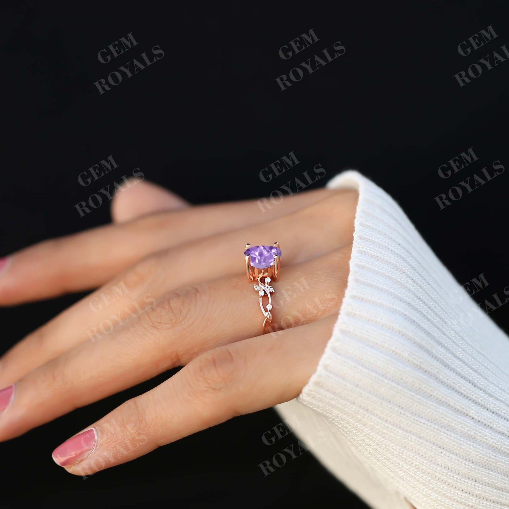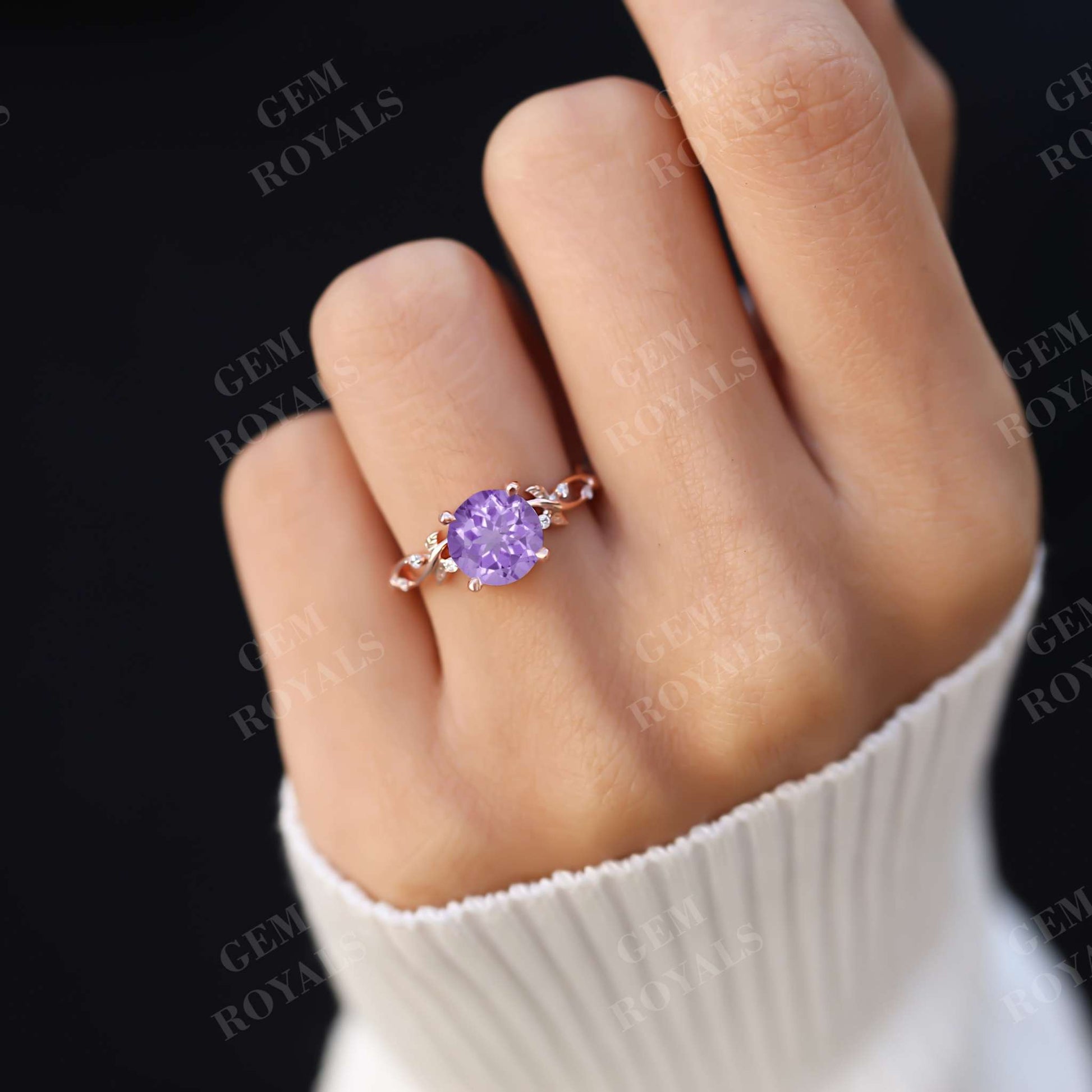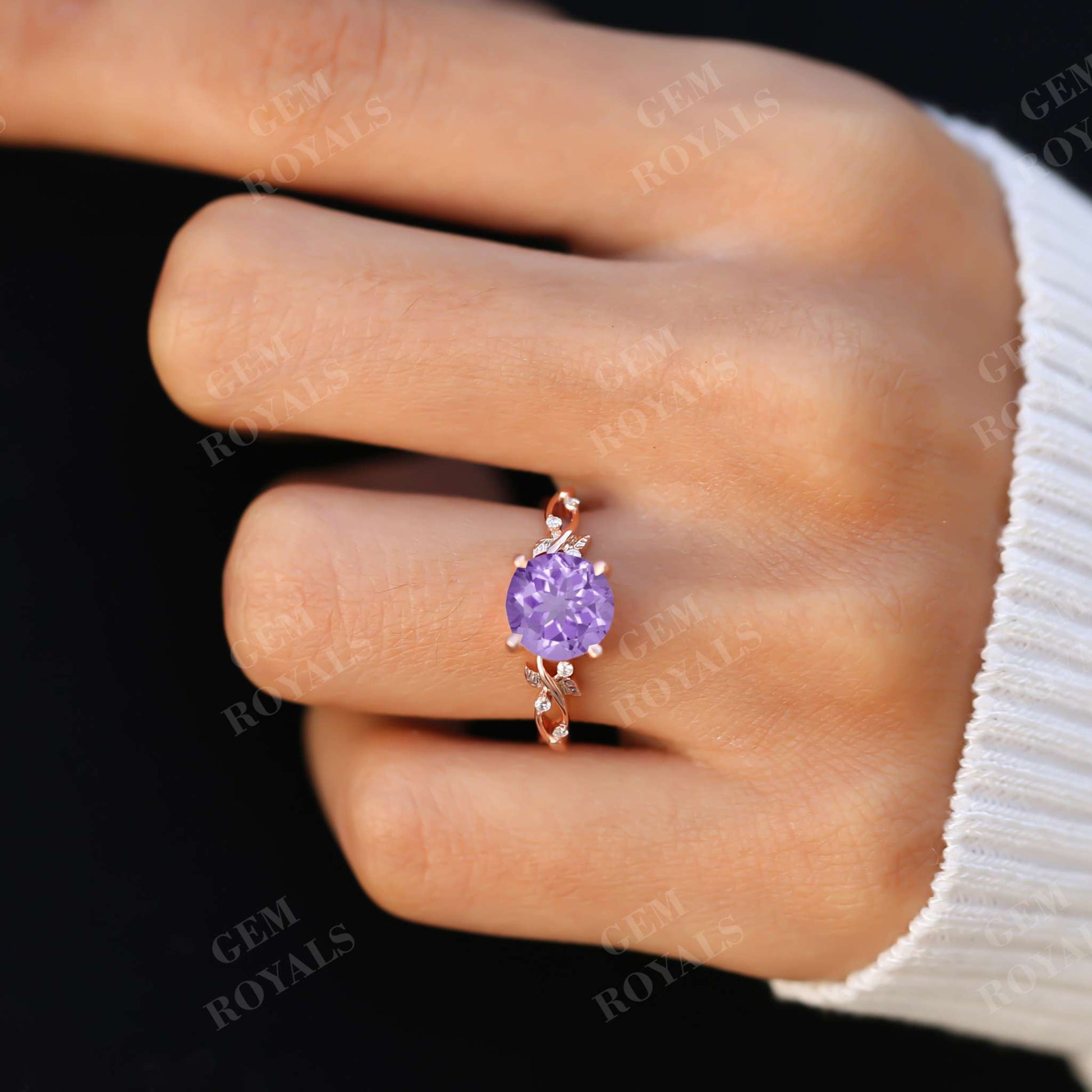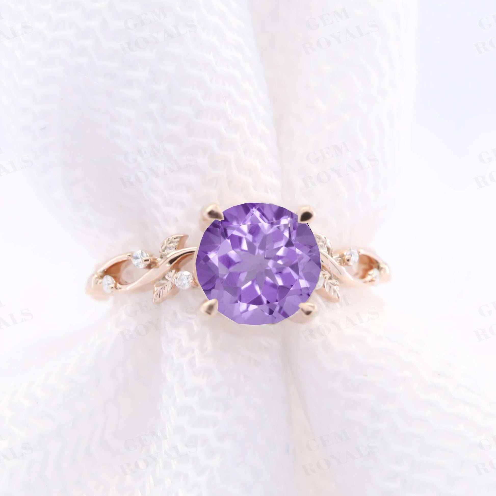 Nature Inspired Round Purple Amethyst Engagement Ring