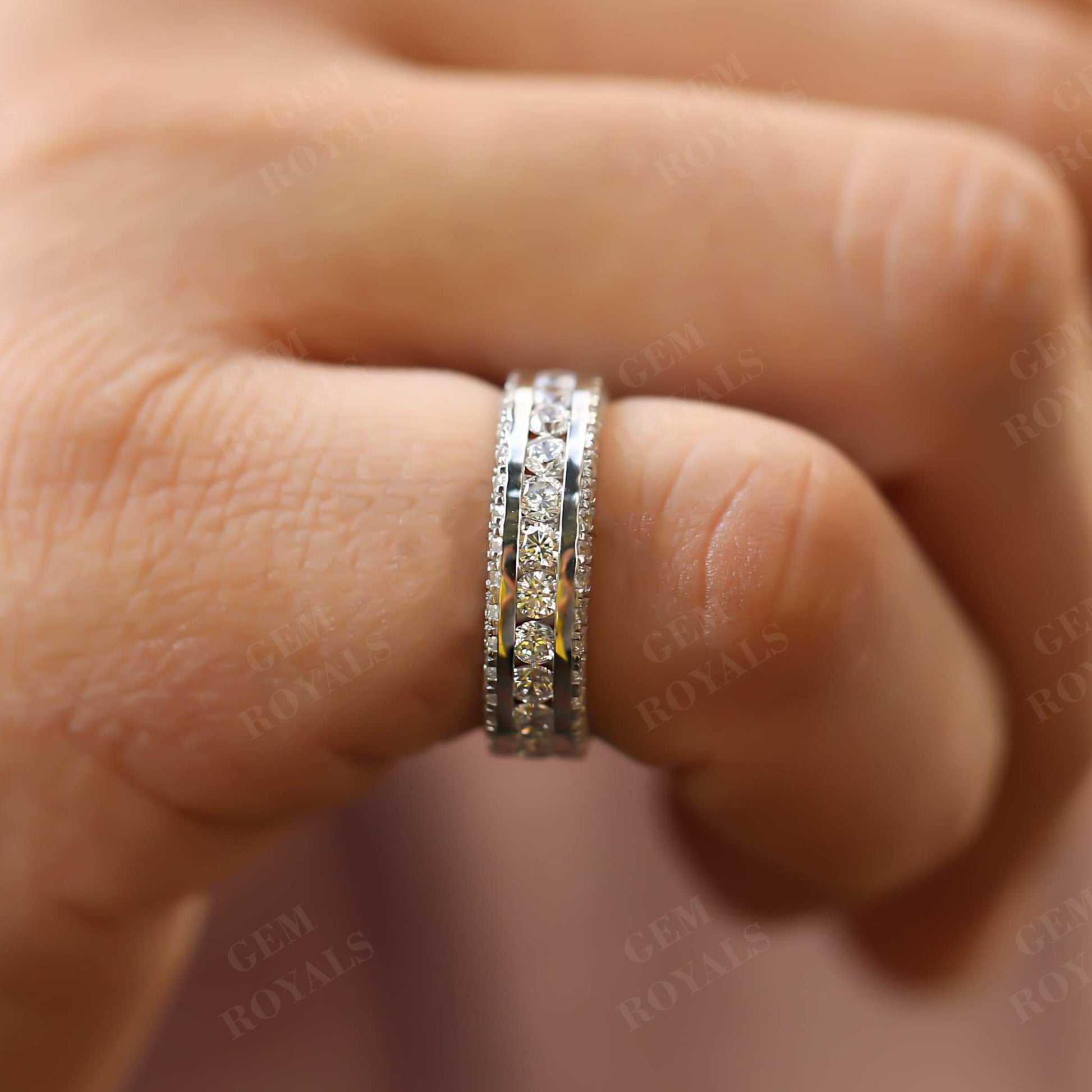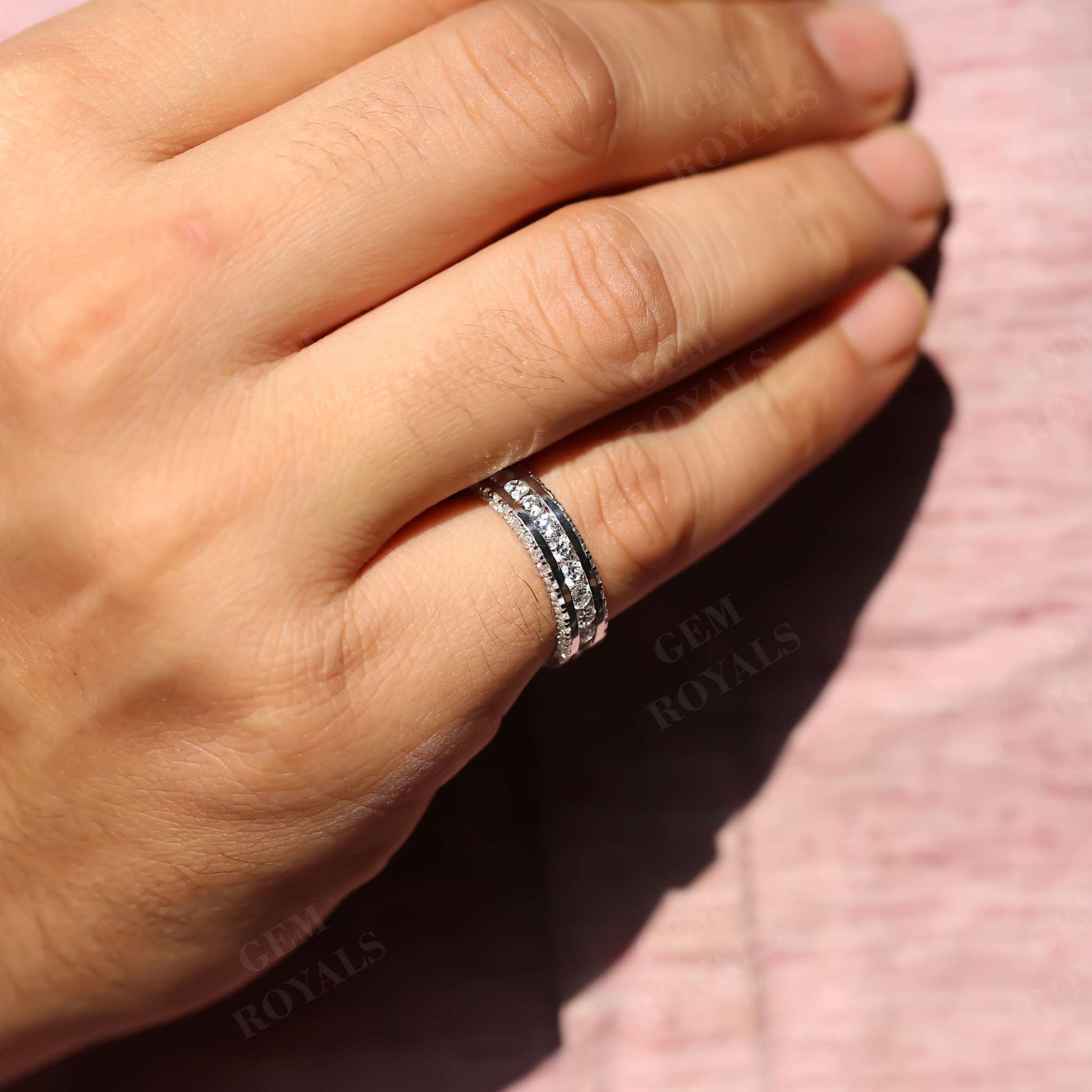 Round Cut Moissanite Full Eternity Men's Wedding Band