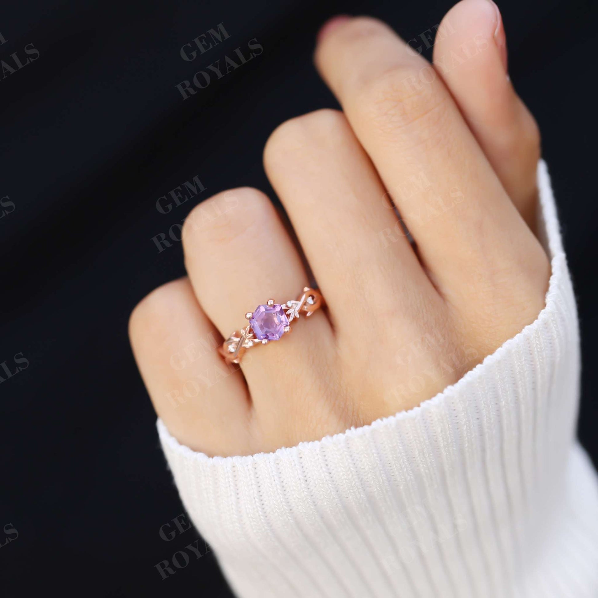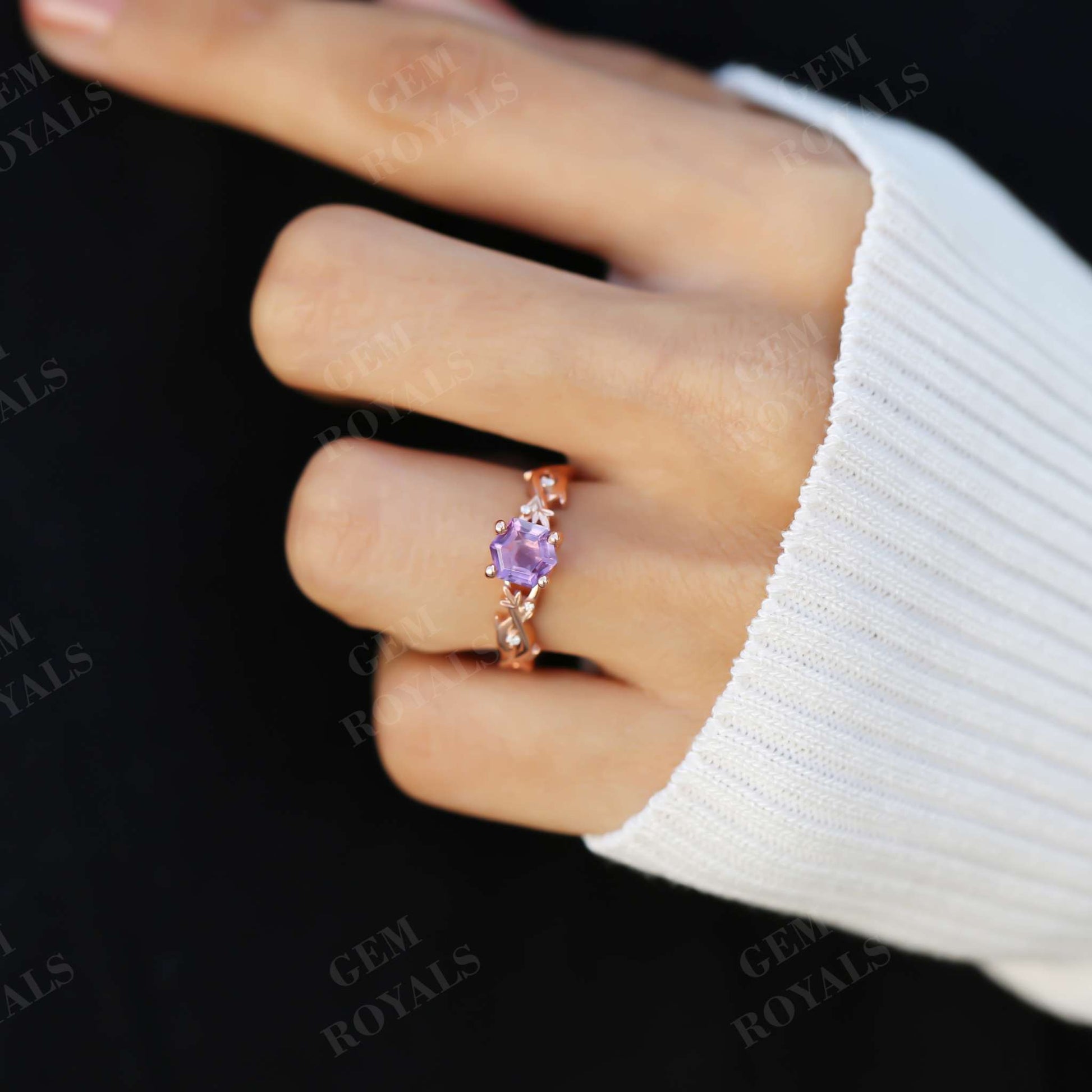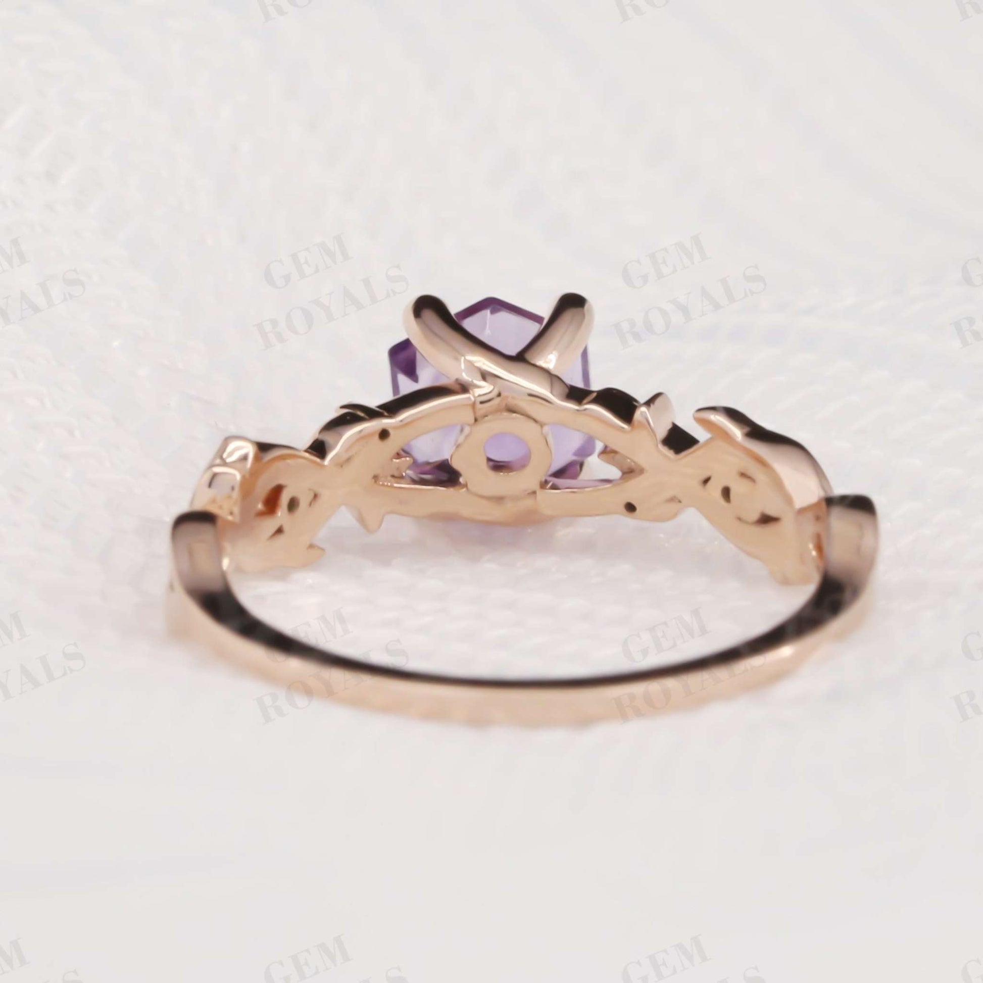 Vintage Nature Inspired Hexagon Amethyst Engagement Ring
