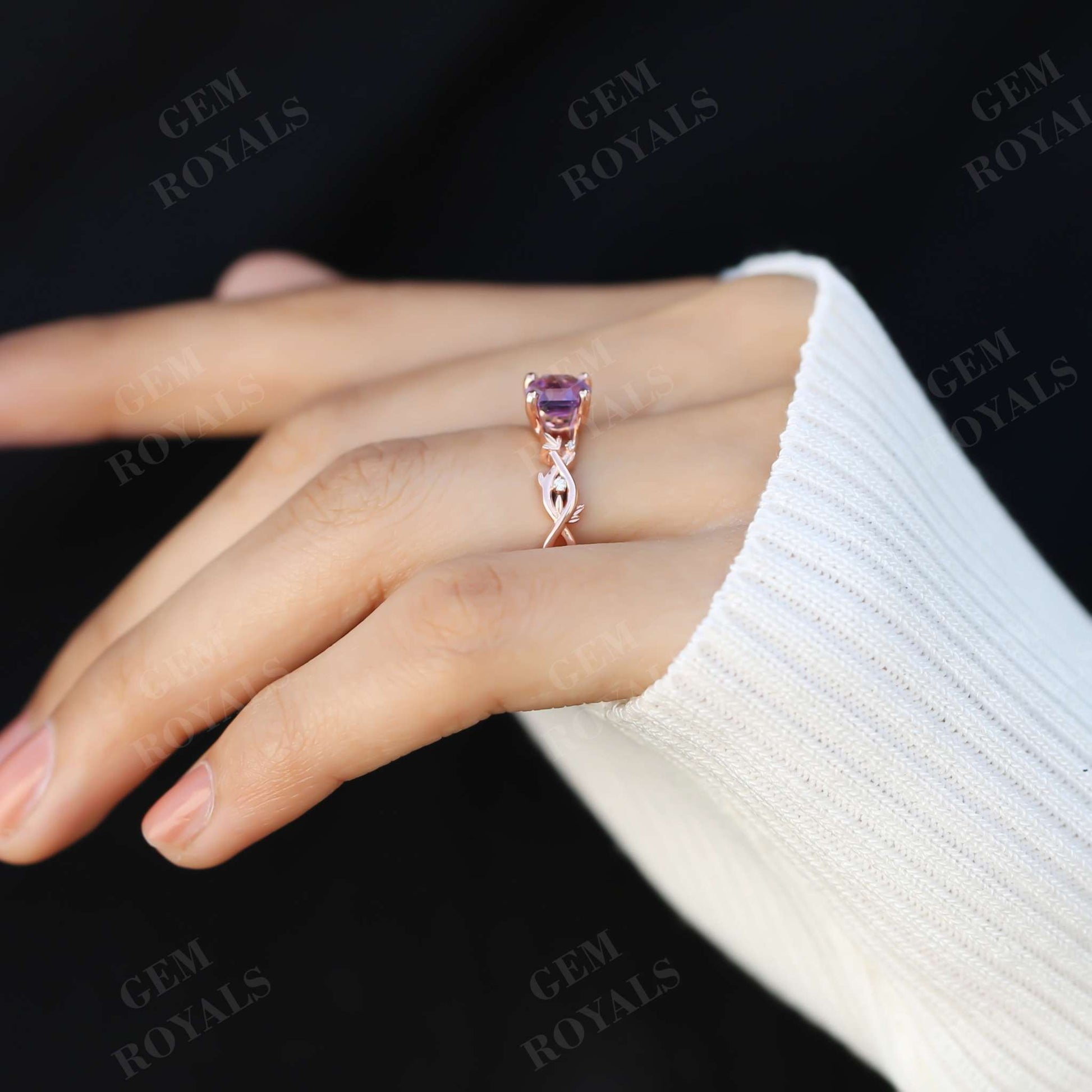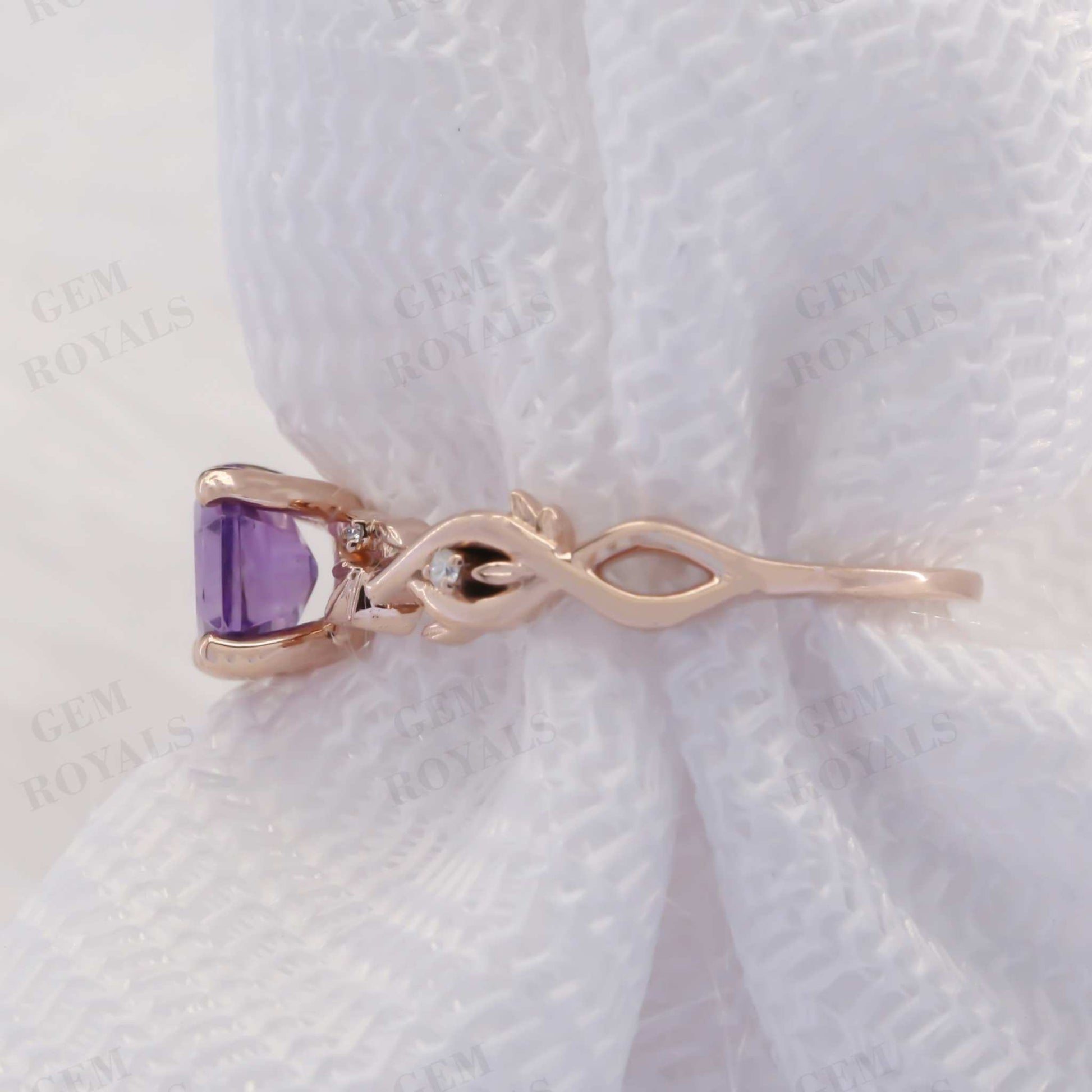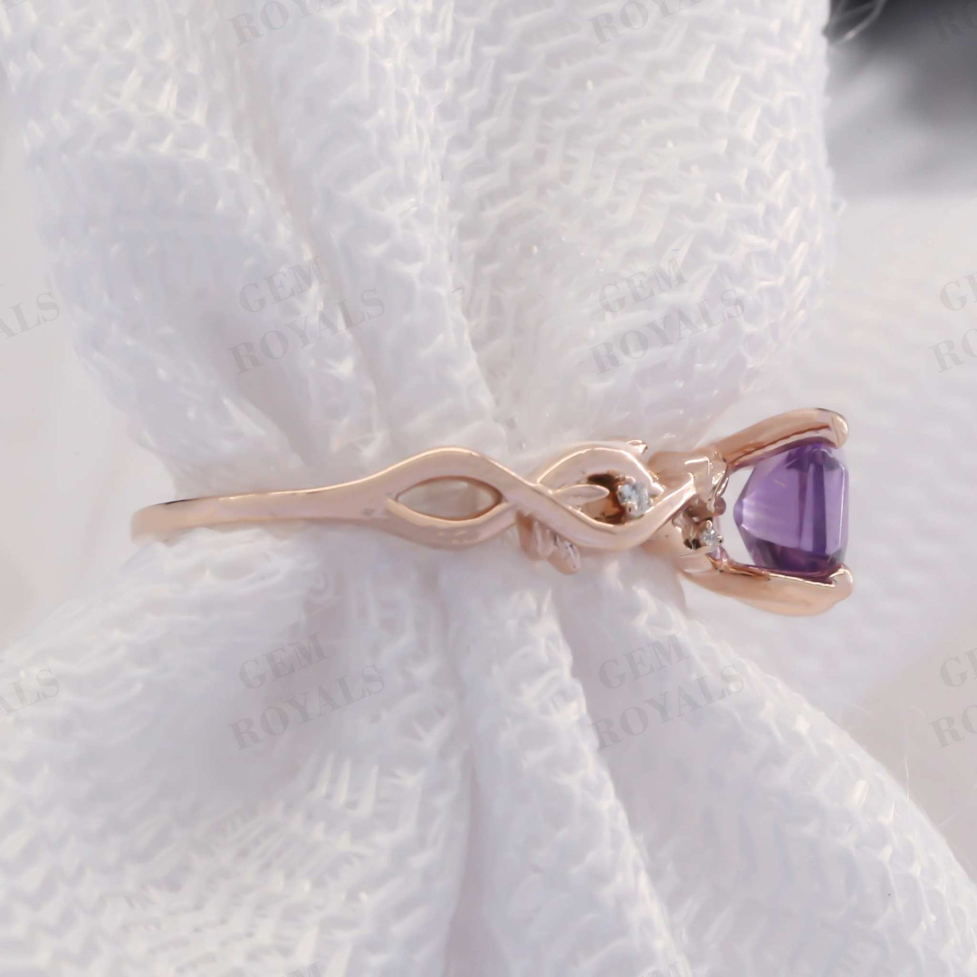 Vintage Nature Inspired Hexagon Amethyst Engagement Ring