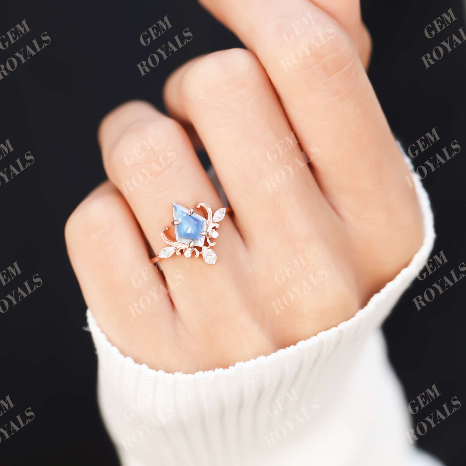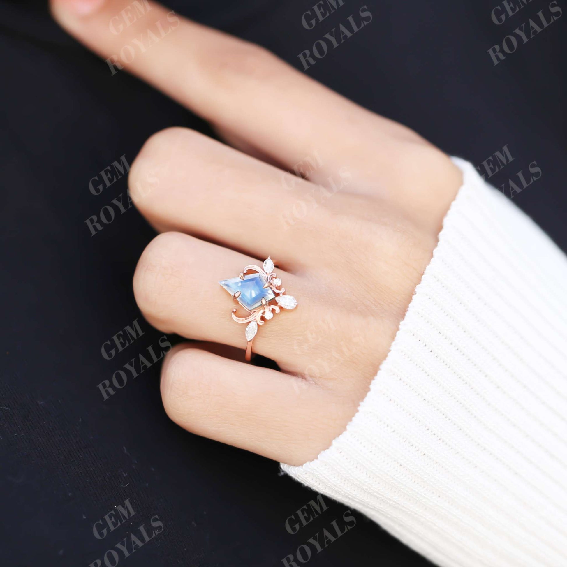 Vintage Style Kite Cut Moonstone Engagement Ring